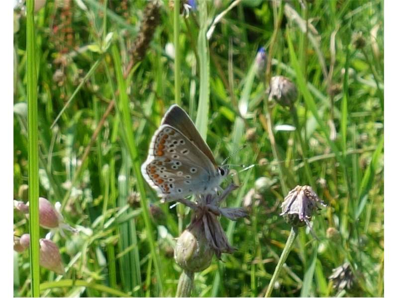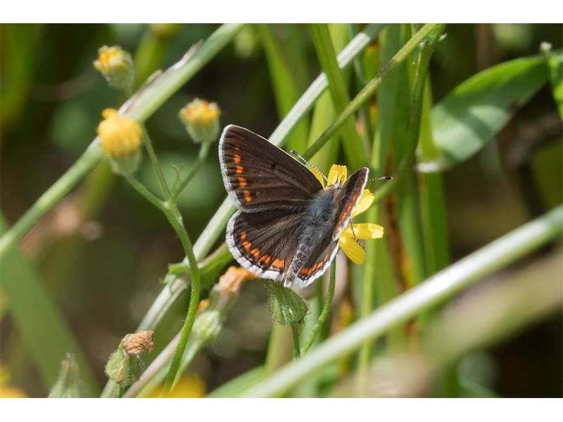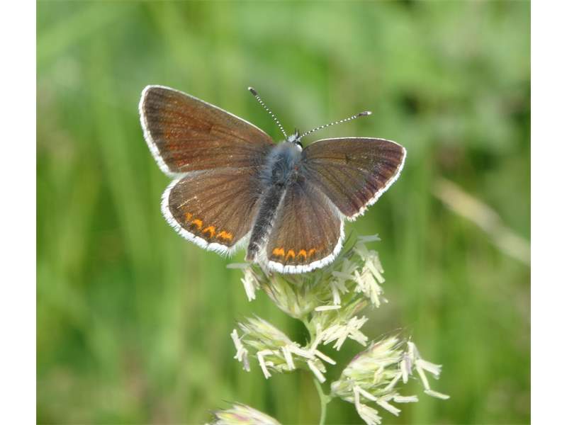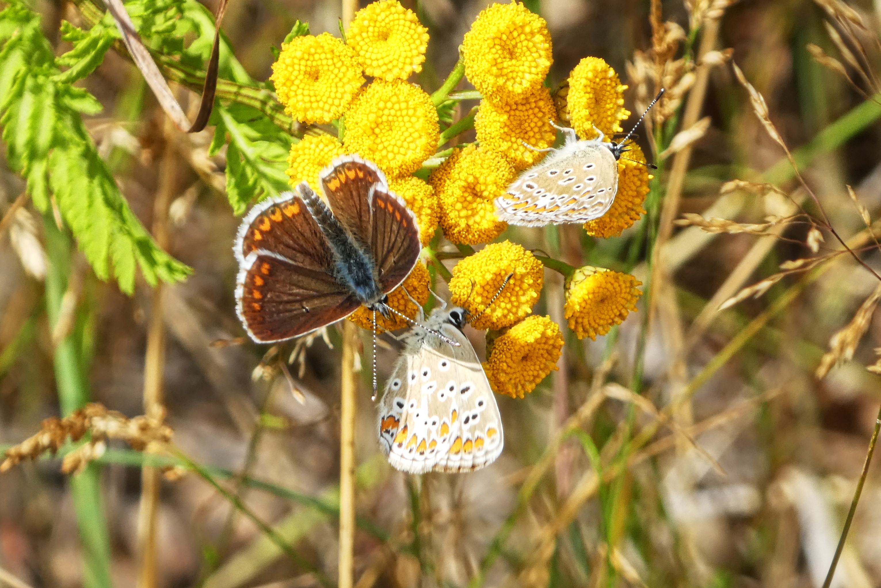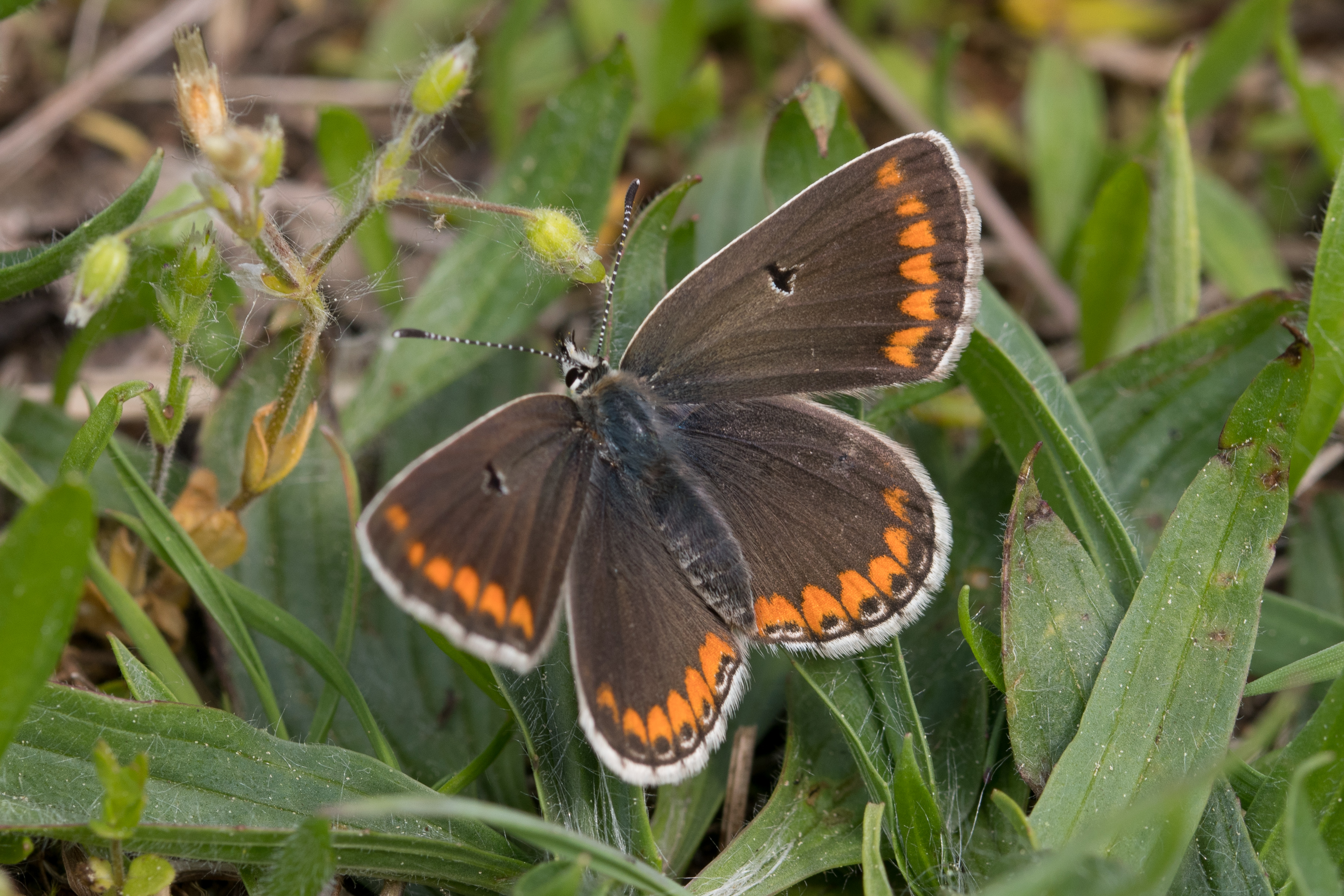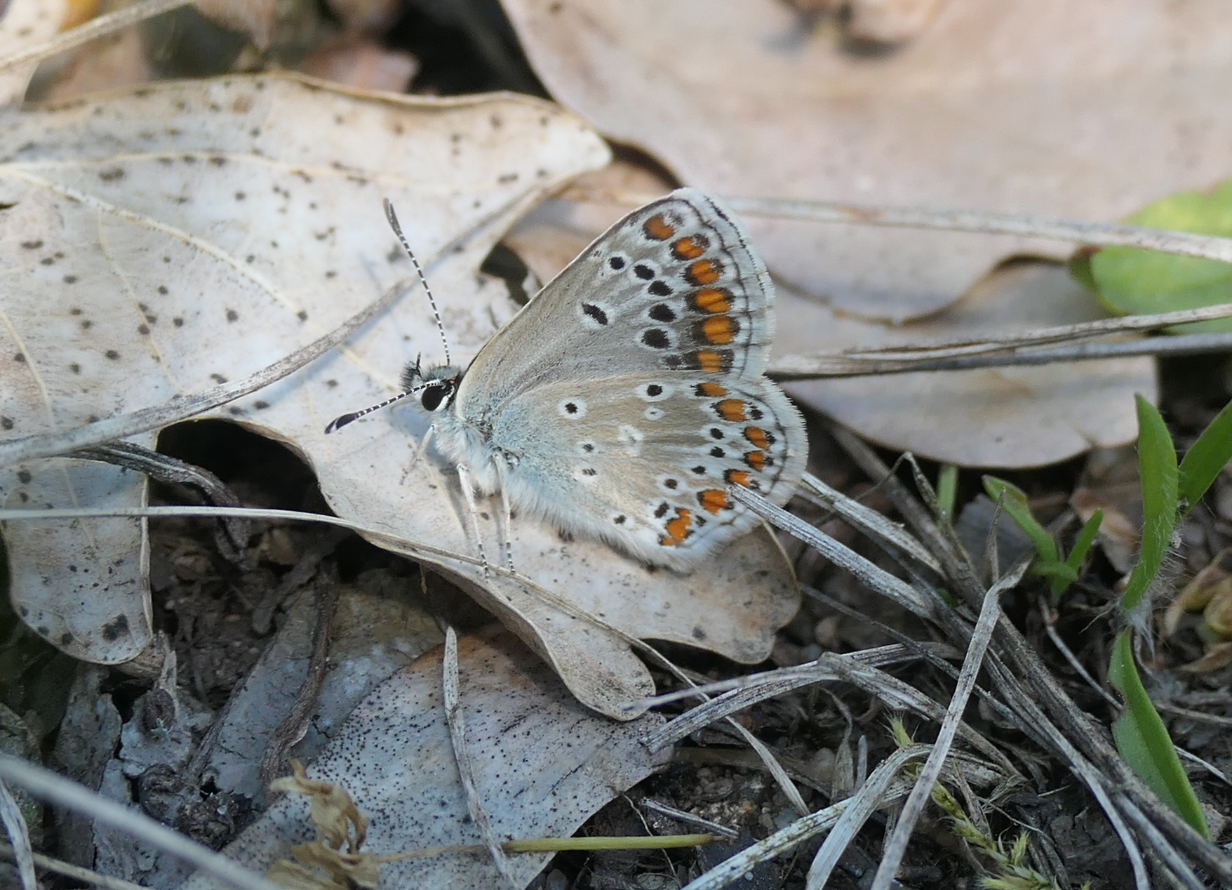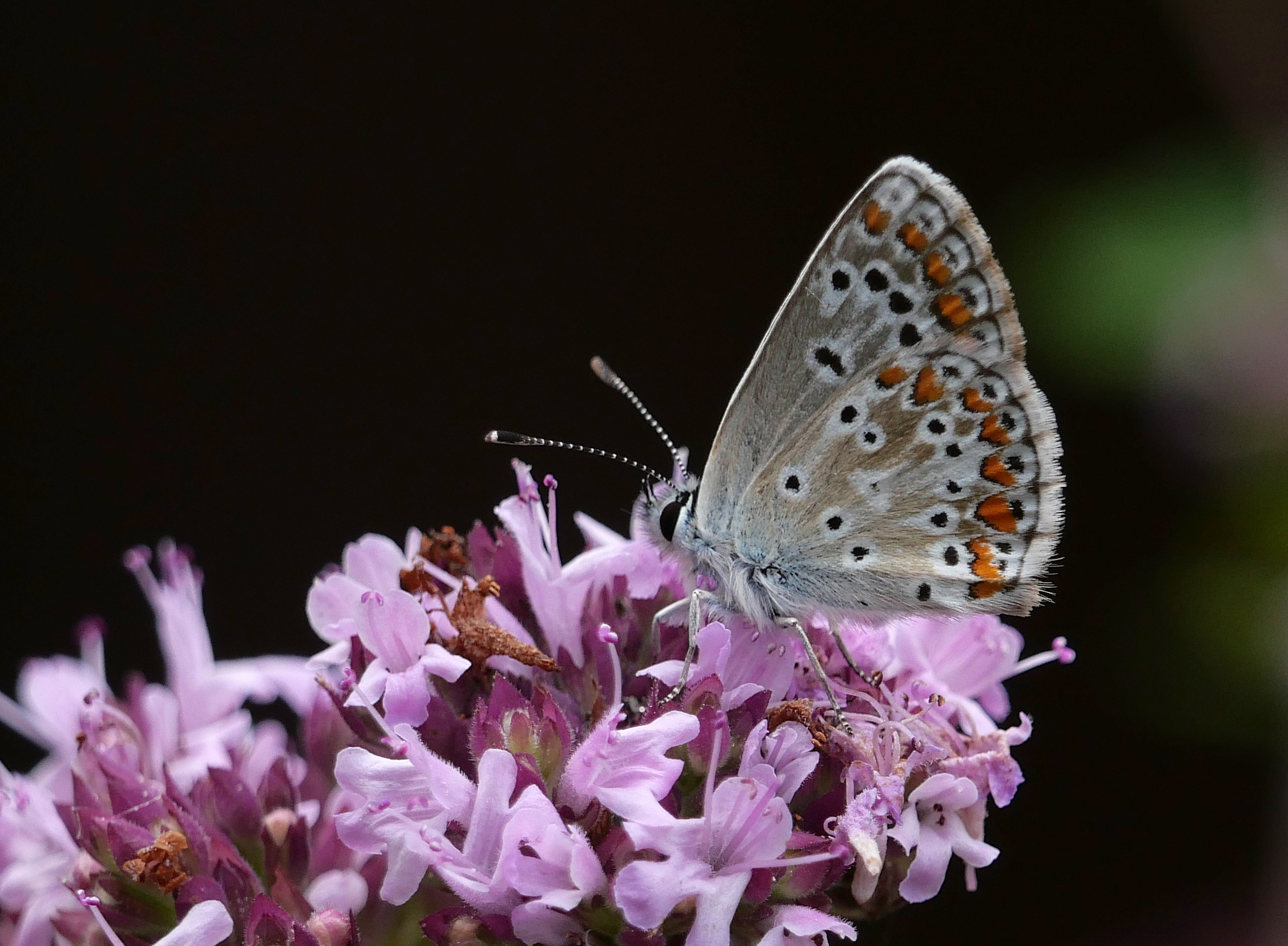 Kleiner Sonnenröschenbläuling (Aricia agestis (Denis & Schiffermüller, 1775)),Freital/Wurgwitz,Hammerteich,Wegrand auf Klee,Sep.2019