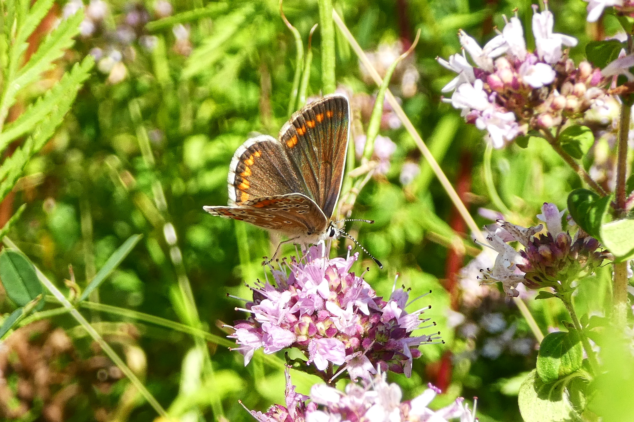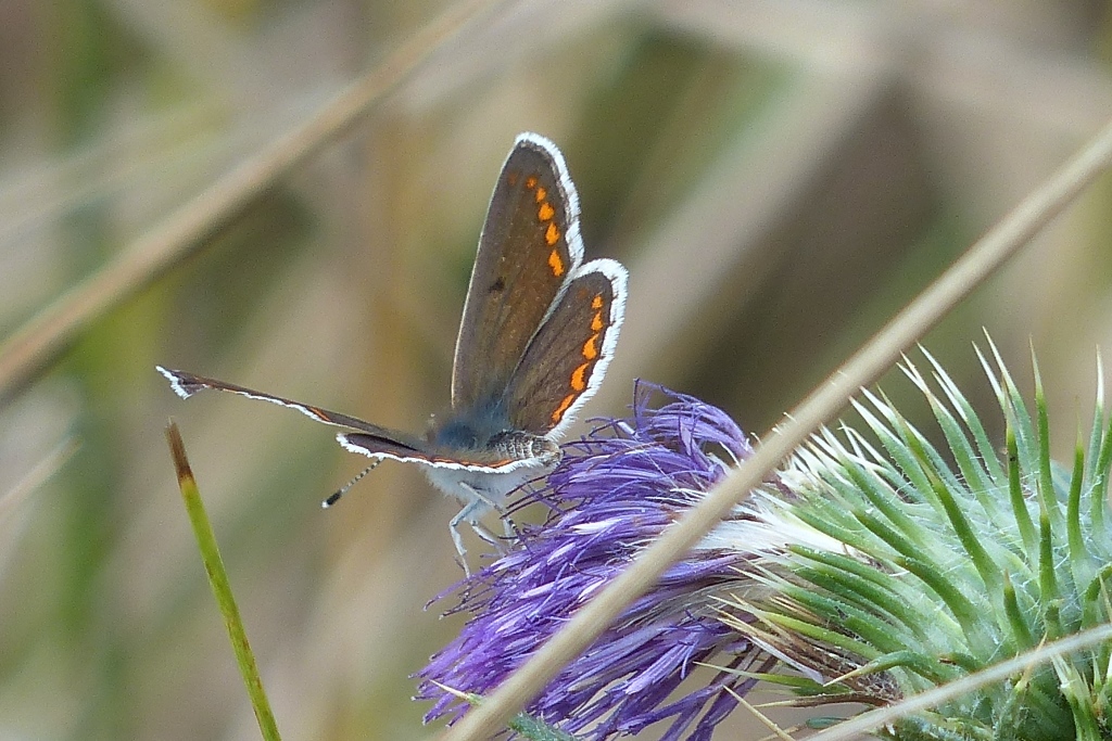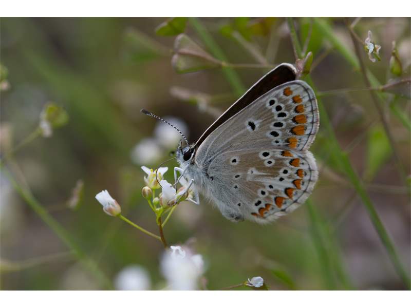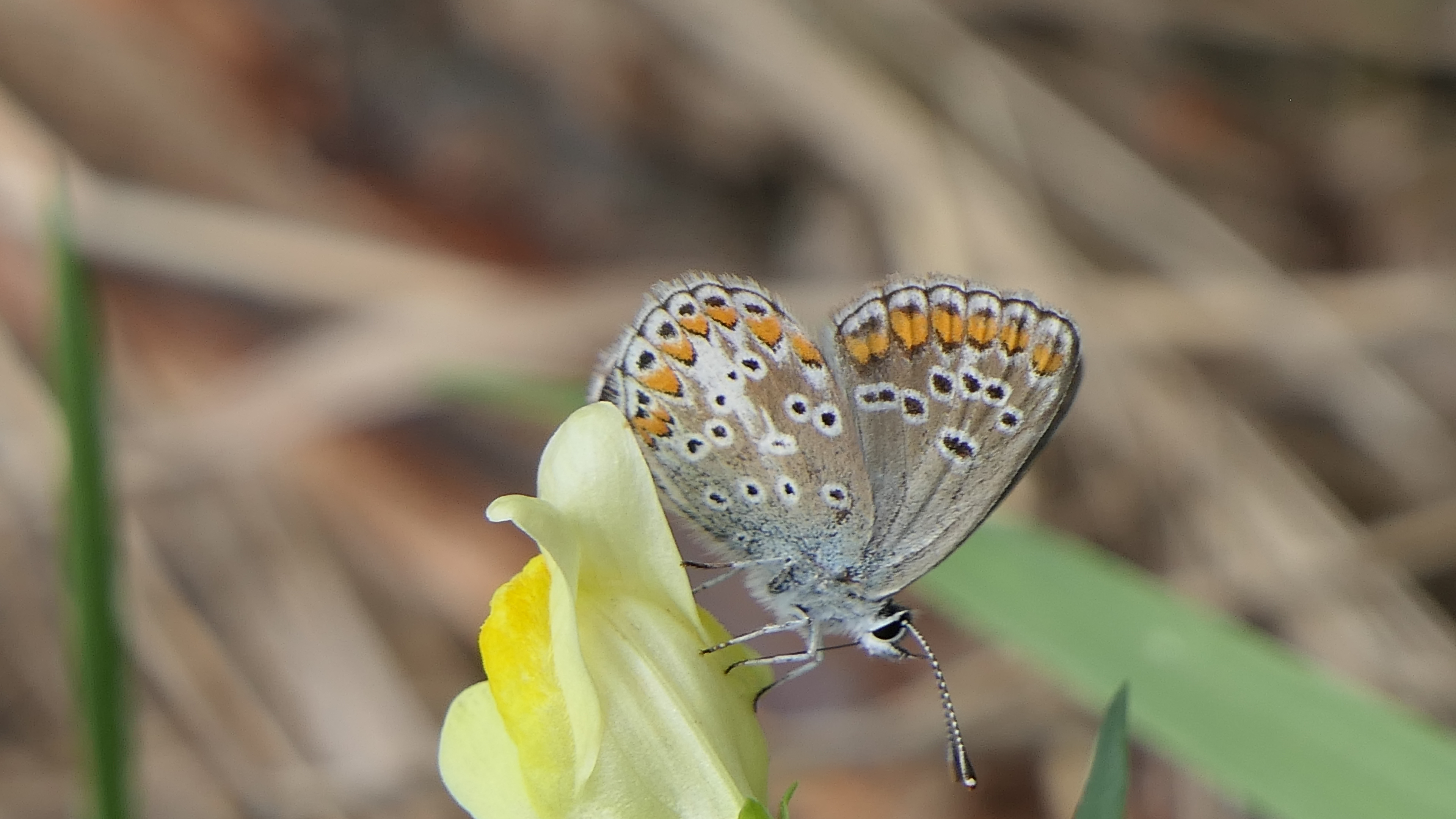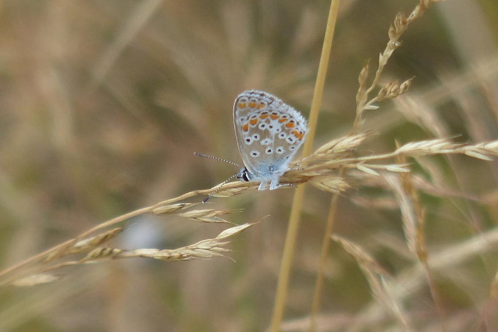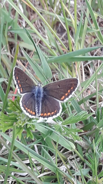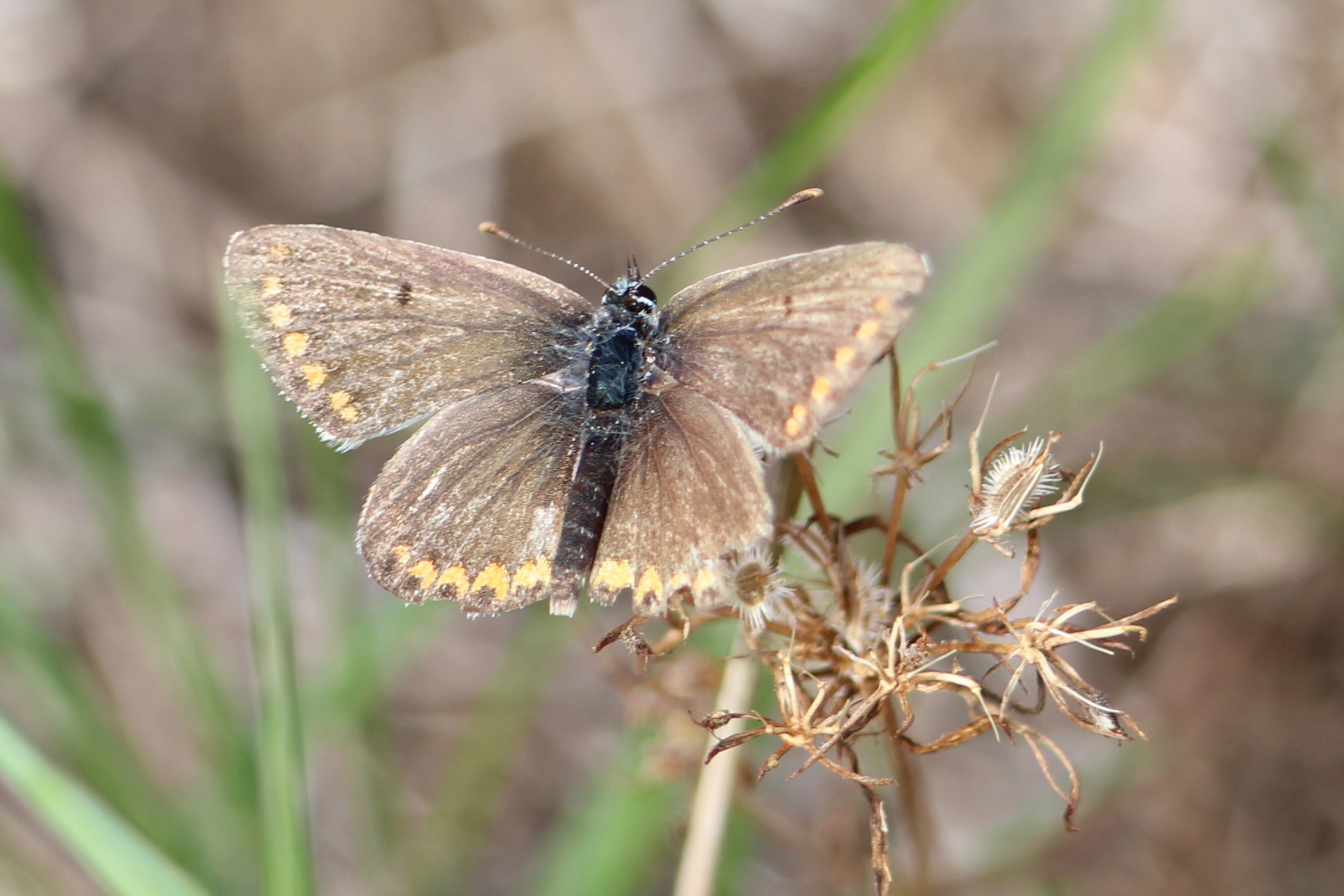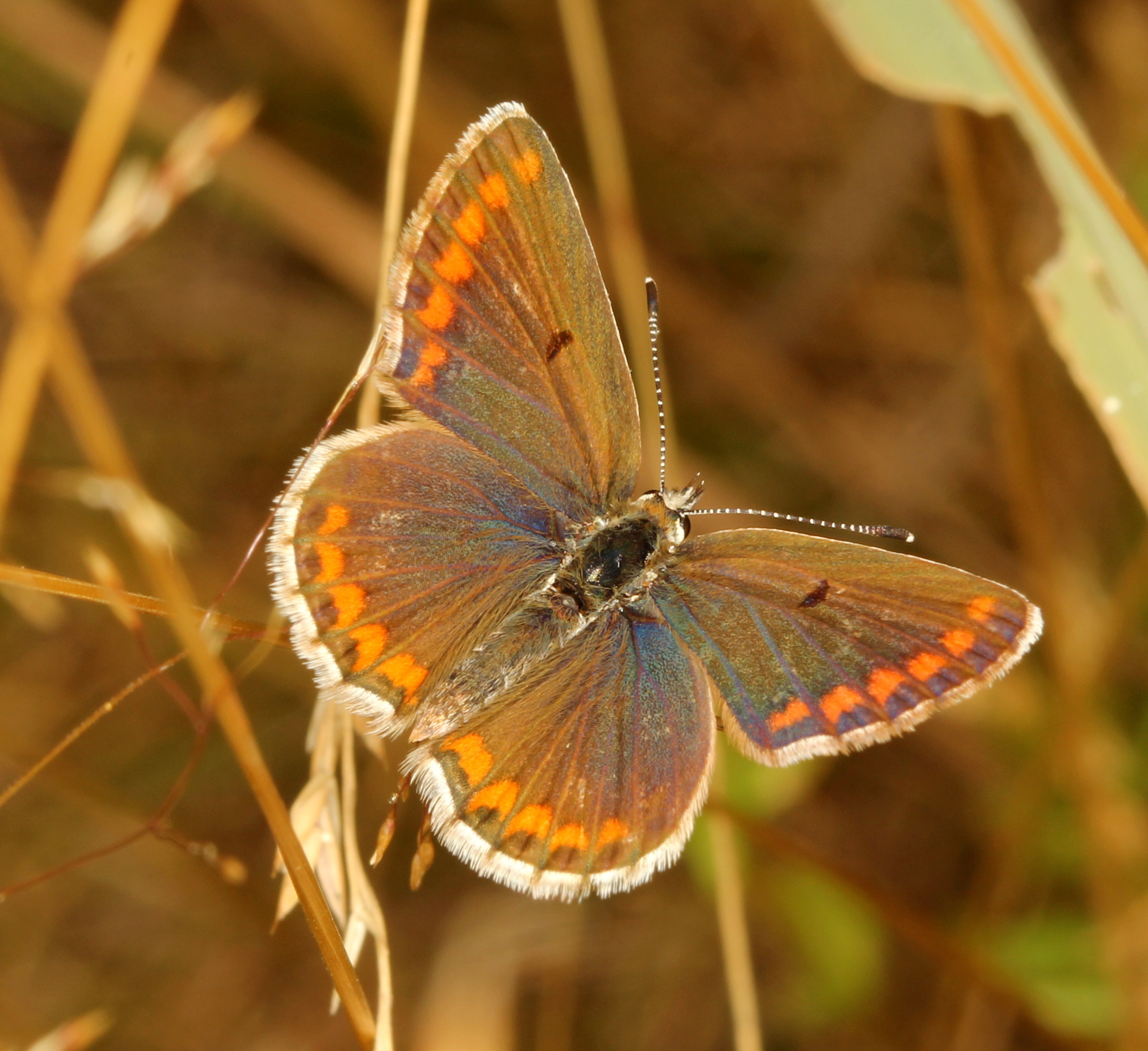 Kleiner Sonnenröschenbläuling (Aricia agestis (Denis & Schiffermüller, 1775)),Freital/Wurgwitz,Hammerteich,Wegrand auf Klee,Sep.2019