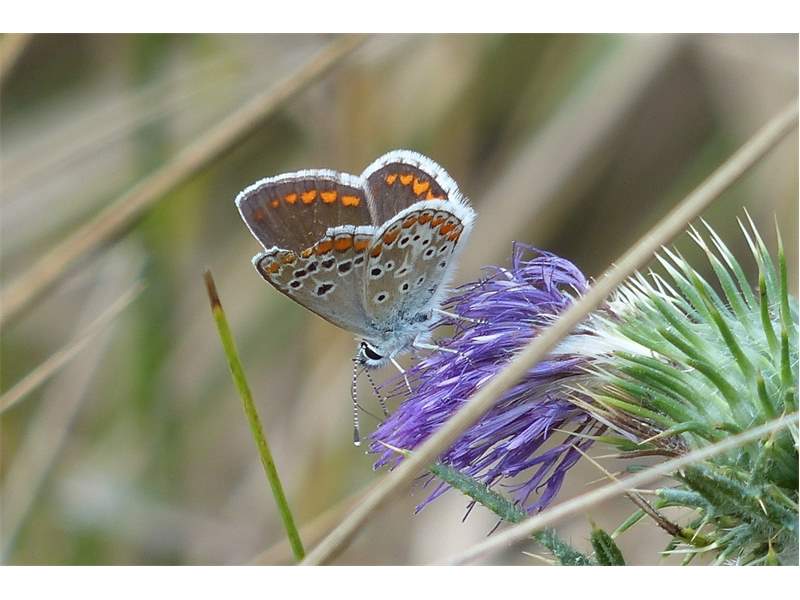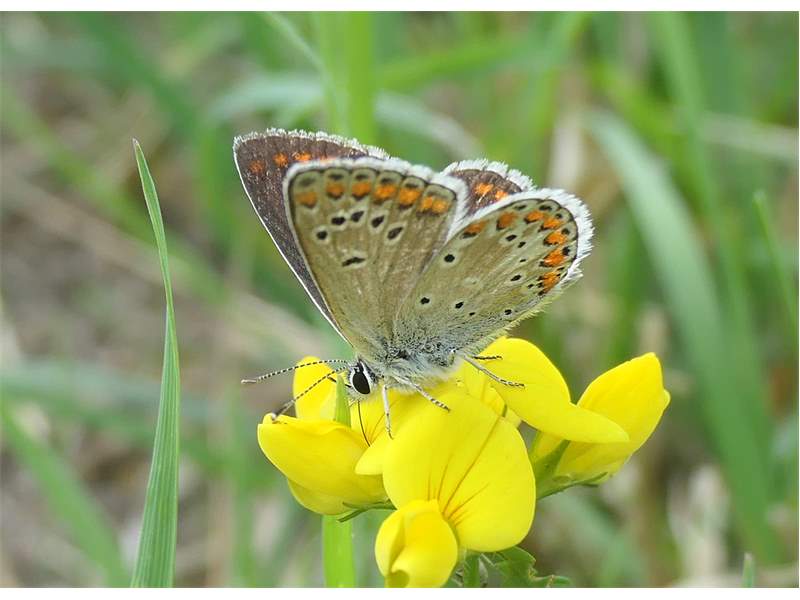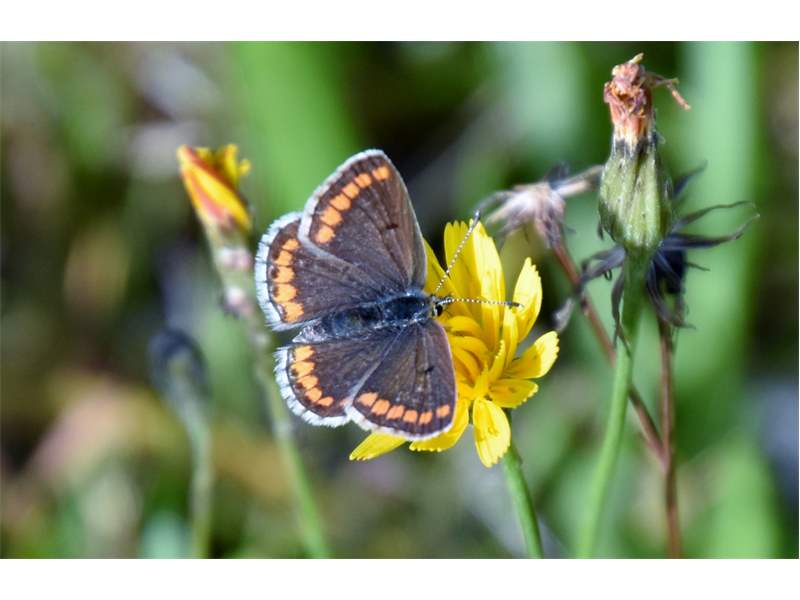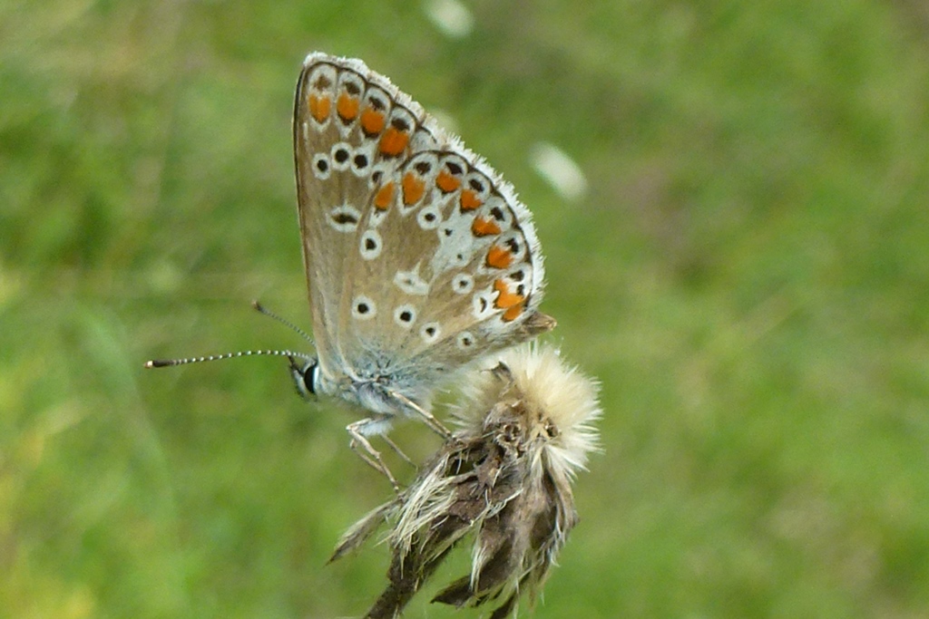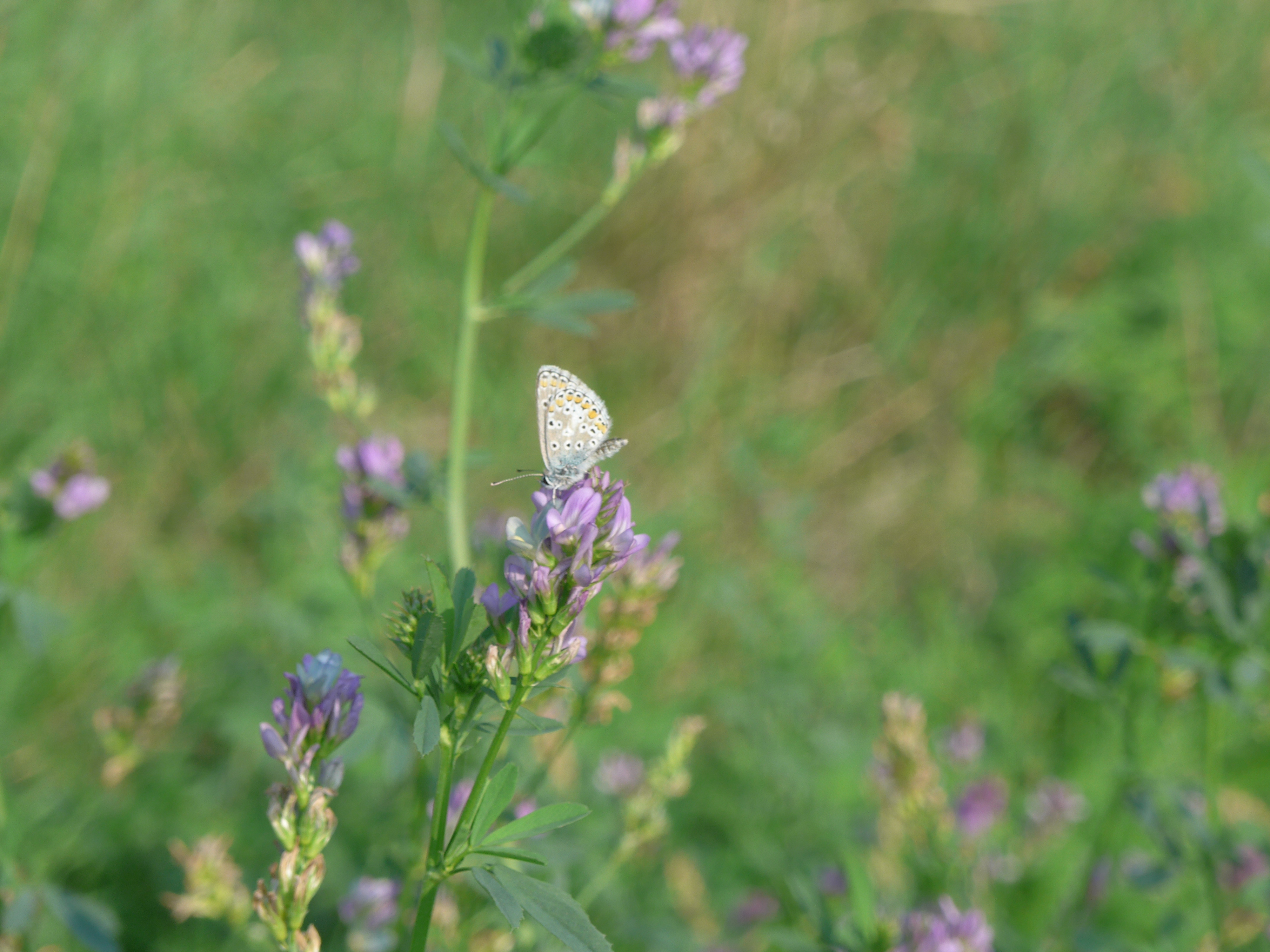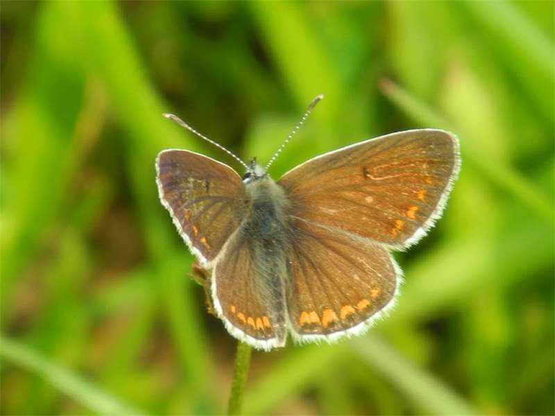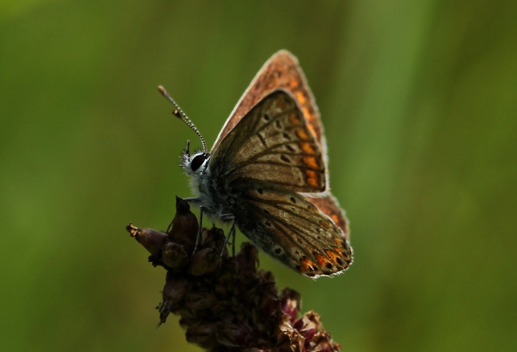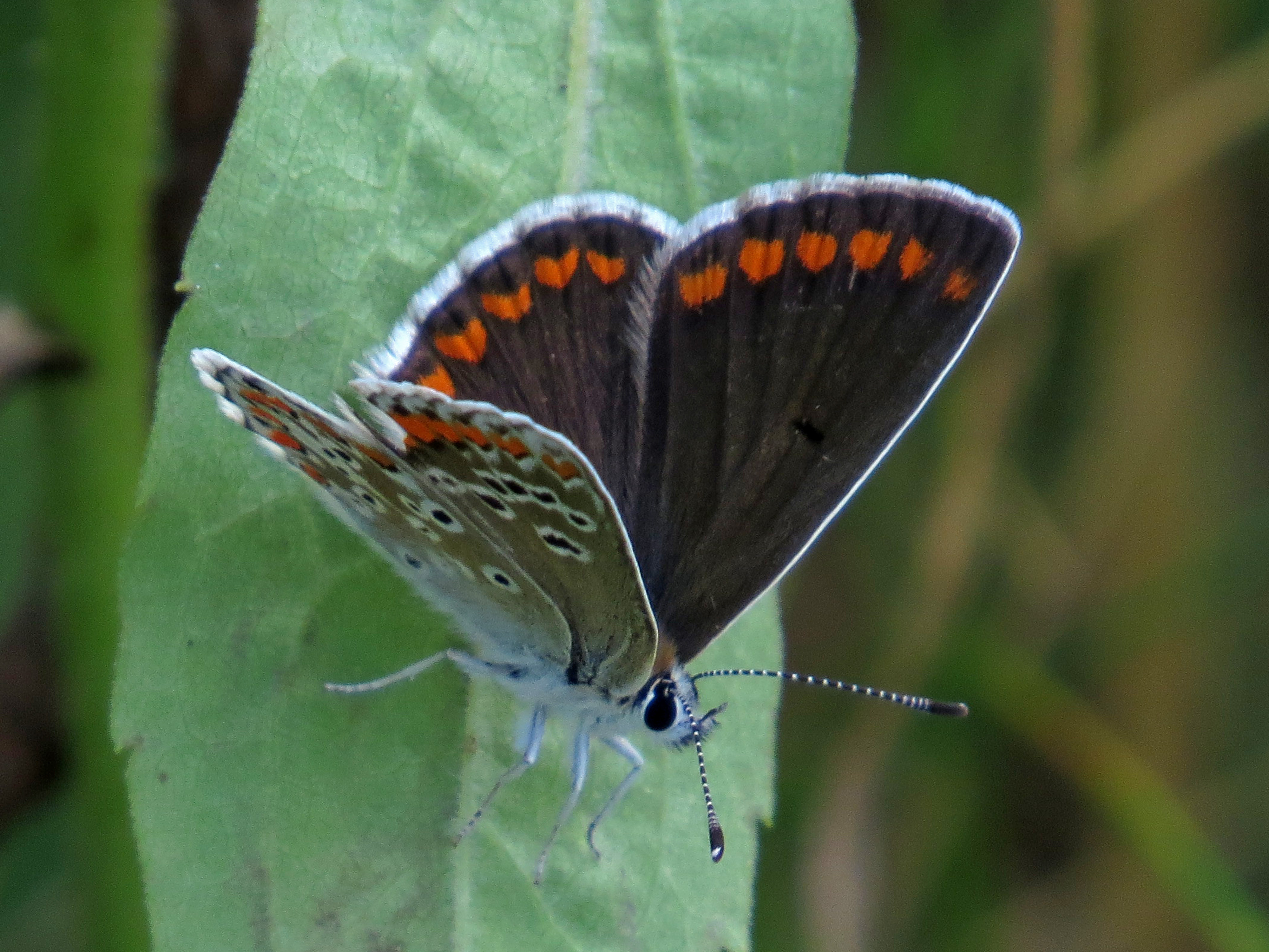 Kleiner Sonnenröschenbläuling (Aricia agestis (Denis & Schiffermüller, 1775)),Freital/Wurgwitz,Hammerteich,Wegrand auf Klee,Sep.2019