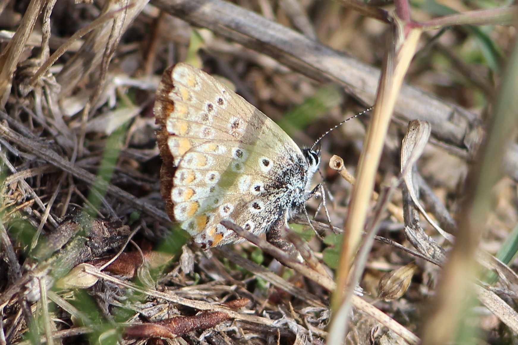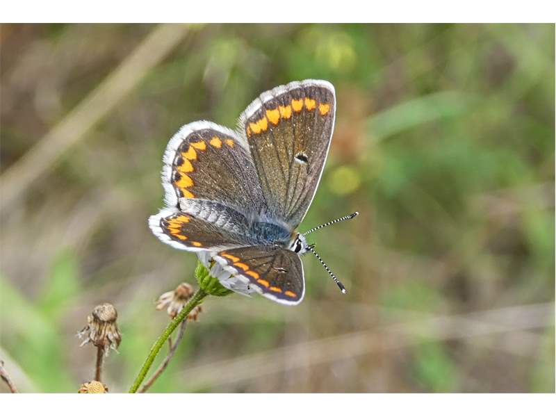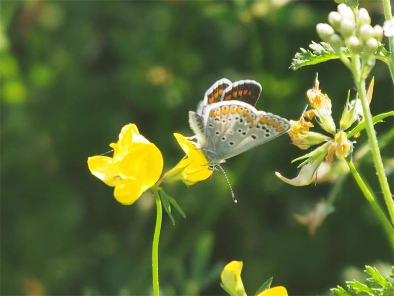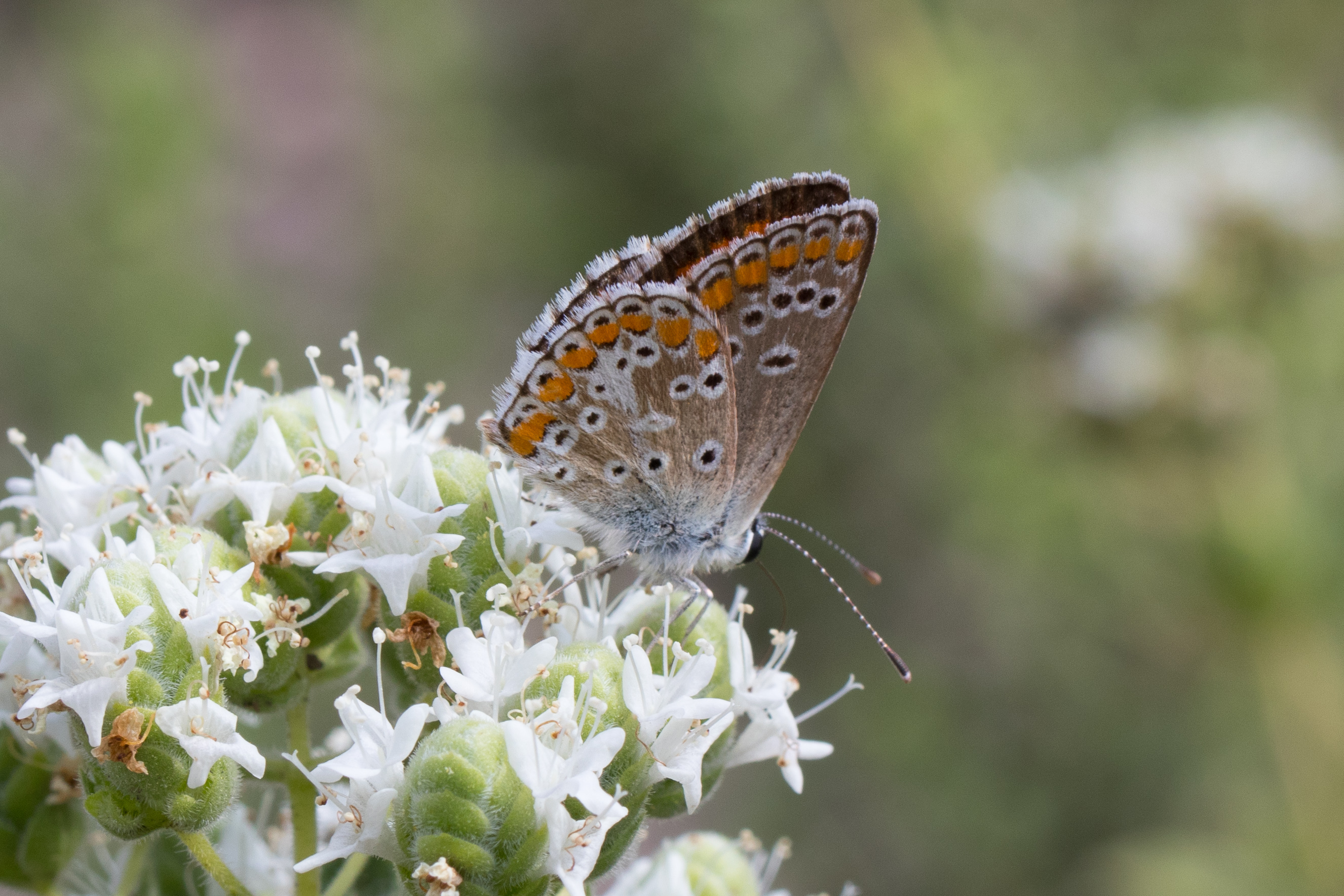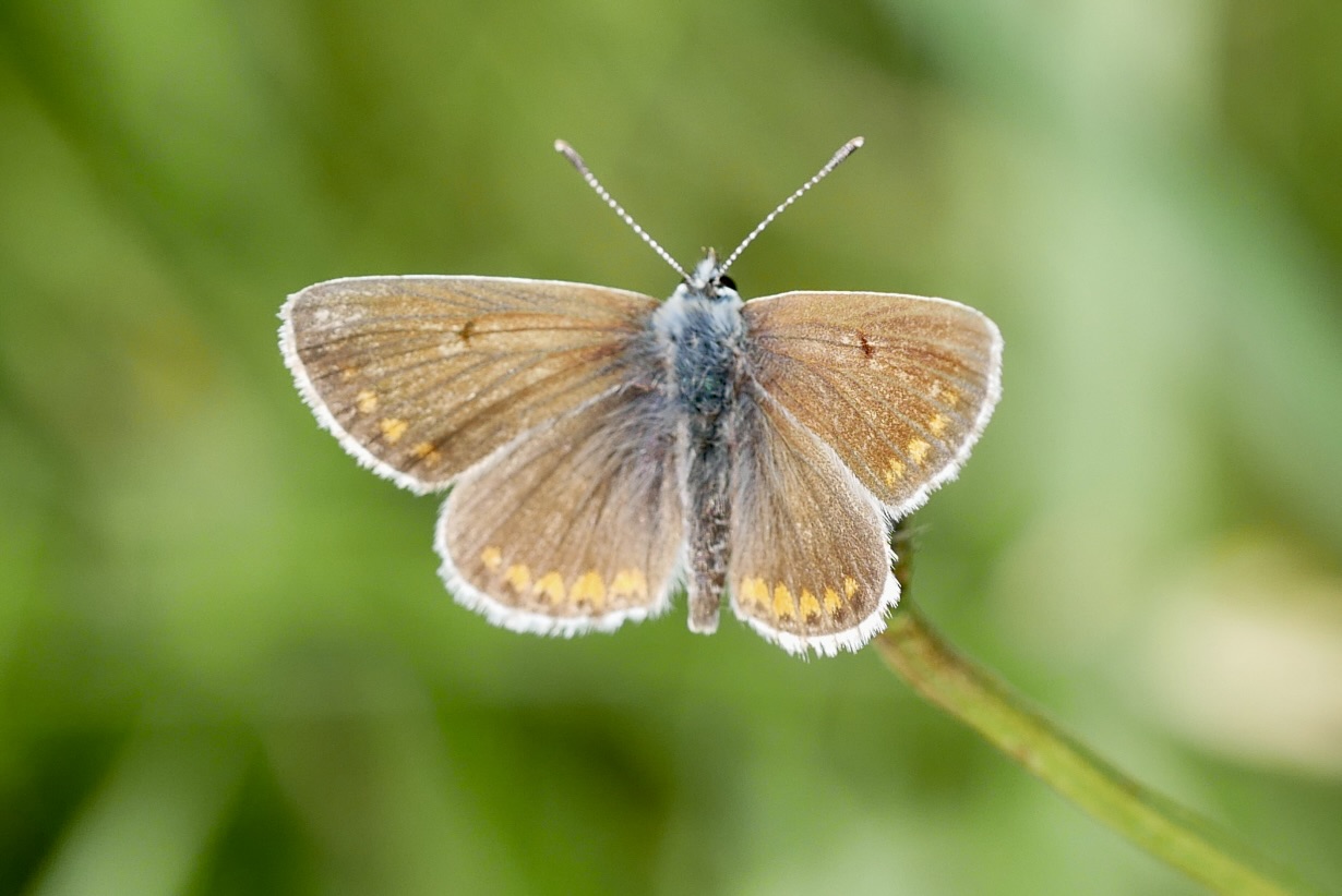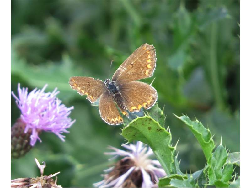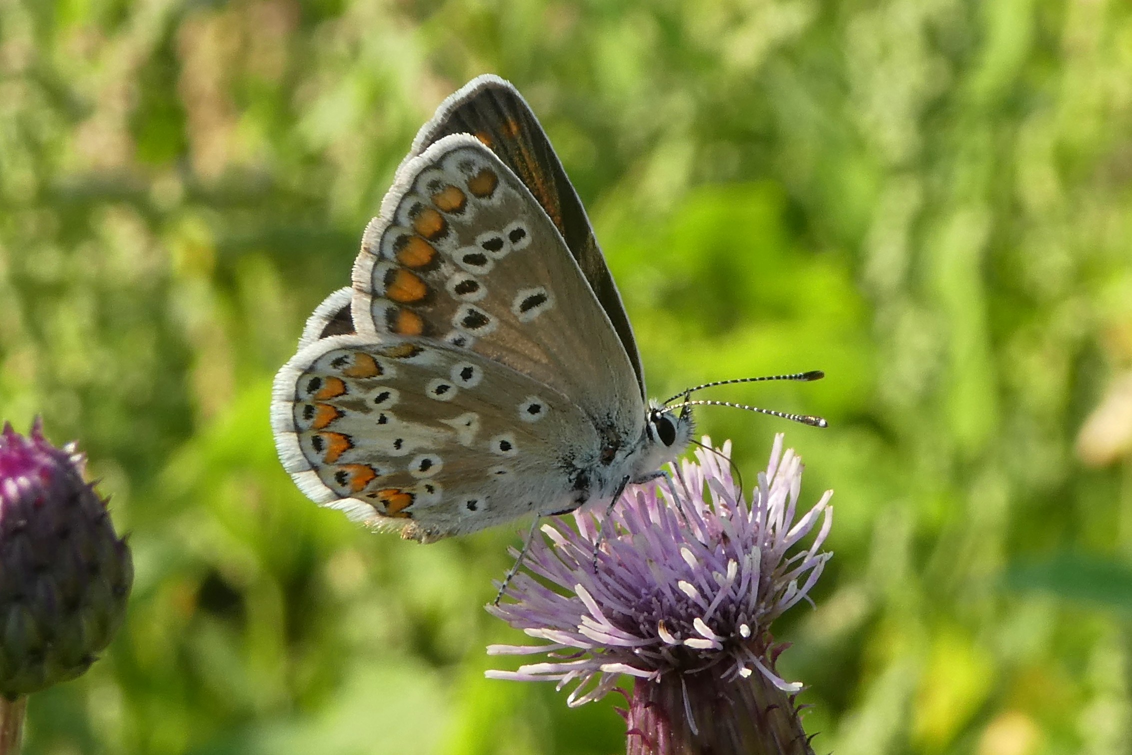 Kleiner Sonnenröschenbläuling (Aricia agestis (Denis & Schiffermüller, 1775)),Freital/Wurgwitz,Hammerteich,Wegrand auf Klee,Sep.2019