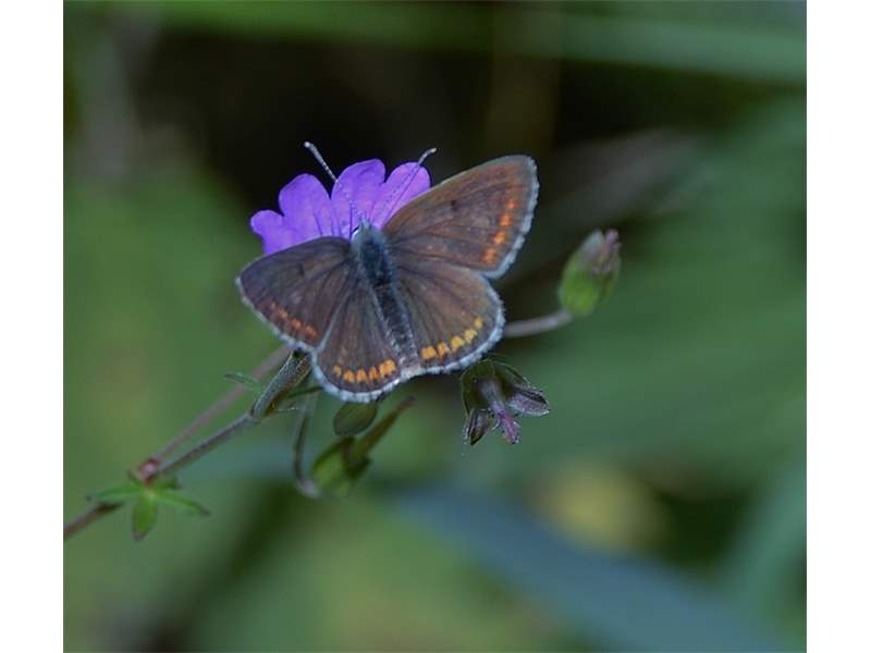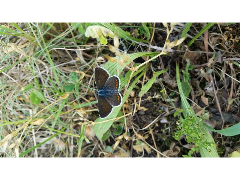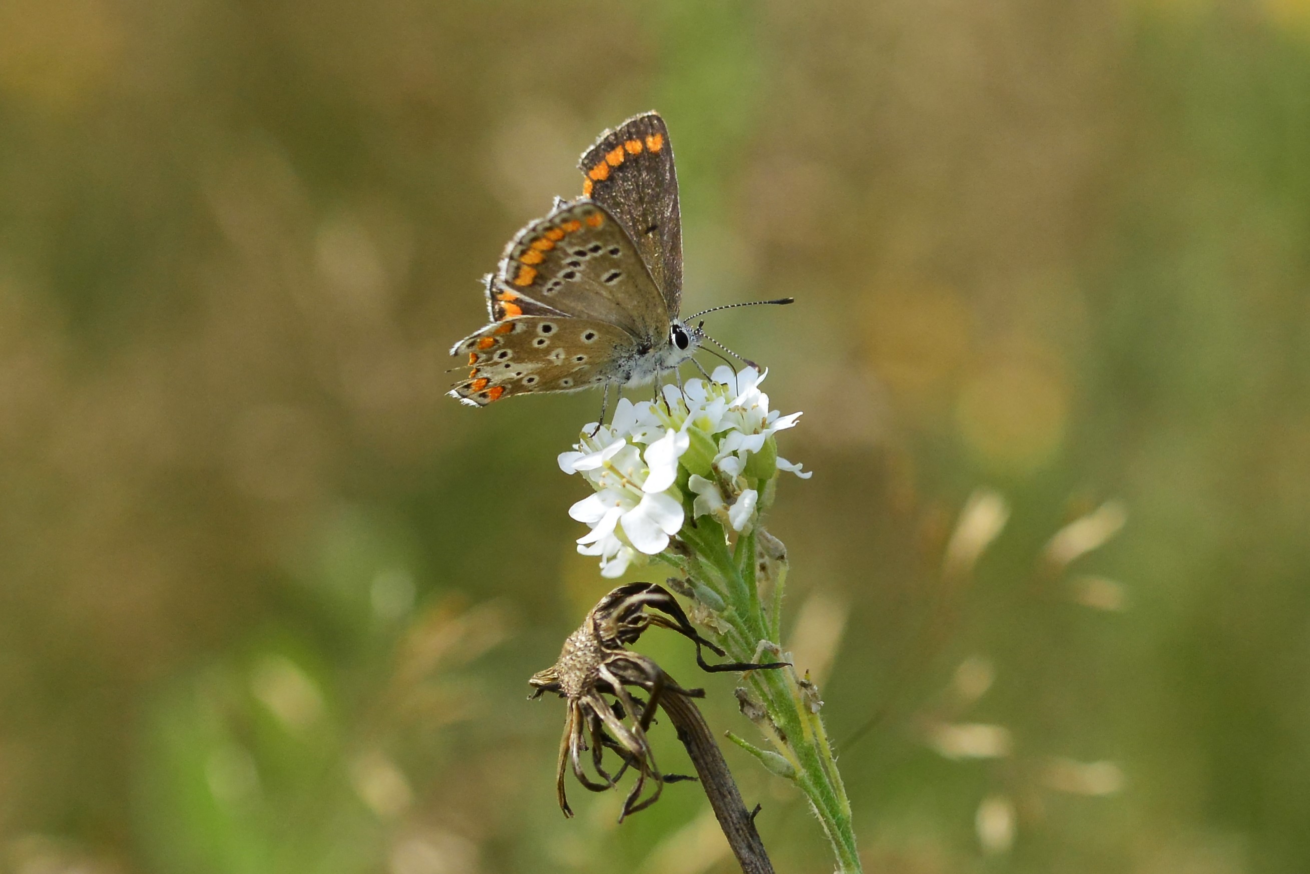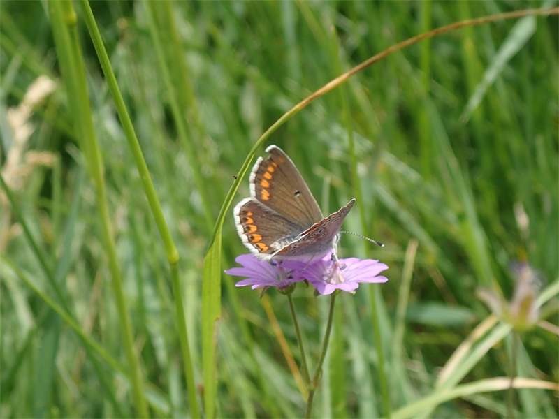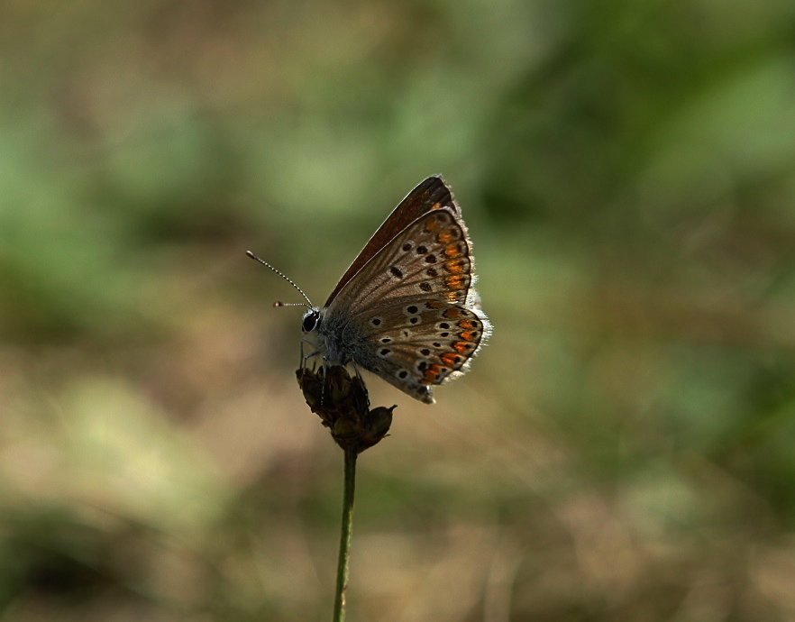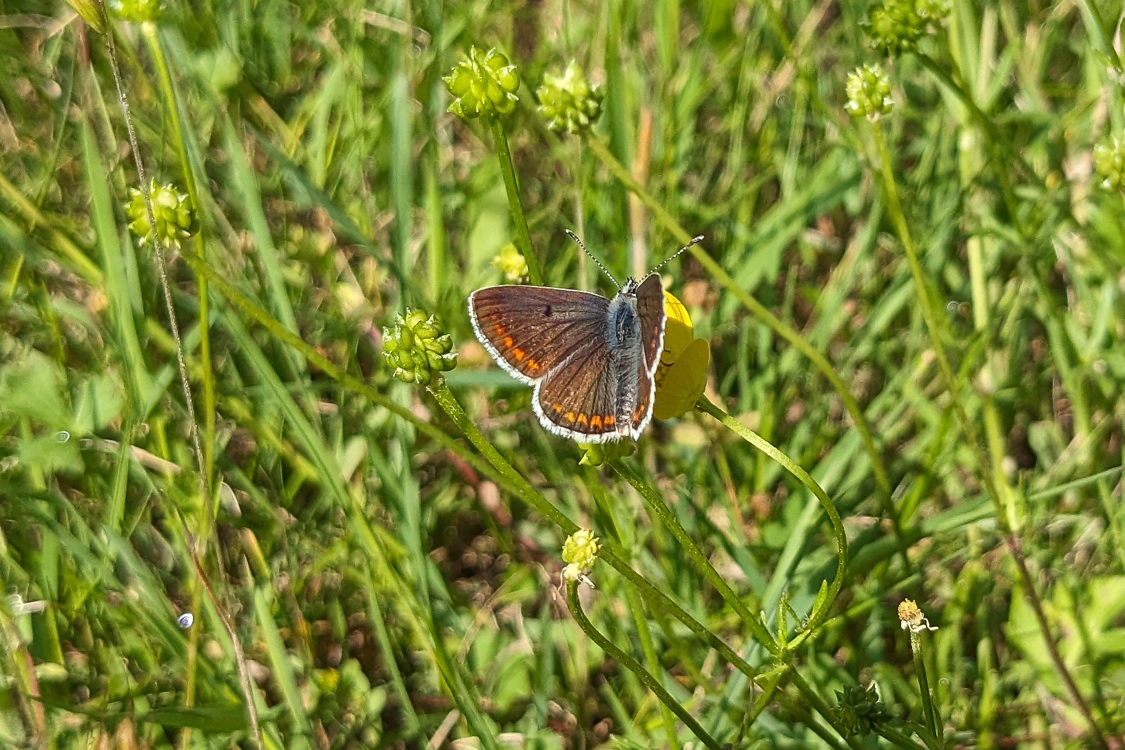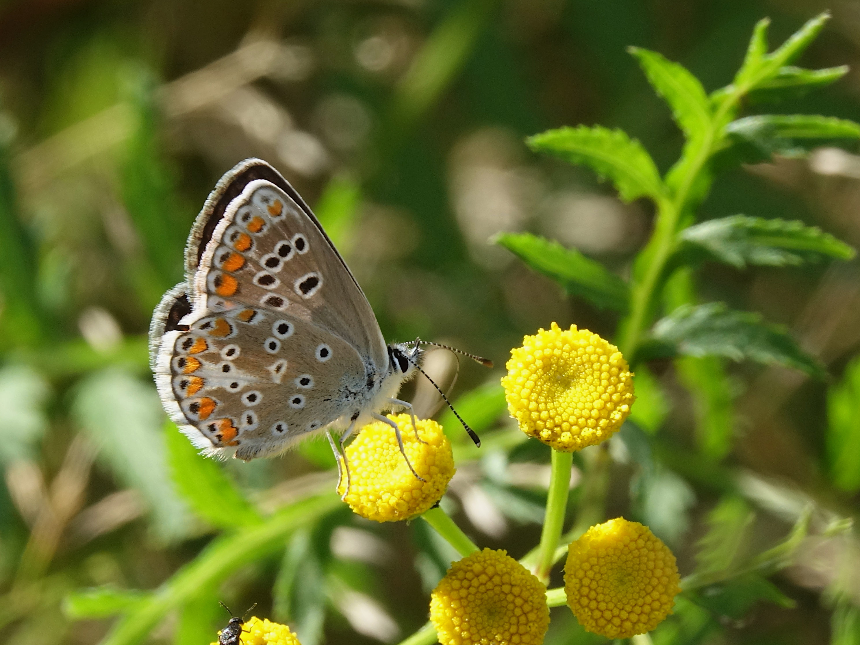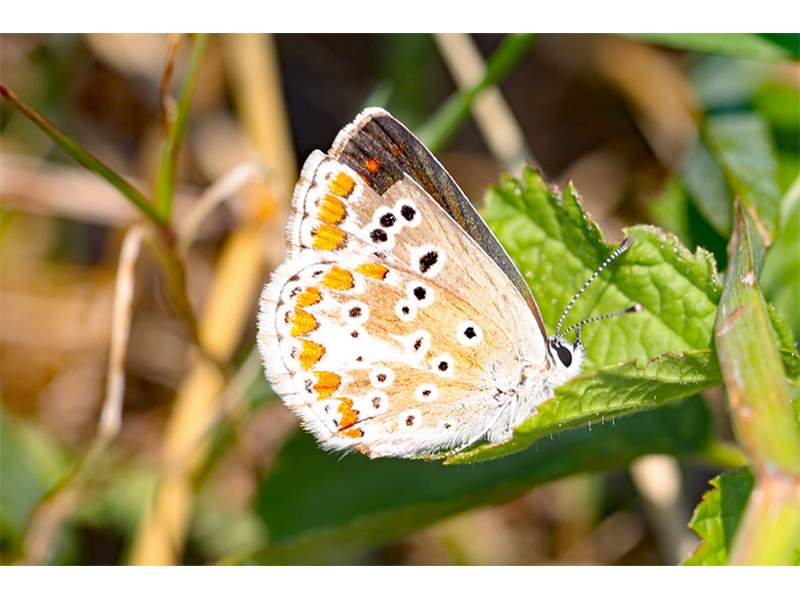 Kleiner Sonnenröschenbläuling (Aricia agestis (Denis & Schiffermüller, 1775)),Freital/Wurgwitz,Hammerteich,Wegrand auf Klee,Sep.2019
