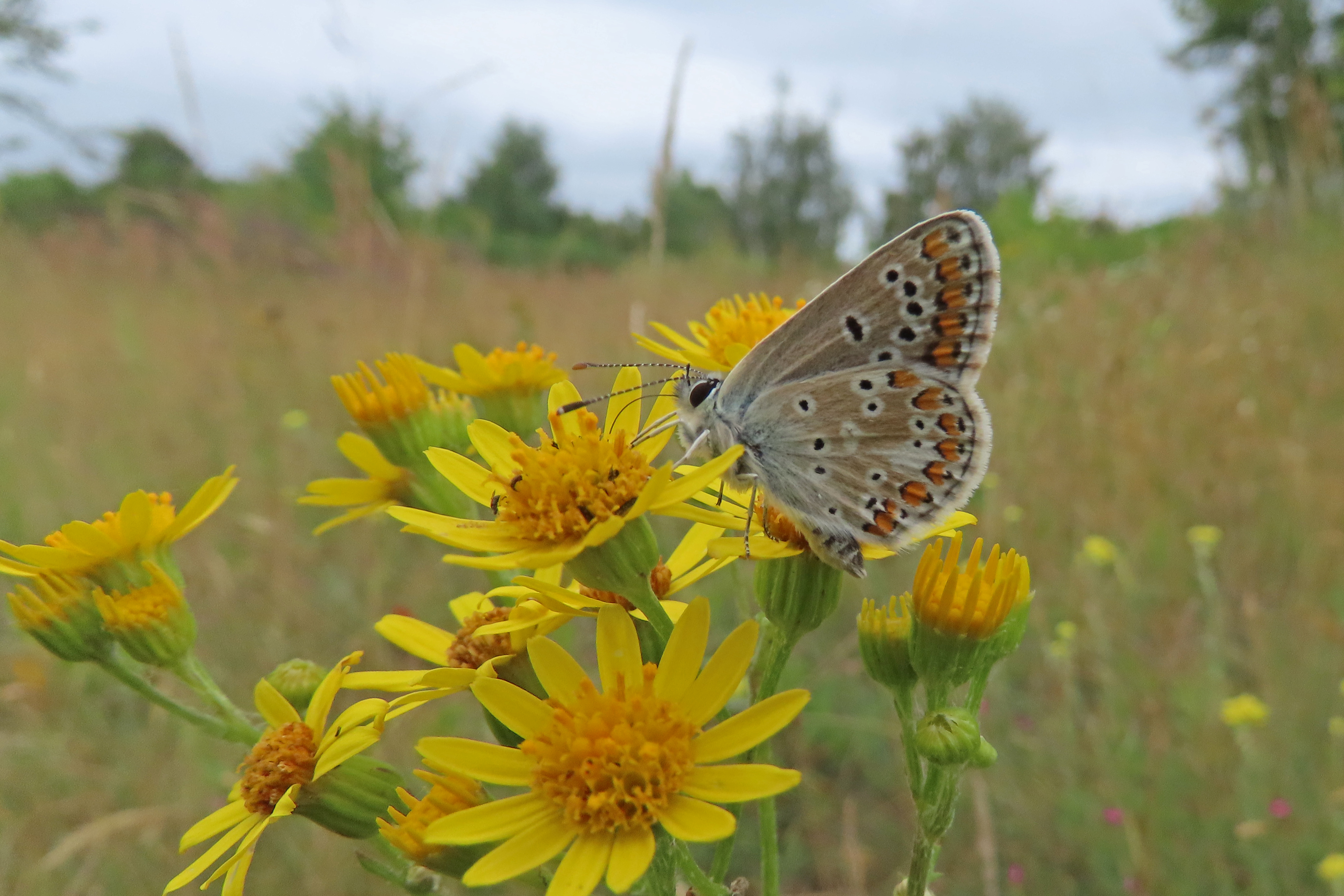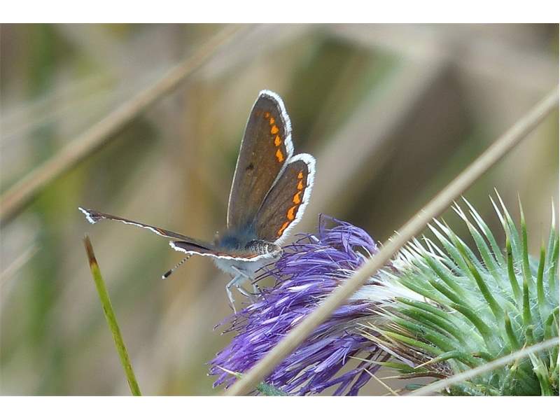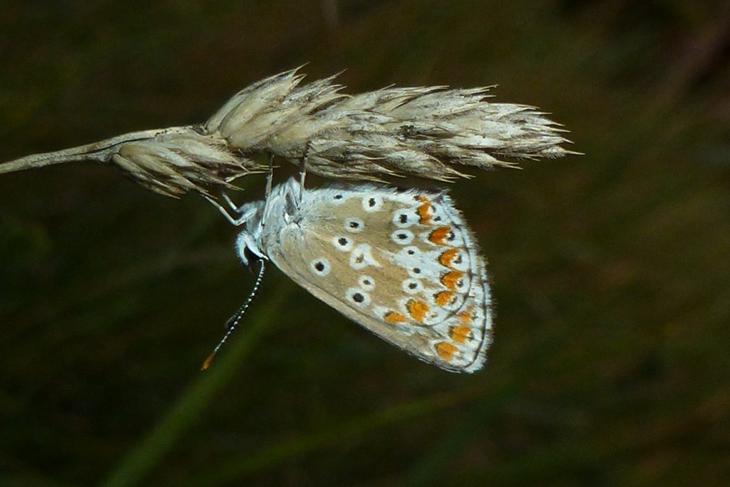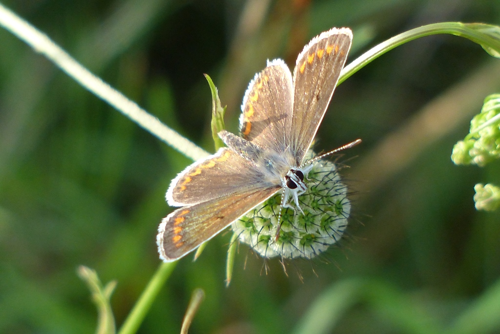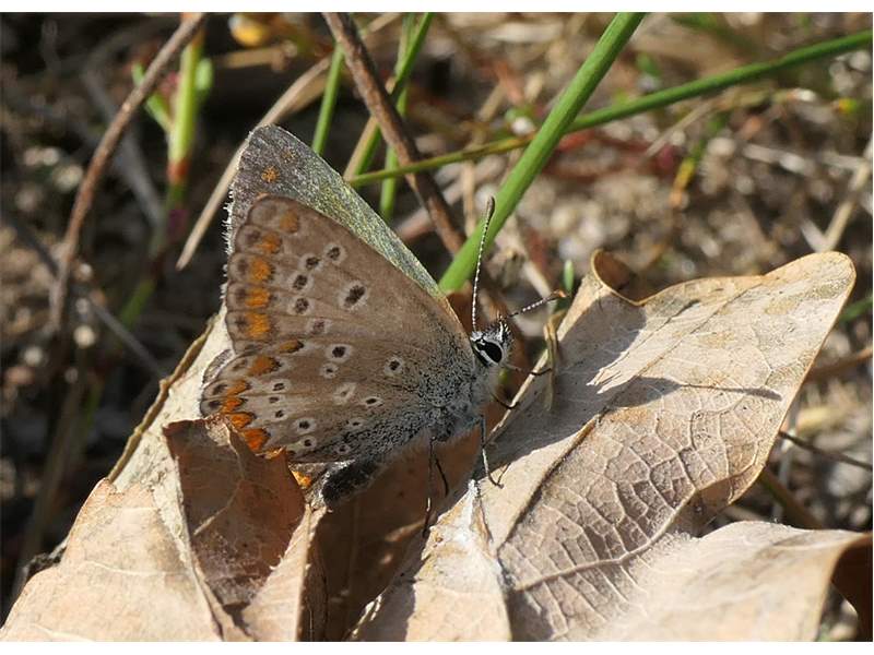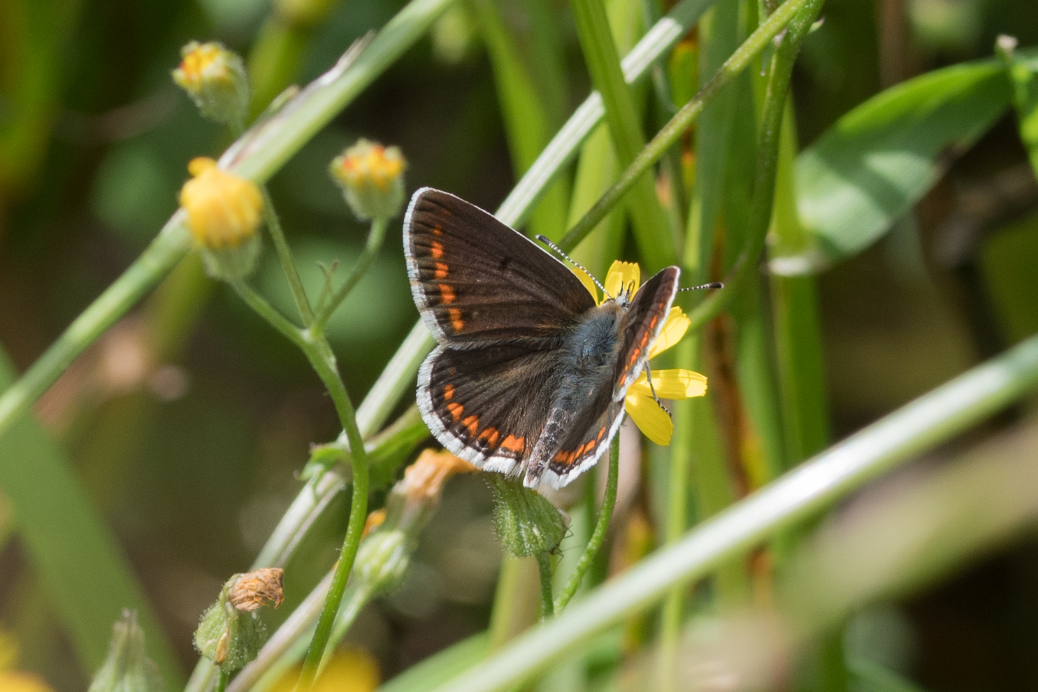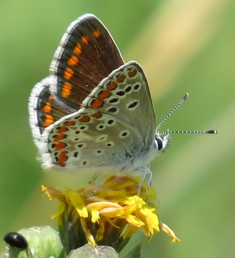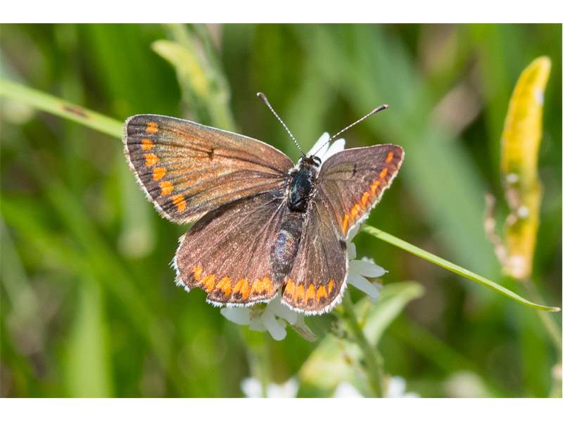 Kleiner Sonnenröschenbläuling (Aricia agestis (Denis & Schiffermüller, 1775)),Freital/Wurgwitz,Hammerteich,Wegrand auf Klee,Sep.2019