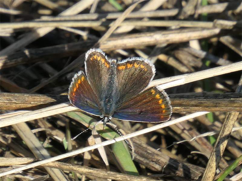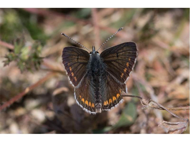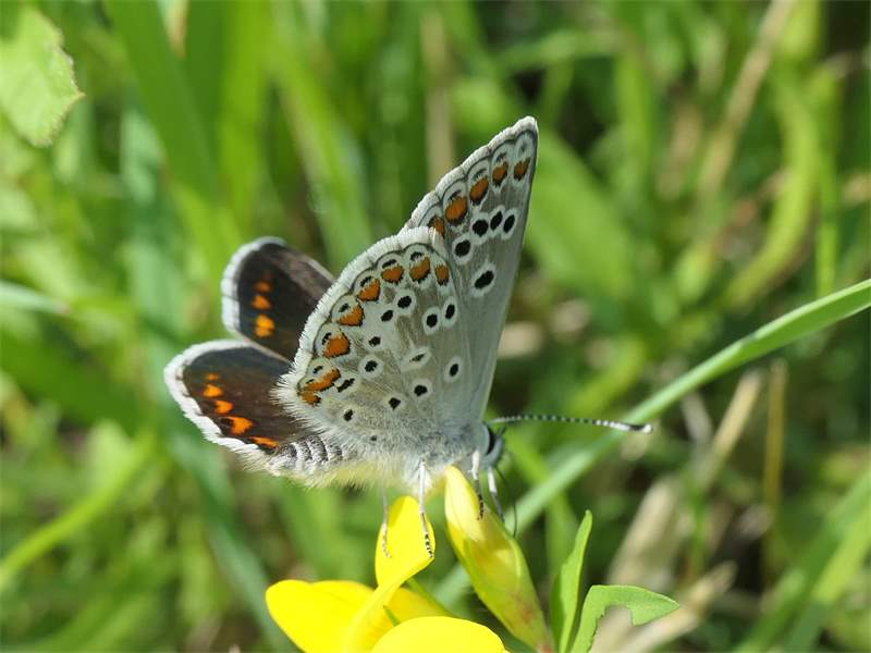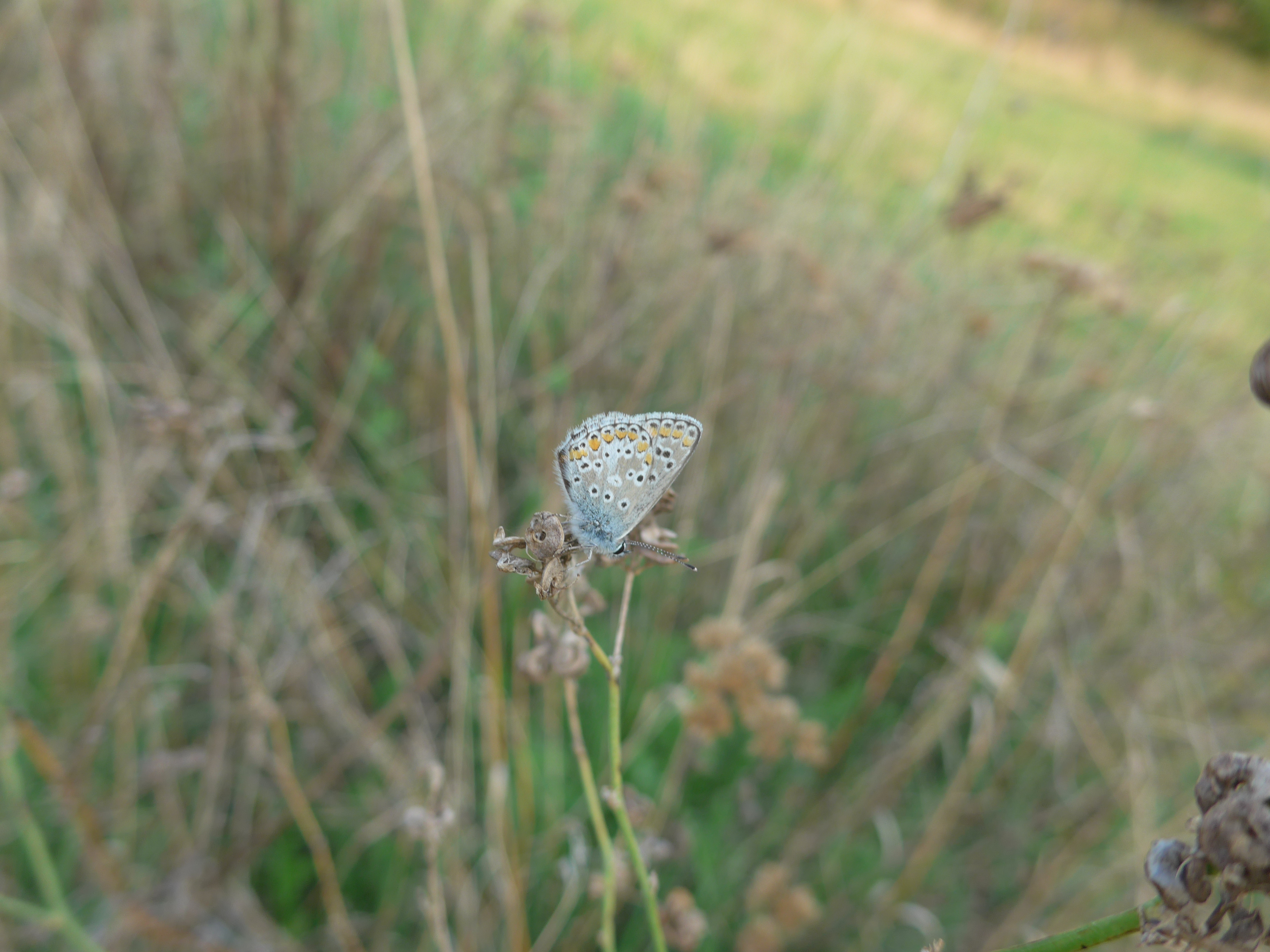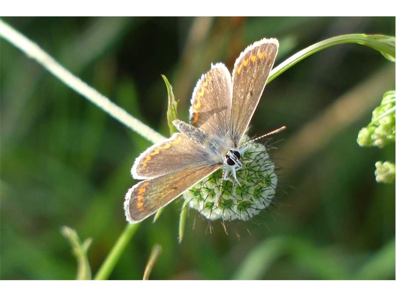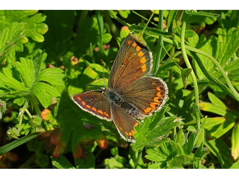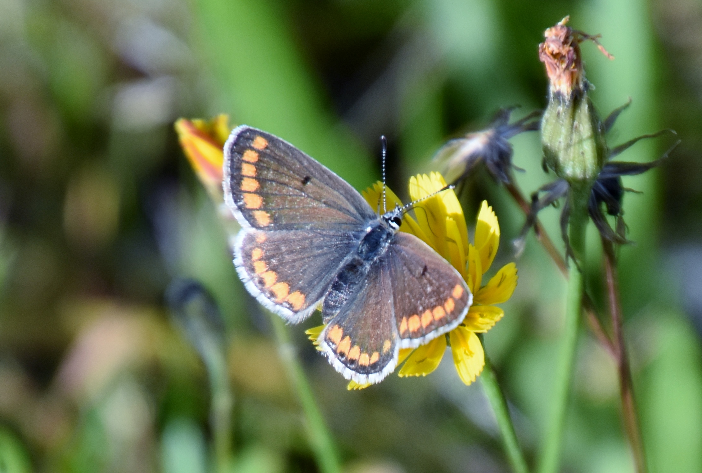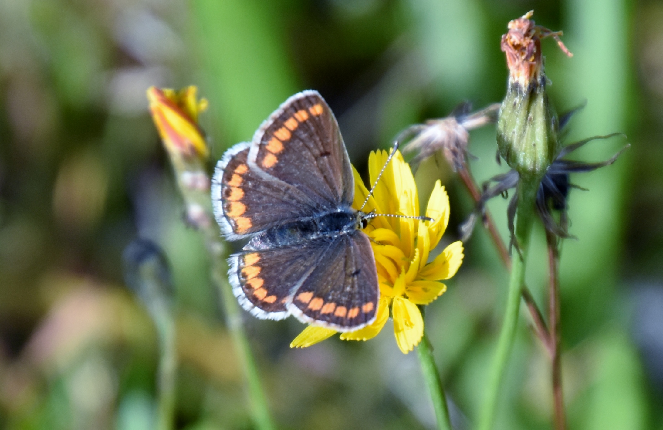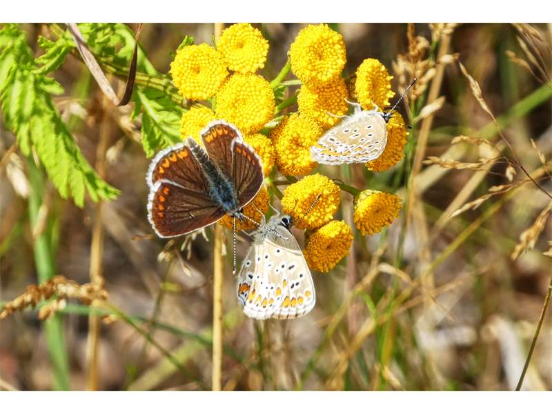 Kleiner Sonnenröschenbläuling (Aricia agestis (Denis & Schiffermüller, 1775)),Freital/Wurgwitz,Hammerteich,Wegrand auf Klee,Sep.2019