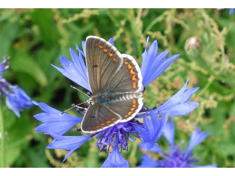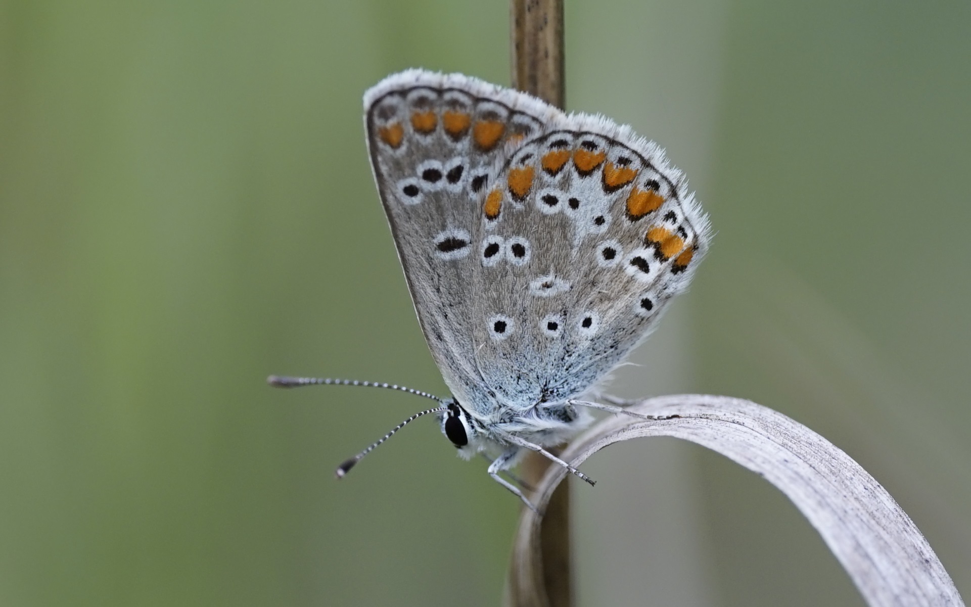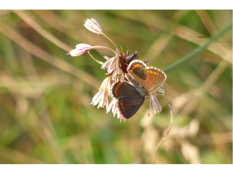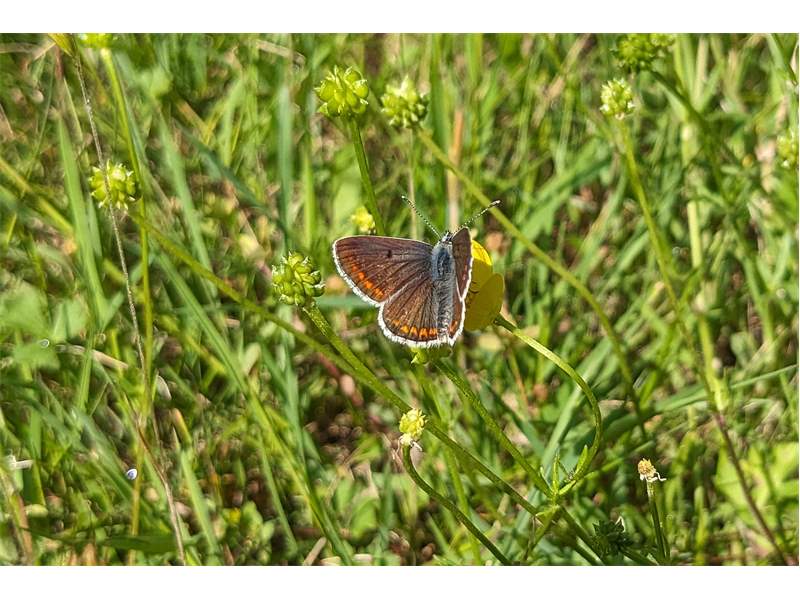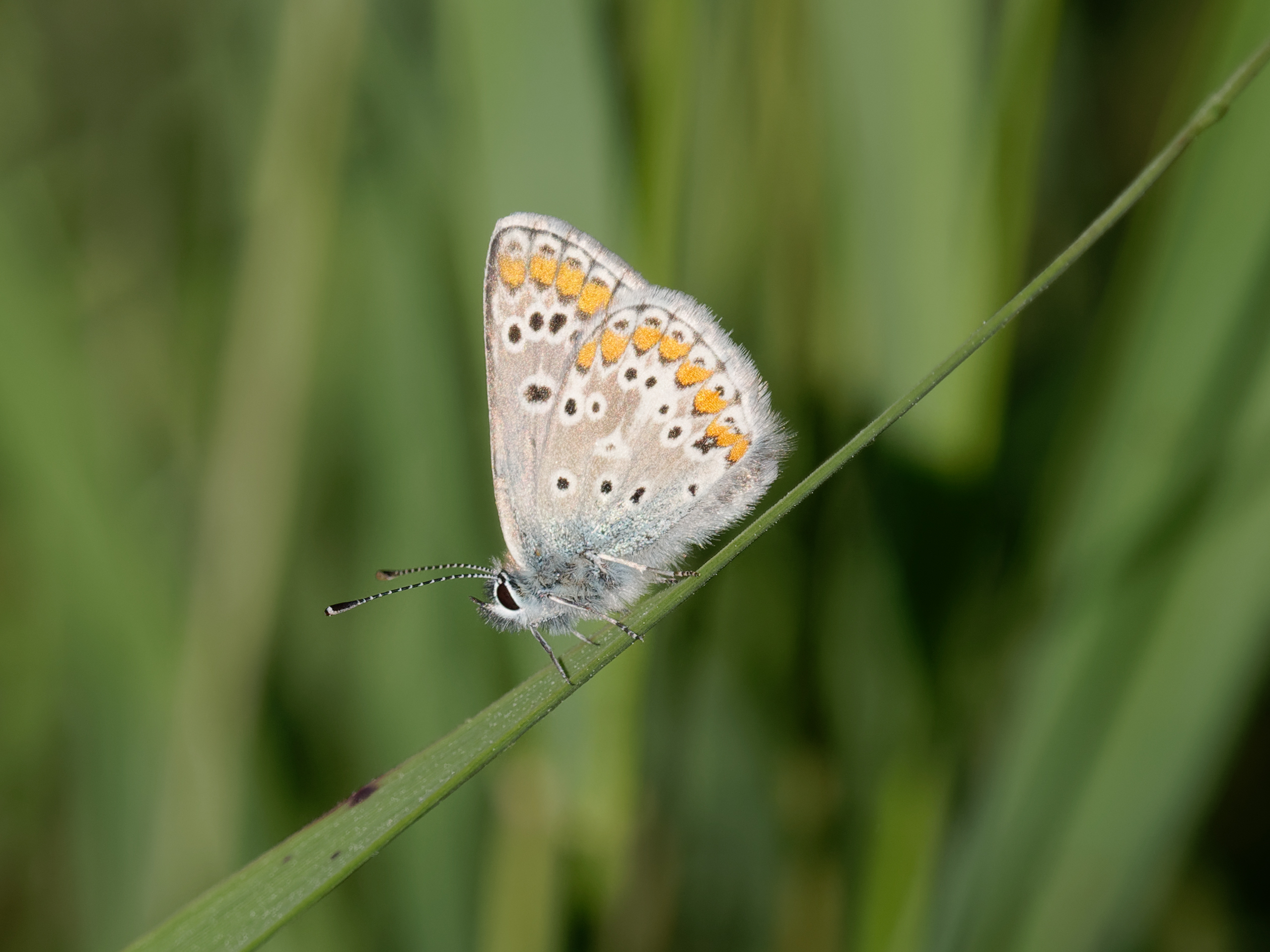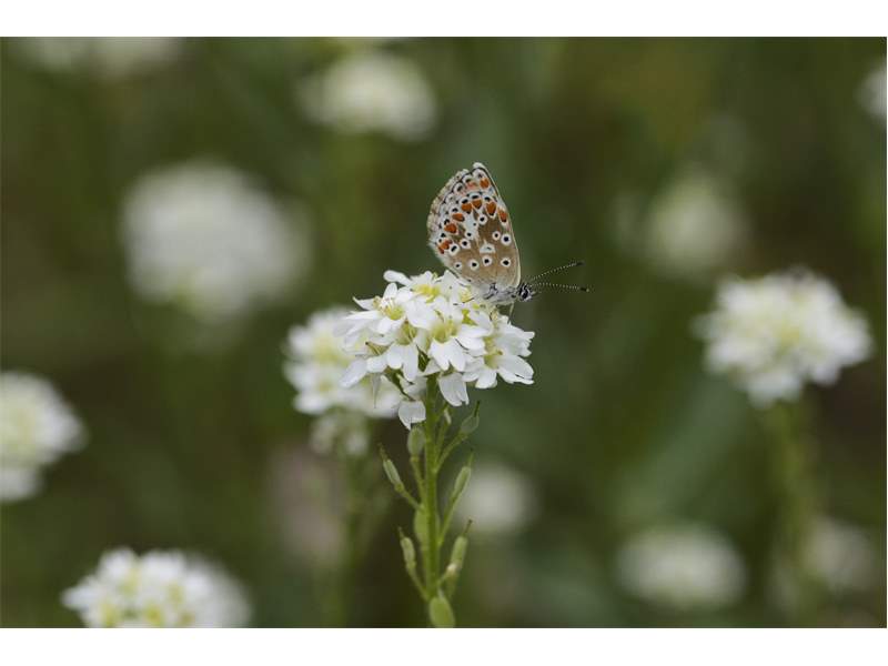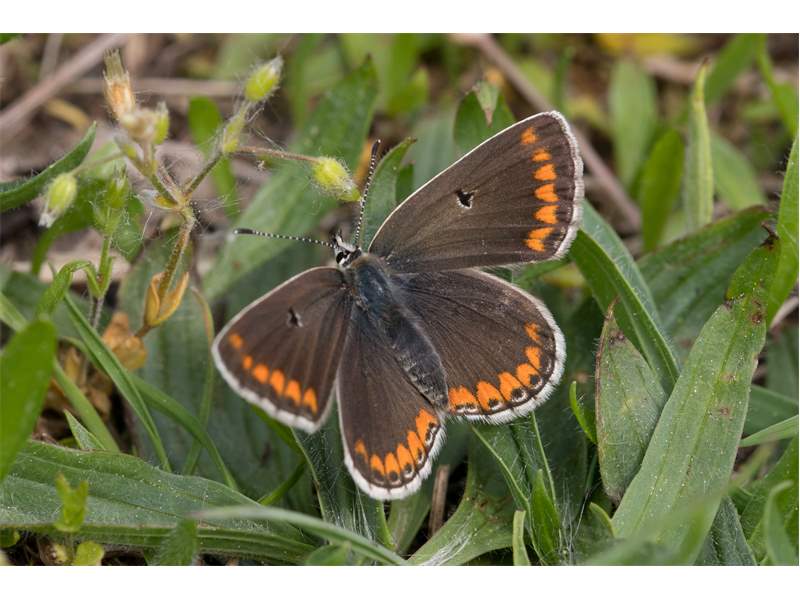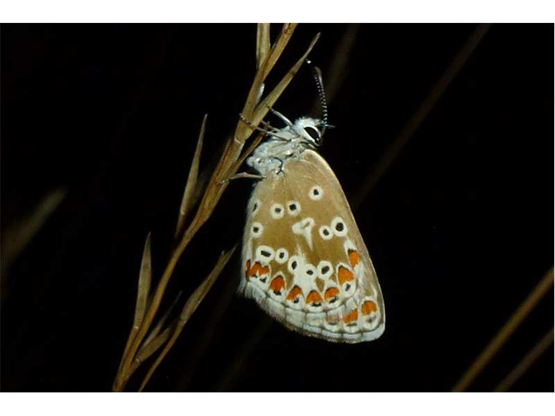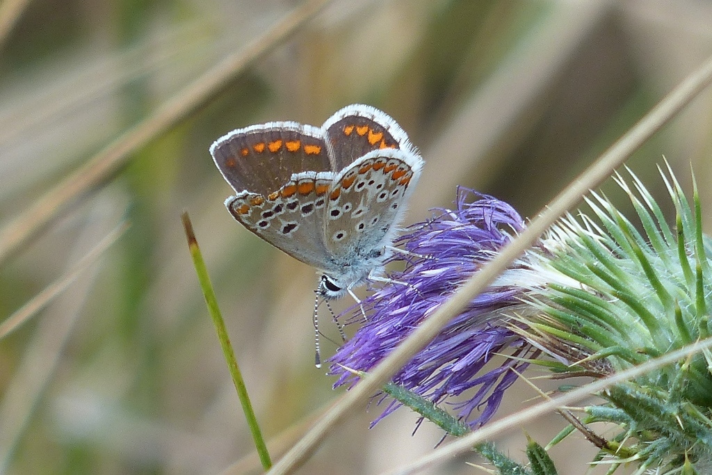 Kleiner Sonnenröschenbläuling (Aricia agestis (Denis & Schiffermüller, 1775)),Freital/Wurgwitz,Hammerteich,Wegrand auf Klee,Sep.2019