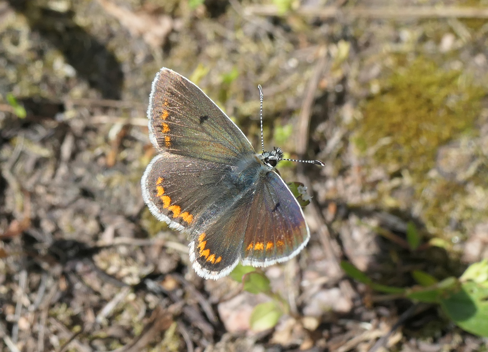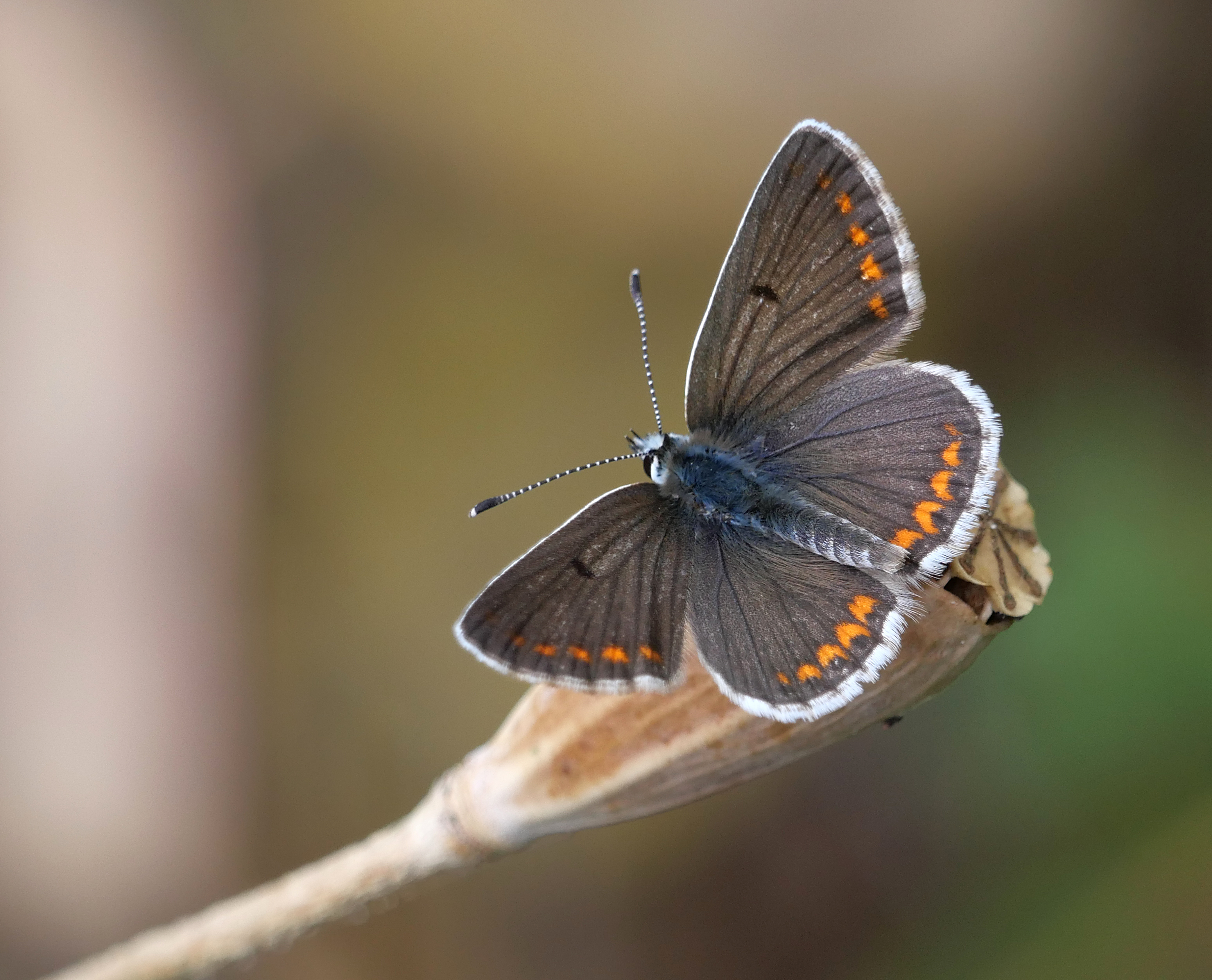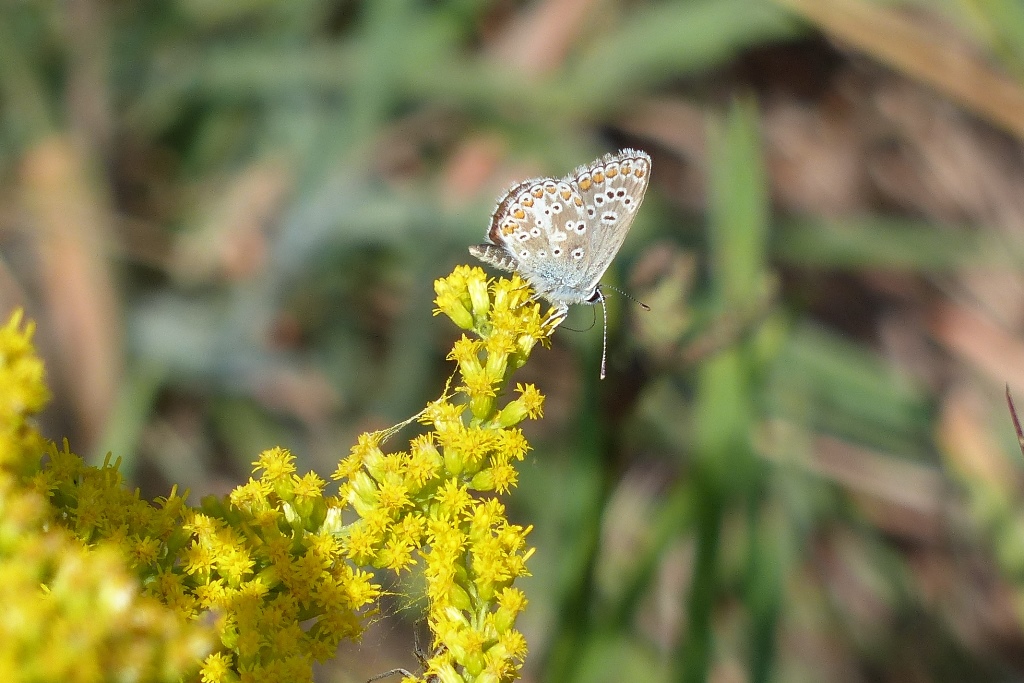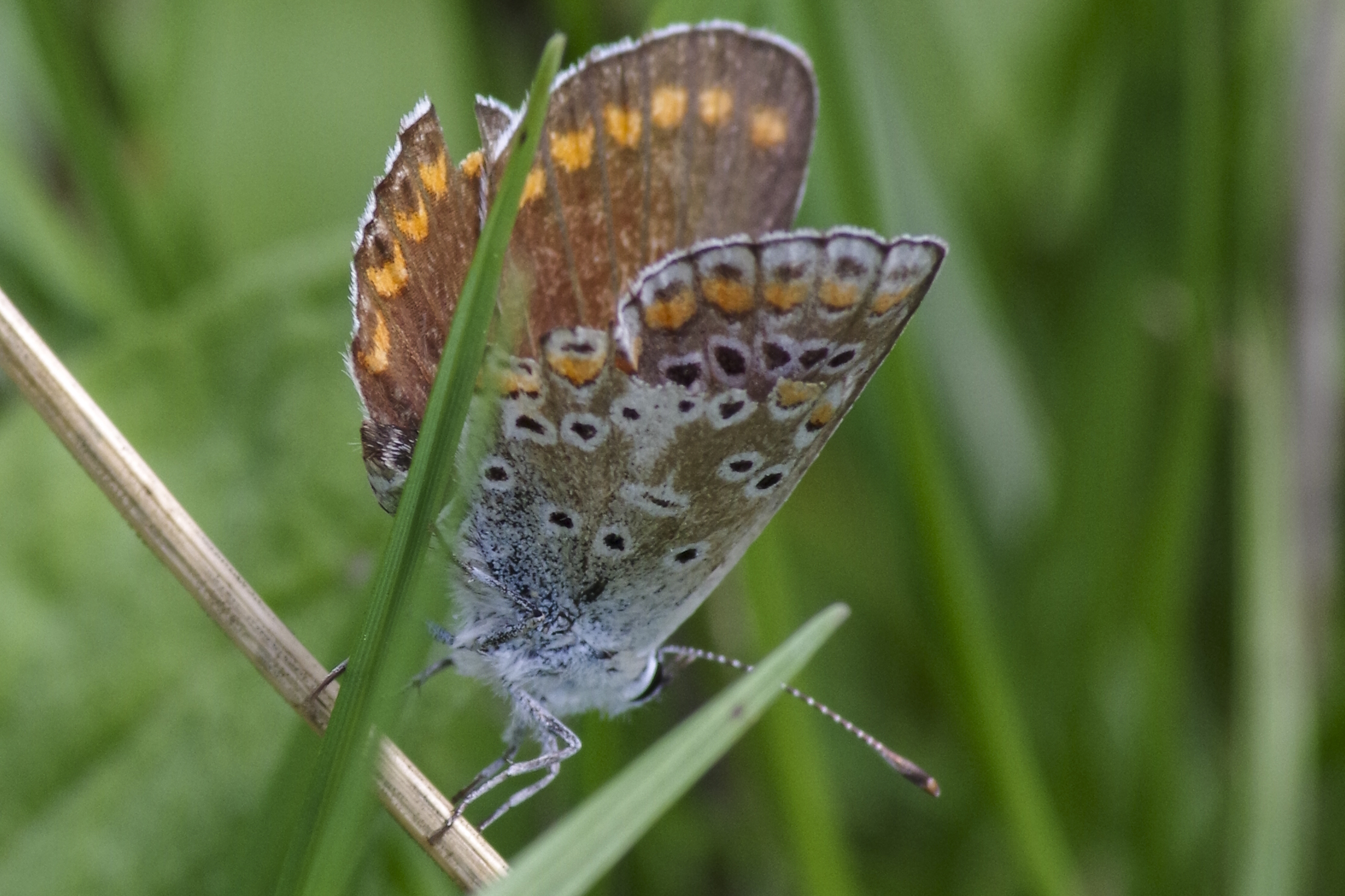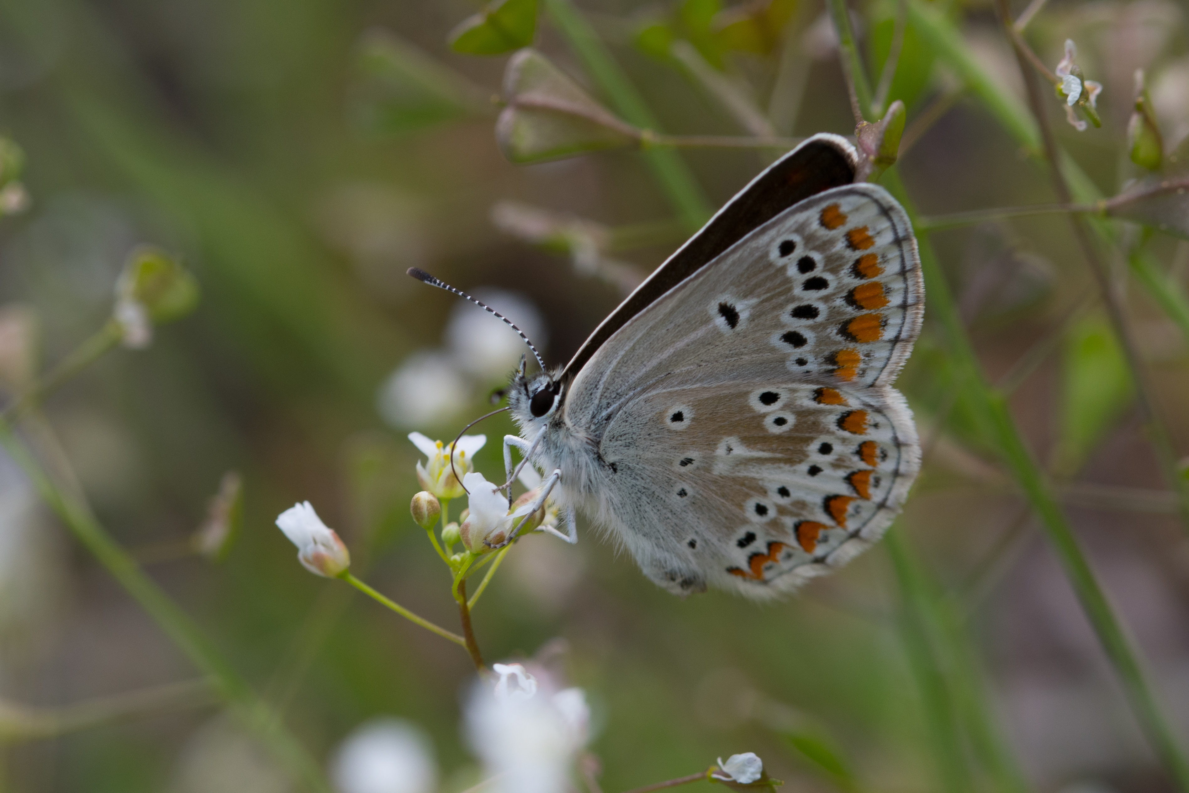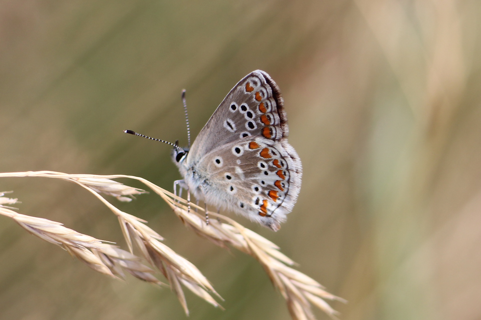 Kleiner Sonnenröschenbläuling (Aricia agestis (Denis & Schiffermüller, 1775)),Freital/Wurgwitz,Hammerteich,Wegrand auf Klee,Sep.2019