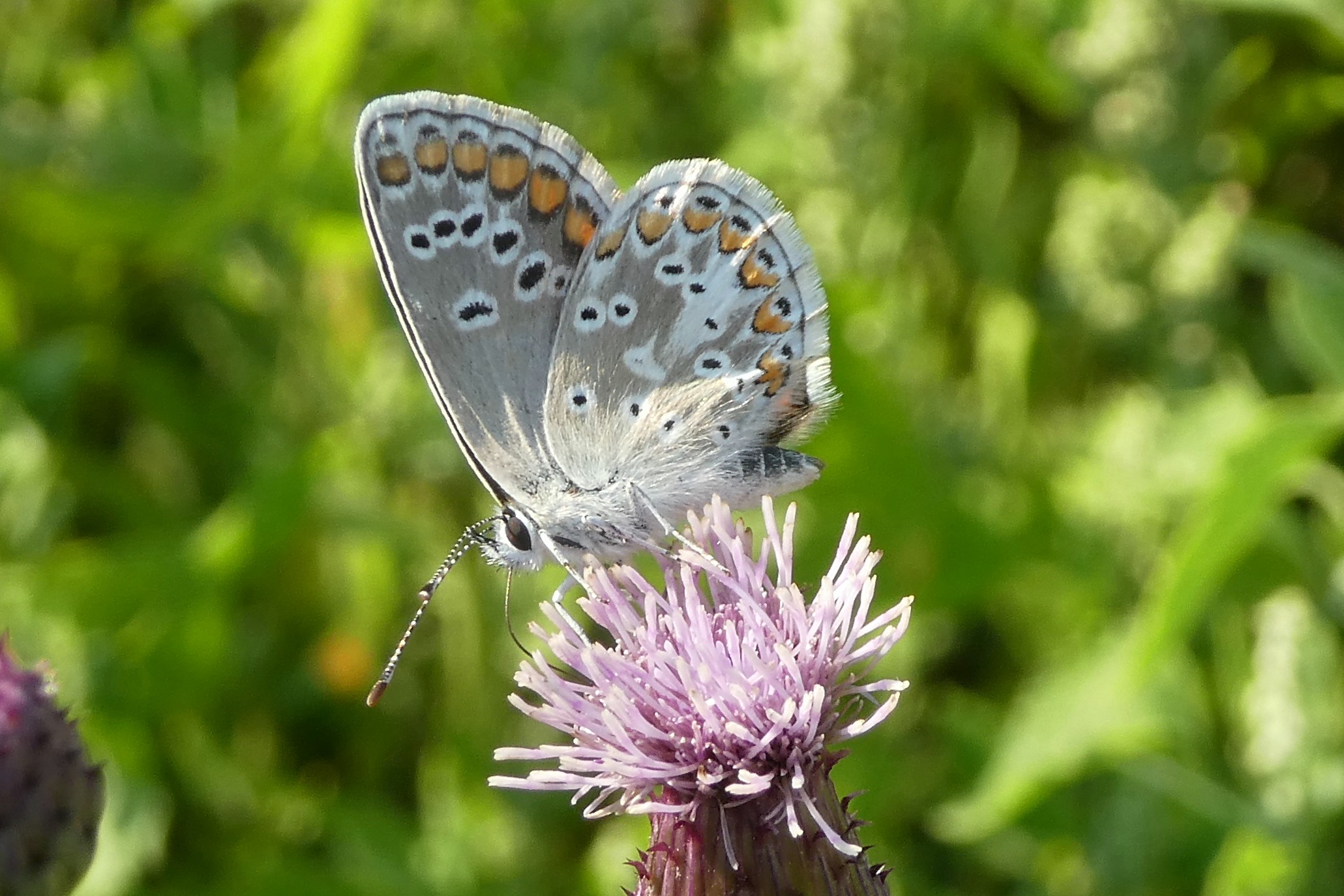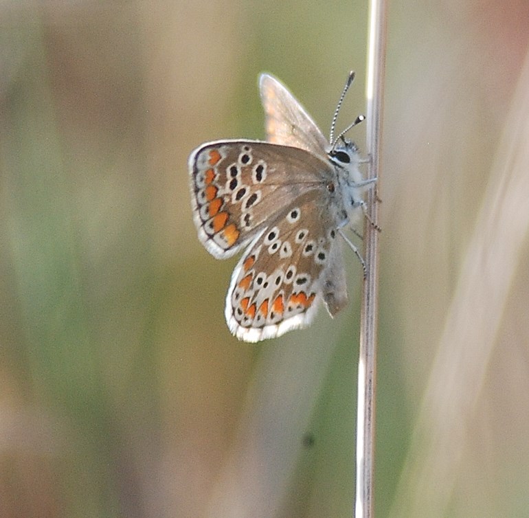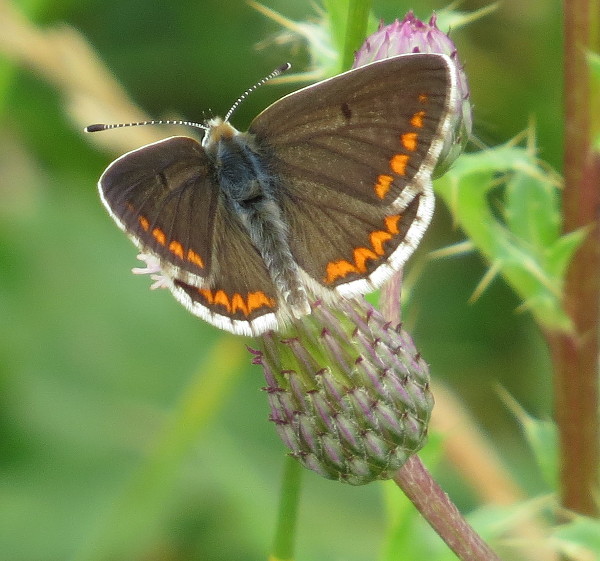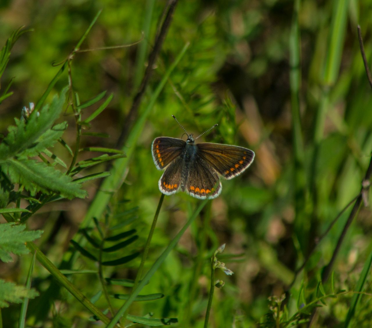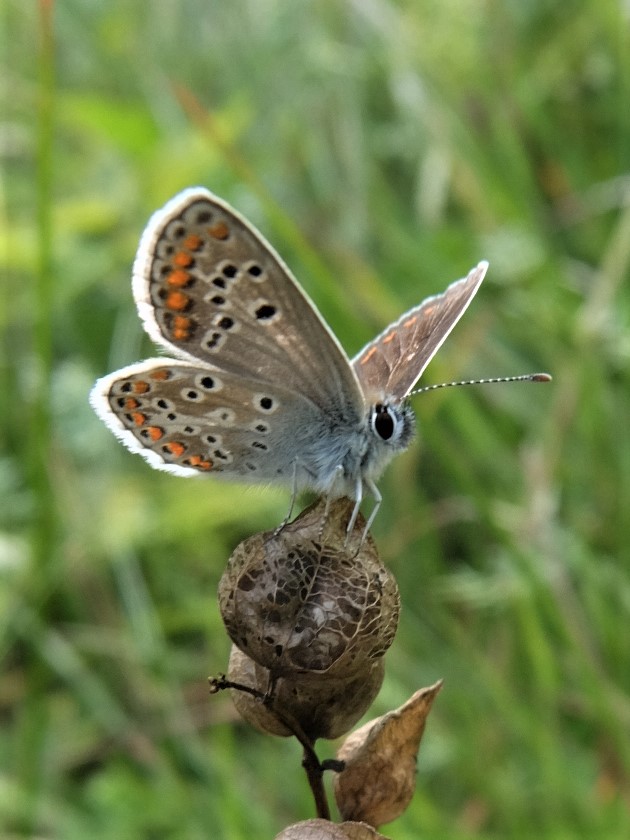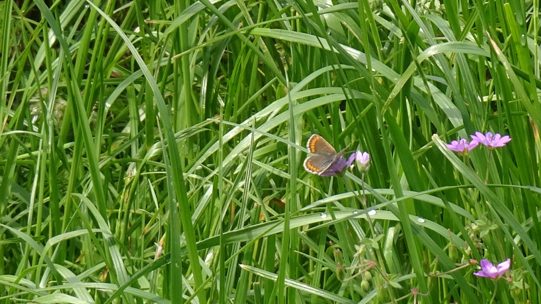 Kleiner Sonnenröschenbläuling (Aricia agestis (Denis & Schiffermüller, 1775)),Freital/Wurgwitz,Hammerteich,Wegrand auf Klee,Sep.2019