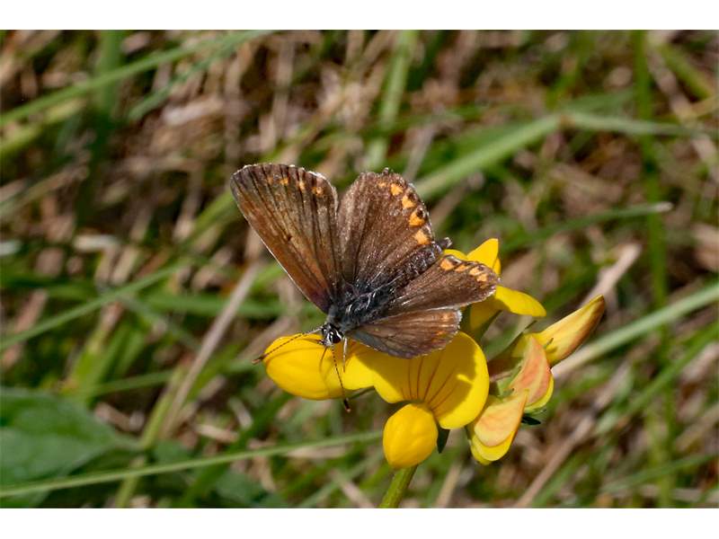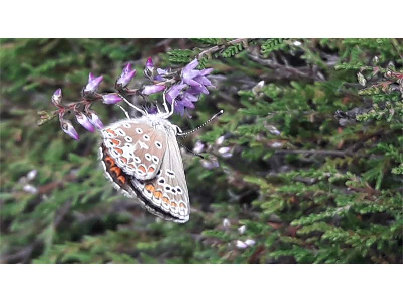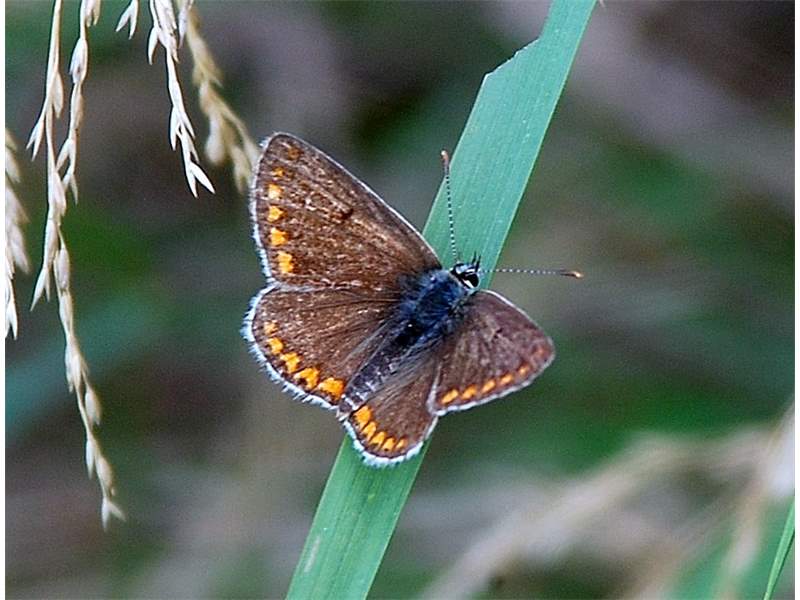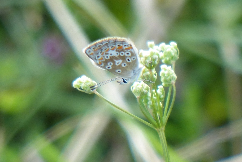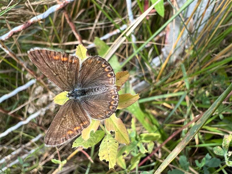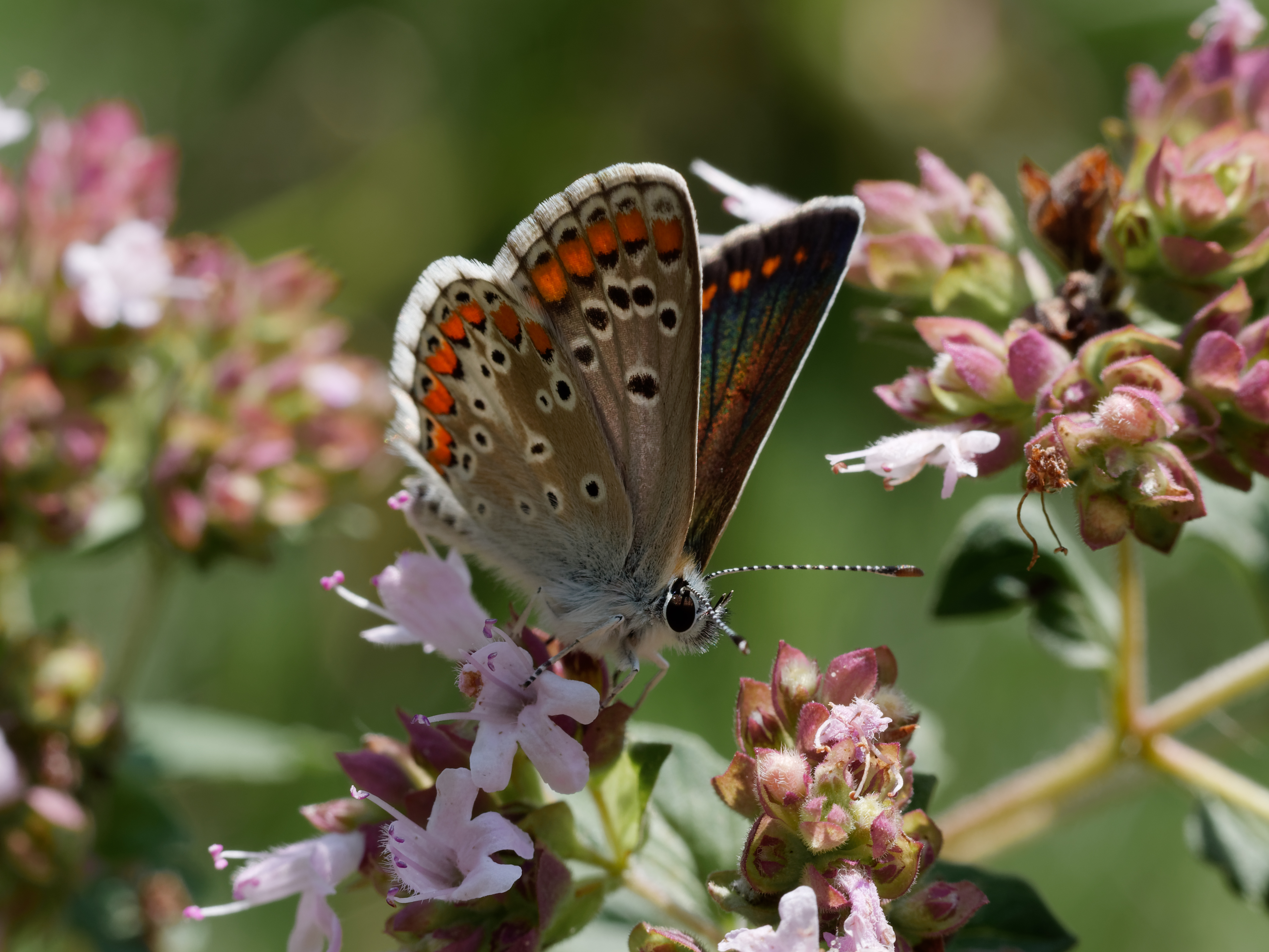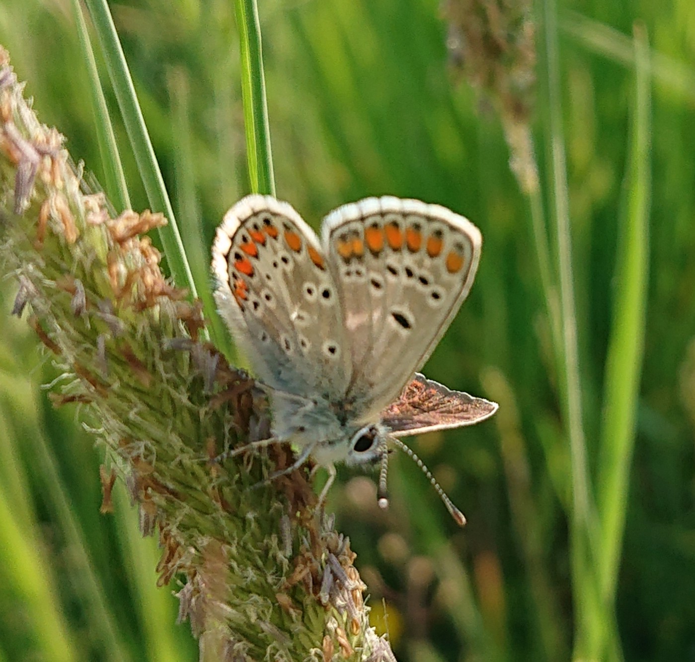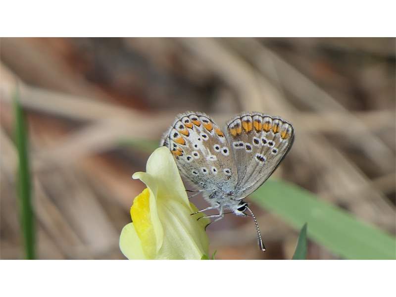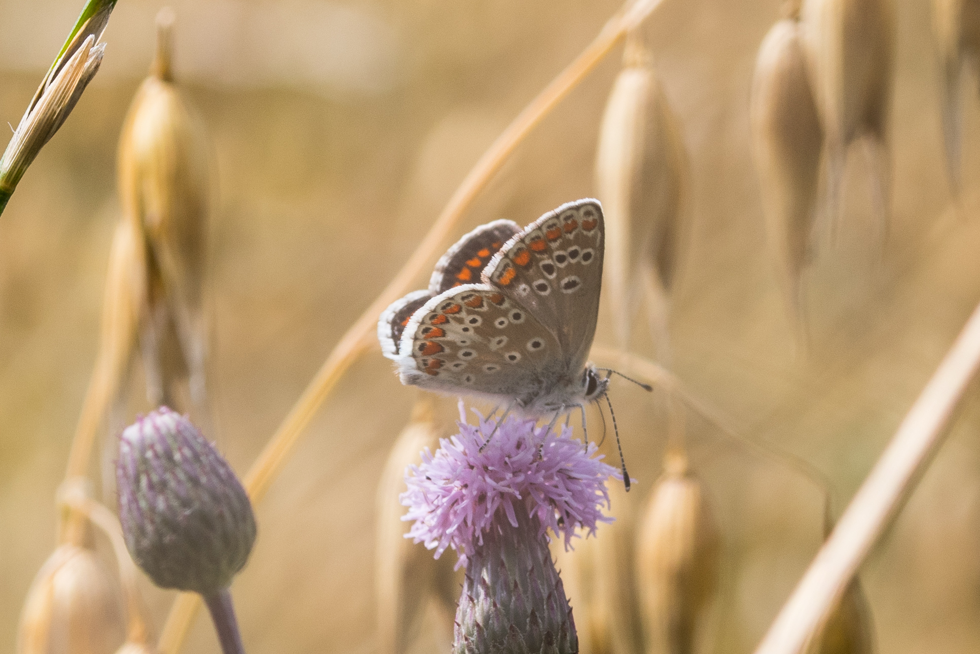 Kleiner Sonnenröschenbläuling (Aricia agestis (Denis & Schiffermüller, 1775)),Freital/Wurgwitz,Hammerteich,Wegrand auf Klee,Sep.2019