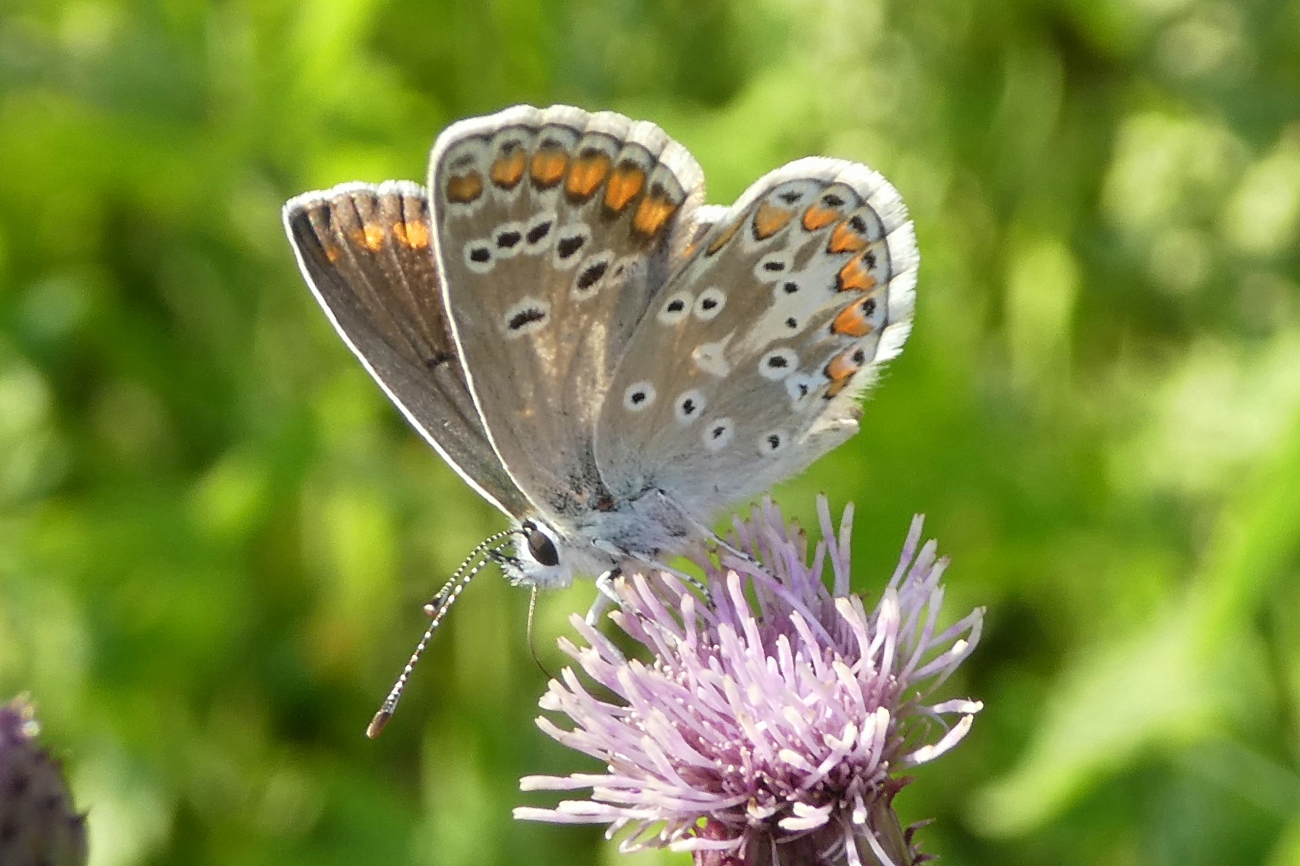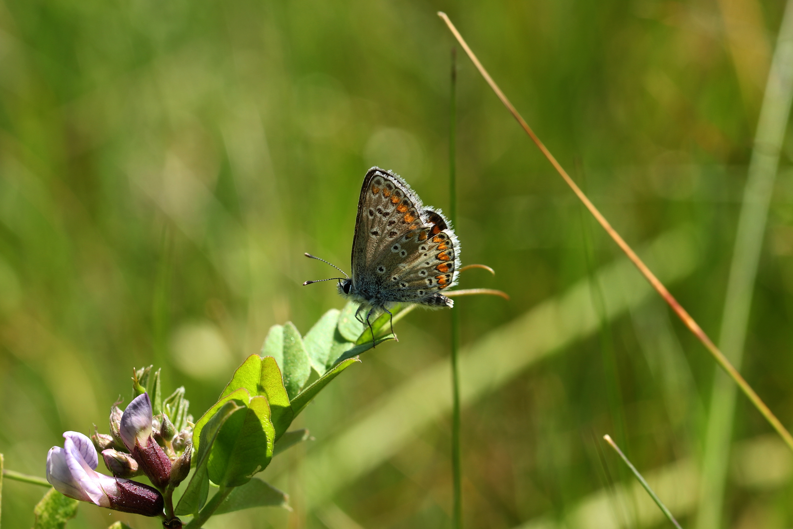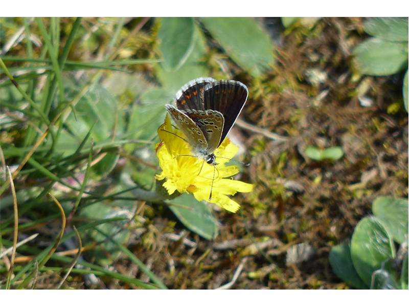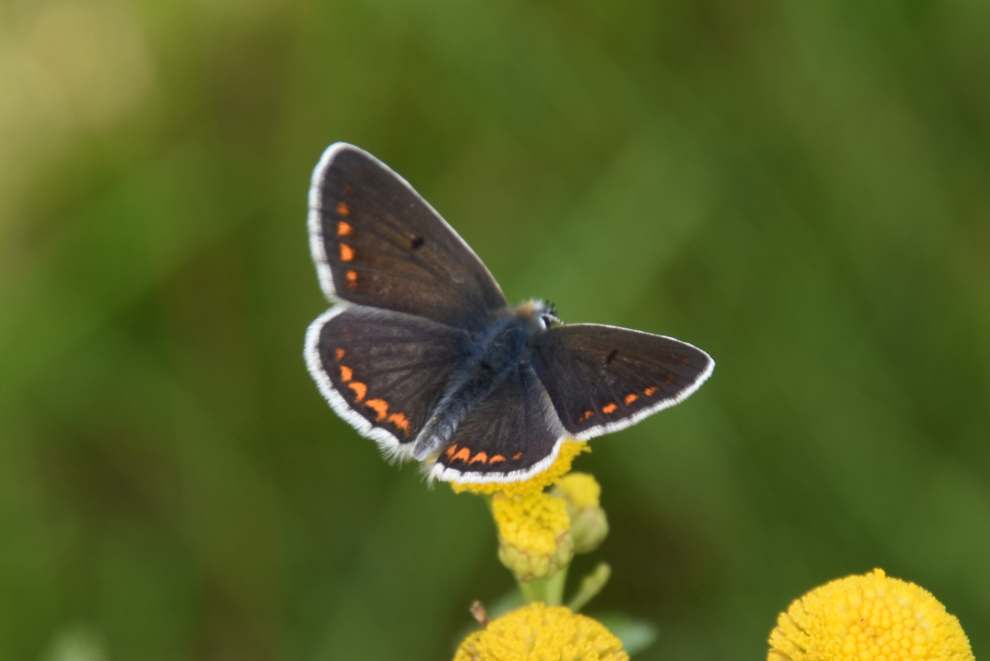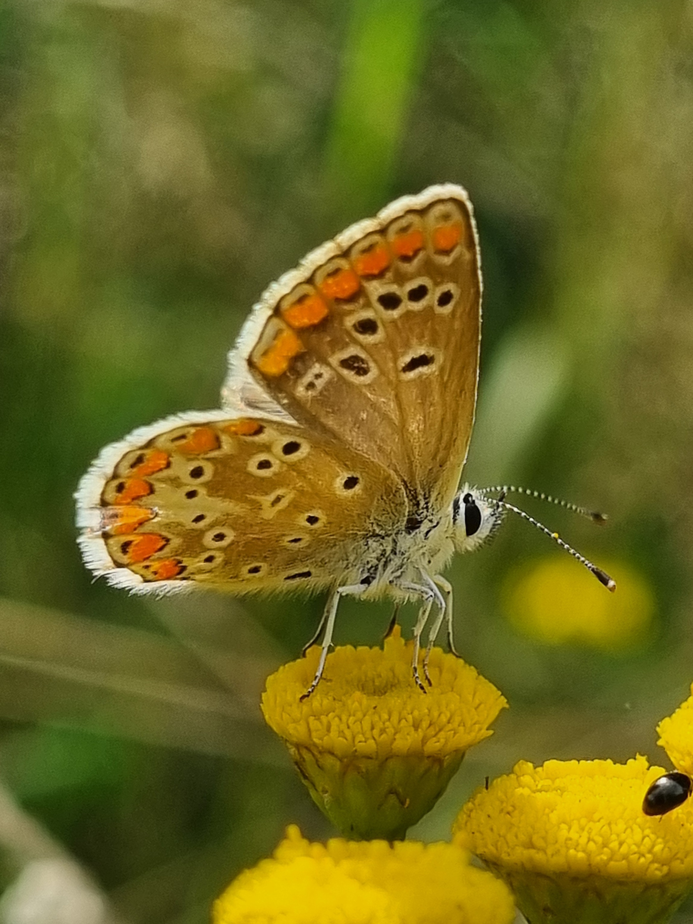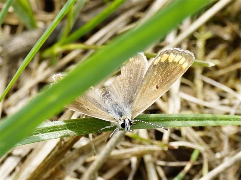 Kleiner Sonnenröschenbläuling (Aricia agestis (Denis & Schiffermüller, 1775)),Freital/Wurgwitz,Hammerteich,Wegrand auf Klee,Sep.2019