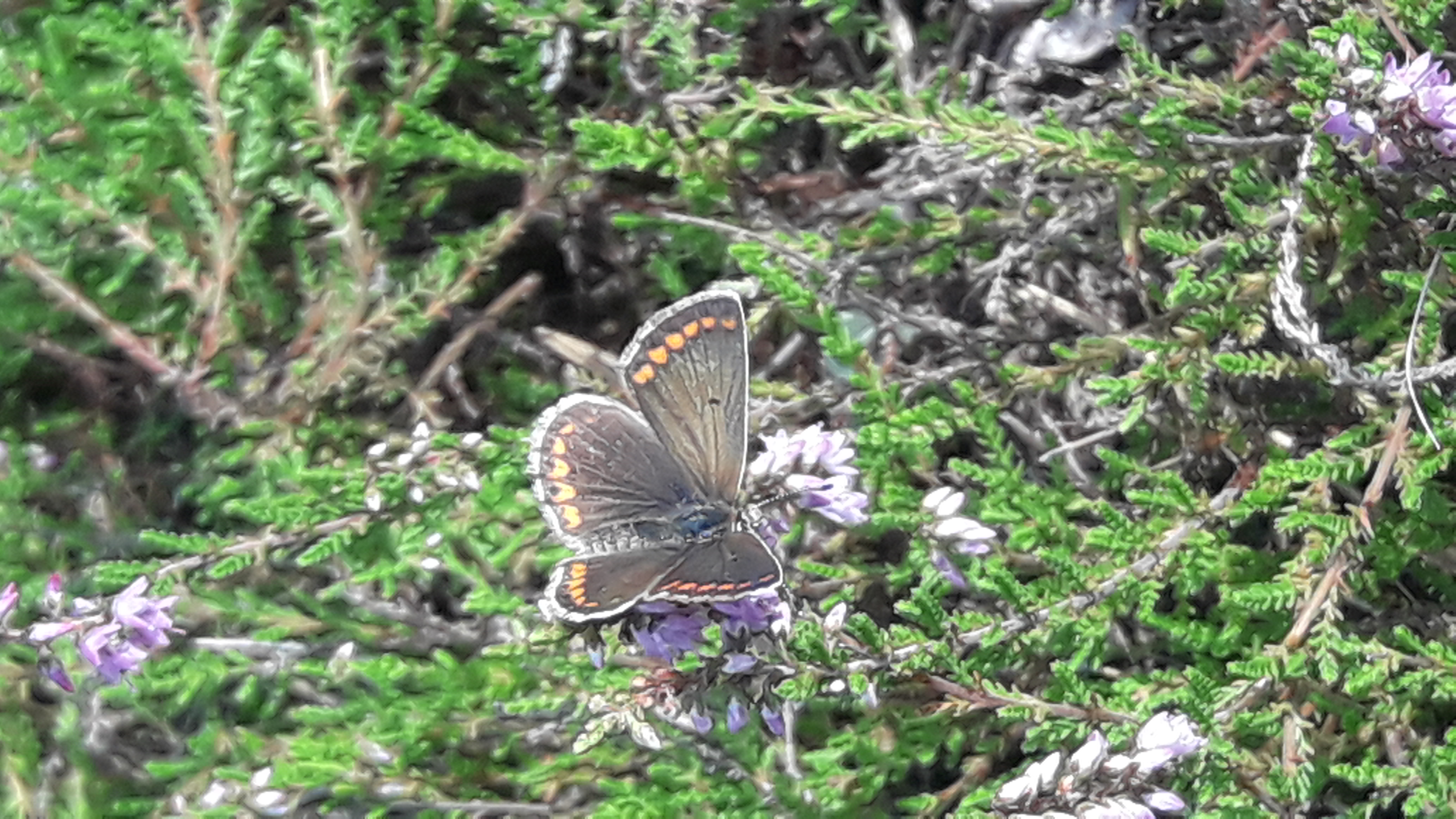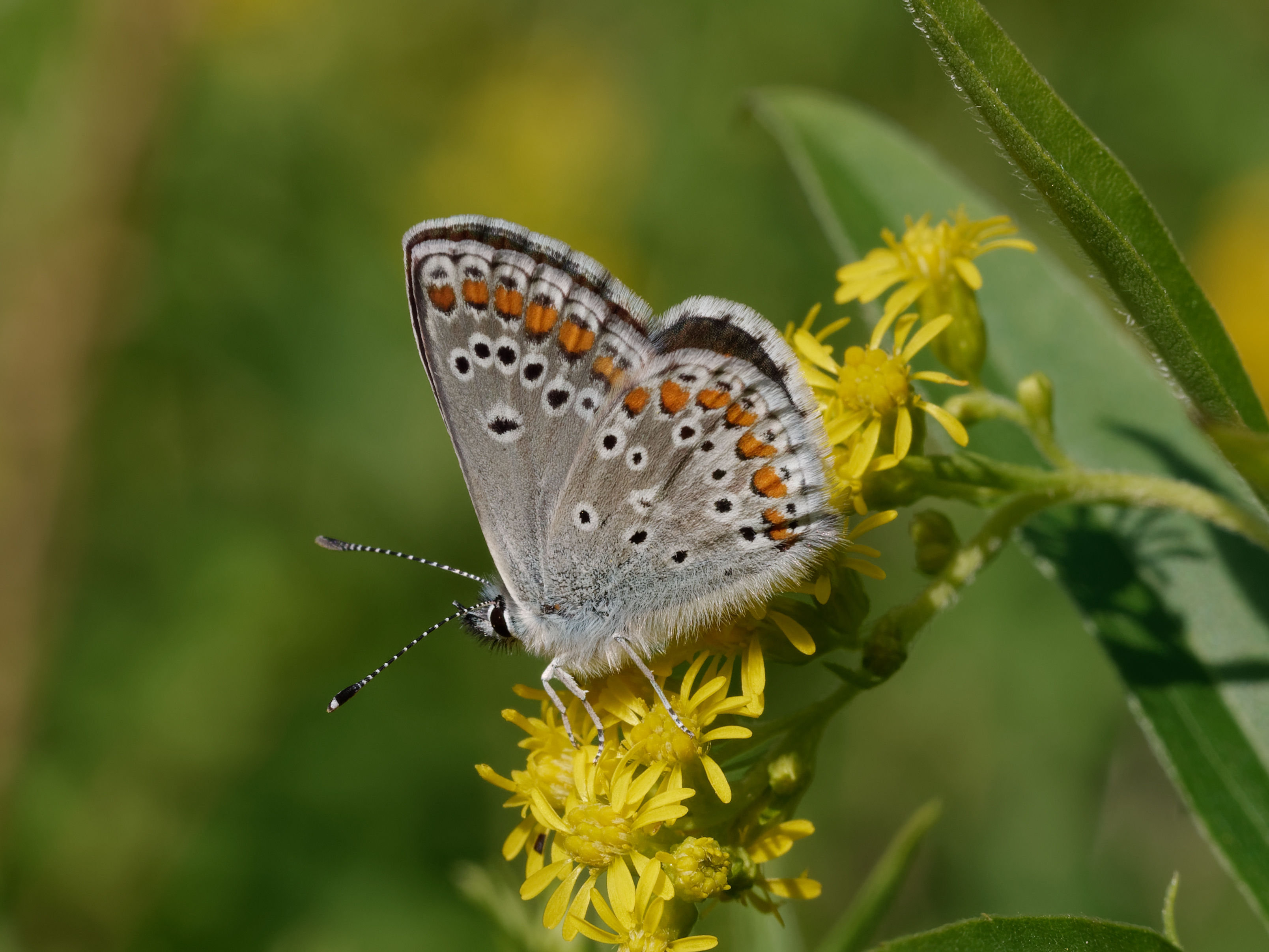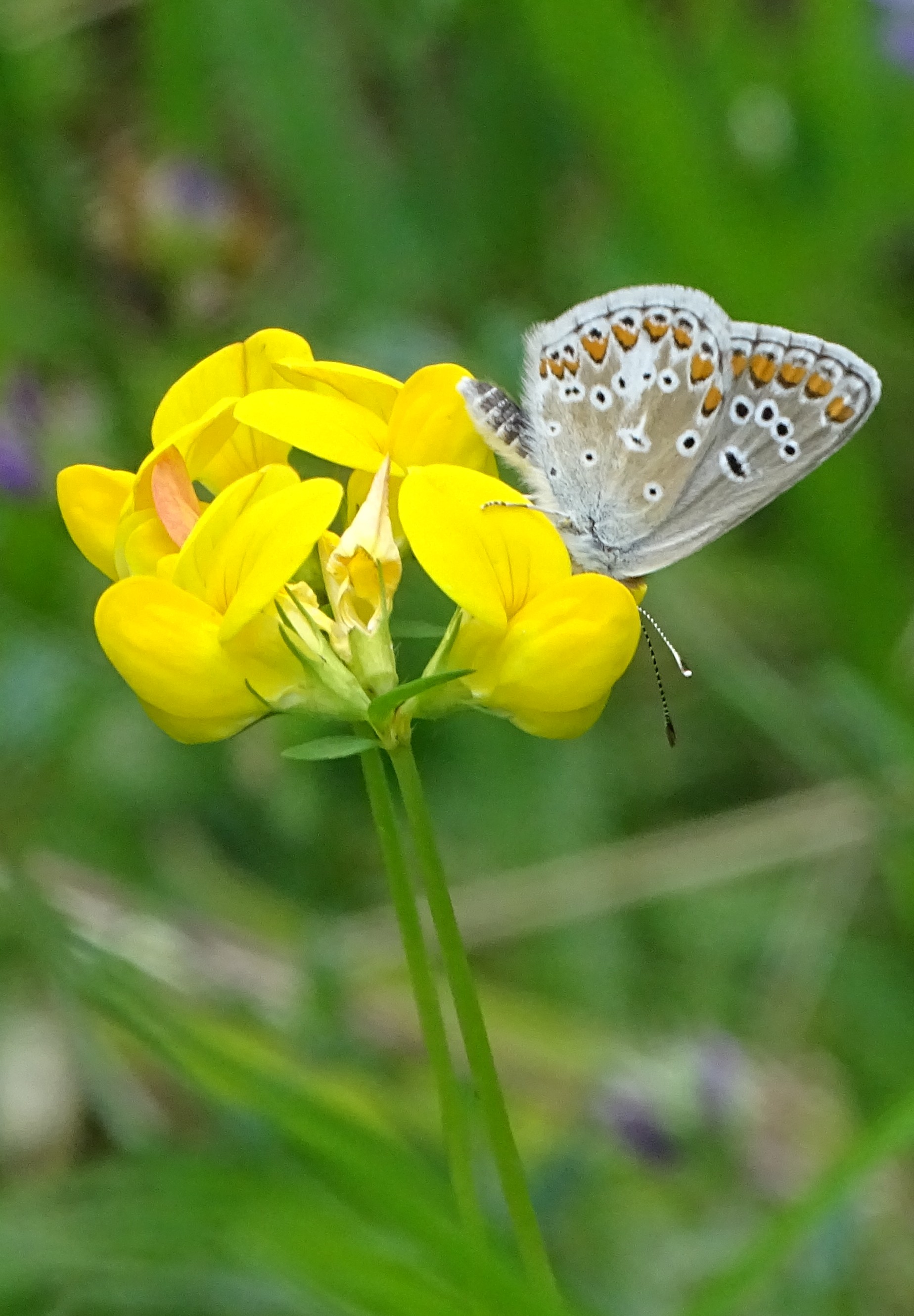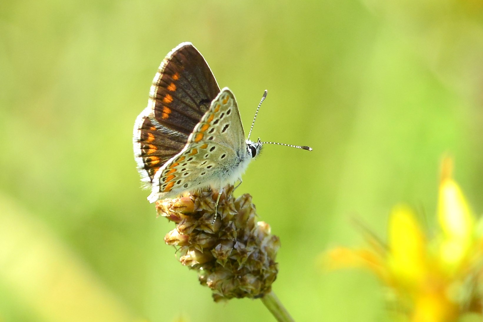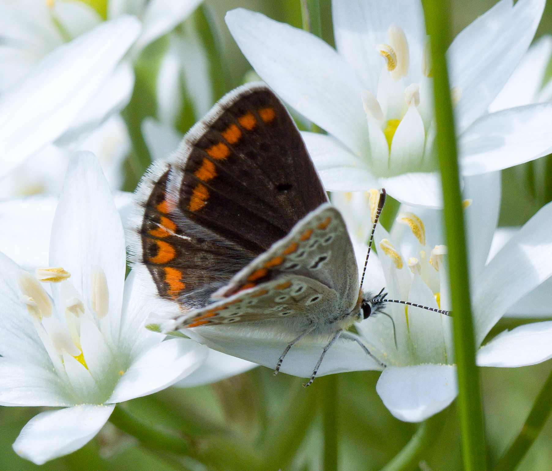 Kleiner Sonnenröschenbläuling (Aricia agestis (Denis & Schiffermüller, 1775)),Freital/Wurgwitz,Hammerteich,Wegrand auf Klee,Sep.2019