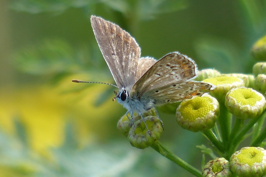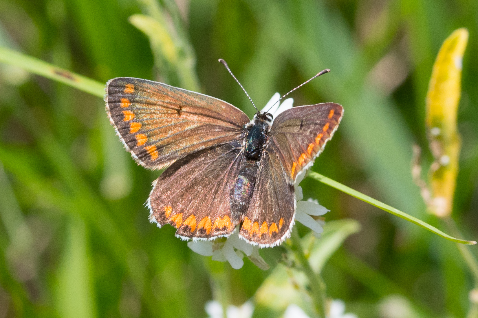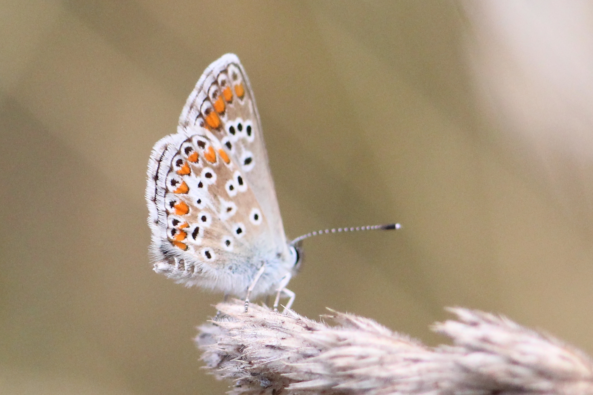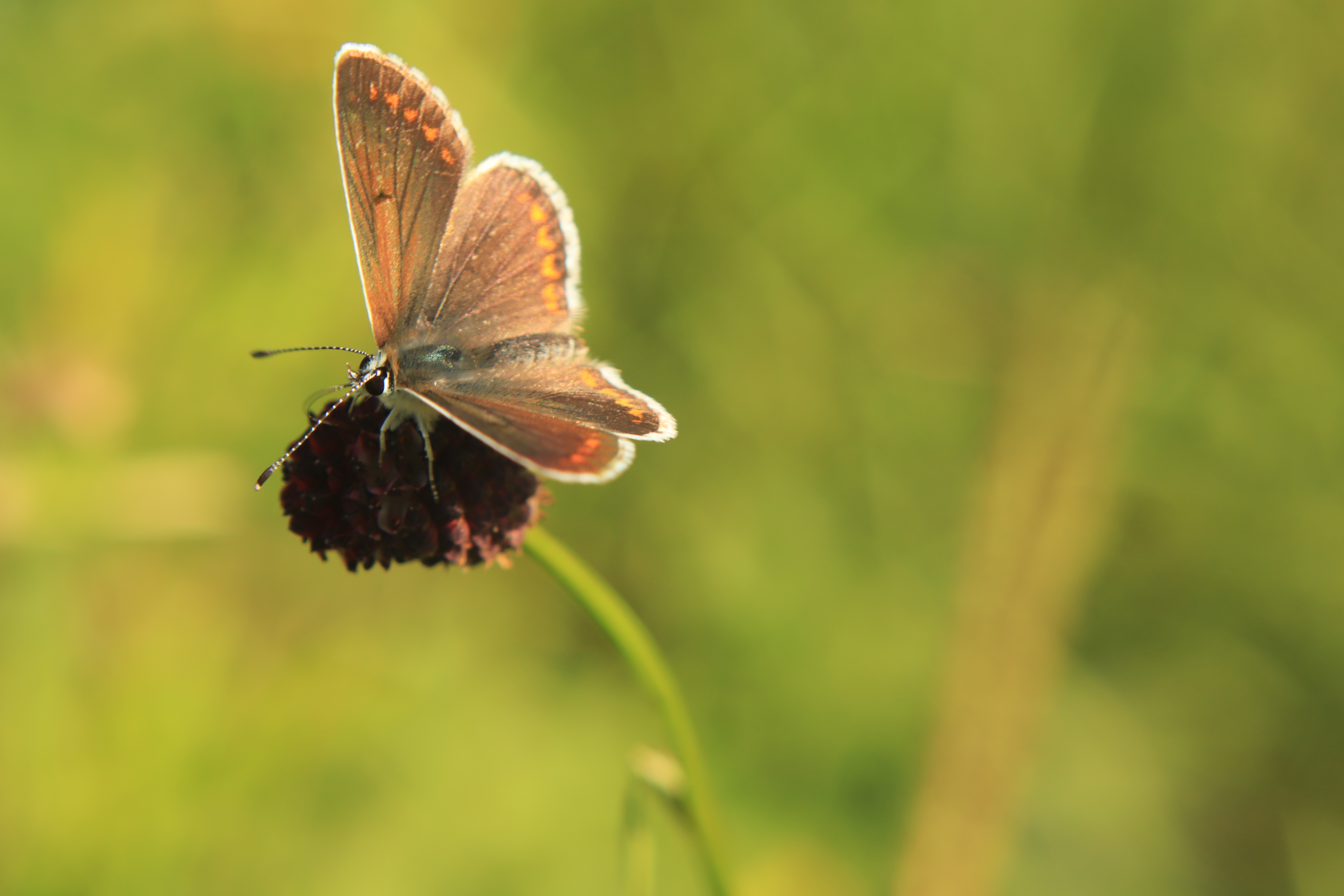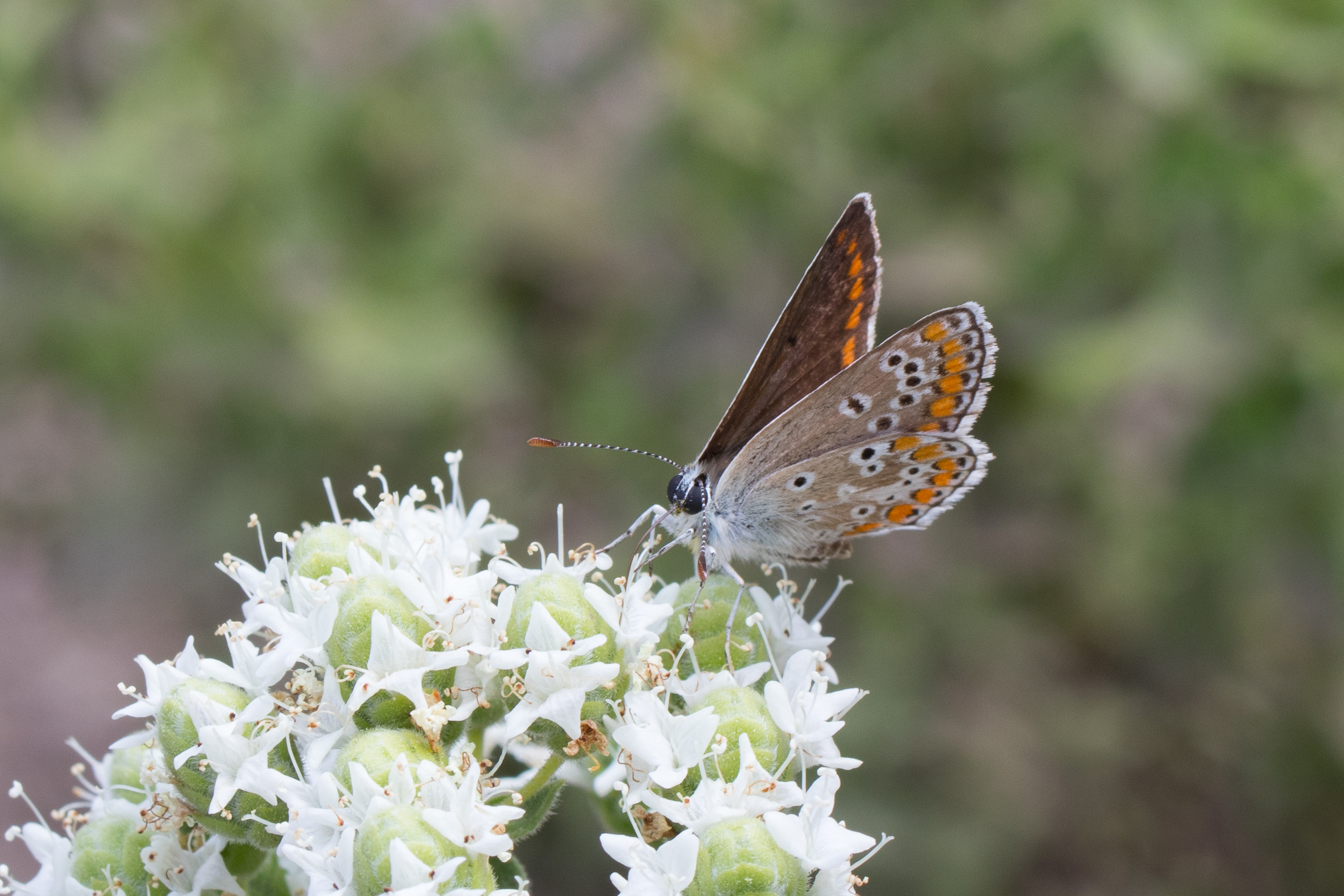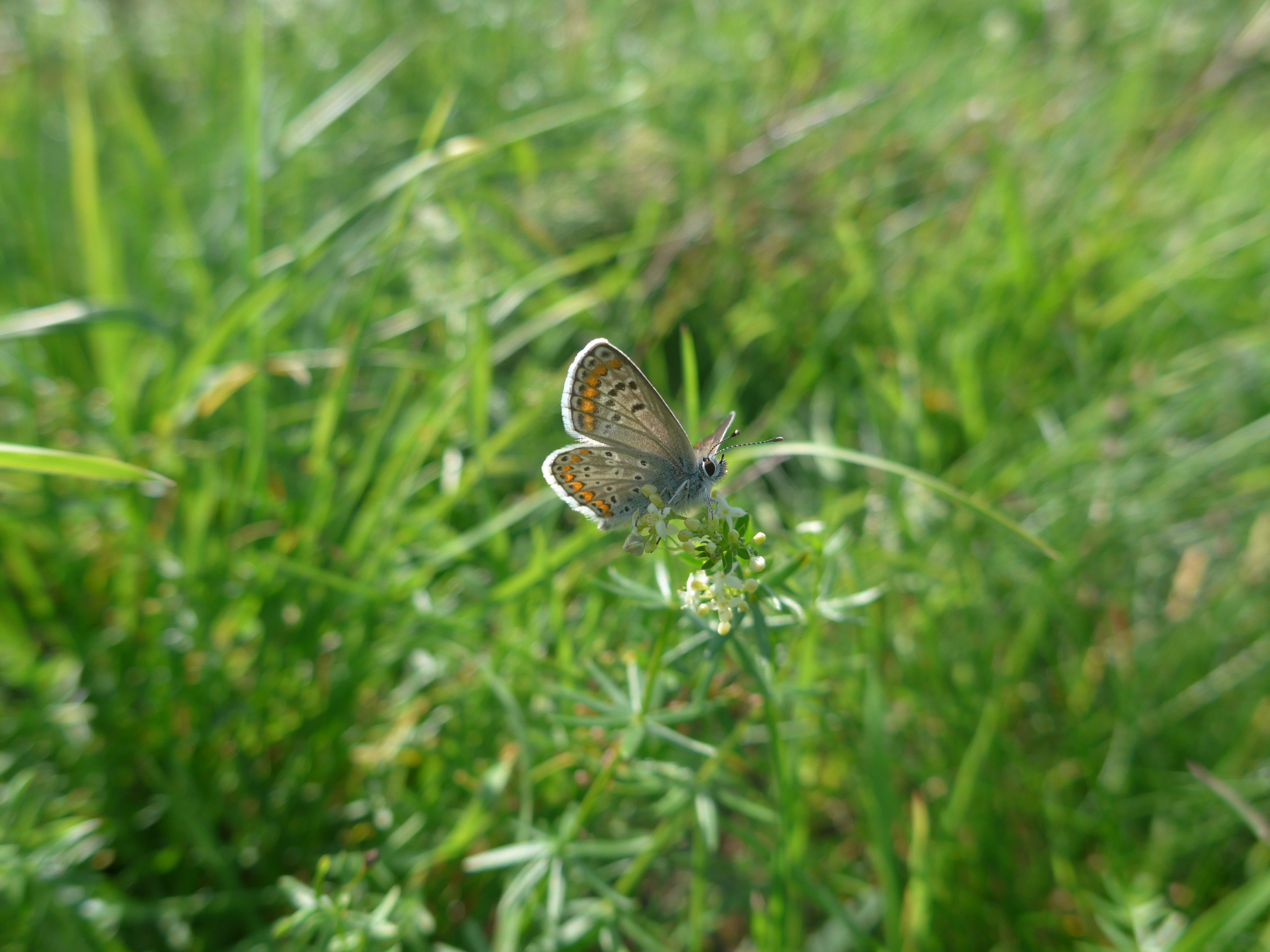 Kleiner Sonnenröschenbläuling (Aricia agestis (Denis & Schiffermüller, 1775)),Freital/Wurgwitz,Hammerteich,Wegrand auf Klee,Sep.2019