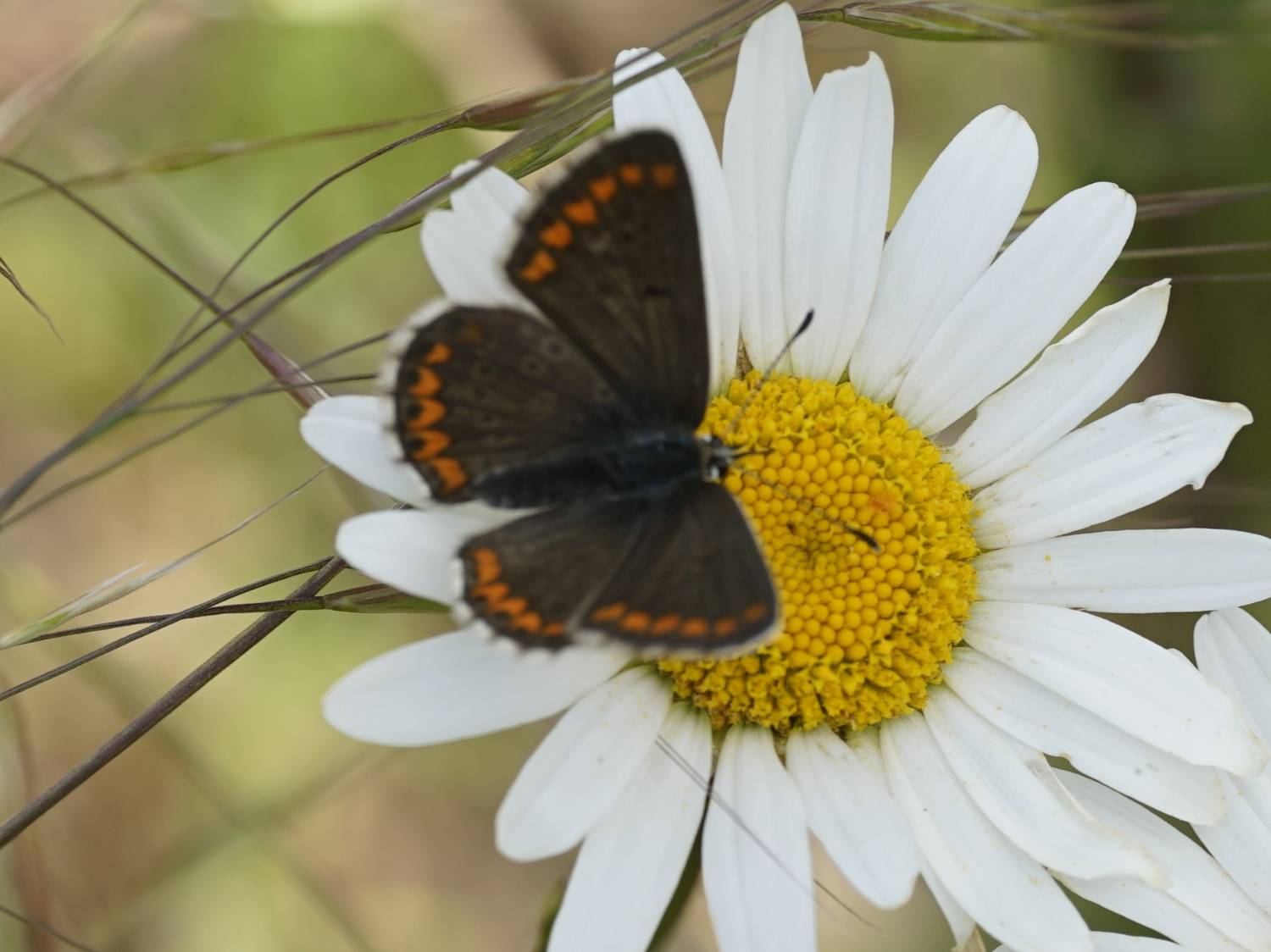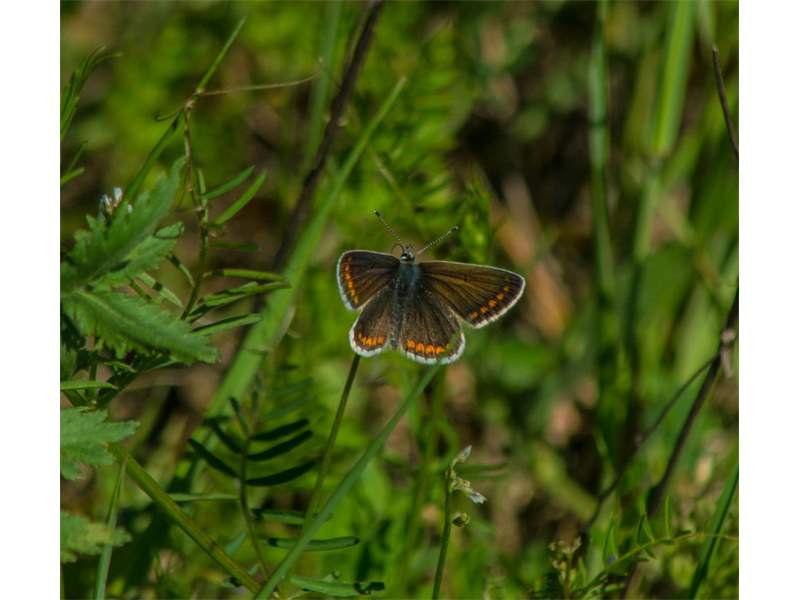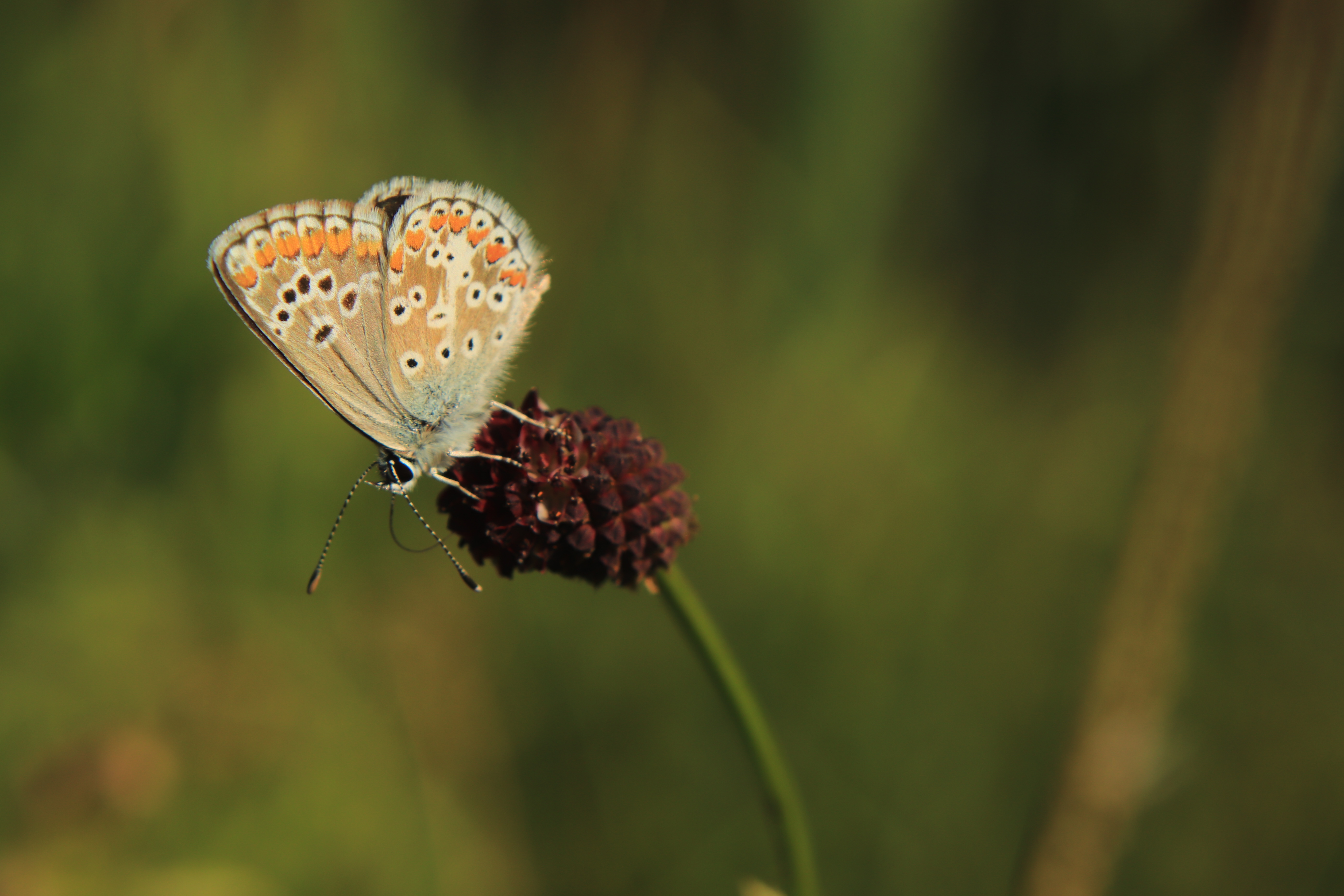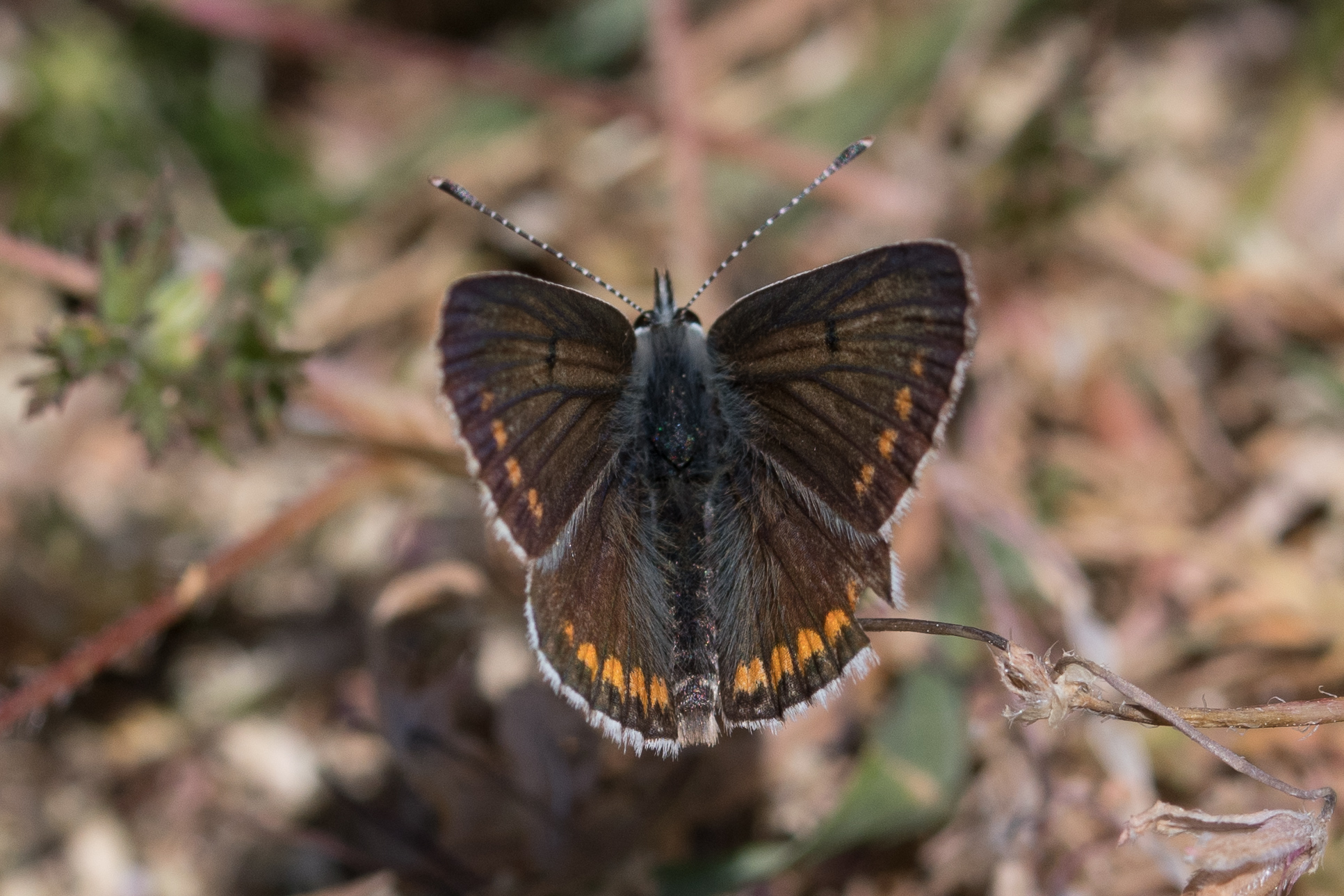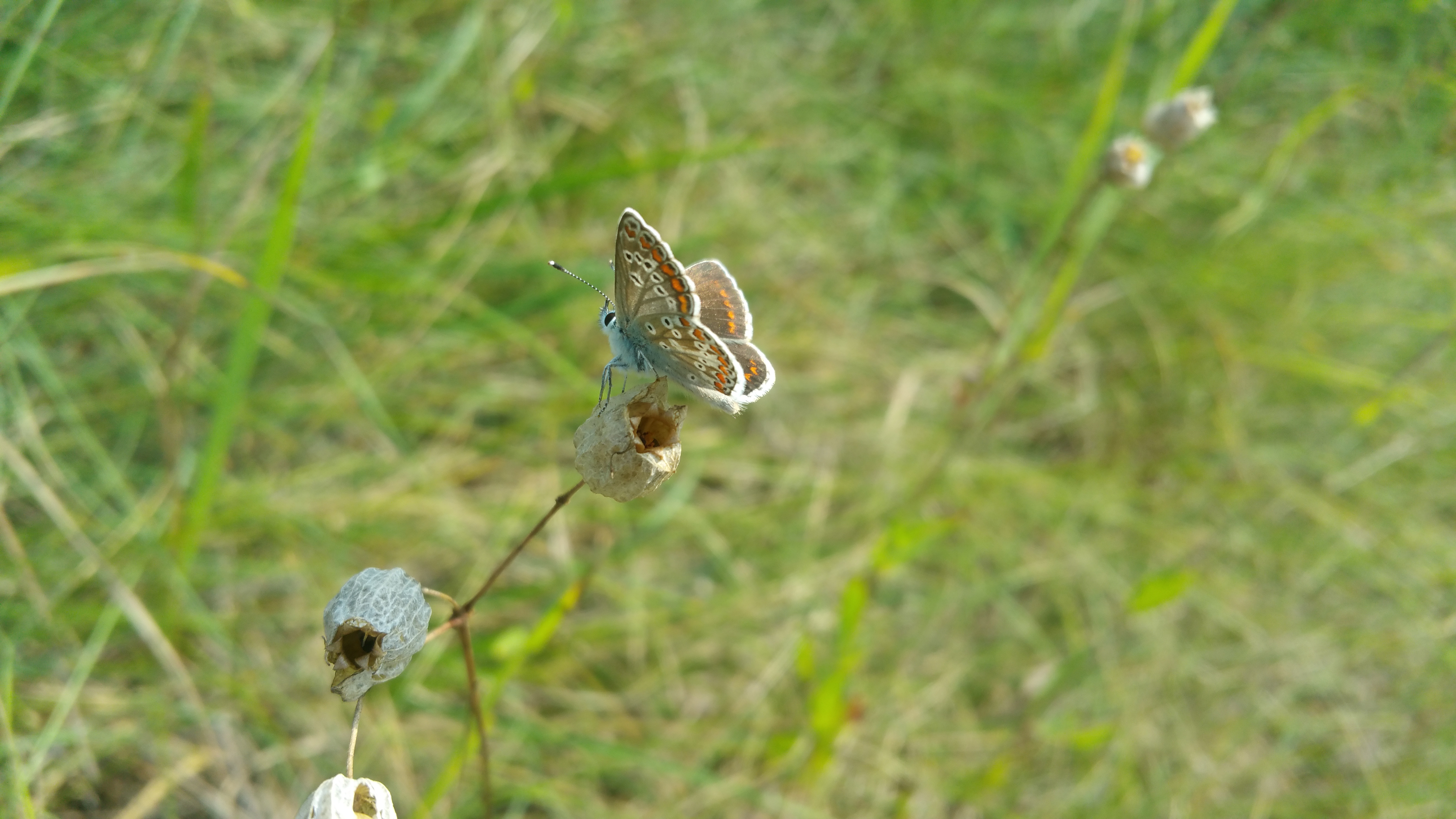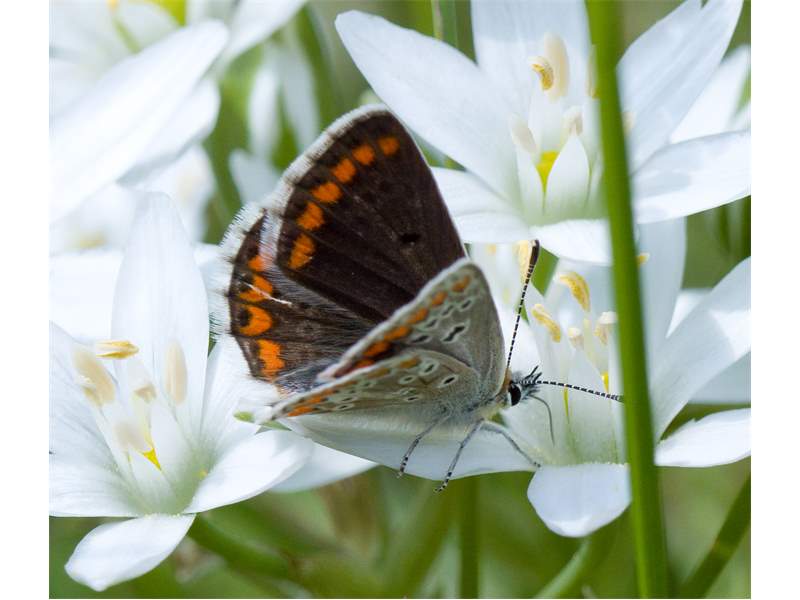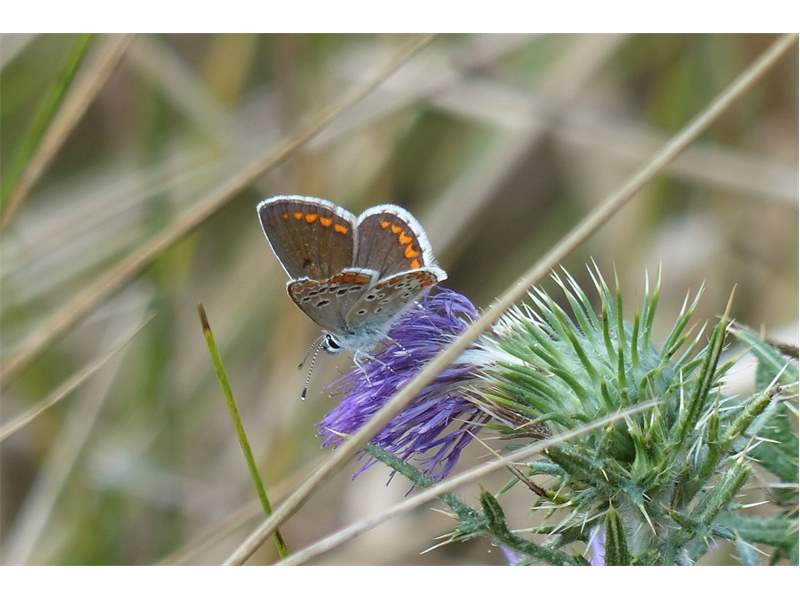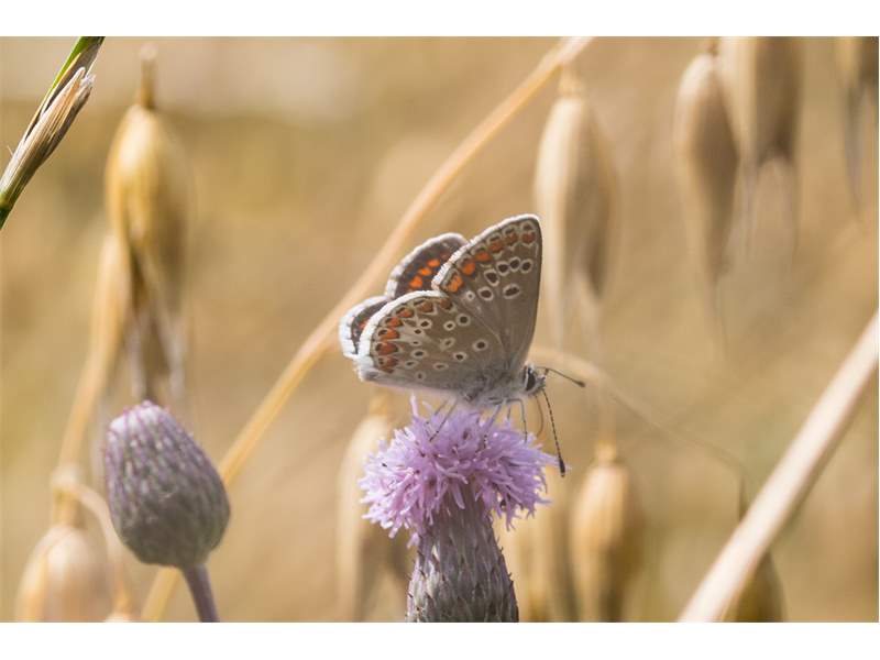 Kleiner Sonnenröschenbläuling (Aricia agestis (Denis & Schiffermüller, 1775)),Freital/Wurgwitz,Hammerteich,Wegrand auf Klee,Sep.2019