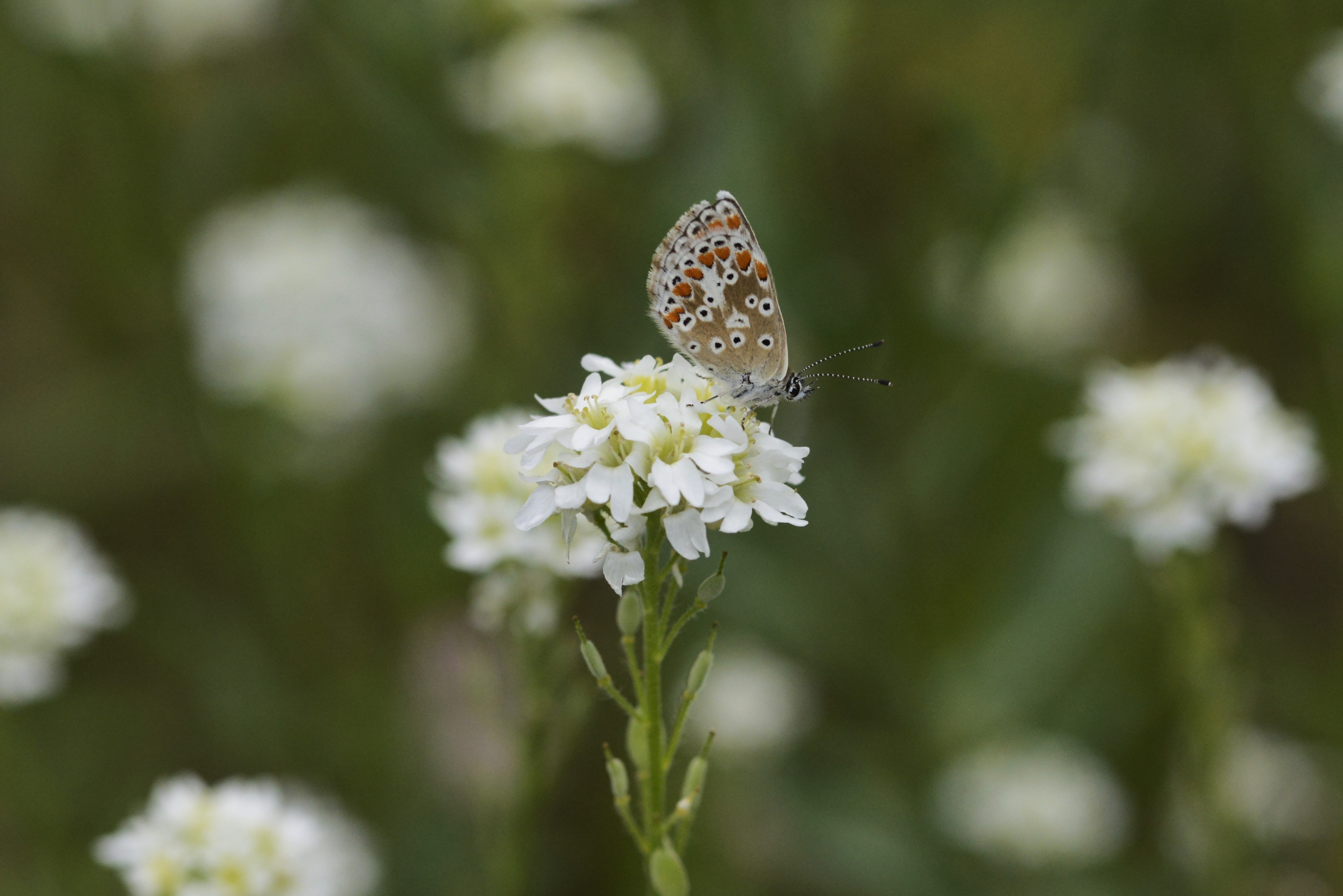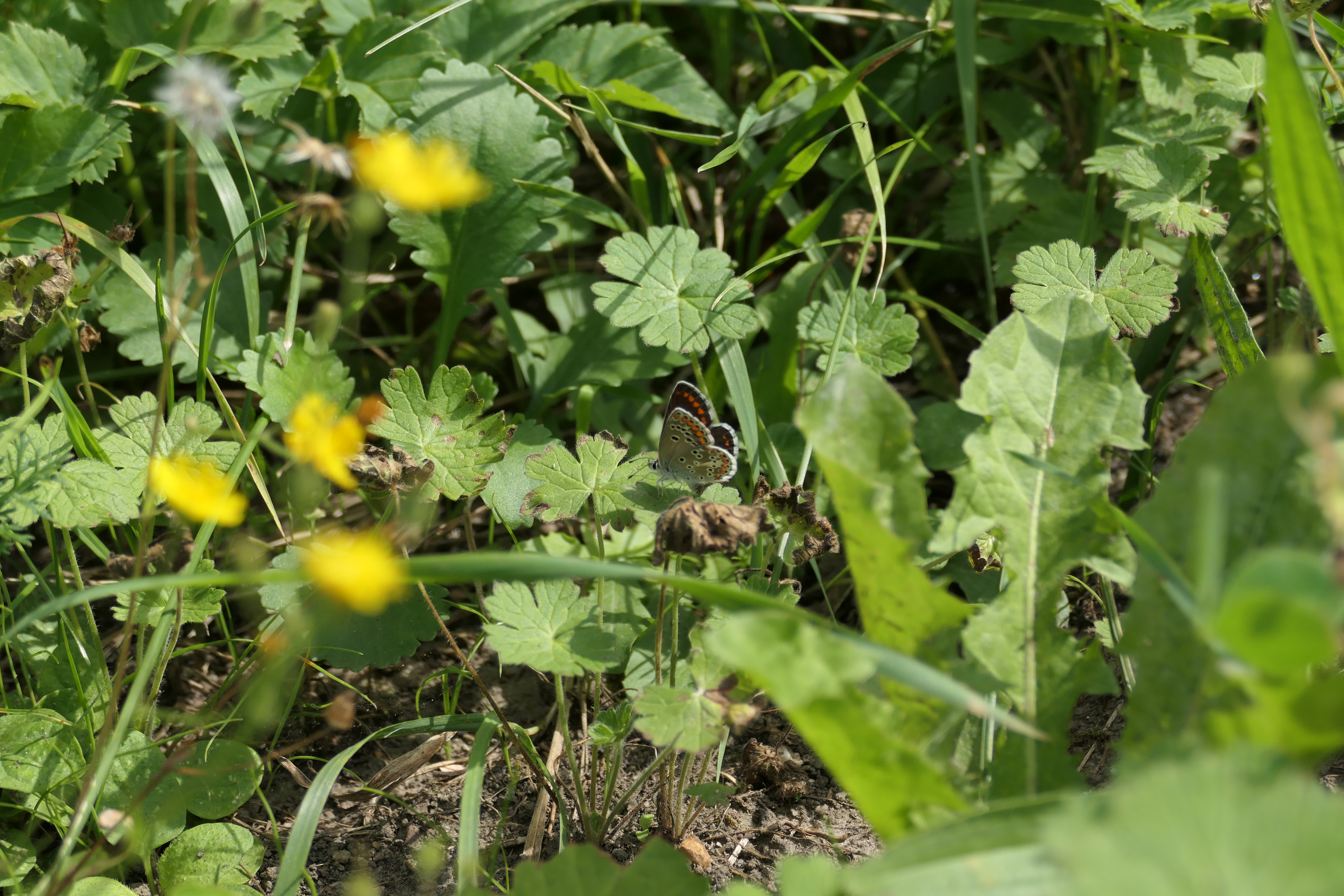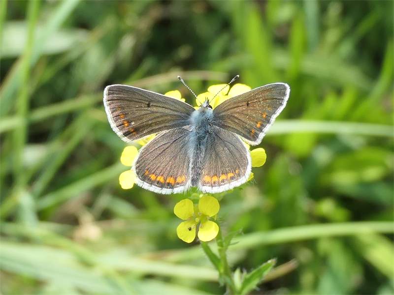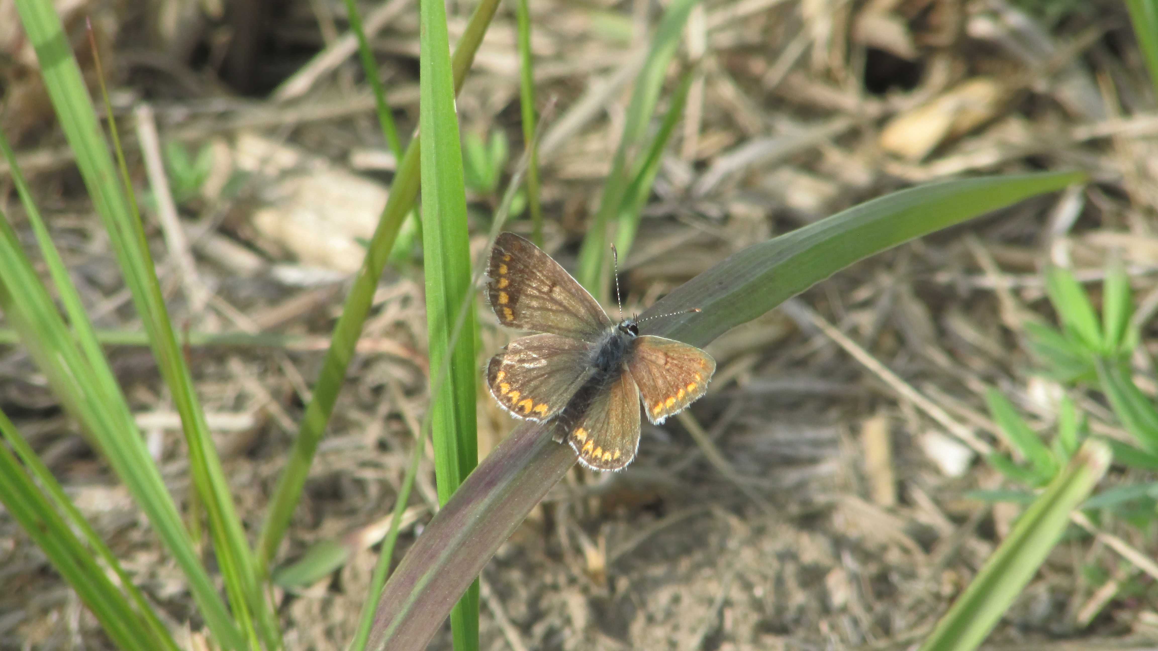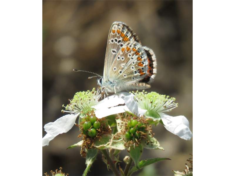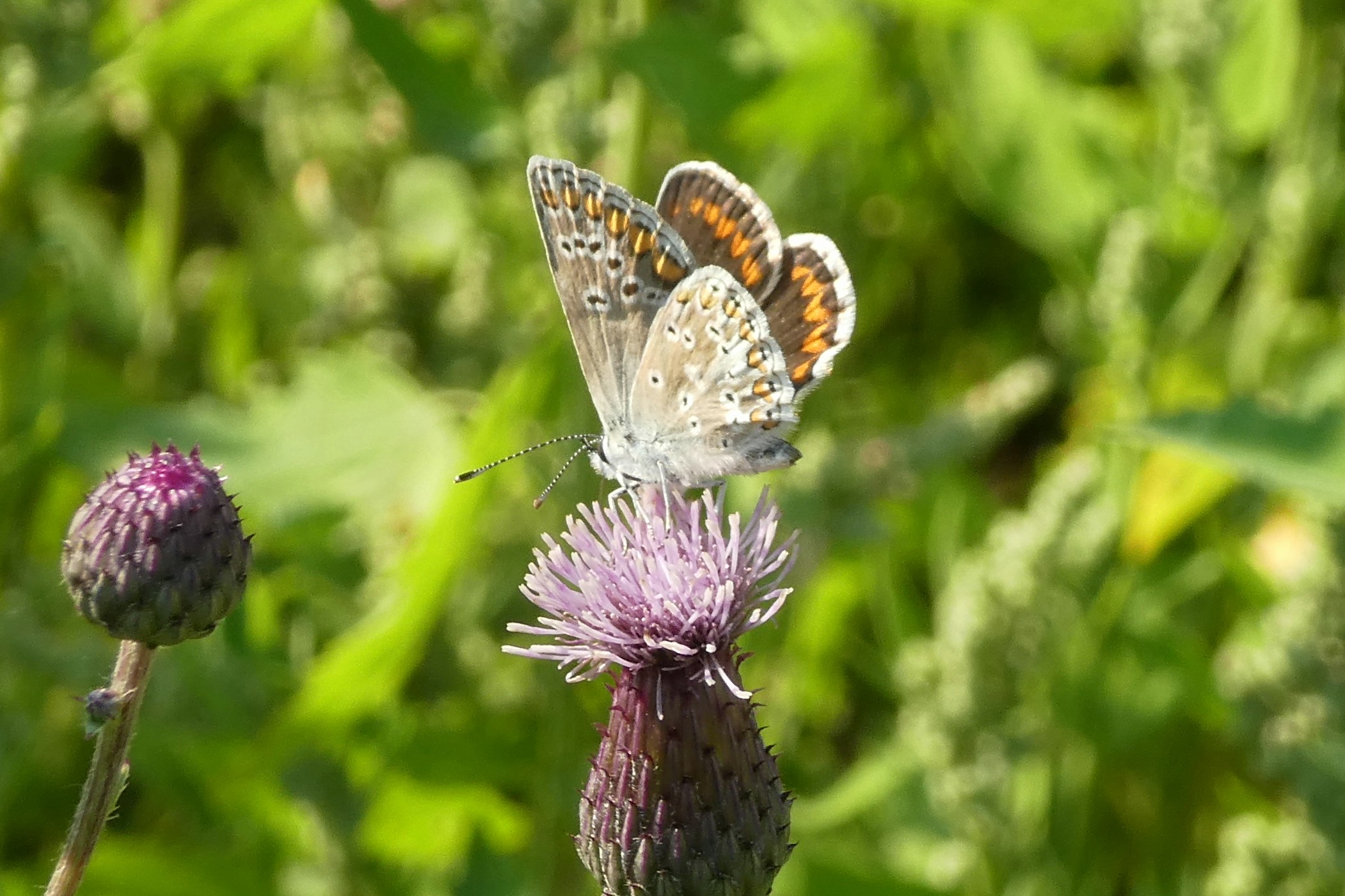 Kleiner Sonnenröschenbläuling (Aricia agestis (Denis & Schiffermüller, 1775)),Freital/Wurgwitz,Hammerteich,Wegrand auf Klee,Sep.2019