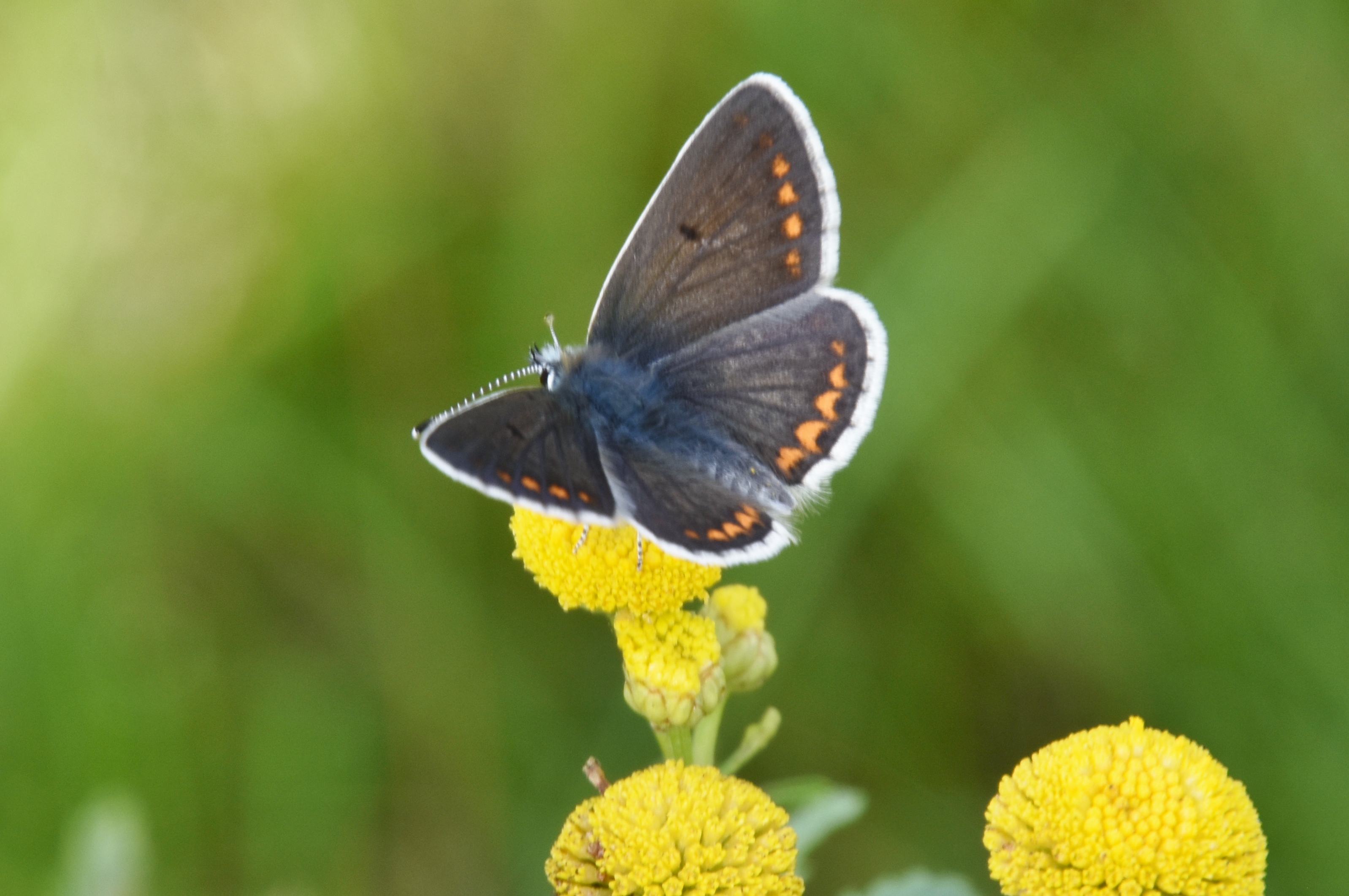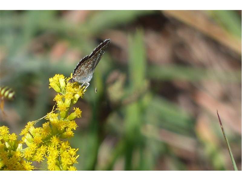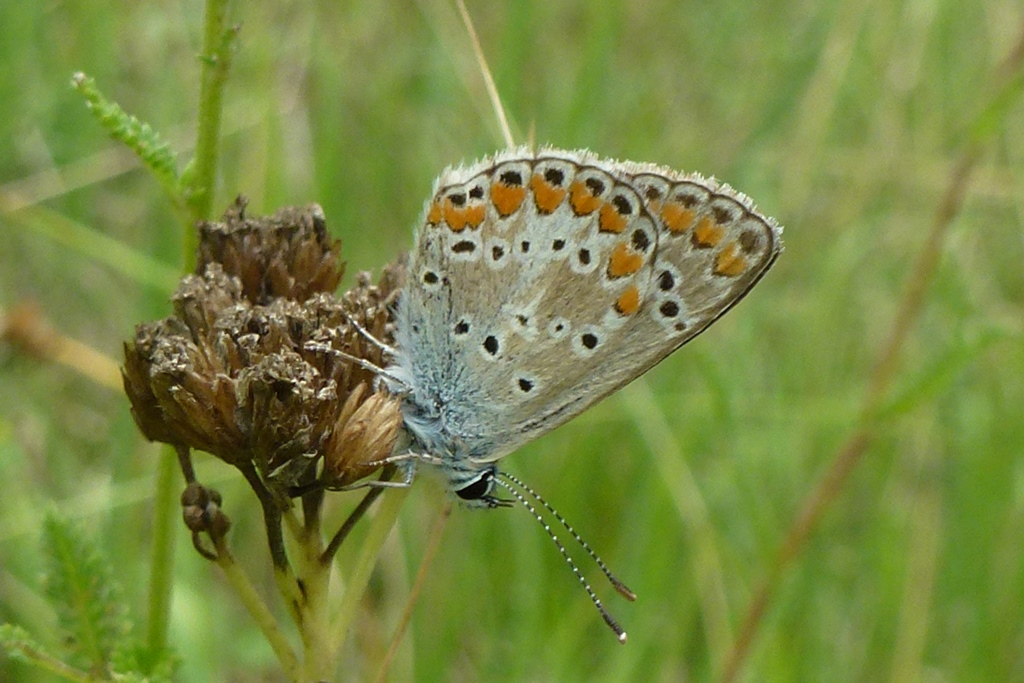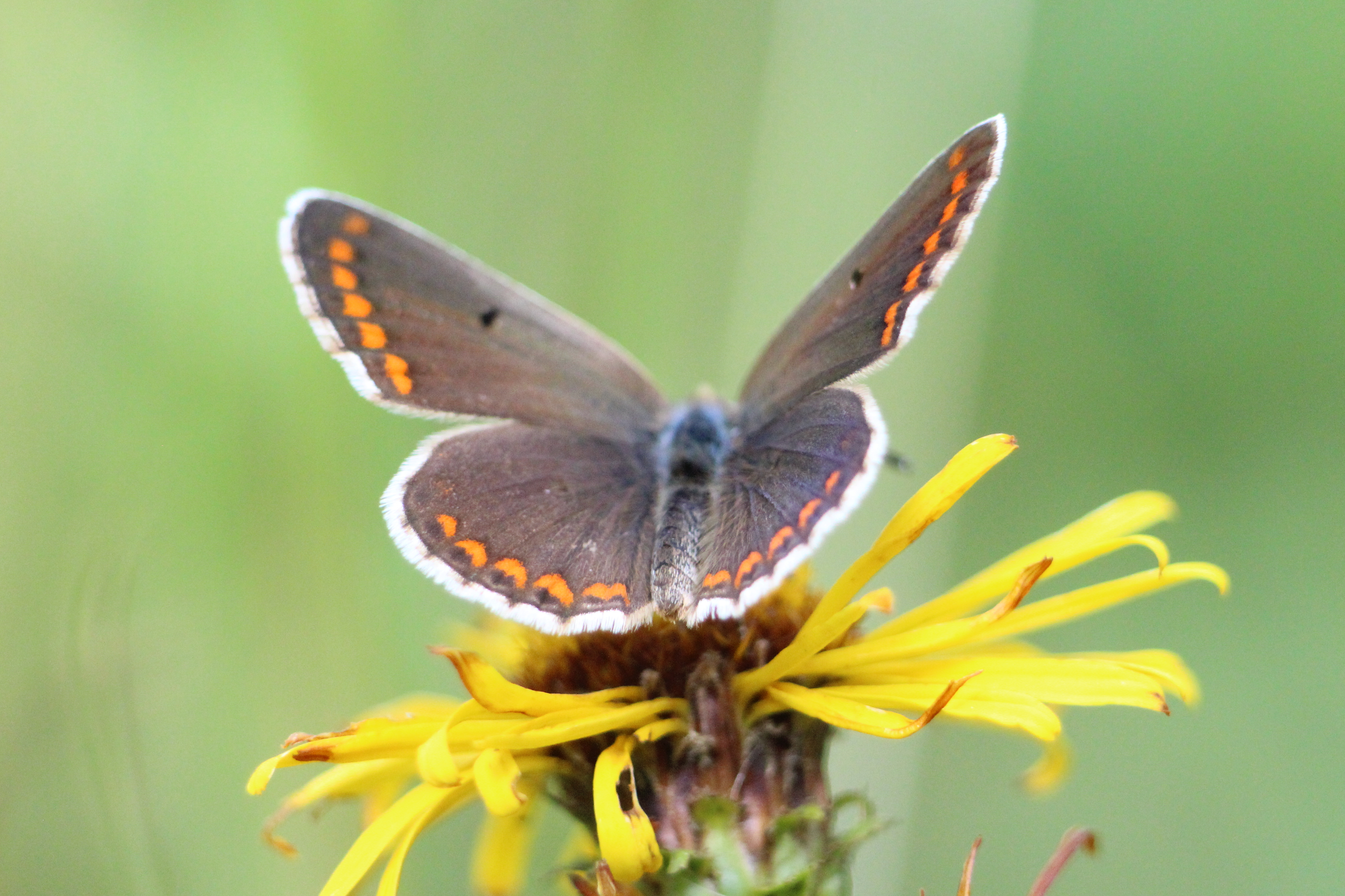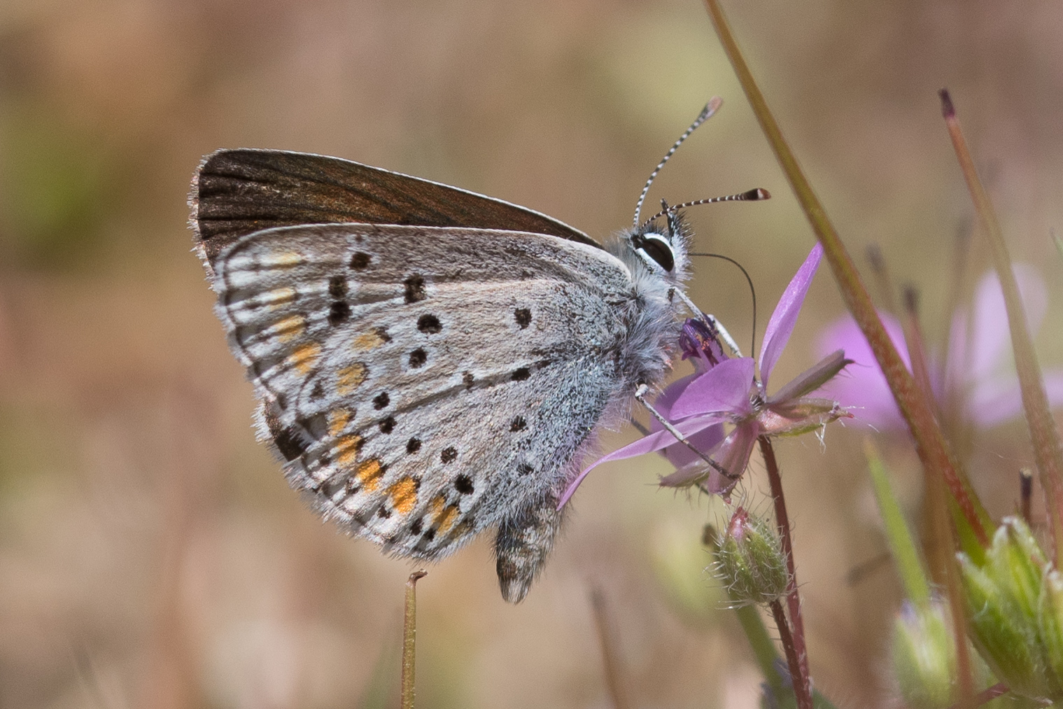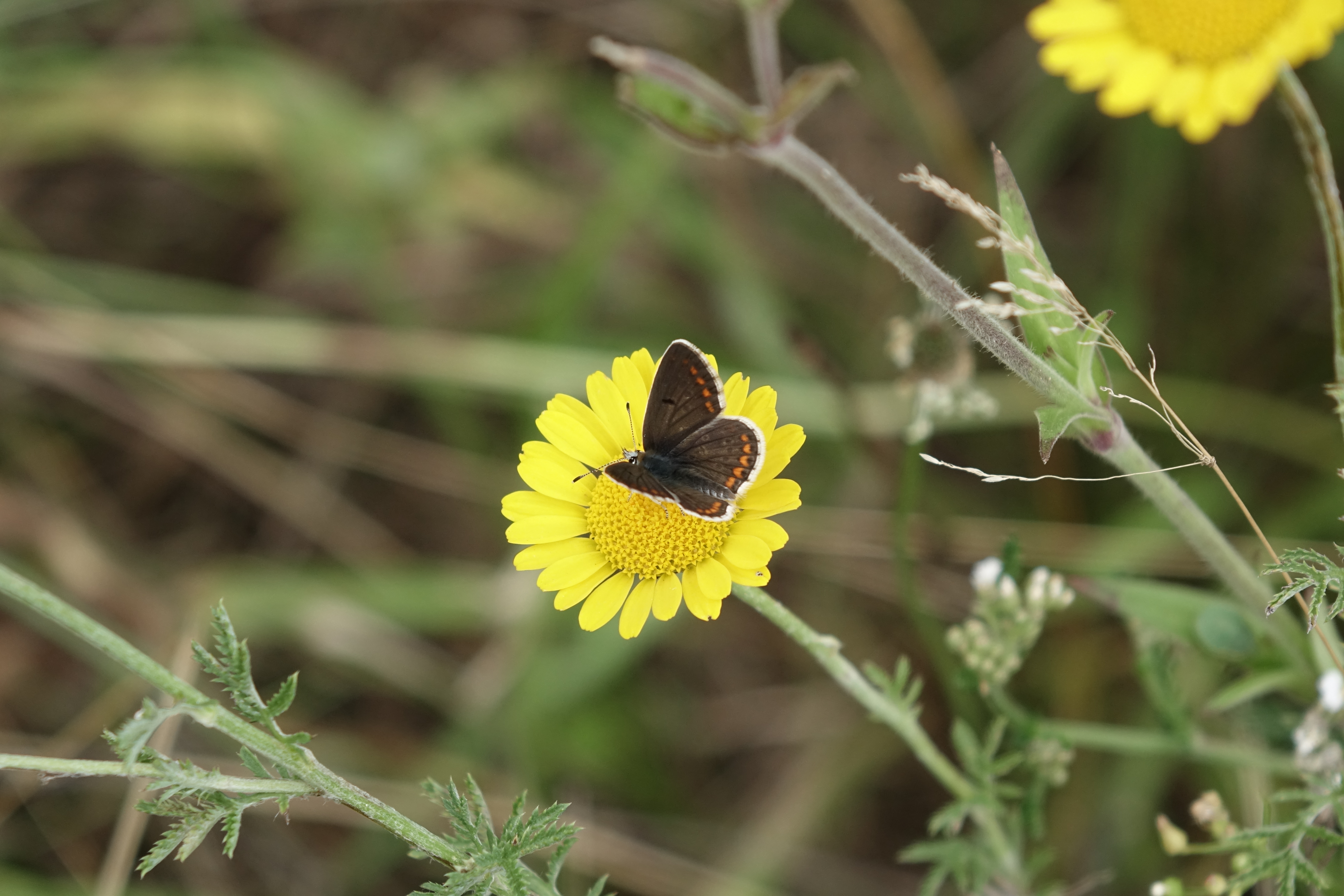 Kleiner Sonnenröschenbläuling (Aricia agestis (Denis & Schiffermüller, 1775)),Freital/Wurgwitz,Hammerteich,Wegrand auf Klee,Sep.2019