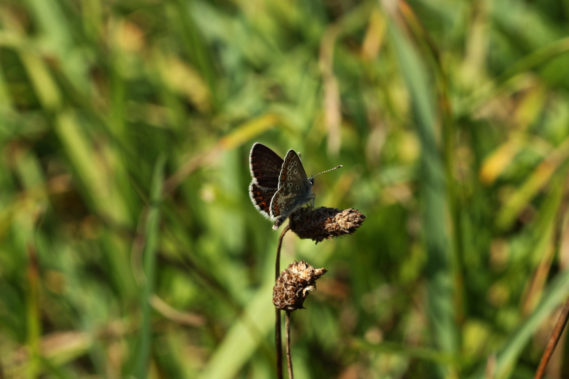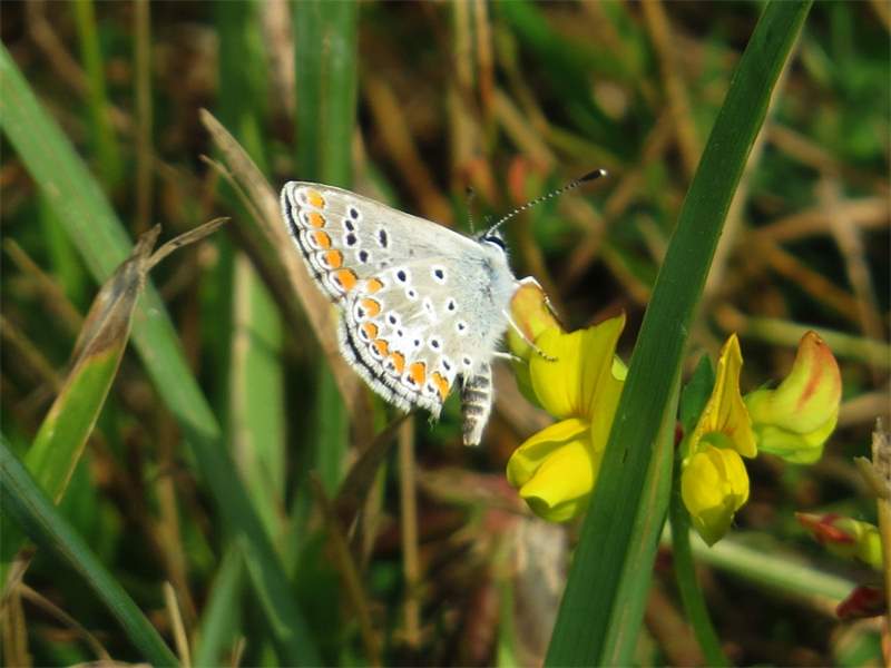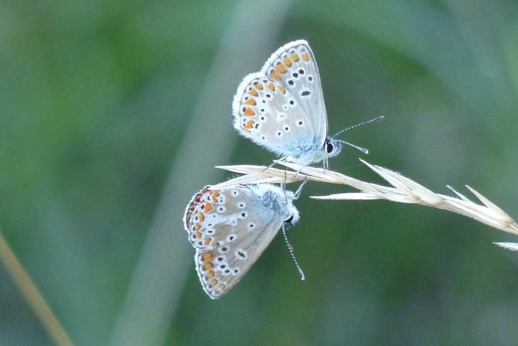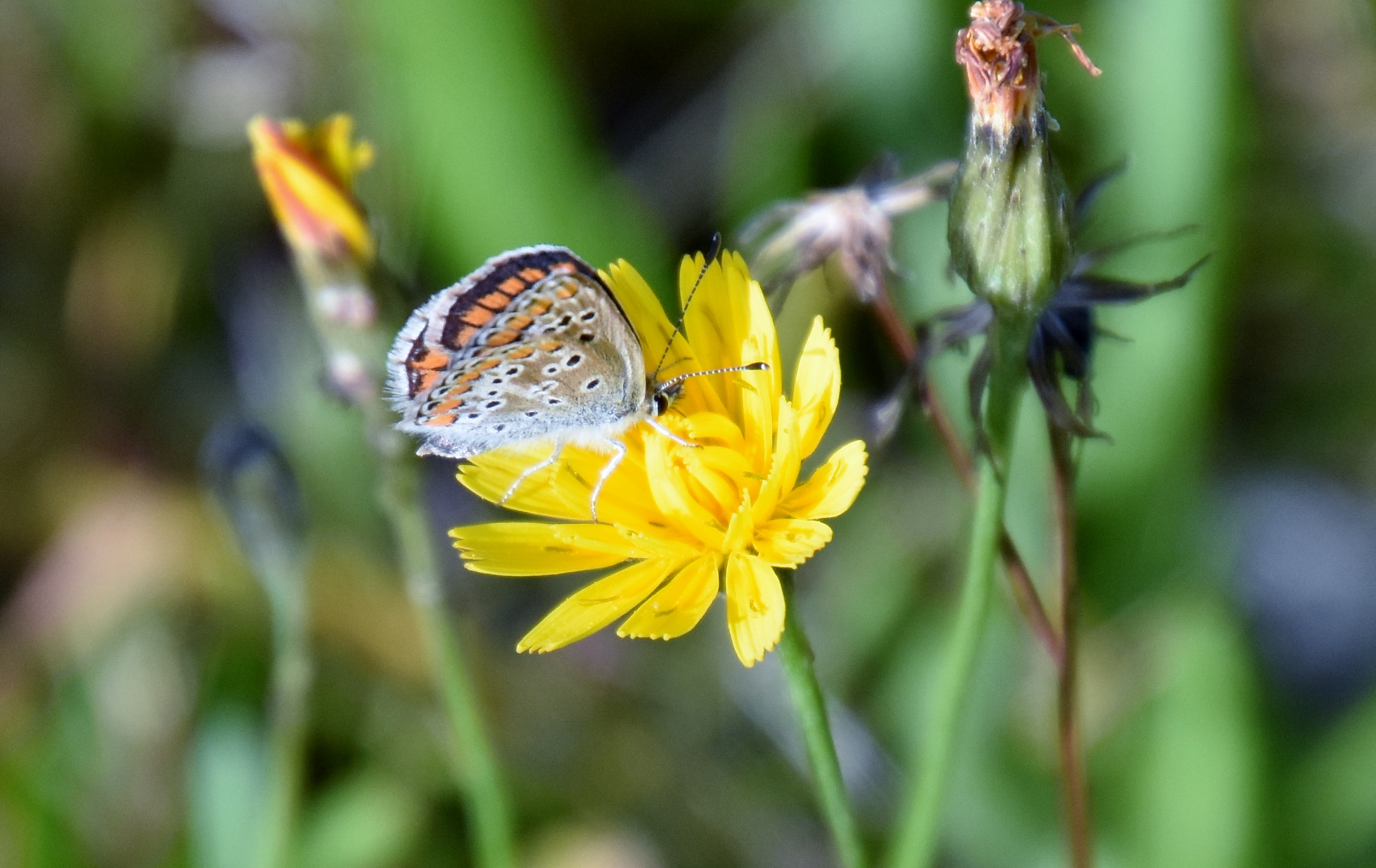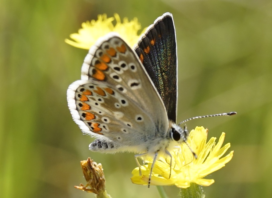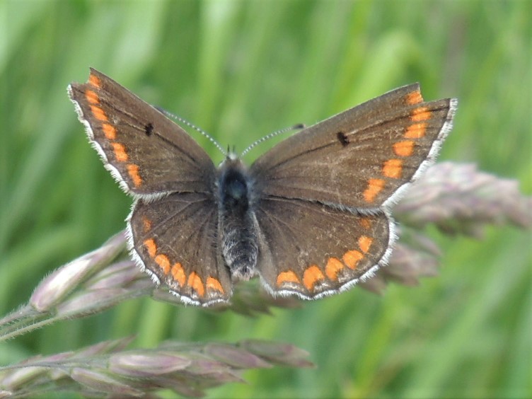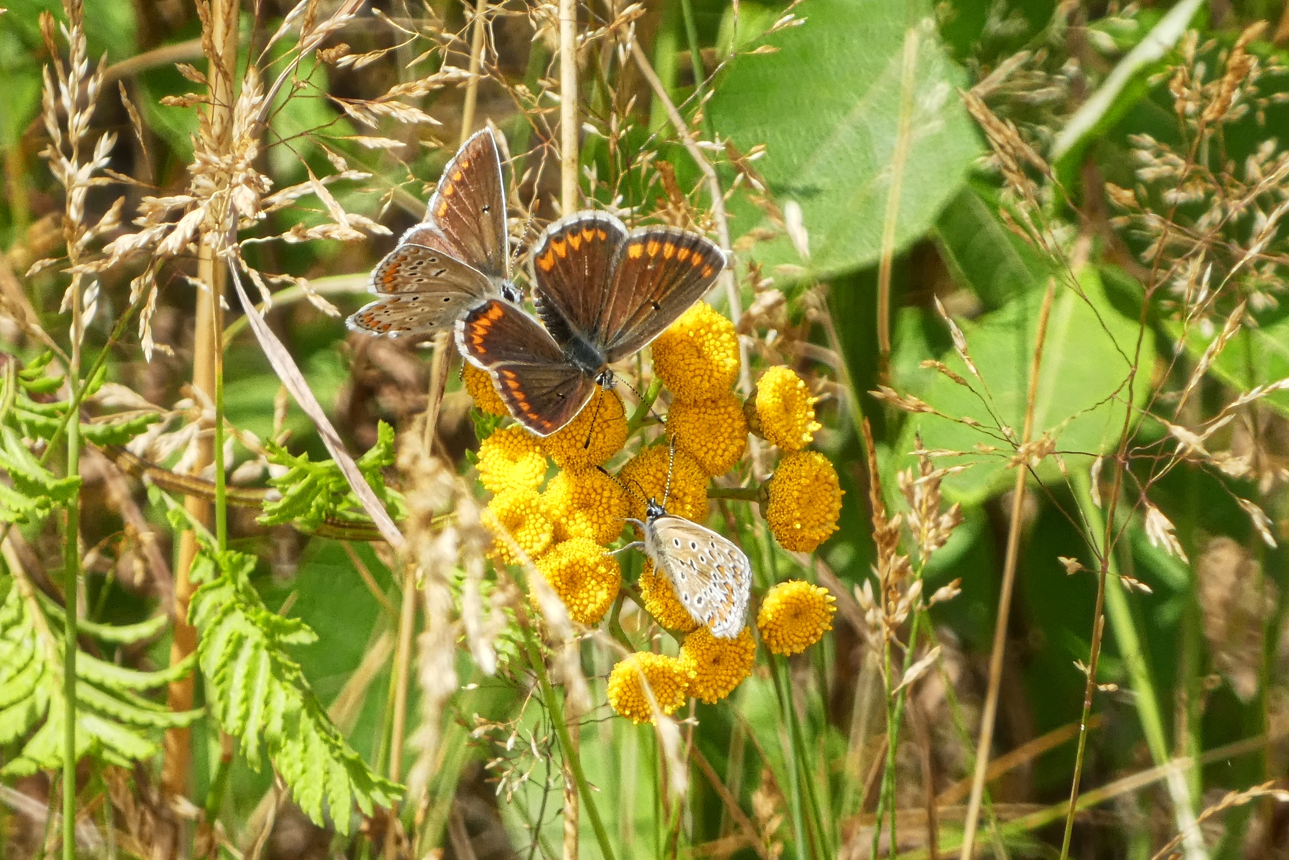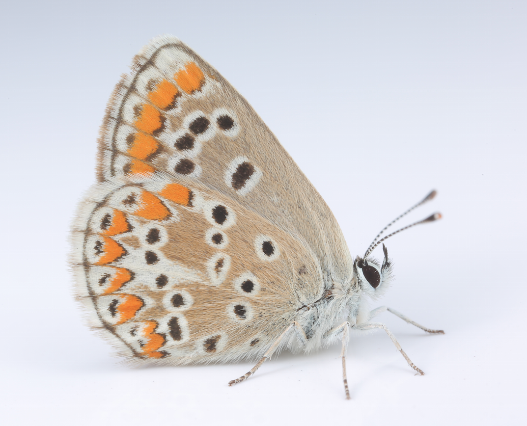 Kleiner Sonnenröschenbläuling (Aricia agestis (Denis & Schiffermüller, 1775)),Freital/Wurgwitz,Hammerteich,Wegrand auf Klee,Sep.2019