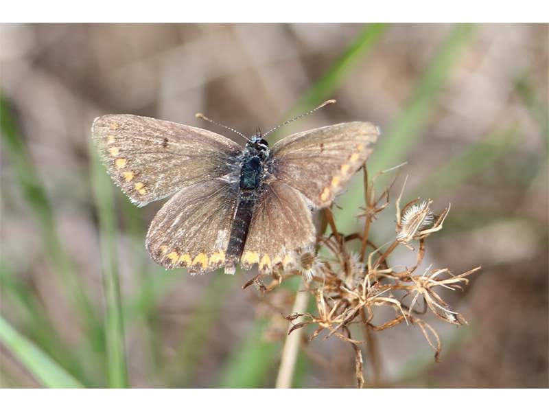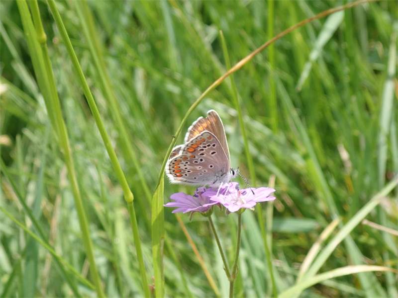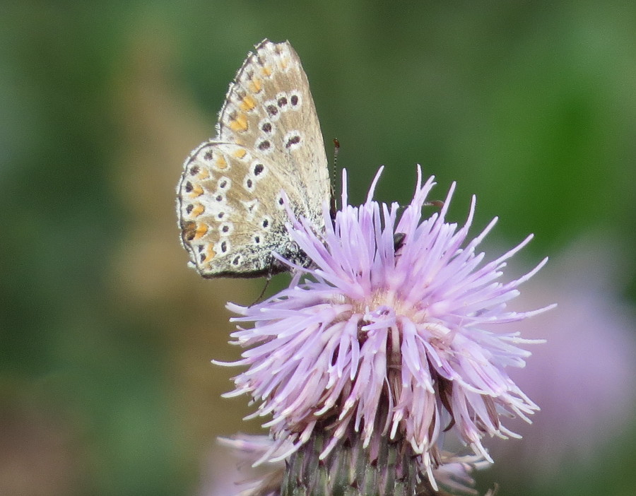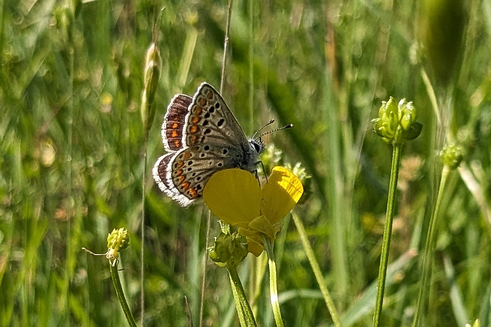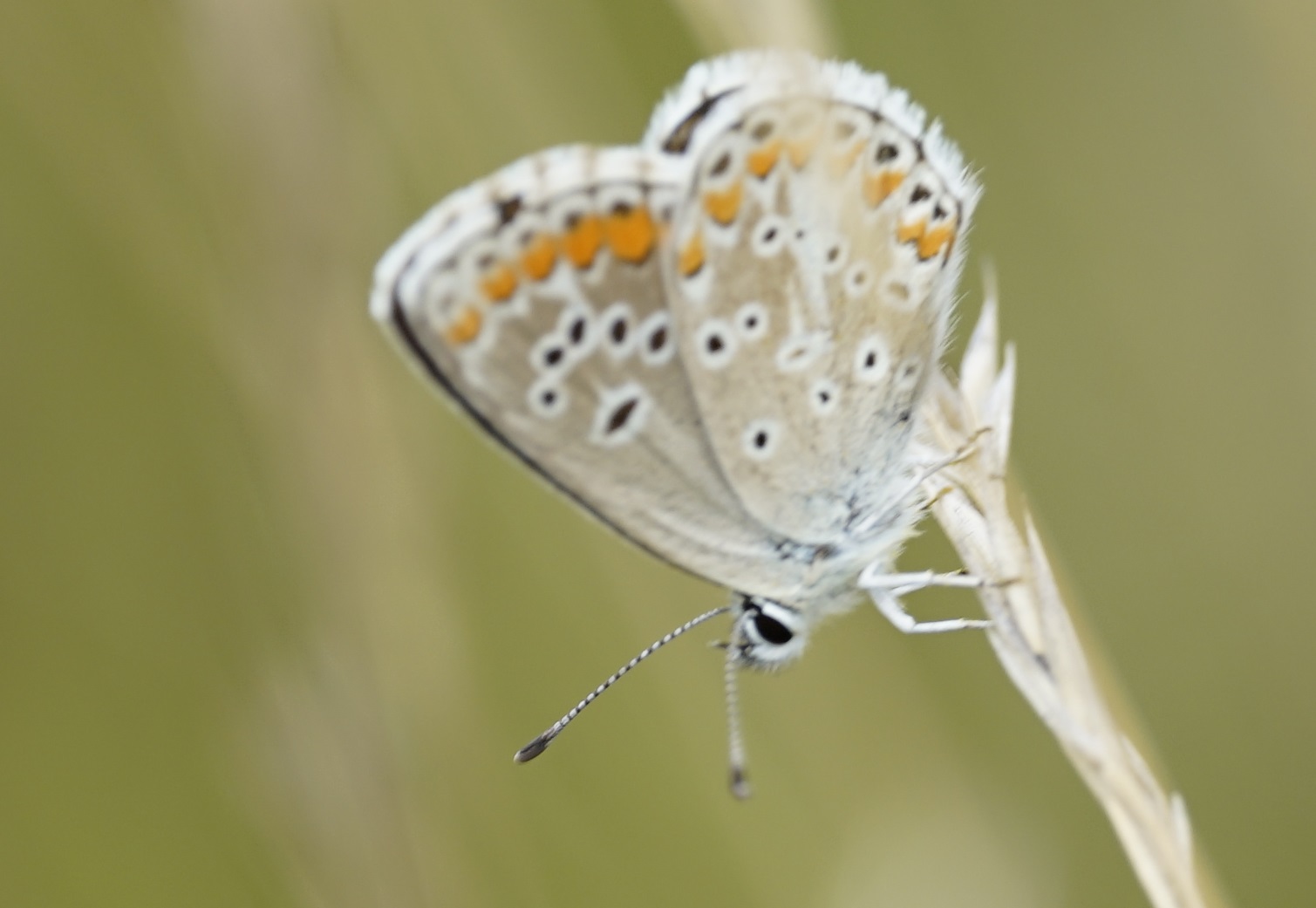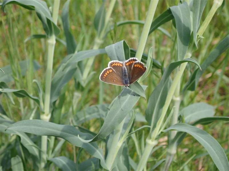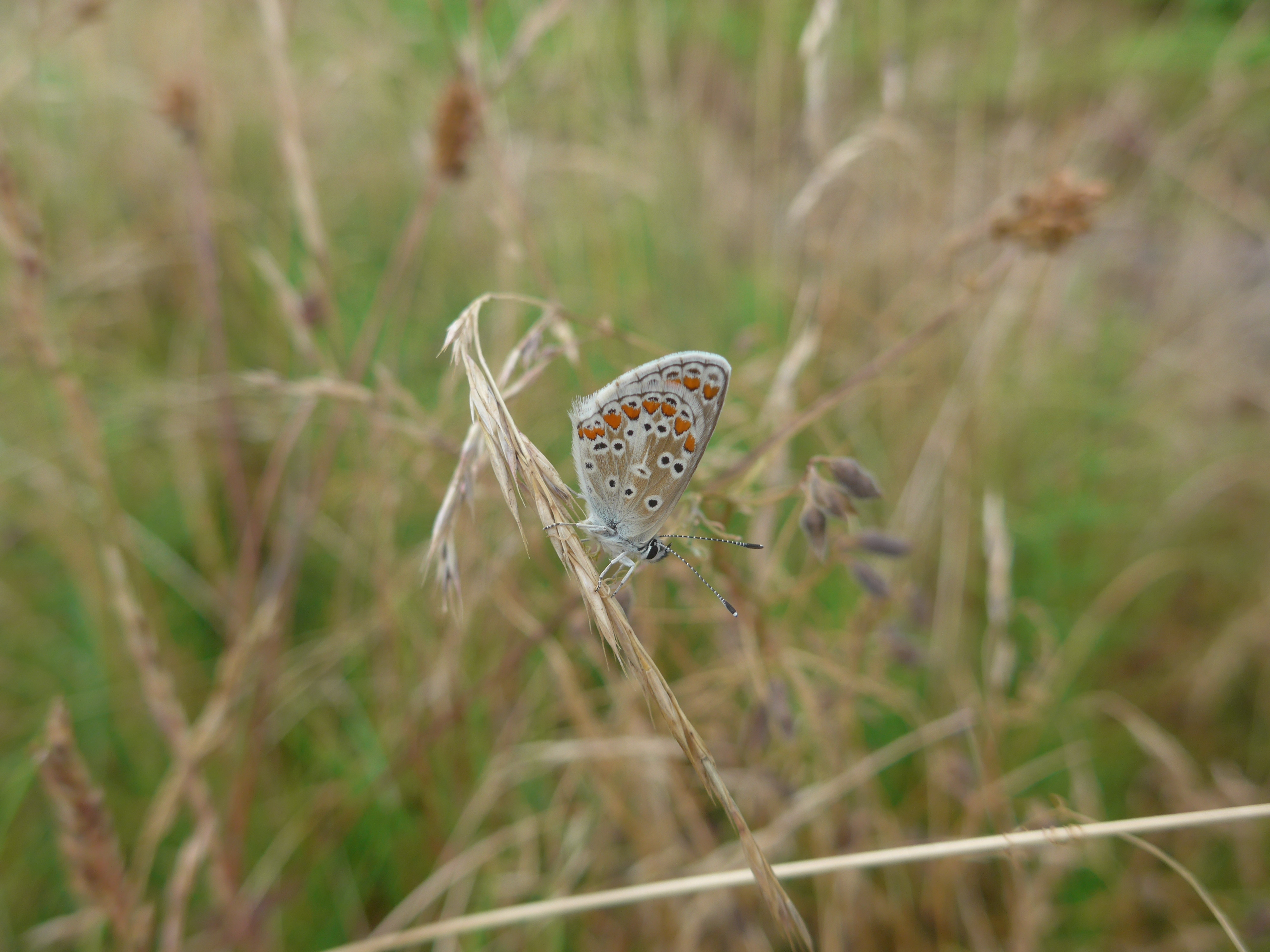 Kleiner Sonnenröschenbläuling (Aricia agestis (Denis & Schiffermüller, 1775)),Freital/Wurgwitz,Hammerteich,Wegrand auf Klee,Sep.2019