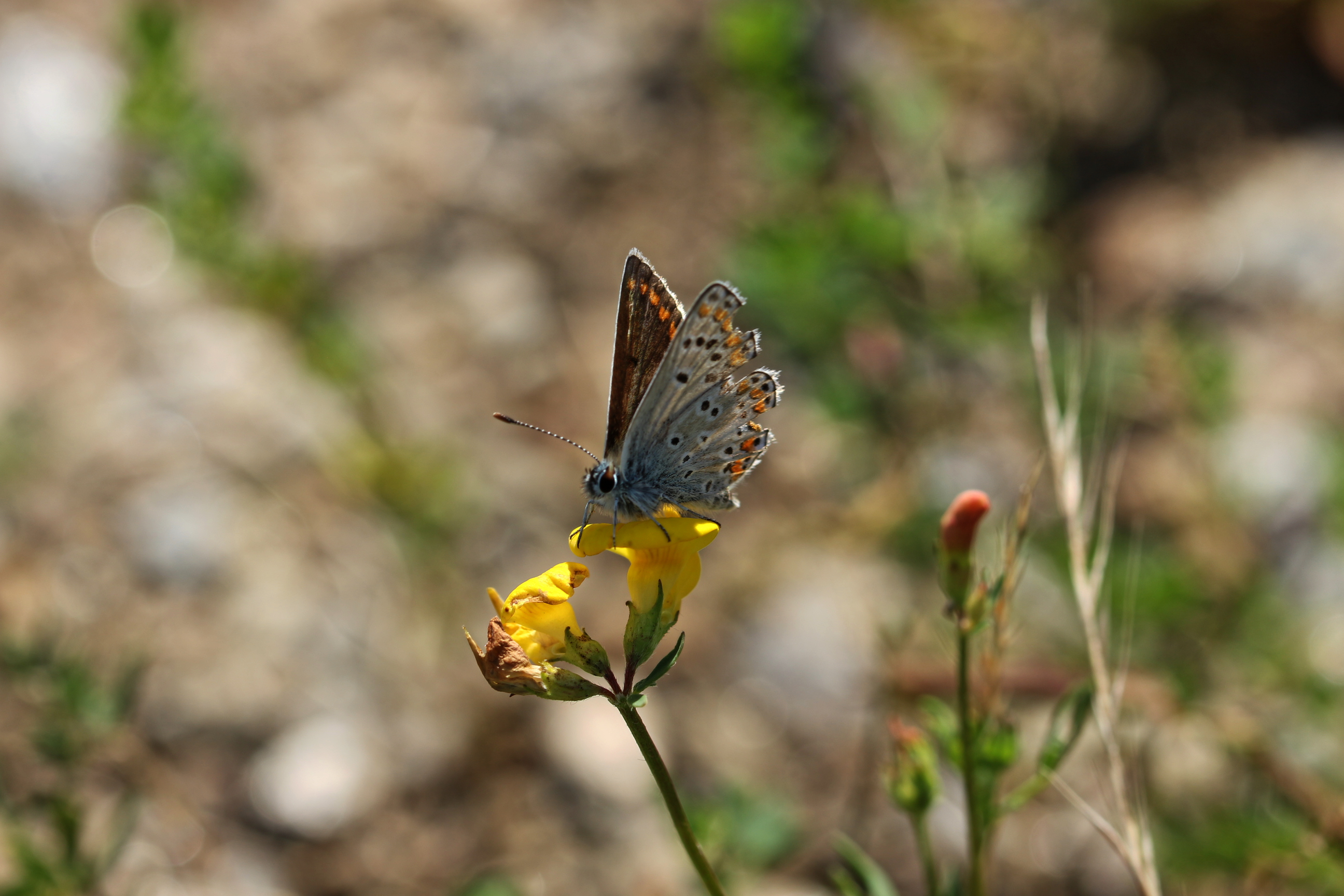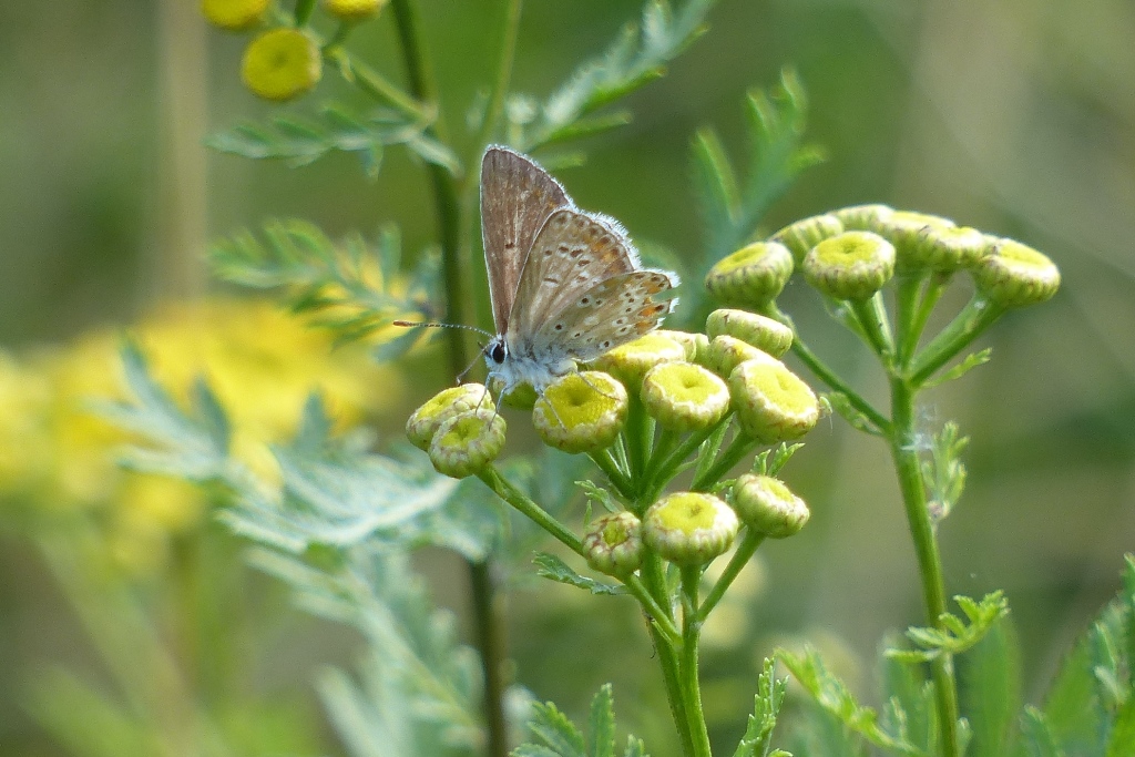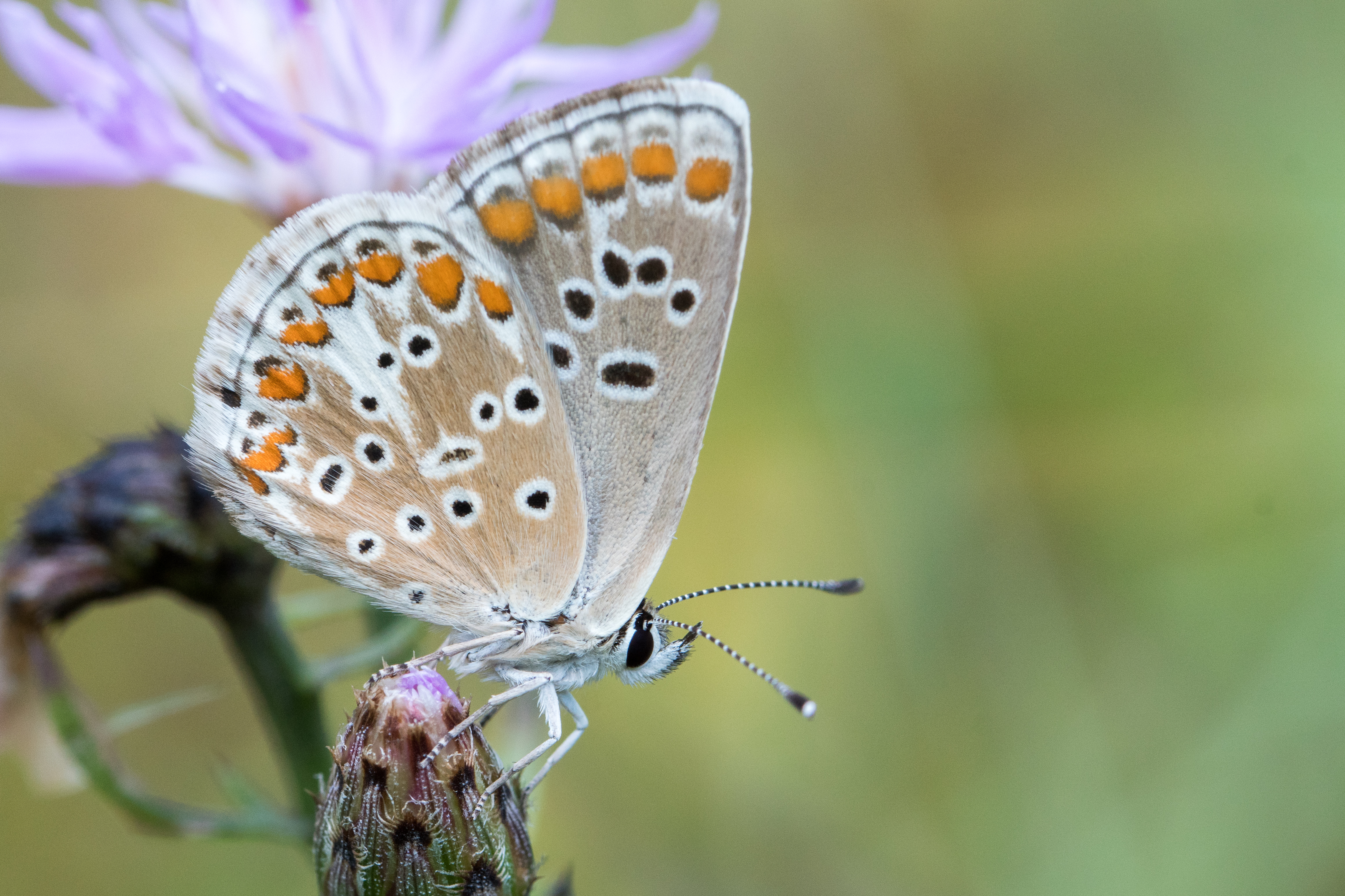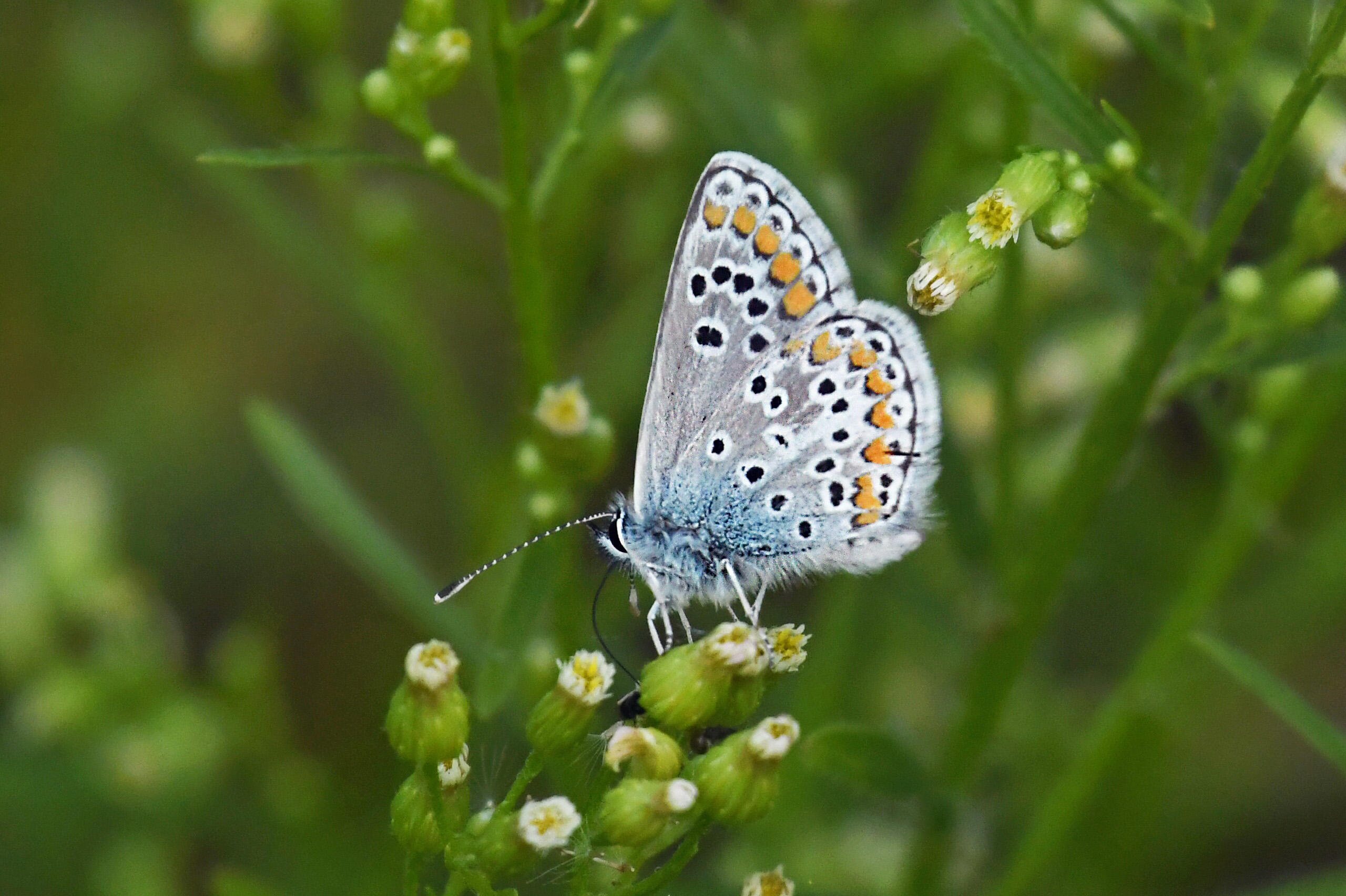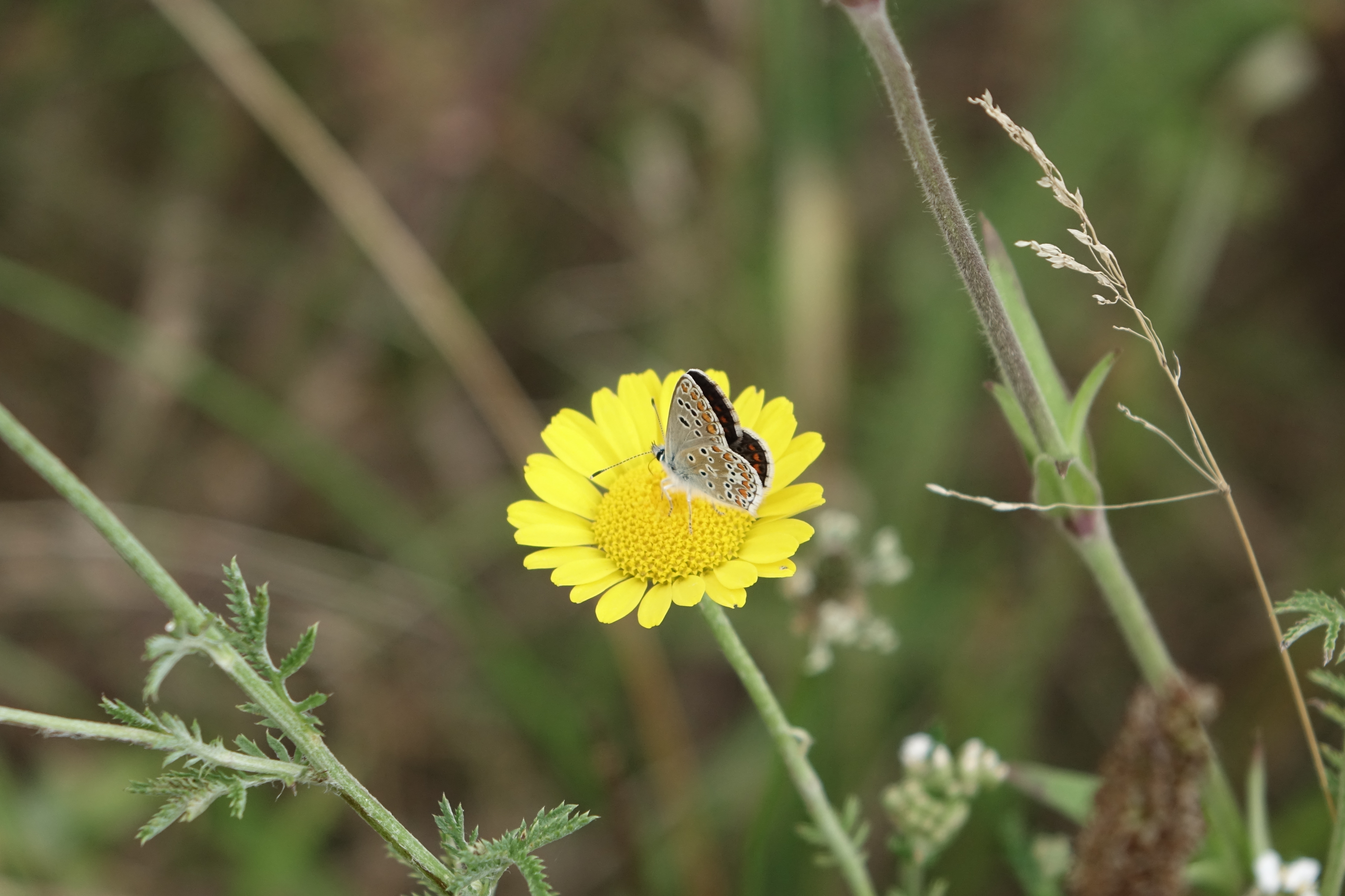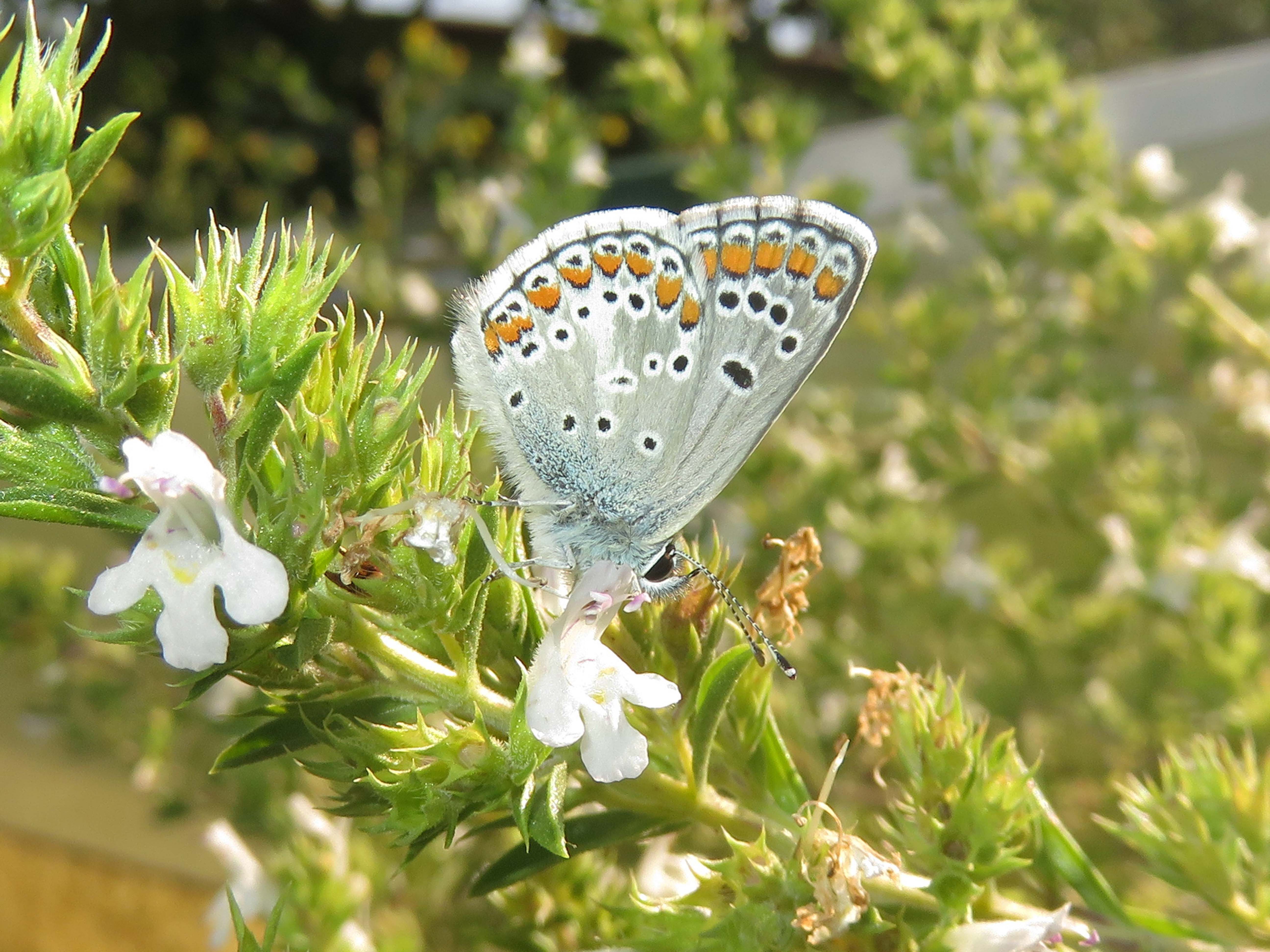 Kleiner Sonnenröschenbläuling (Aricia agestis (Denis & Schiffermüller, 1775)),Freital/Wurgwitz,Hammerteich,Wegrand auf Klee,Sep.2019