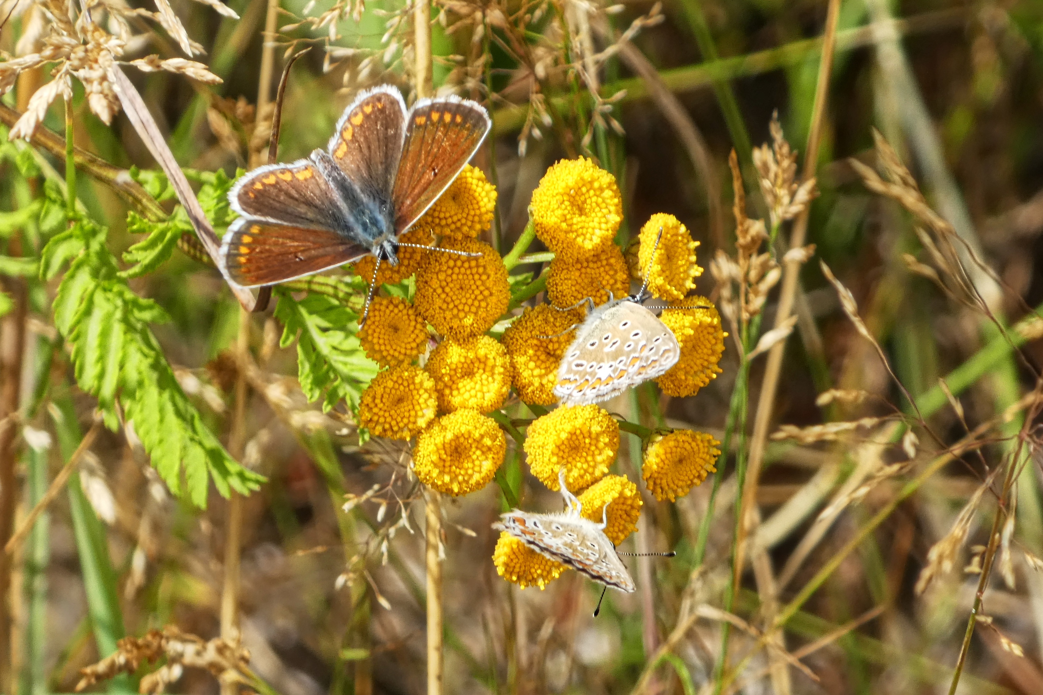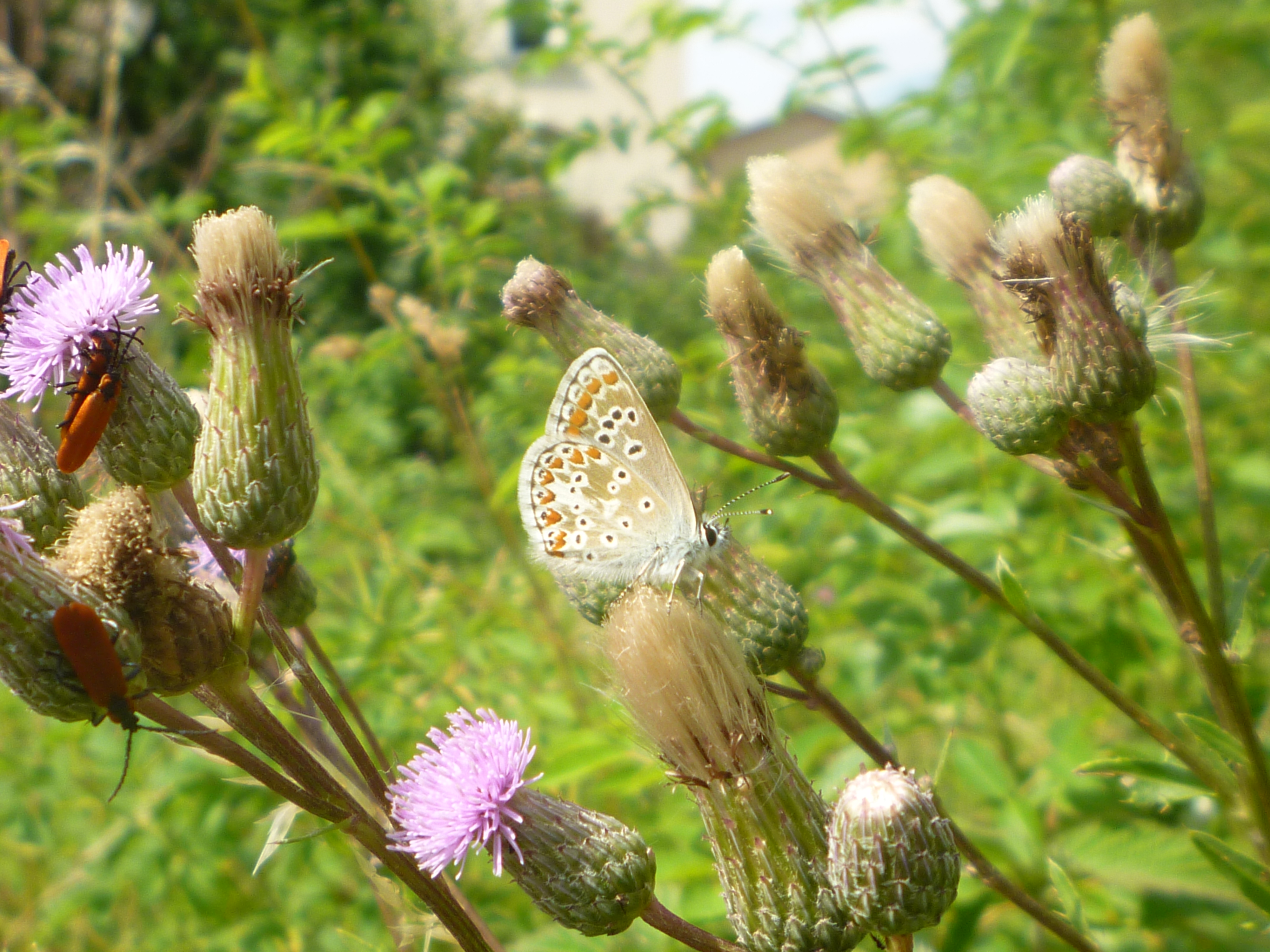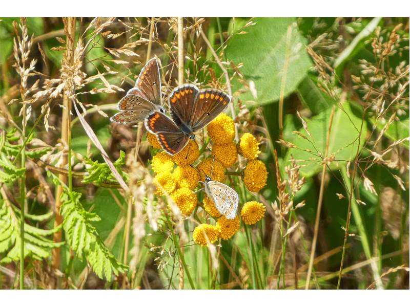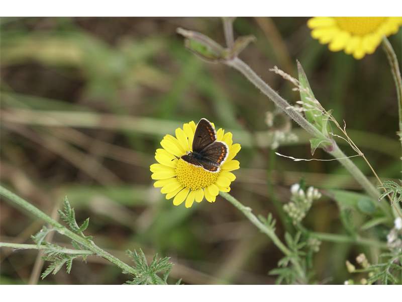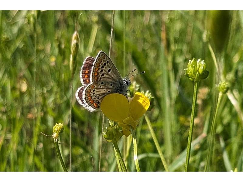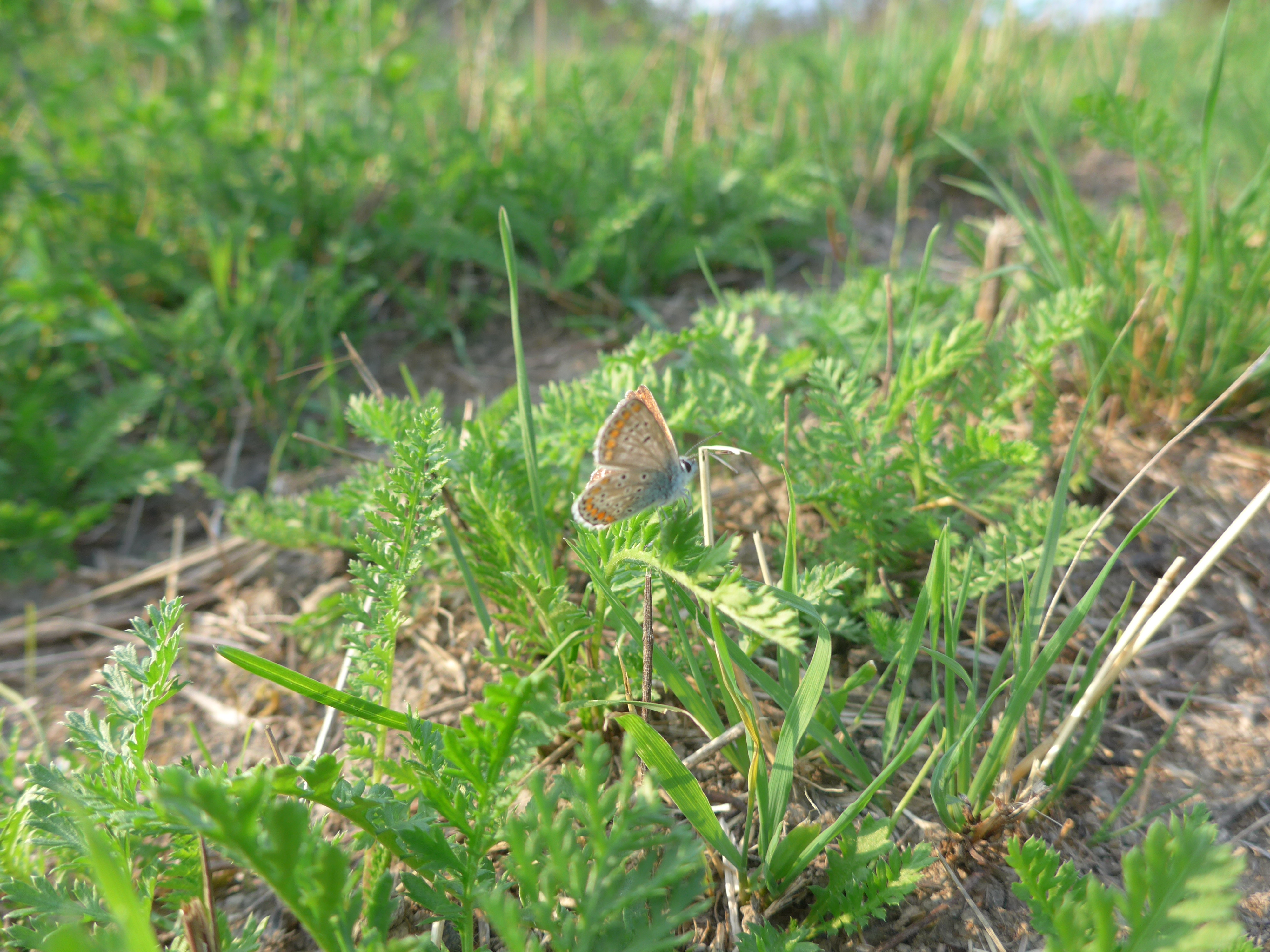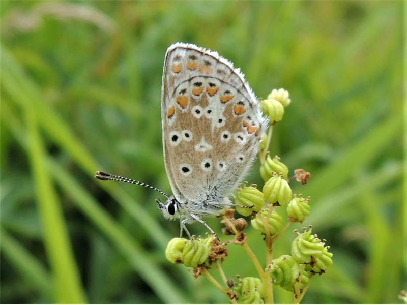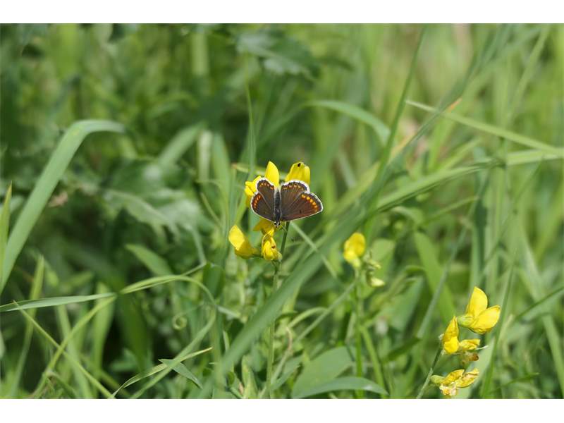 Kleiner Sonnenröschenbläuling (Aricia agestis (Denis & Schiffermüller, 1775)),Freital/Wurgwitz,Hammerteich,Wegrand auf Klee,Sep.2019
