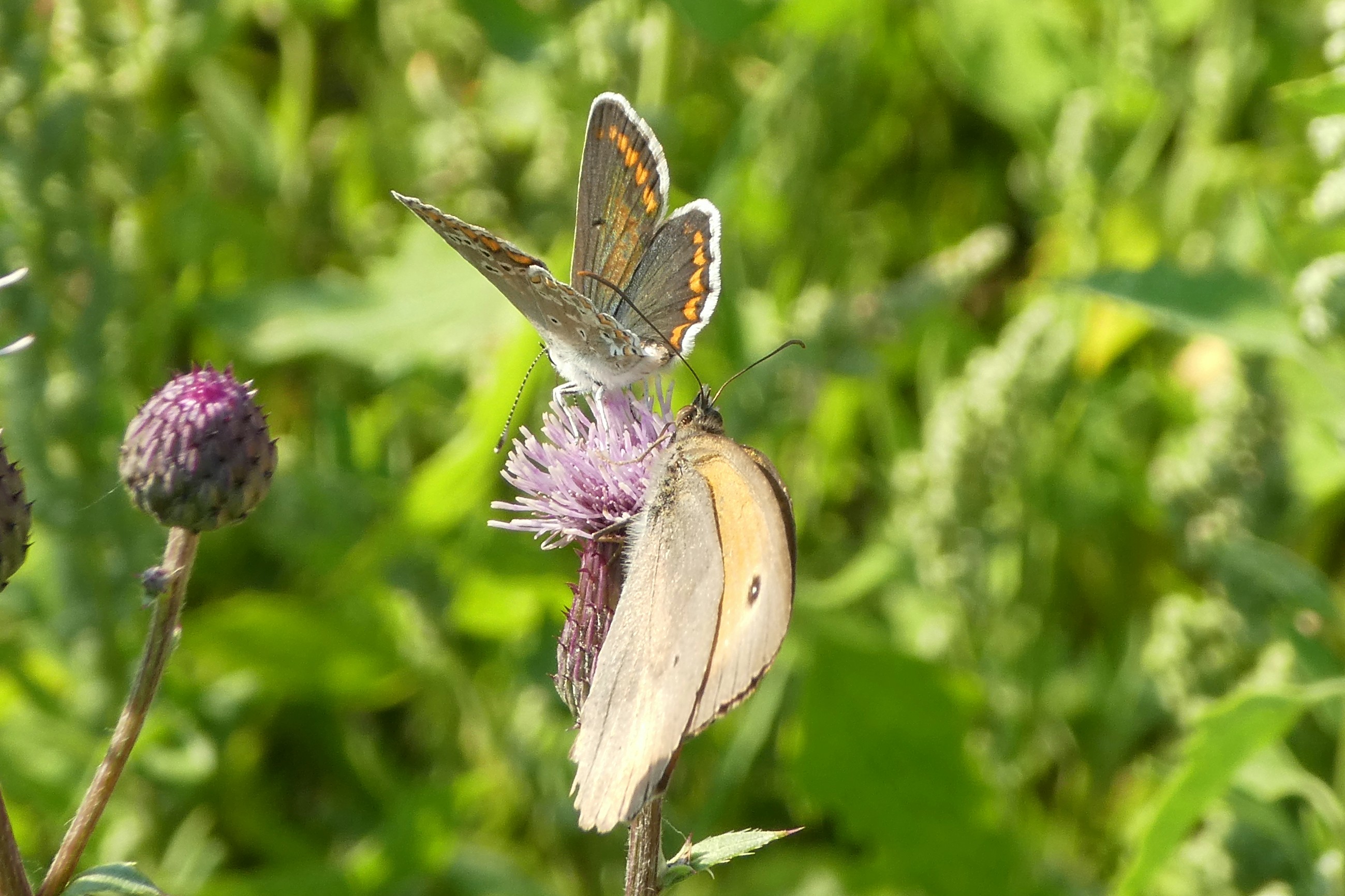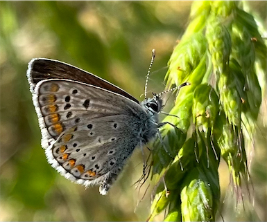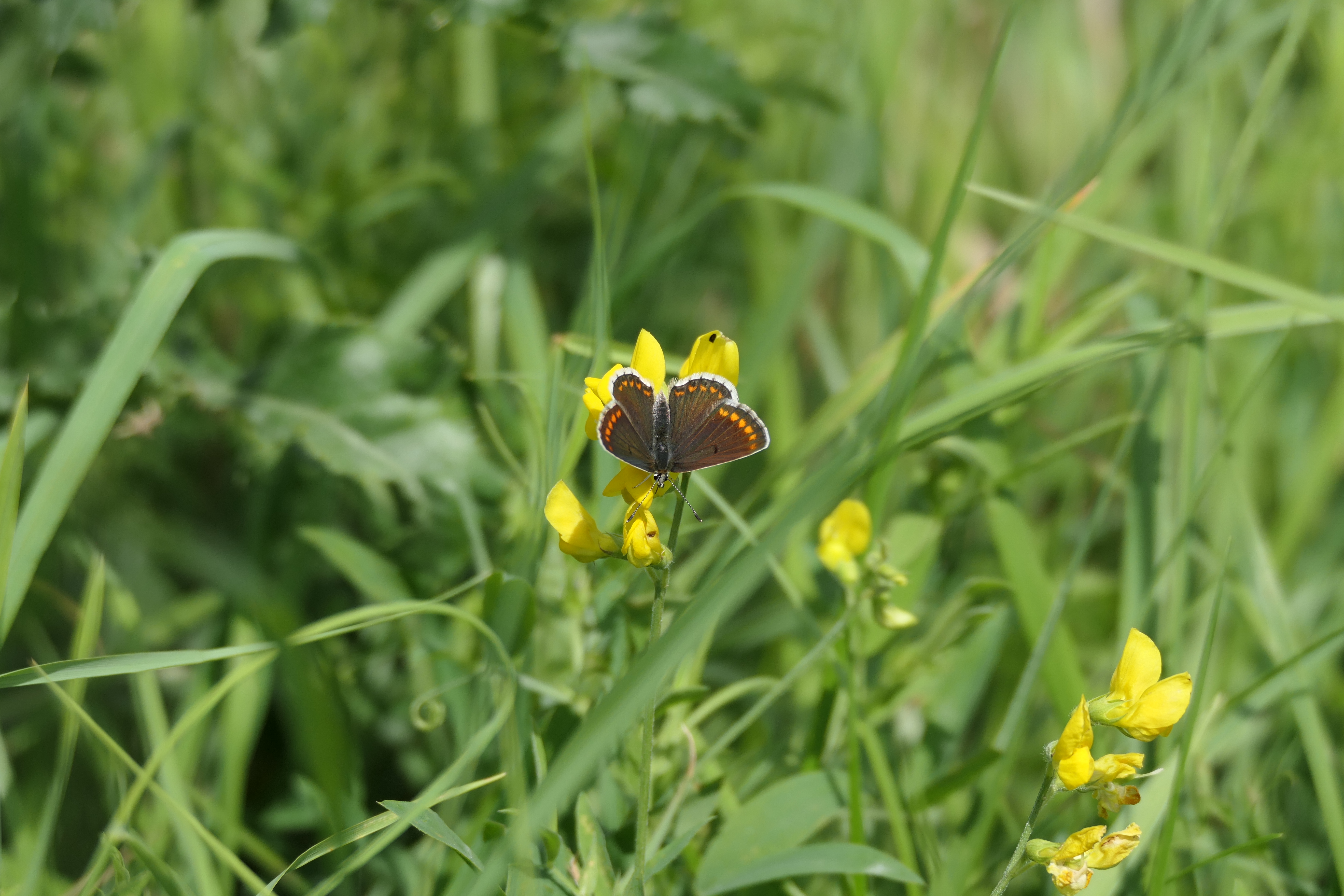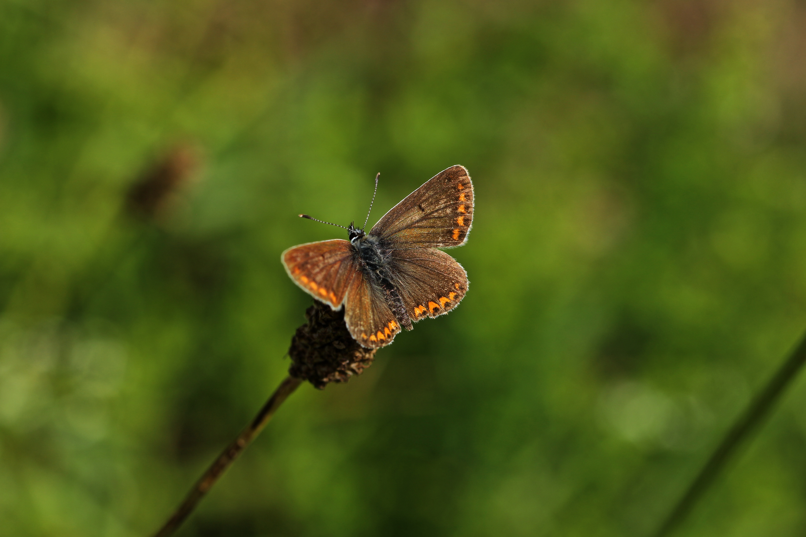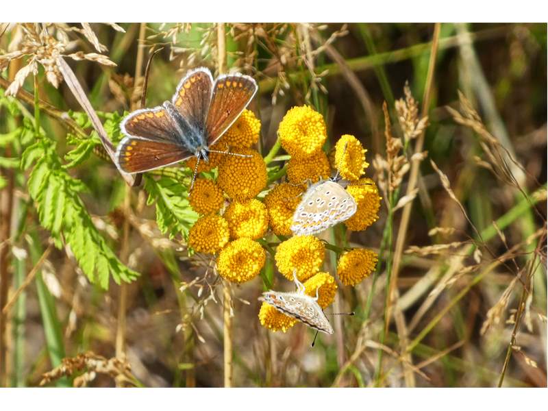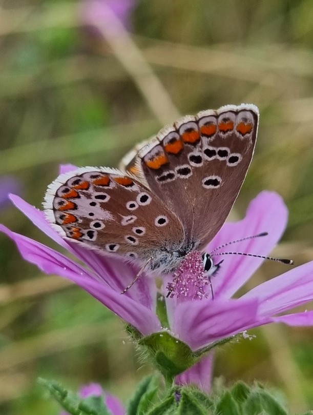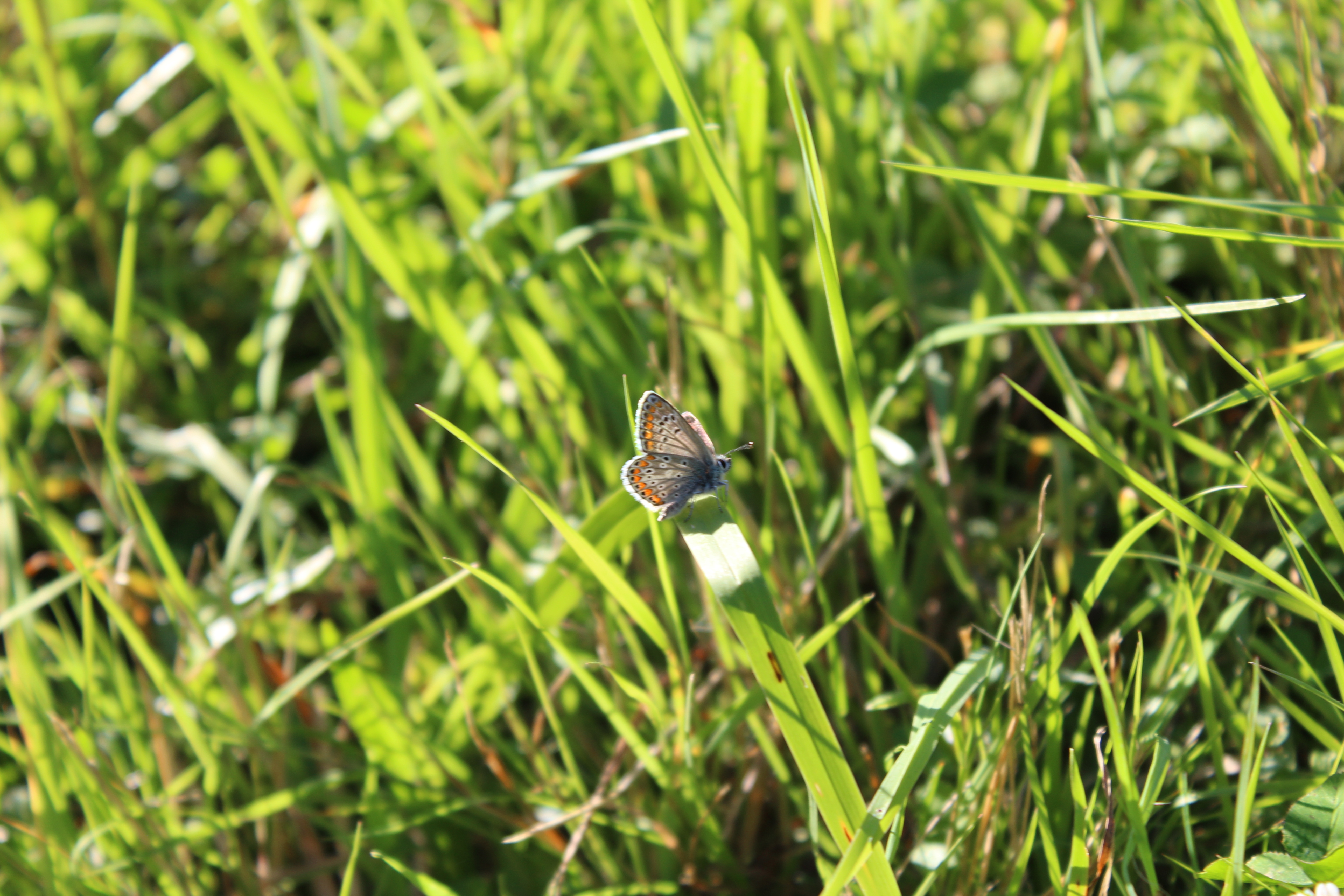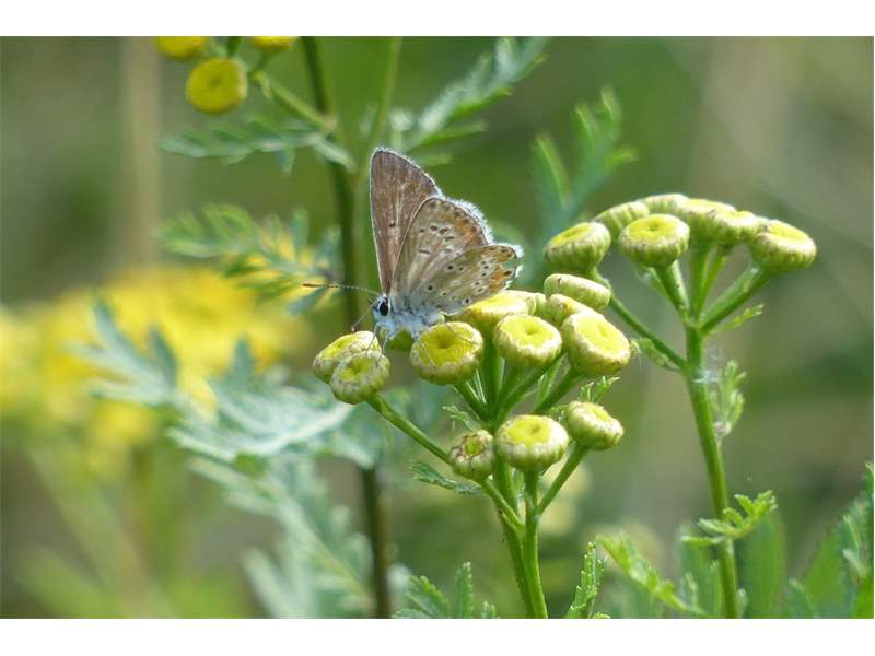 Kleiner Sonnenröschenbläuling (Aricia agestis (Denis & Schiffermüller, 1775)),Freital/Wurgwitz,Hammerteich,Wegrand auf Klee,Sep.2019