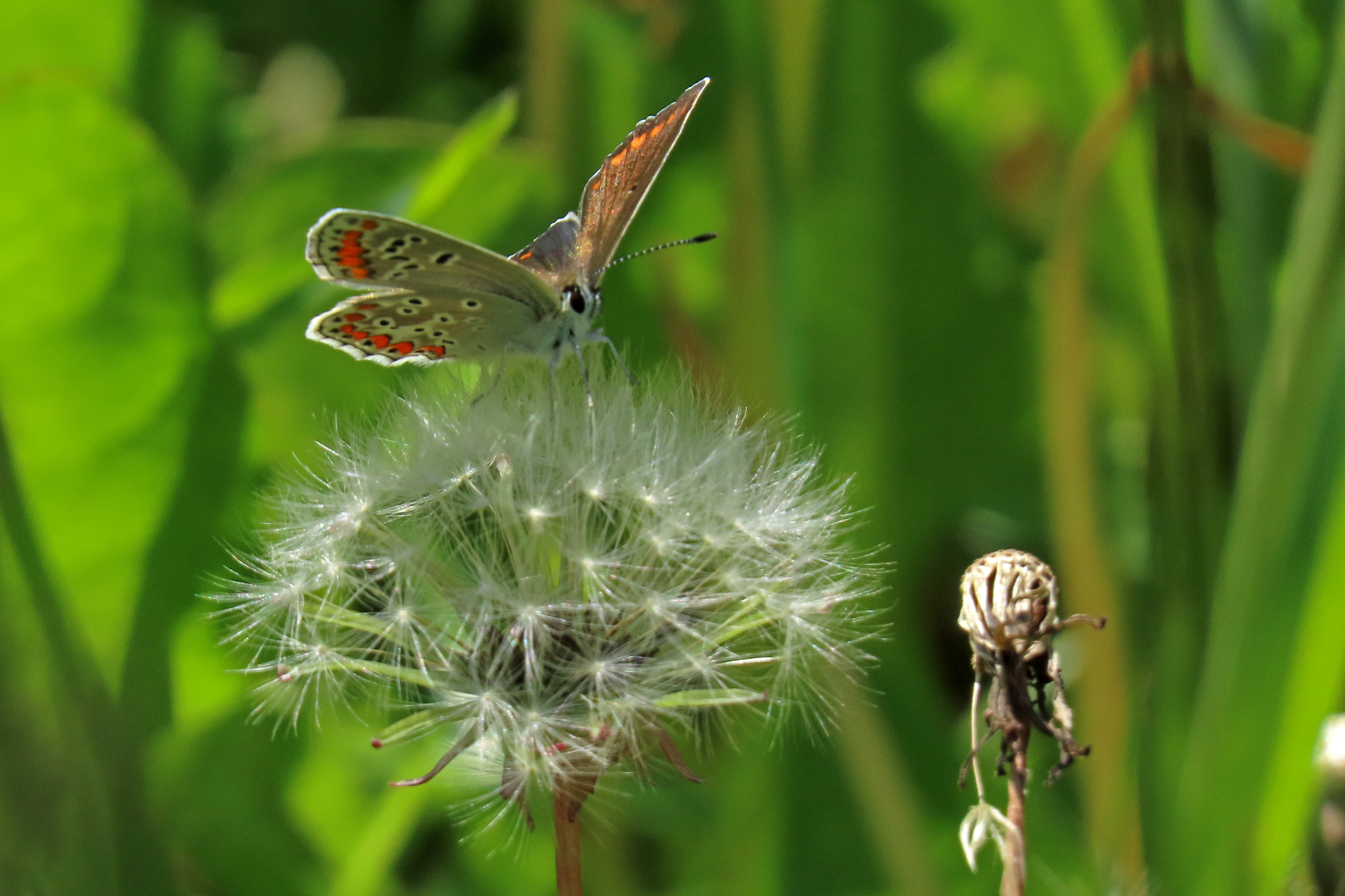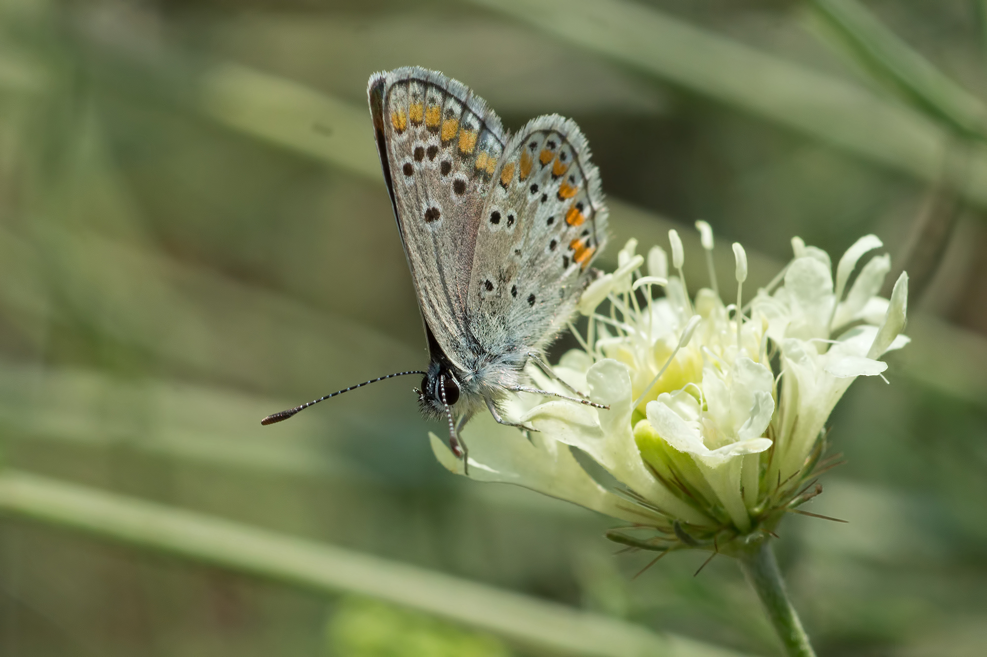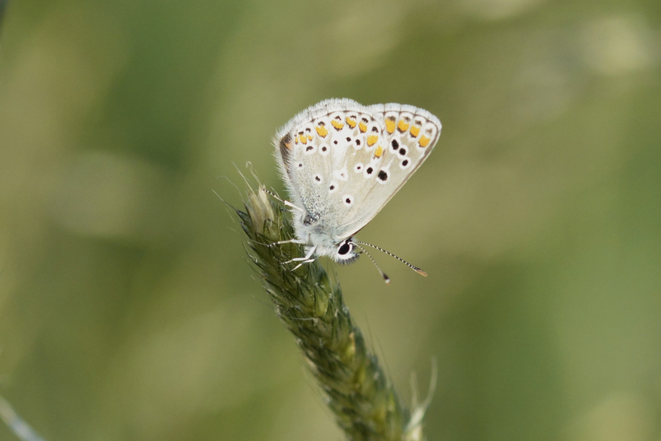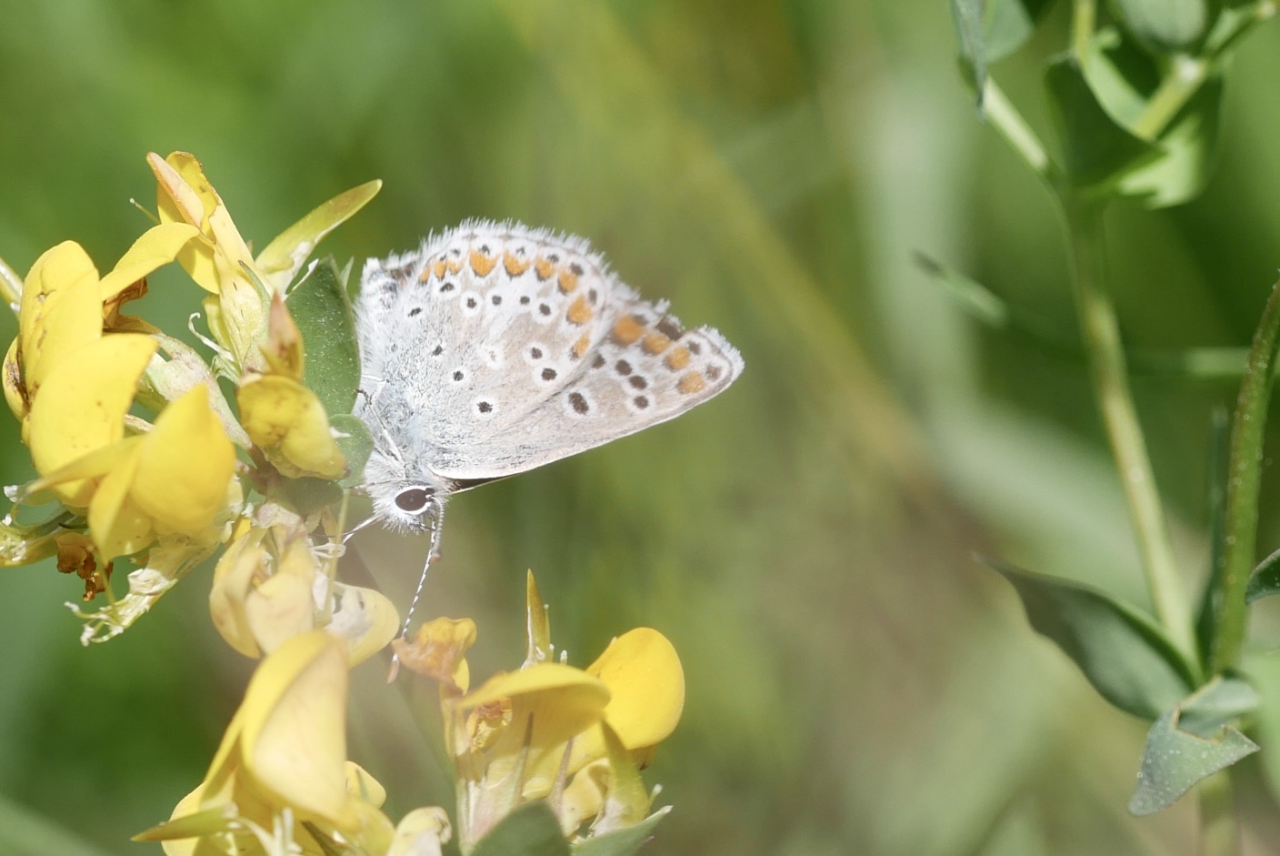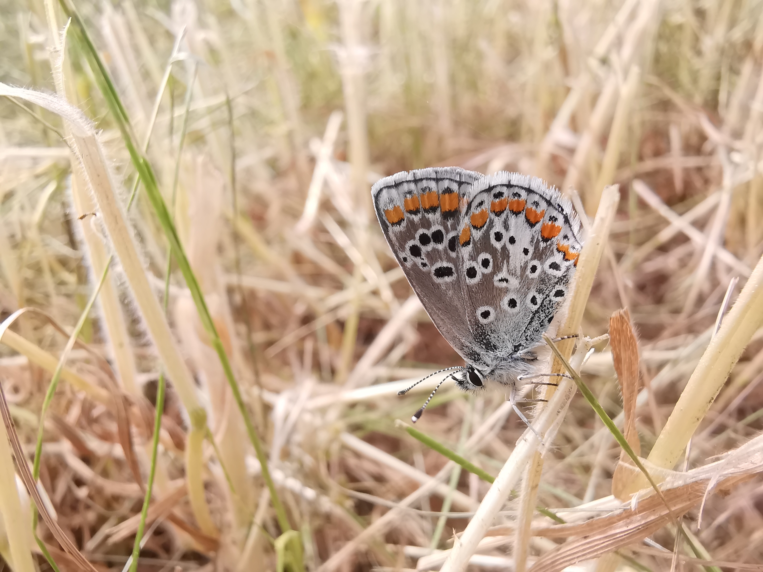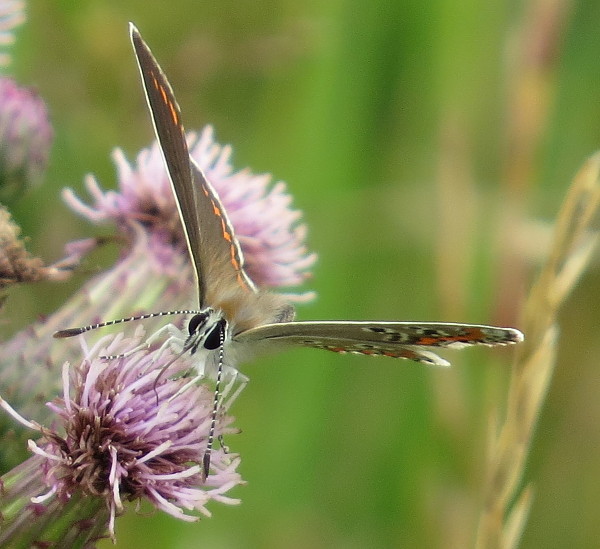 Kleiner Sonnenröschenbläuling (Aricia agestis (Denis & Schiffermüller, 1775)),Freital/Wurgwitz,Hammerteich,Wegrand auf Klee,Sep.2019