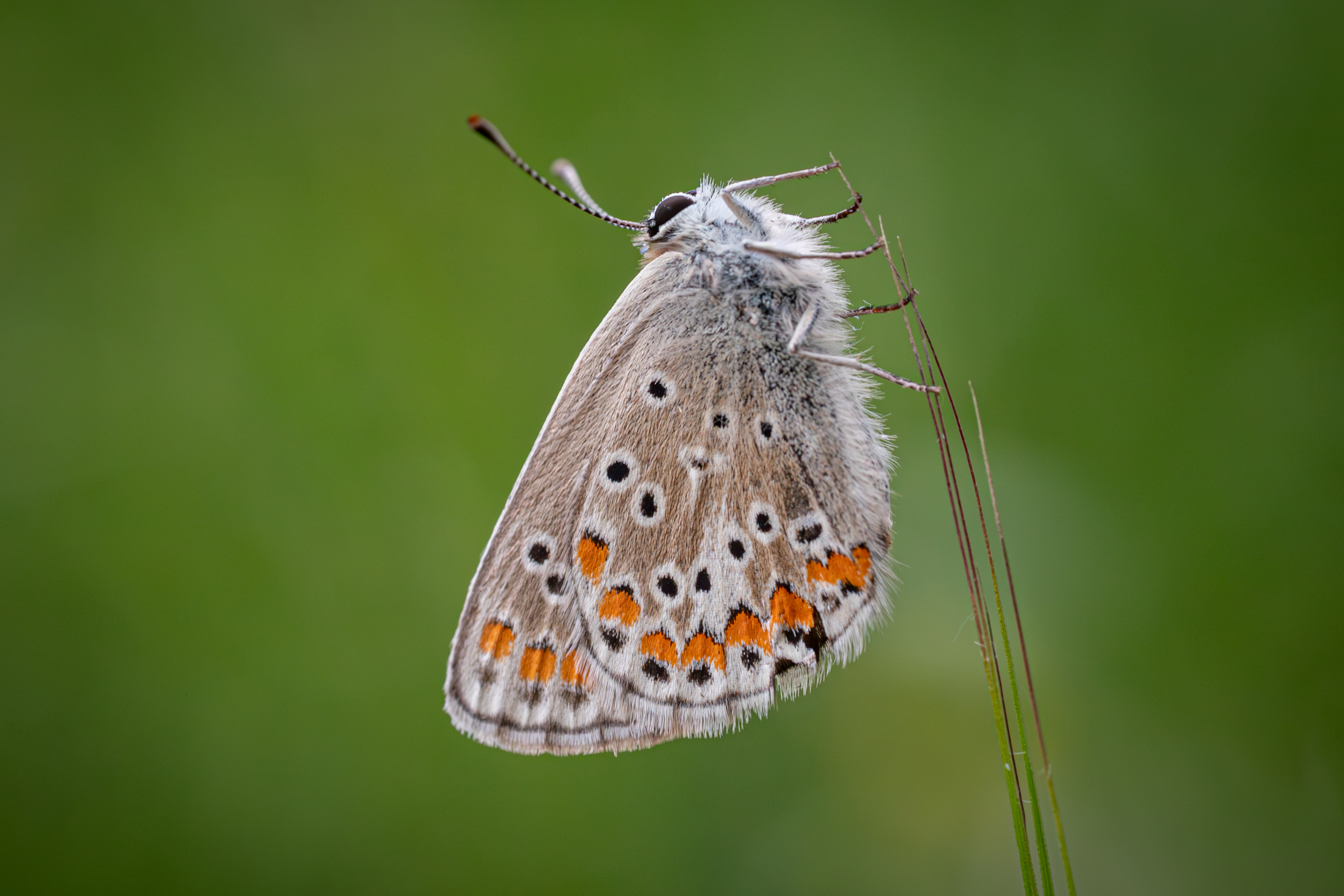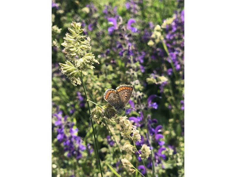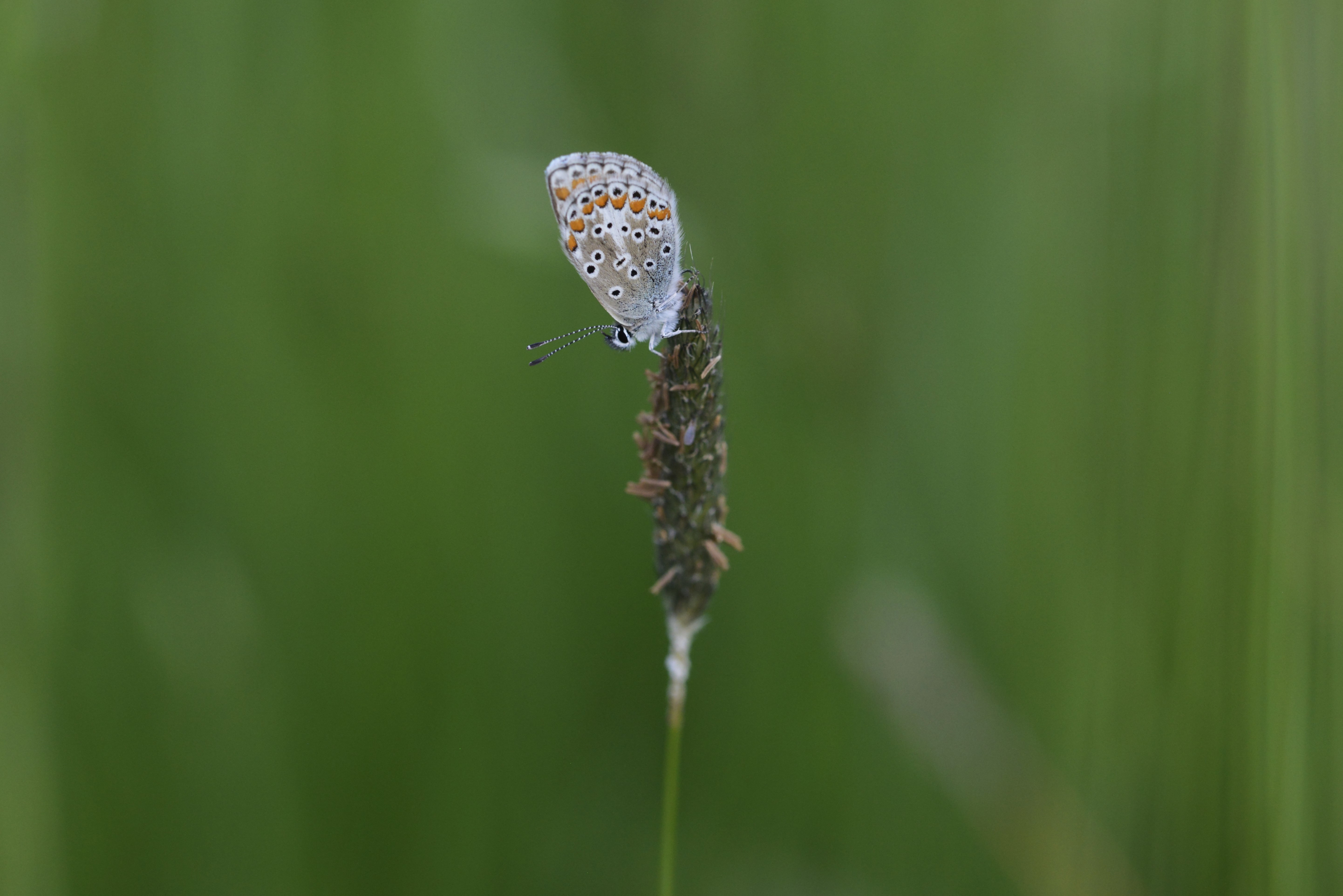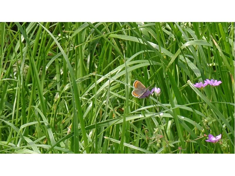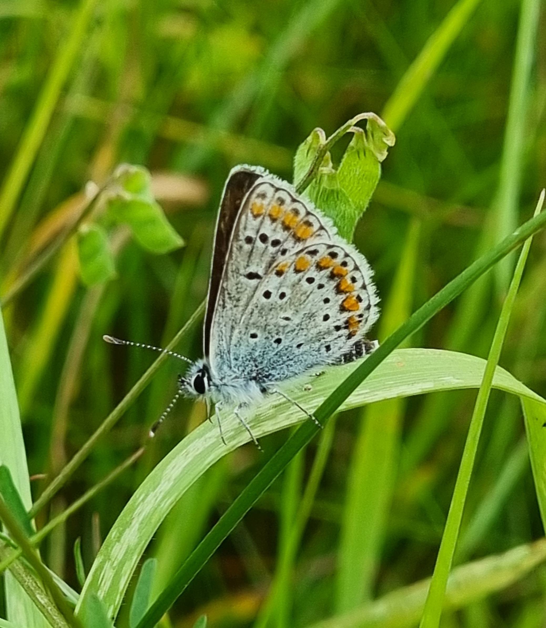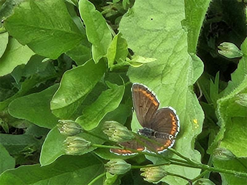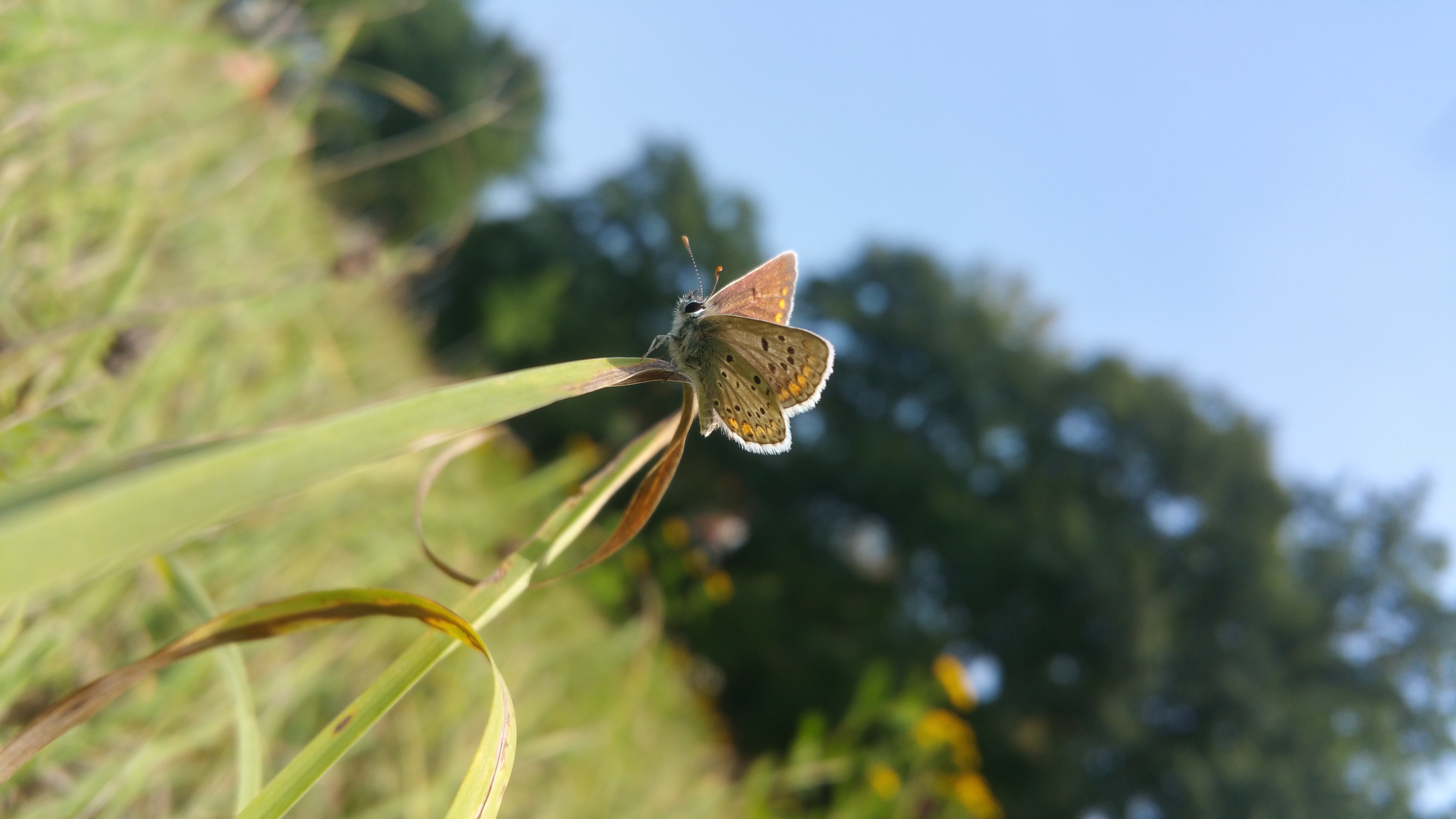 Kleiner Sonnenröschenbläuling (Aricia agestis (Denis & Schiffermüller, 1775)),Freital/Wurgwitz,Hammerteich,Wegrand auf Klee,Sep.2019