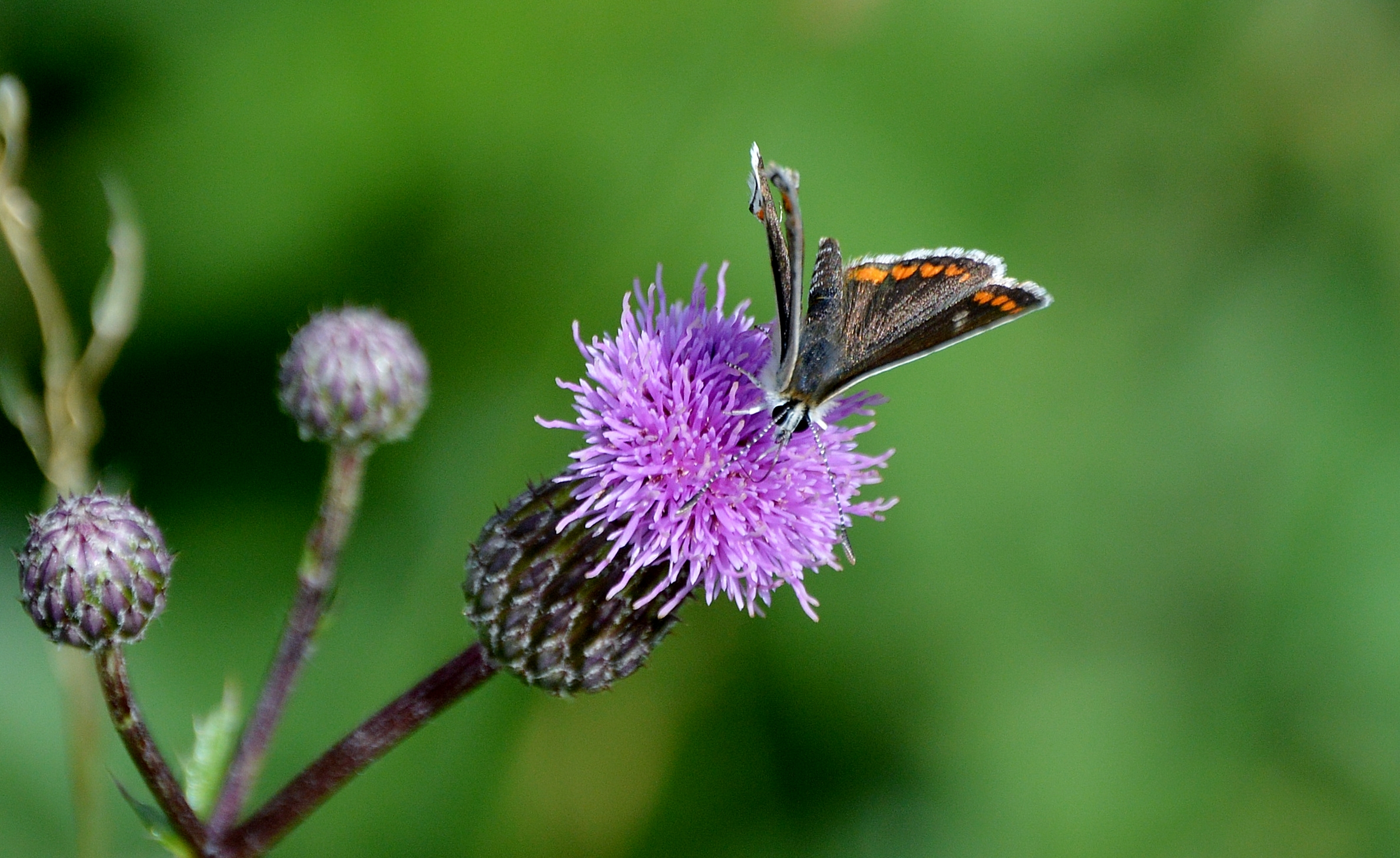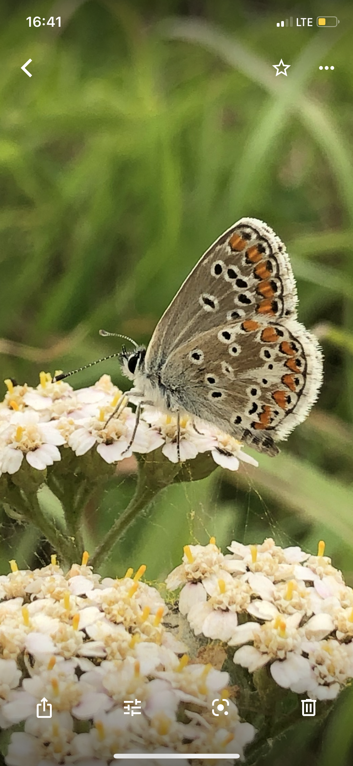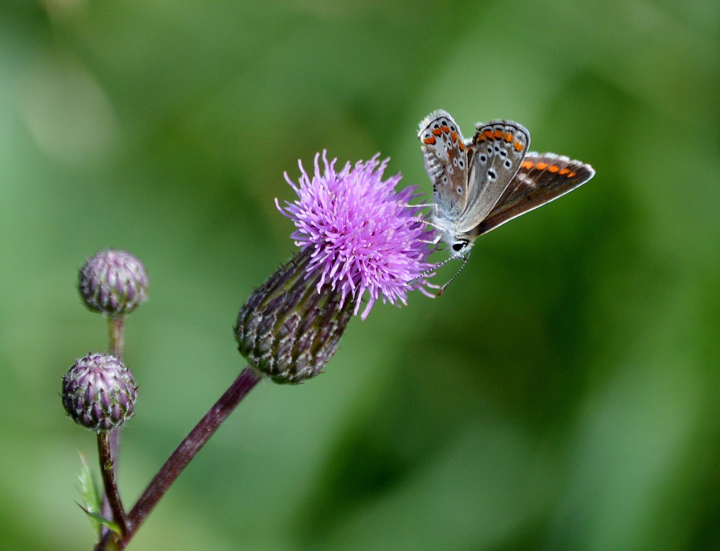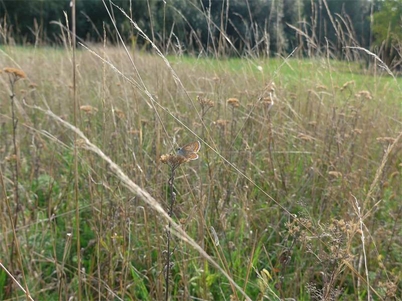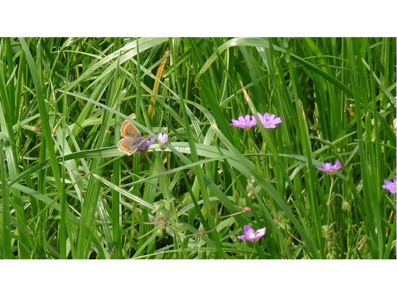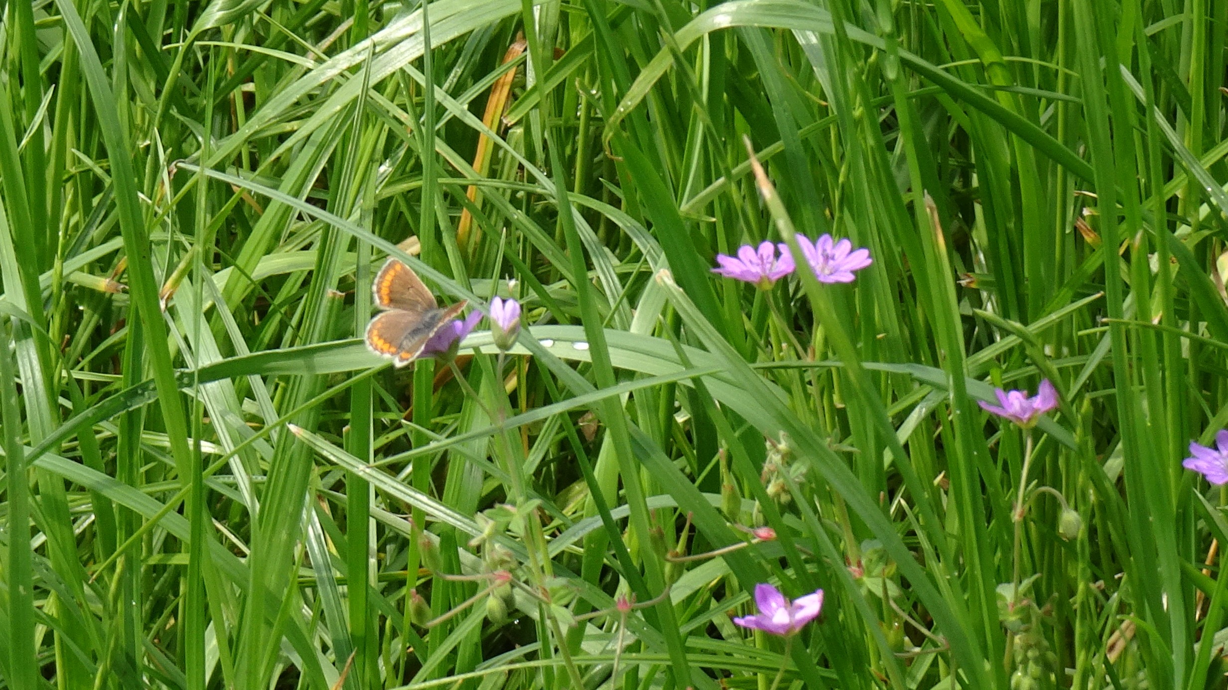 Kleiner Sonnenröschenbläuling (Aricia agestis (Denis & Schiffermüller, 1775)),Freital/Wurgwitz,Hammerteich,Wegrand auf Klee,Sep.2019