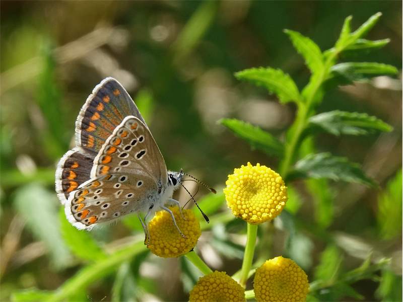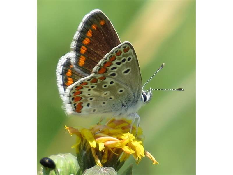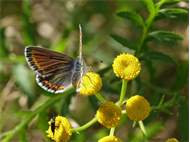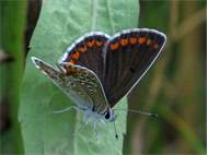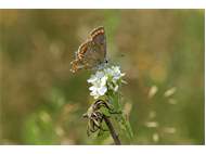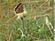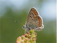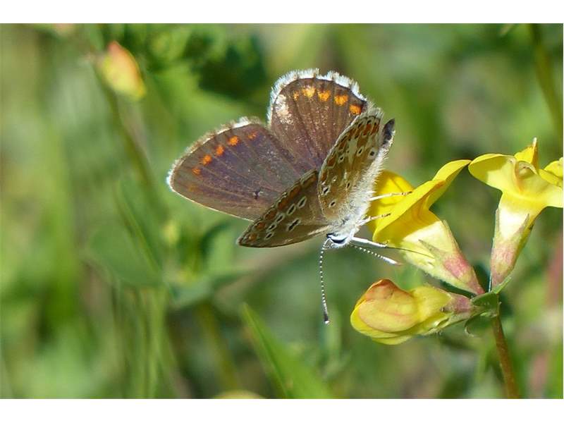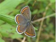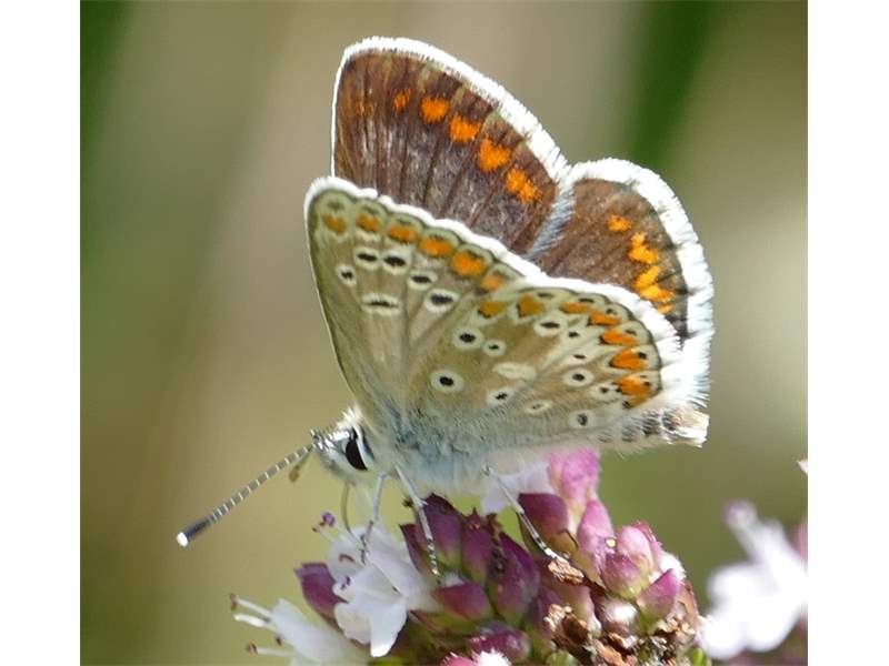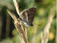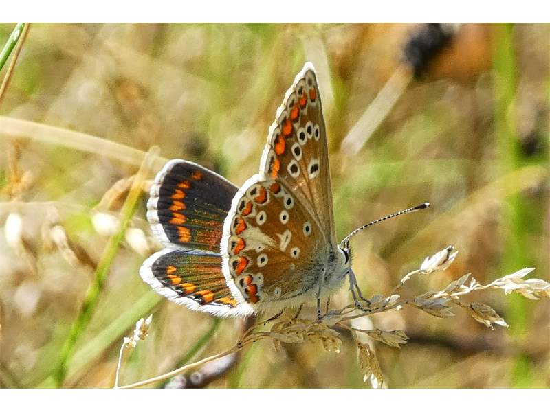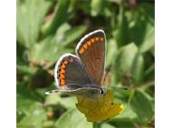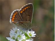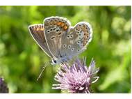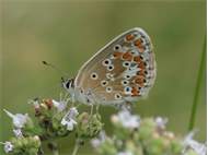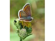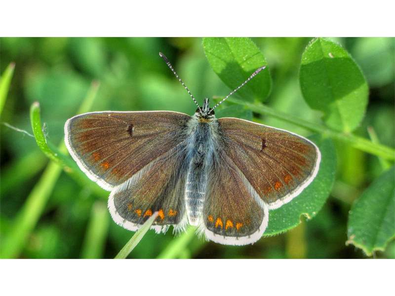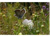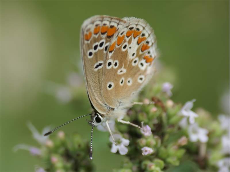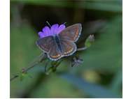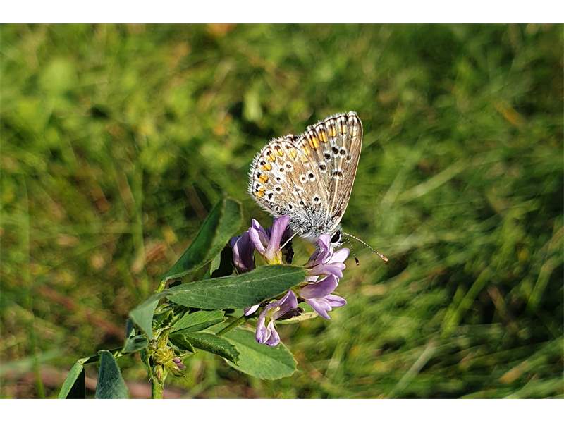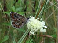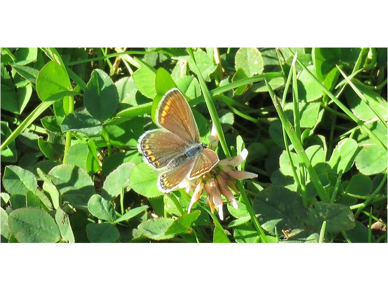 Kleiner Sonnenröschenbläuling (Aricia agestis (Denis & Schiffermüller, 1775)),Freital/Wurgwitz,Hammerteich,Wegrand auf Klee,Sep.2019 (© Manfred Wonka)( Bild vergrößern)