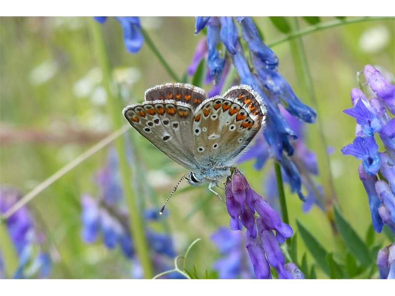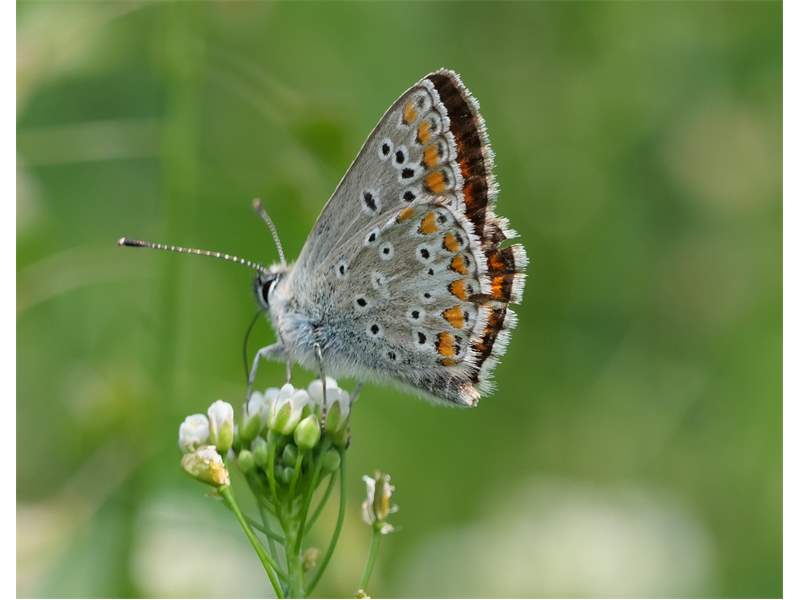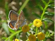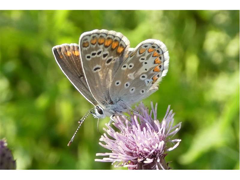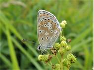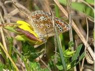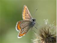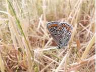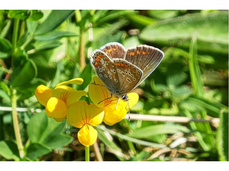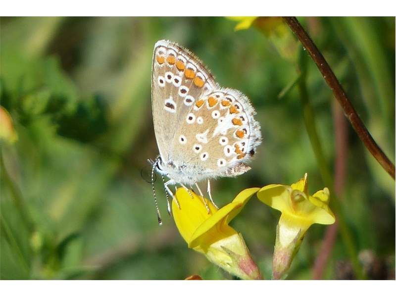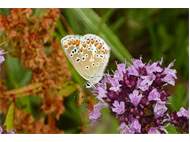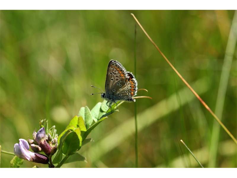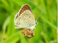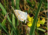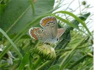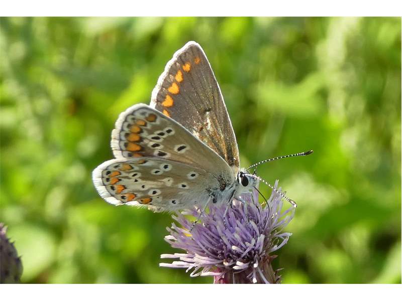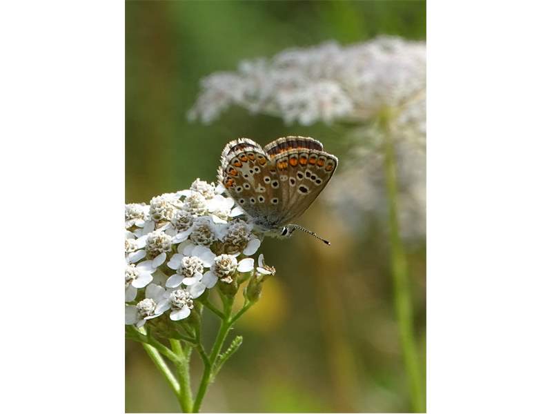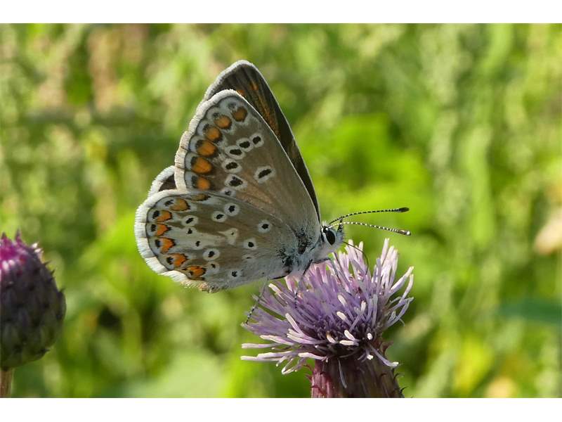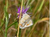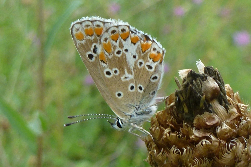 Kleiner Sonnenröschenbläuling (Aricia agestis (Denis & Schiffermüller, 1775)),Freital/Wurgwitz,Hammerteich,Wegrand auf Klee,Sep.2019 (© Manfred Wonka)( Bild vergrößern)