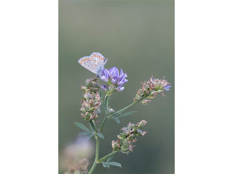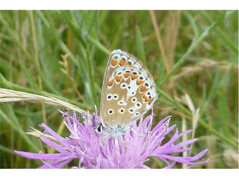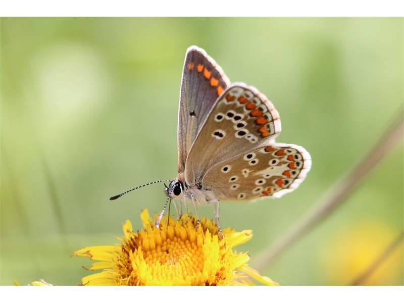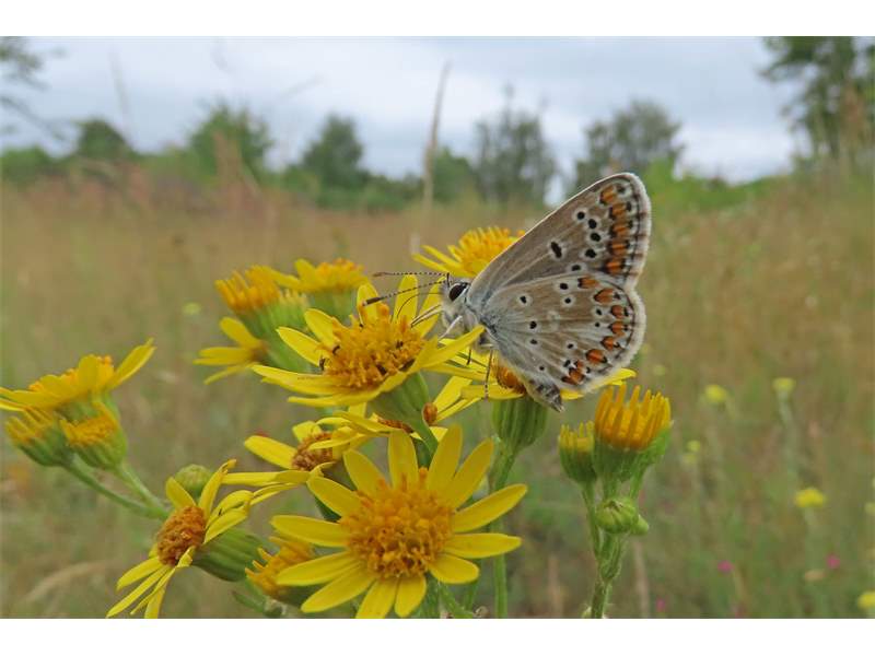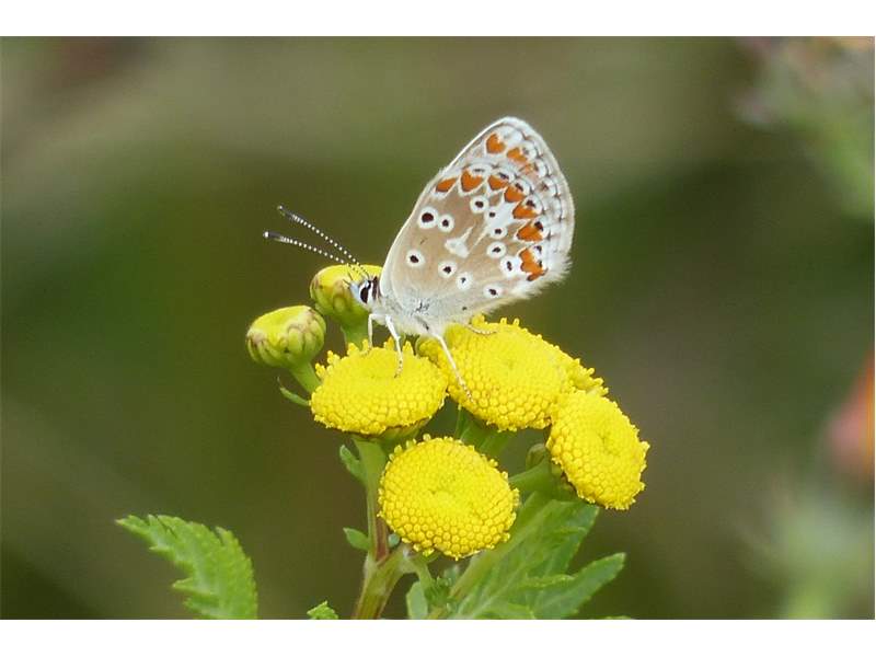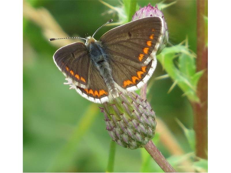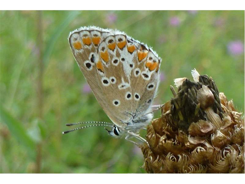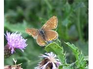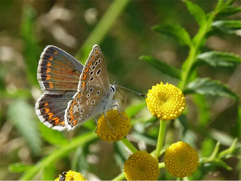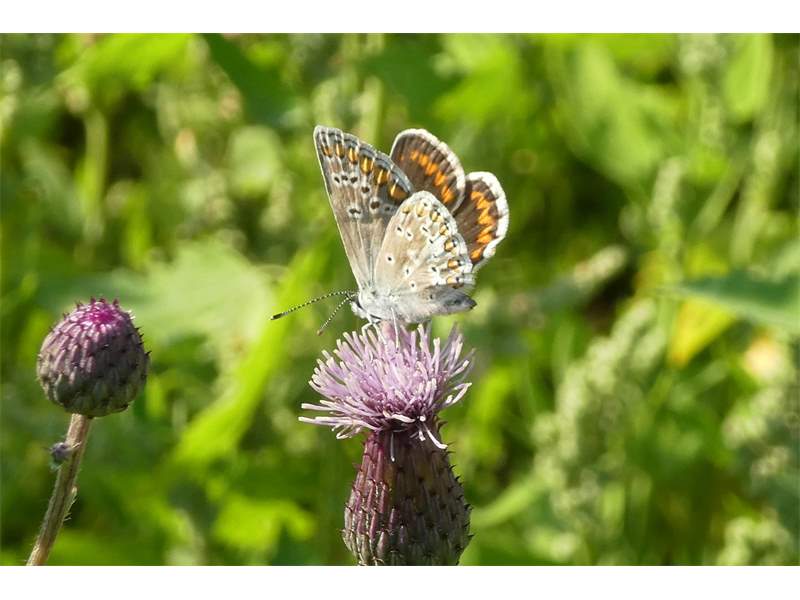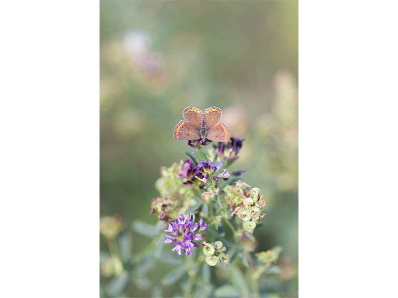 Kleiner Sonnenröschenbläuling (Aricia agestis (Denis & Schiffermüller, 1775)),Freital/Wurgwitz,Hammerteich,Wegrand auf Klee,Sep.2019 (© Manfred Wonka)( Bild vergrößern)