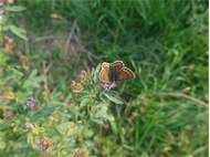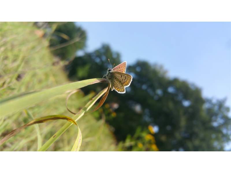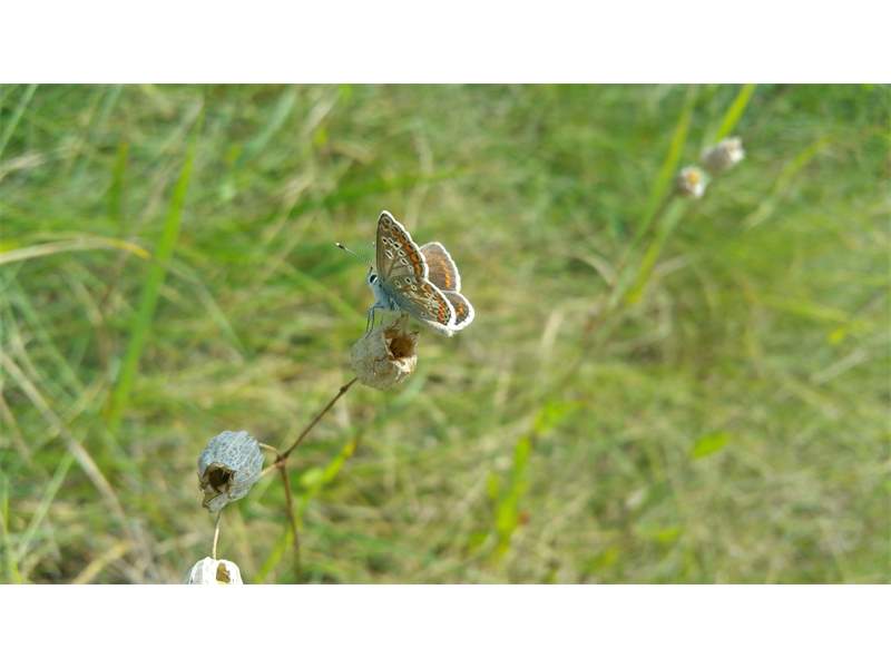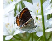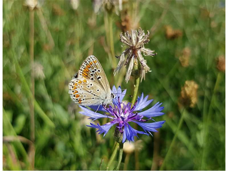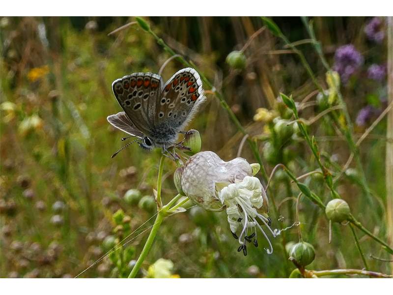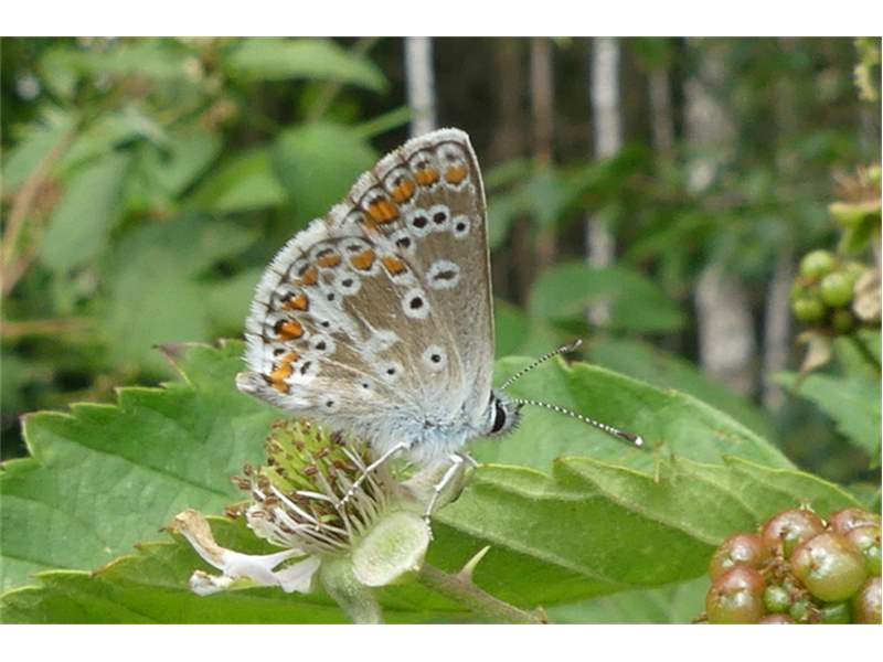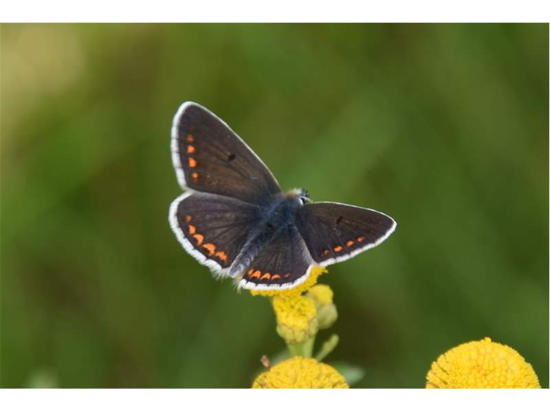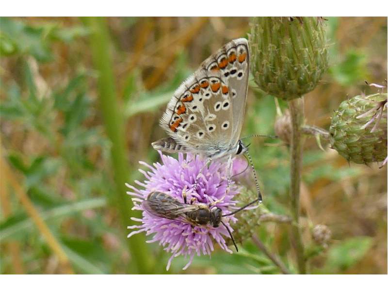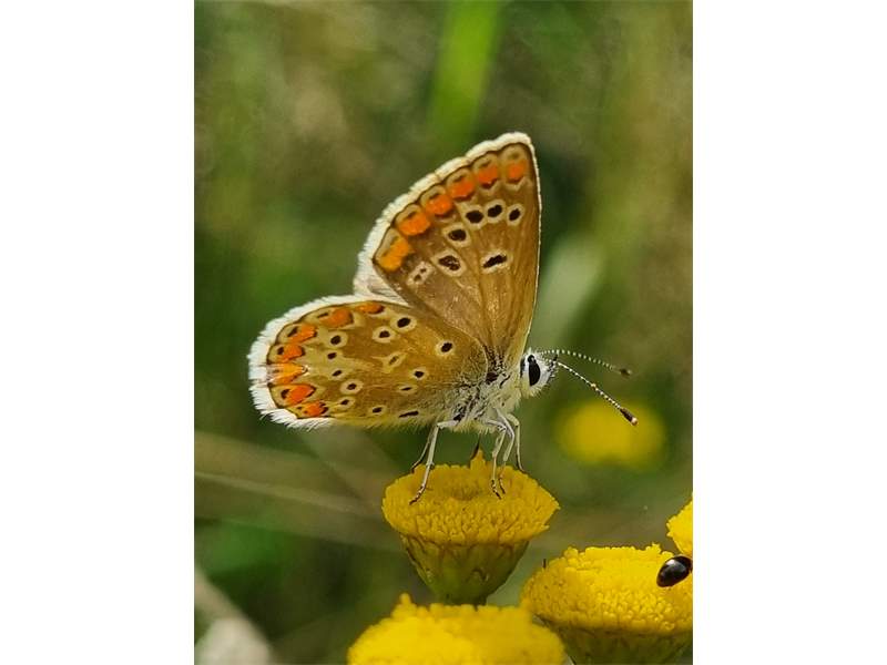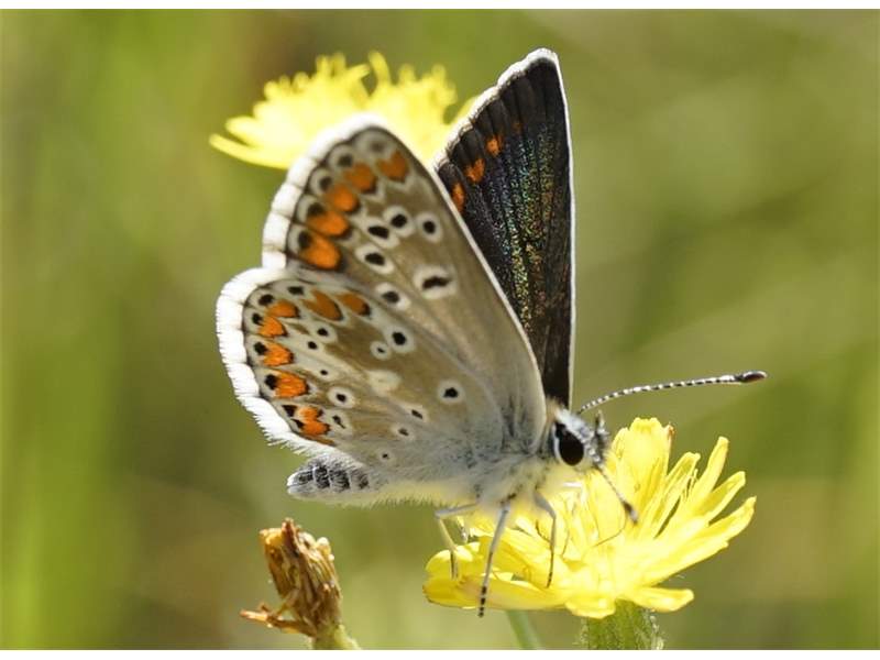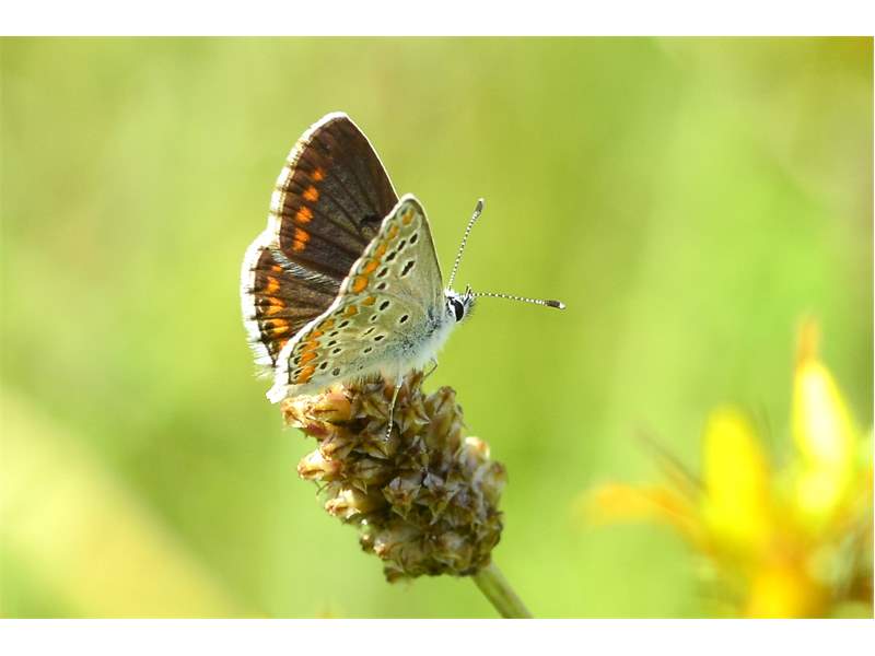 Kleiner Sonnenröschenbläuling (Aricia agestis (Denis & Schiffermüller, 1775)),Freital/Wurgwitz,Hammerteich,Wegrand auf Klee,Sep.2019 (© Manfred Wonka)( Bild vergrößern)