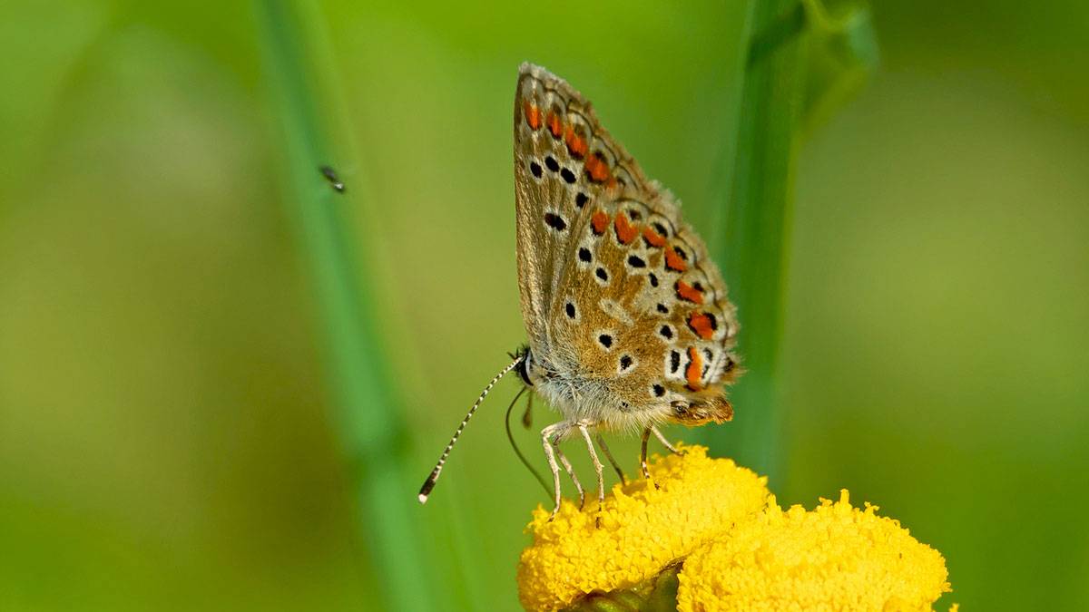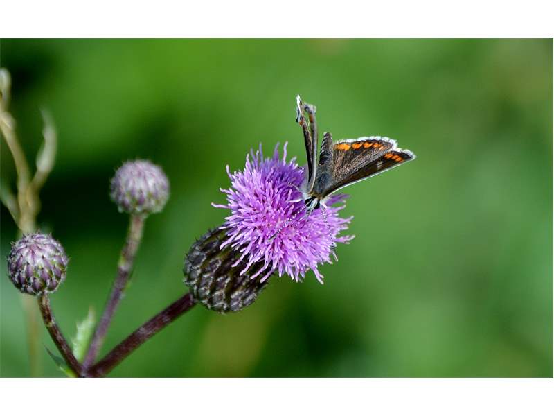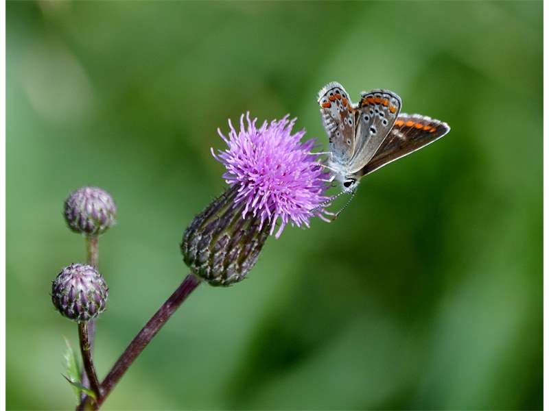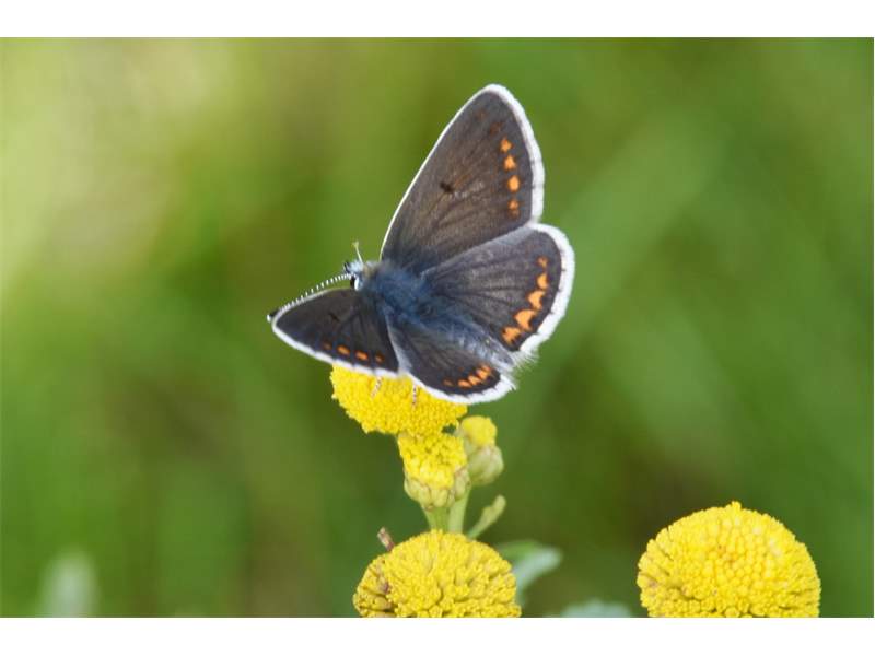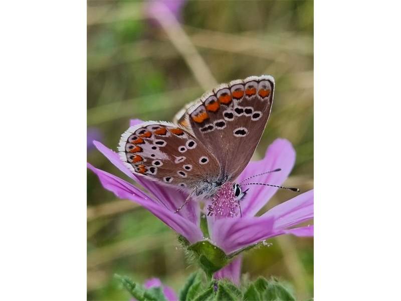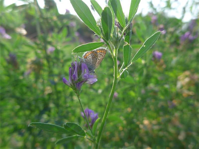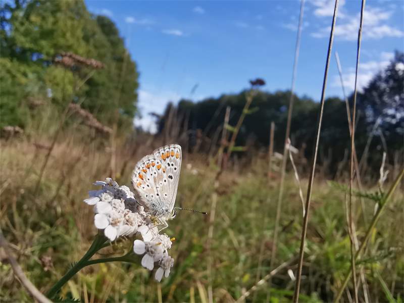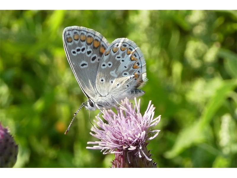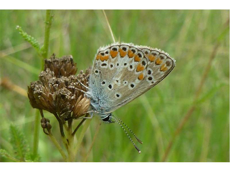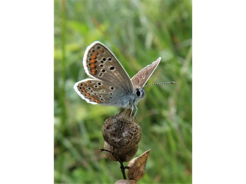 Kleiner Sonnenröschenbläuling (Aricia agestis (Denis & Schiffermüller, 1775)),Freital/Wurgwitz,Hammerteich,Wegrand auf Klee,Sep.2019 (© Manfred Wonka)( Bild vergrößern)