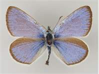 Flügeloberseiten der Männchen blau mit schwarzem Rand, die der Weibchen dunkelbraun, manche Weibchen mehr oder weniger blau bestäubt. Fransen weiß.
