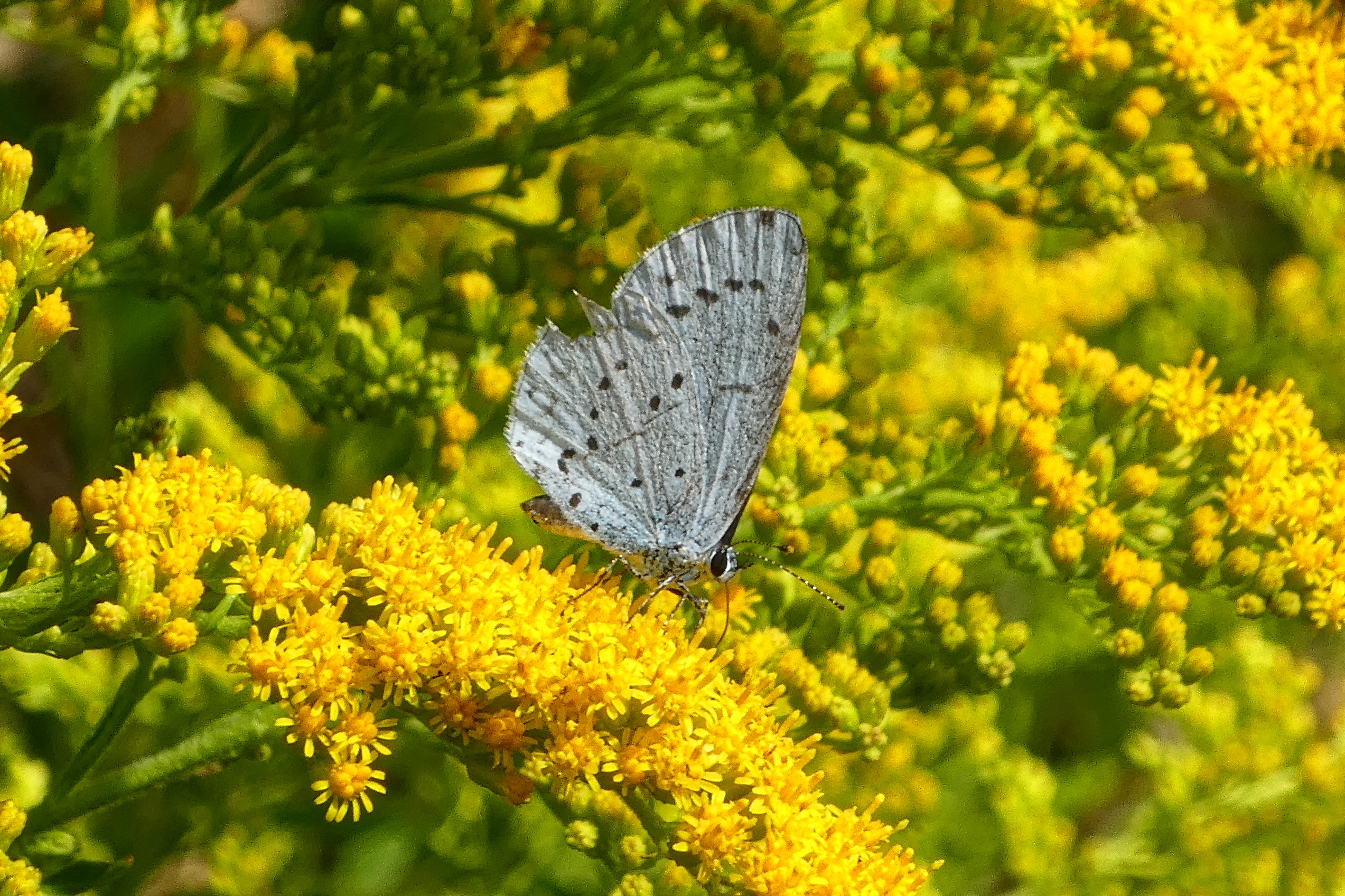 Faulbaumbläuling (Celastrina argiolus (Linnaeus, 1758)), ,Hartmannsdorf bei Chemnitz, Steinbruchgelände am Bahnhof, Juli 2019