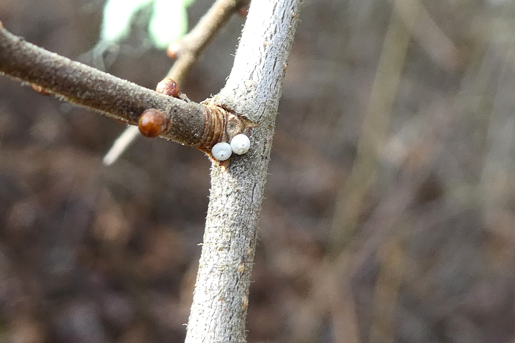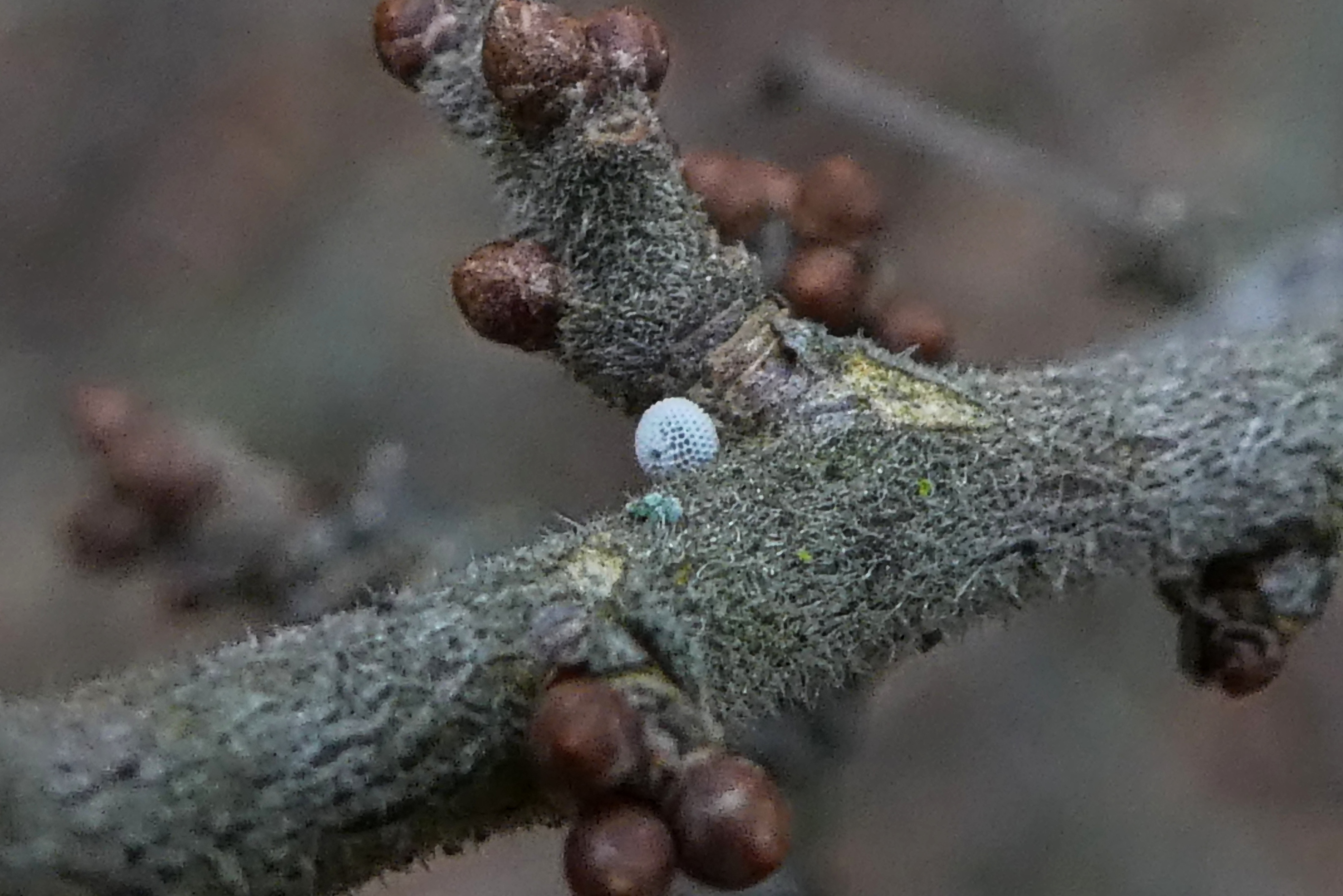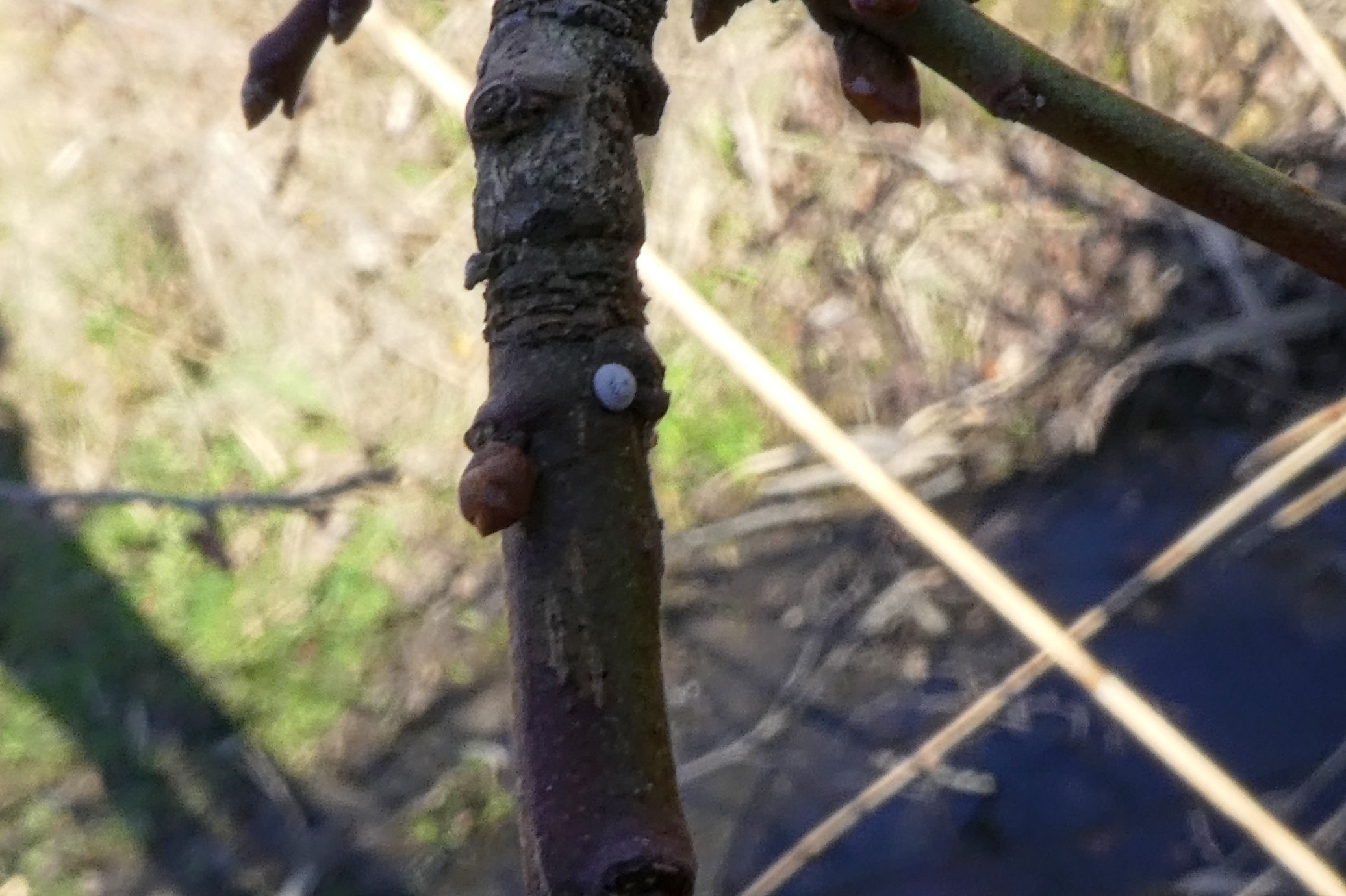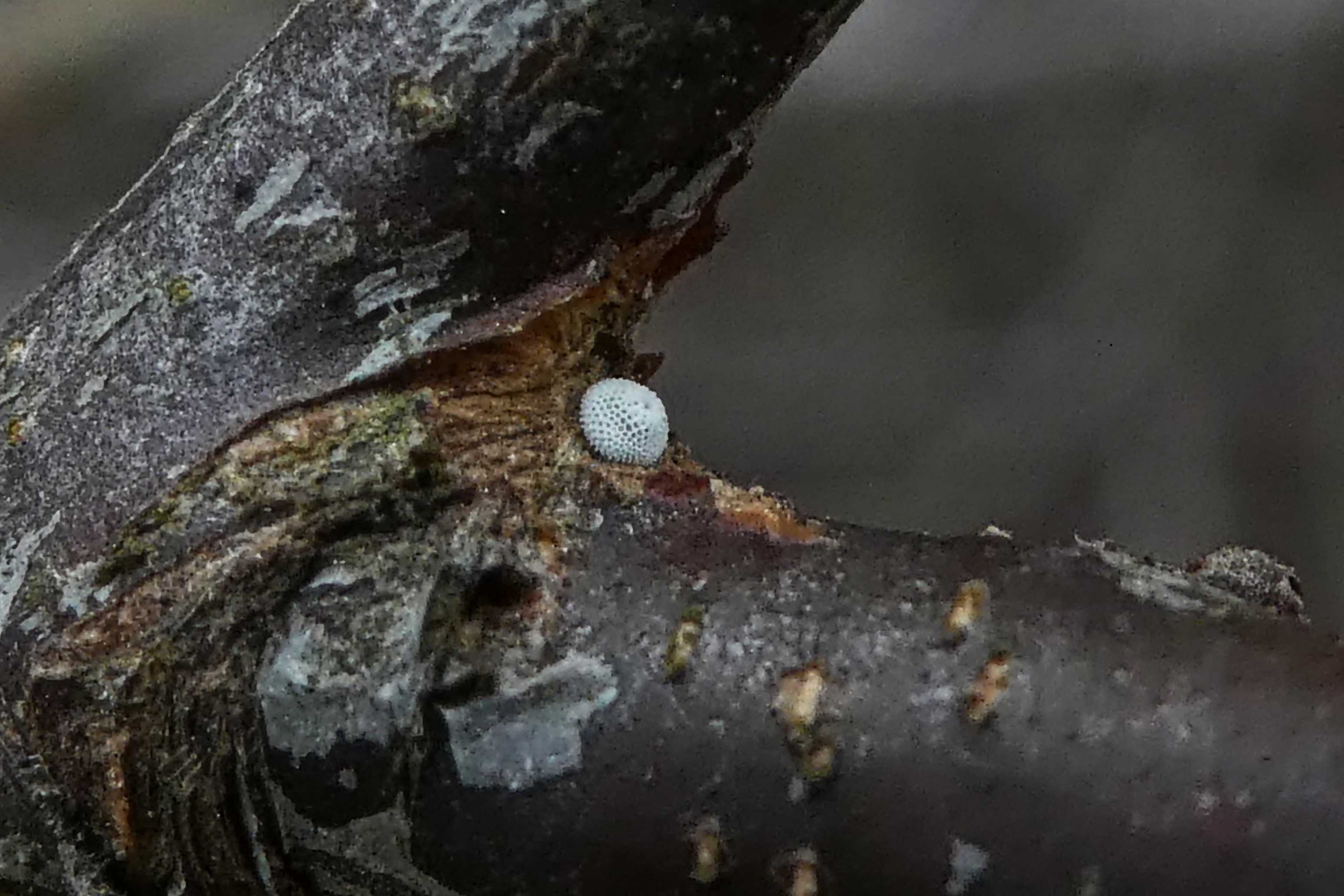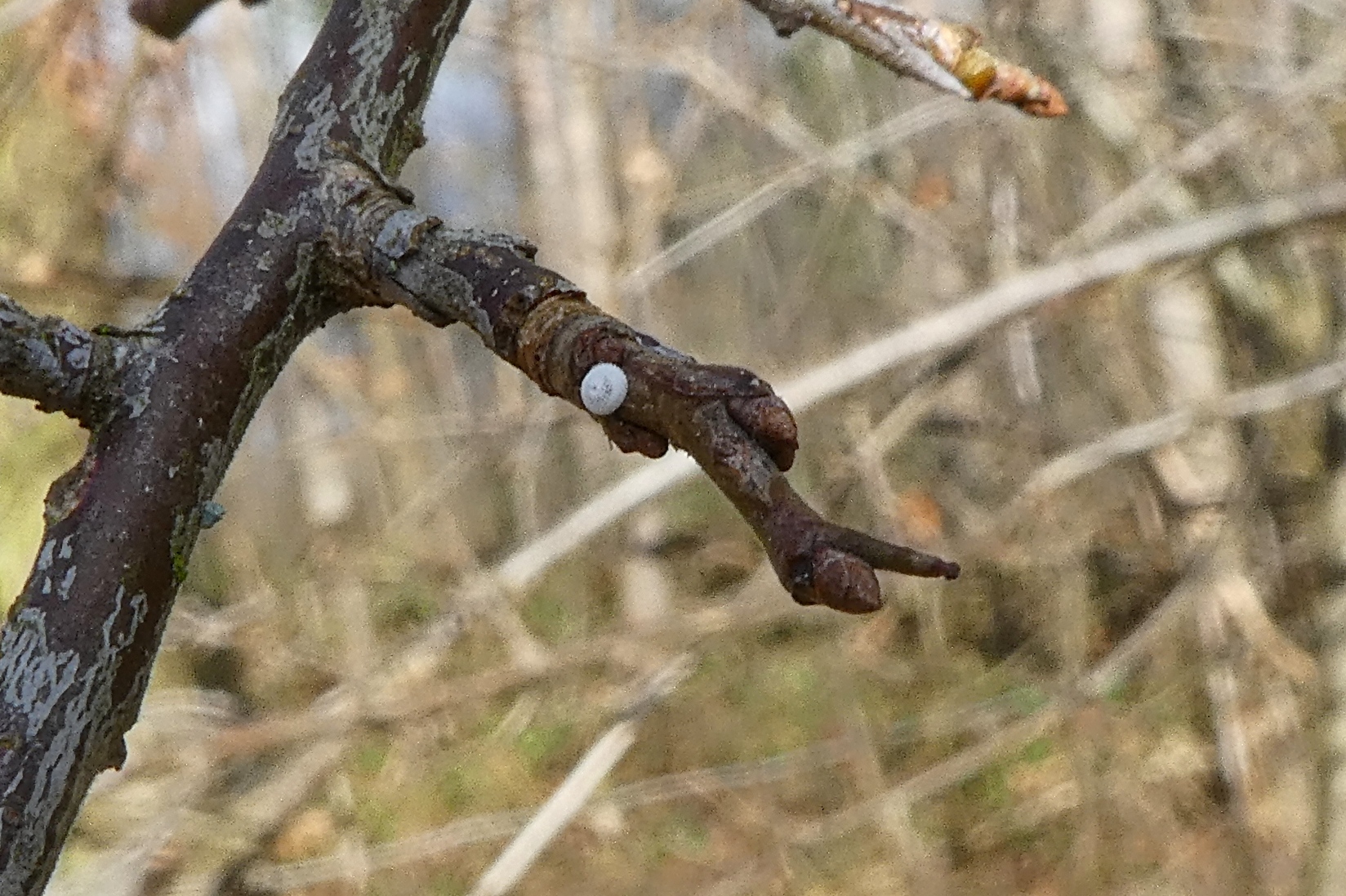 Bild 2 Eier von Thecla betulae, bei Bad Düben, am Rande der Dübener Heide, 11.04.2009