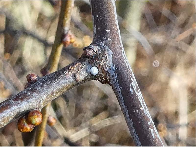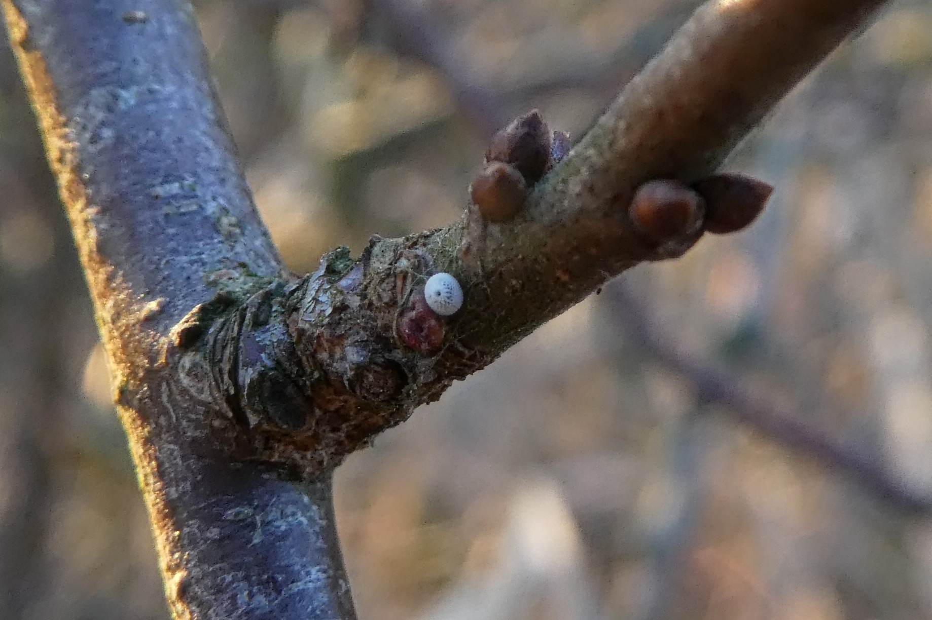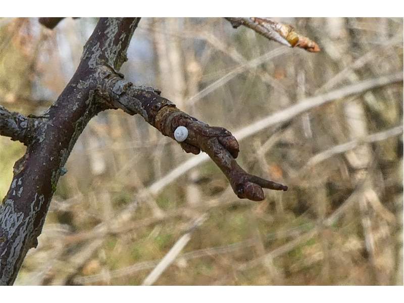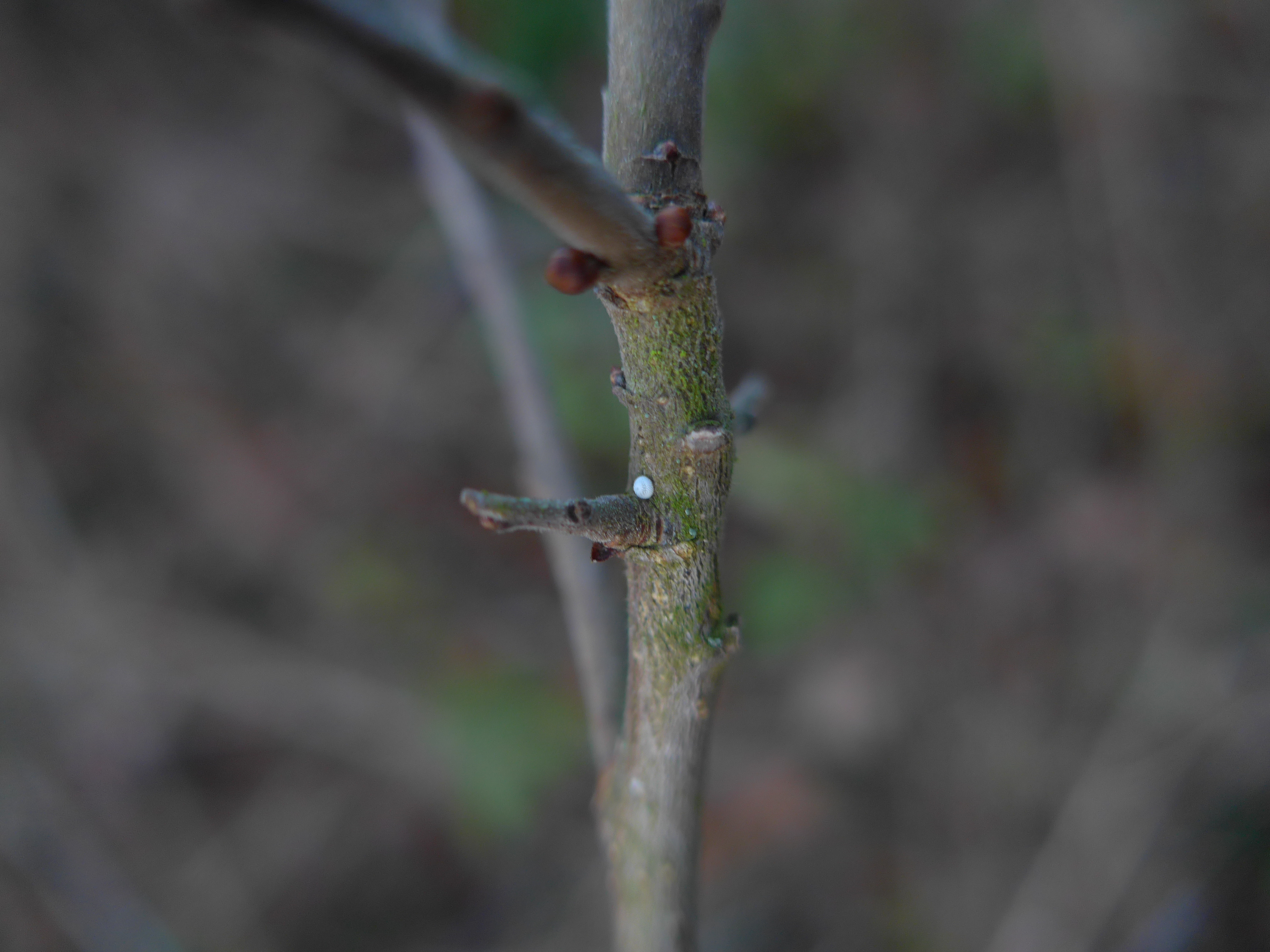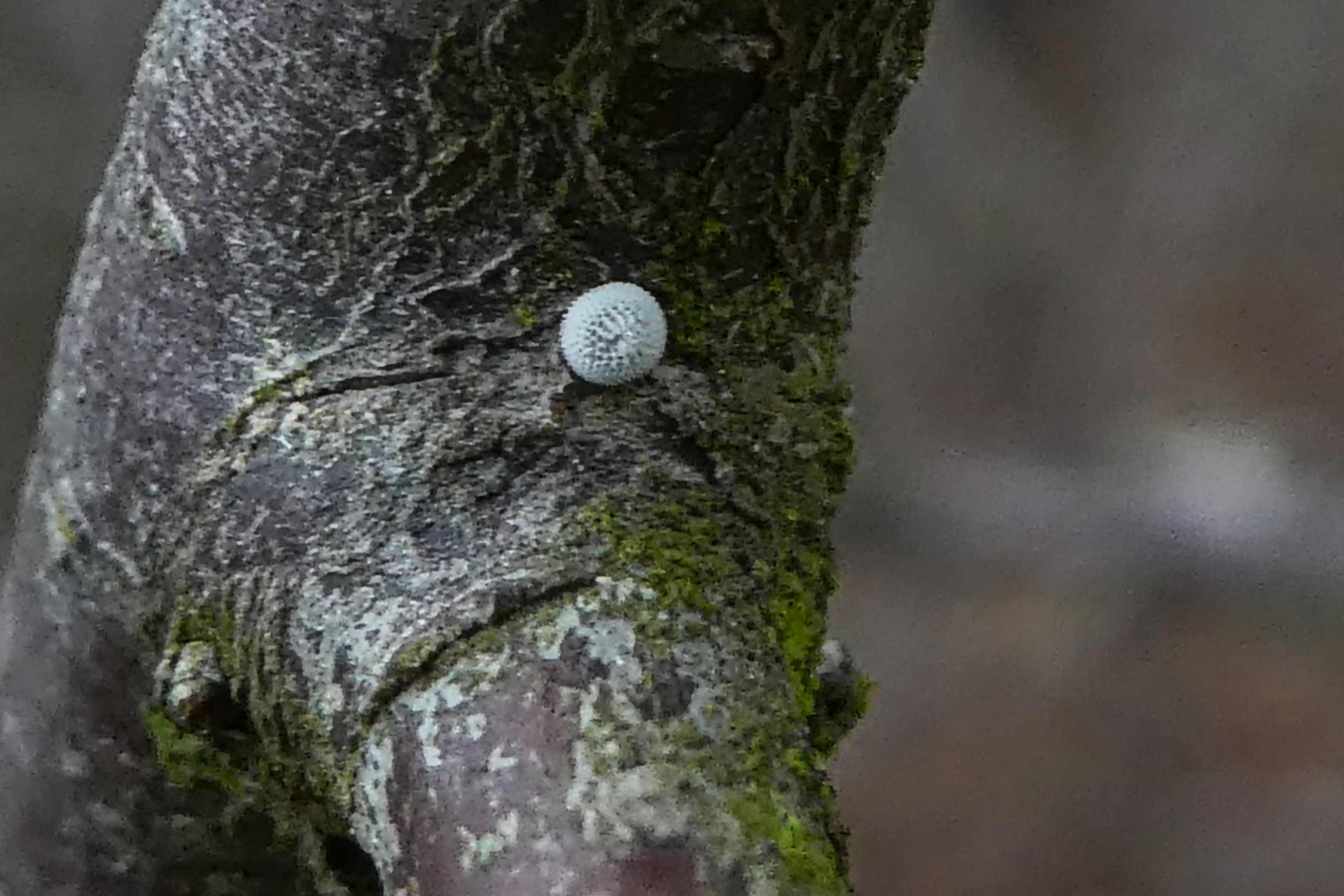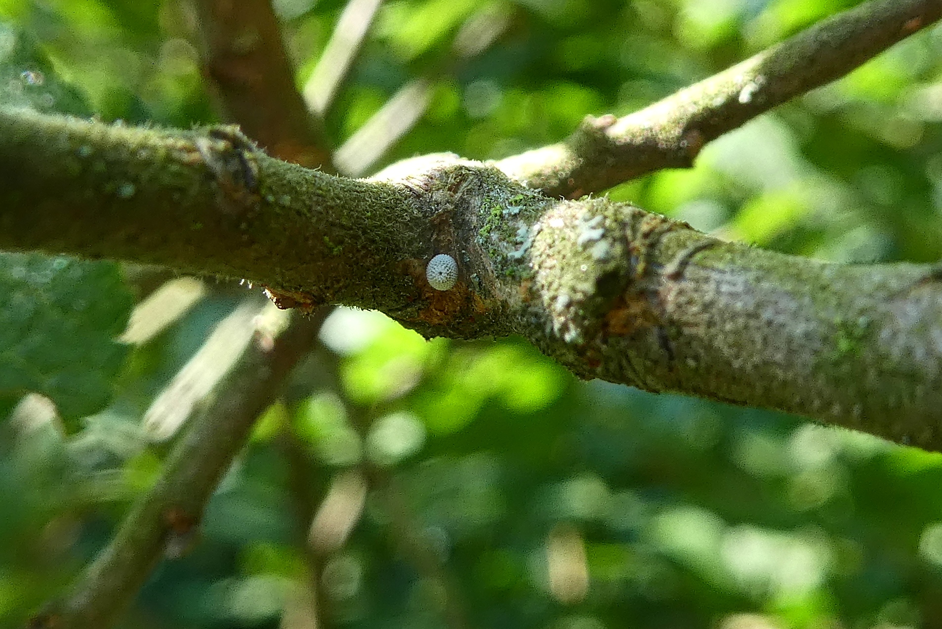 Bild 2 Eier von Thecla betulae, bei Bad Düben, am Rande der Dübener Heide, 11.04.2009