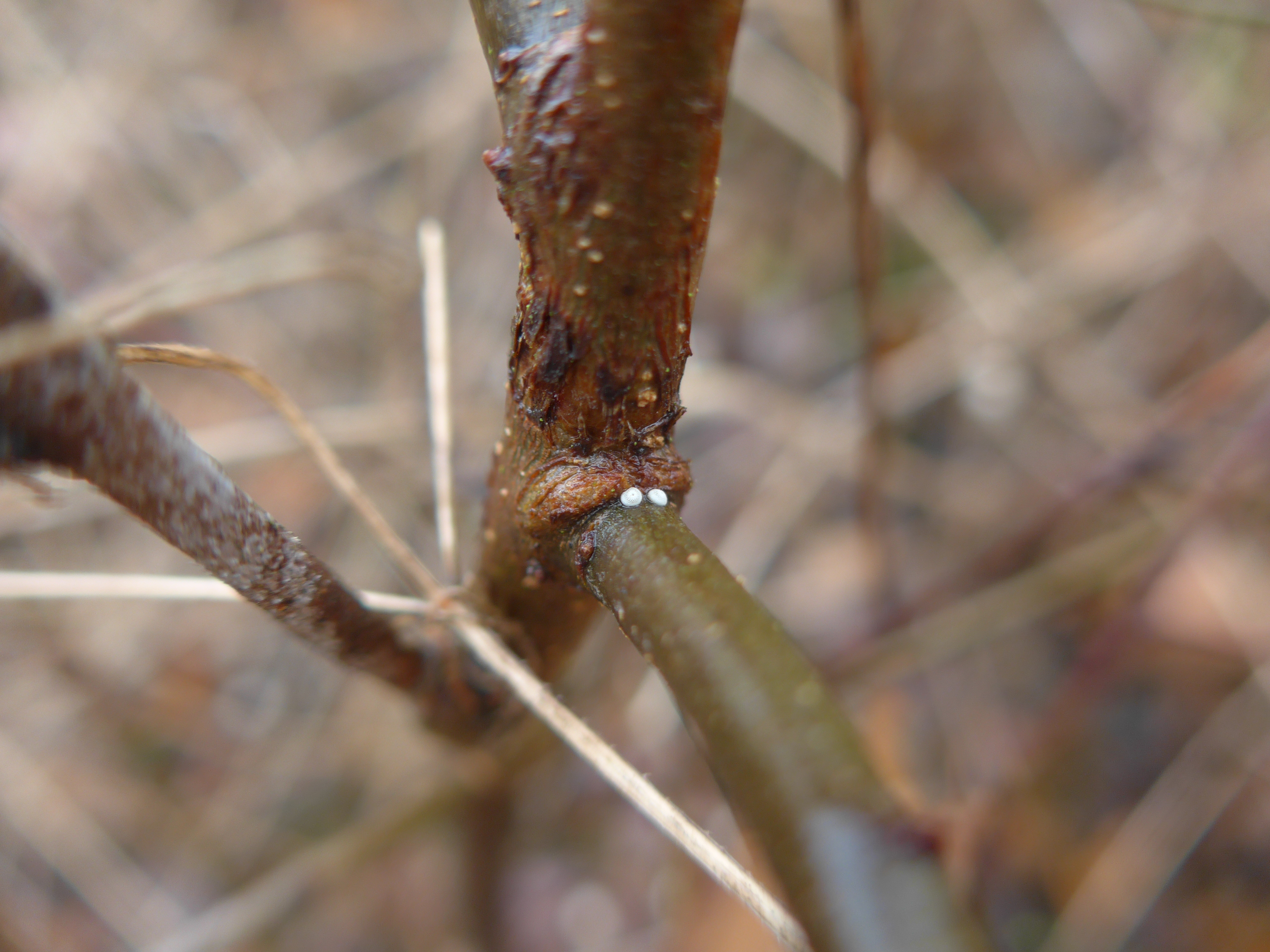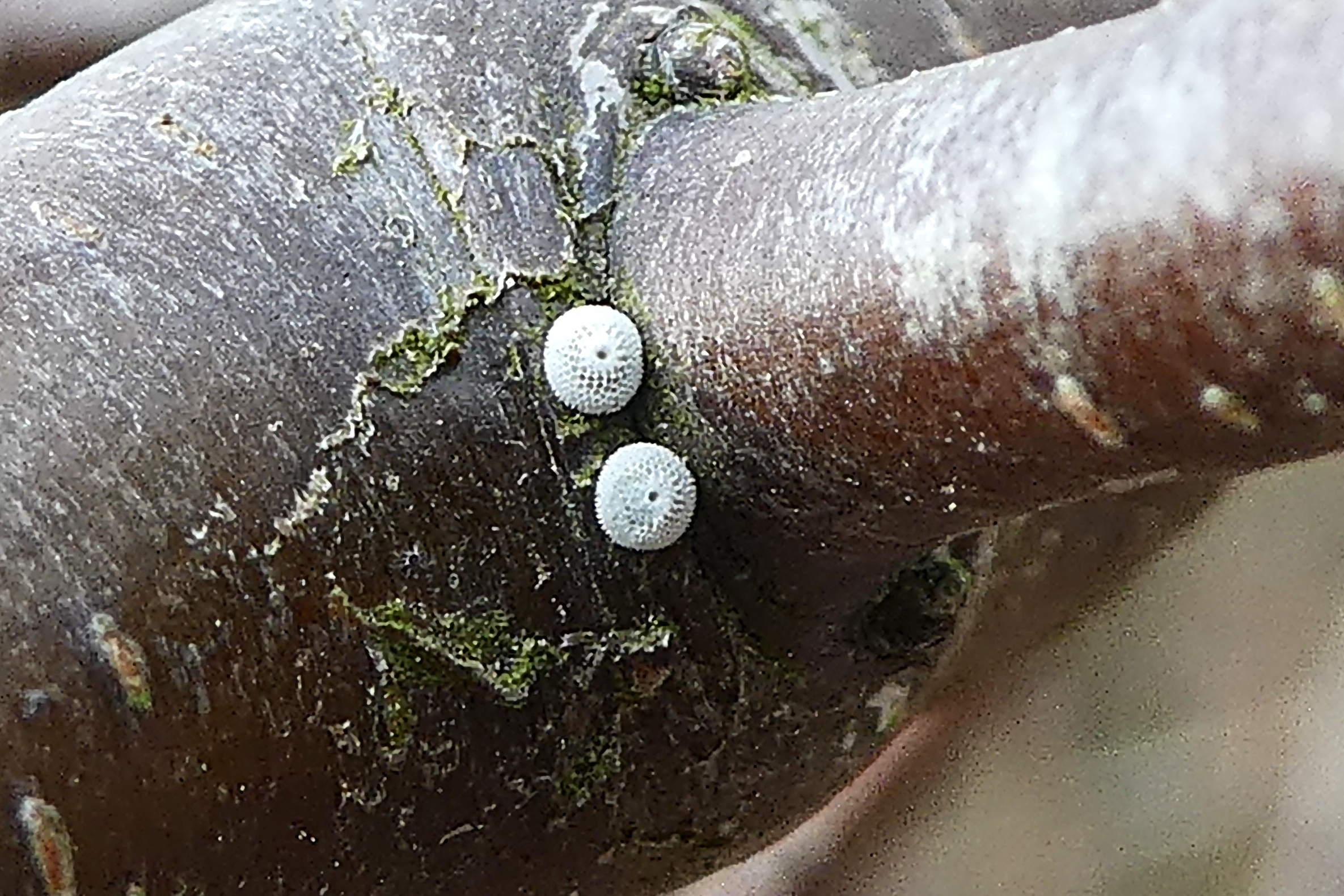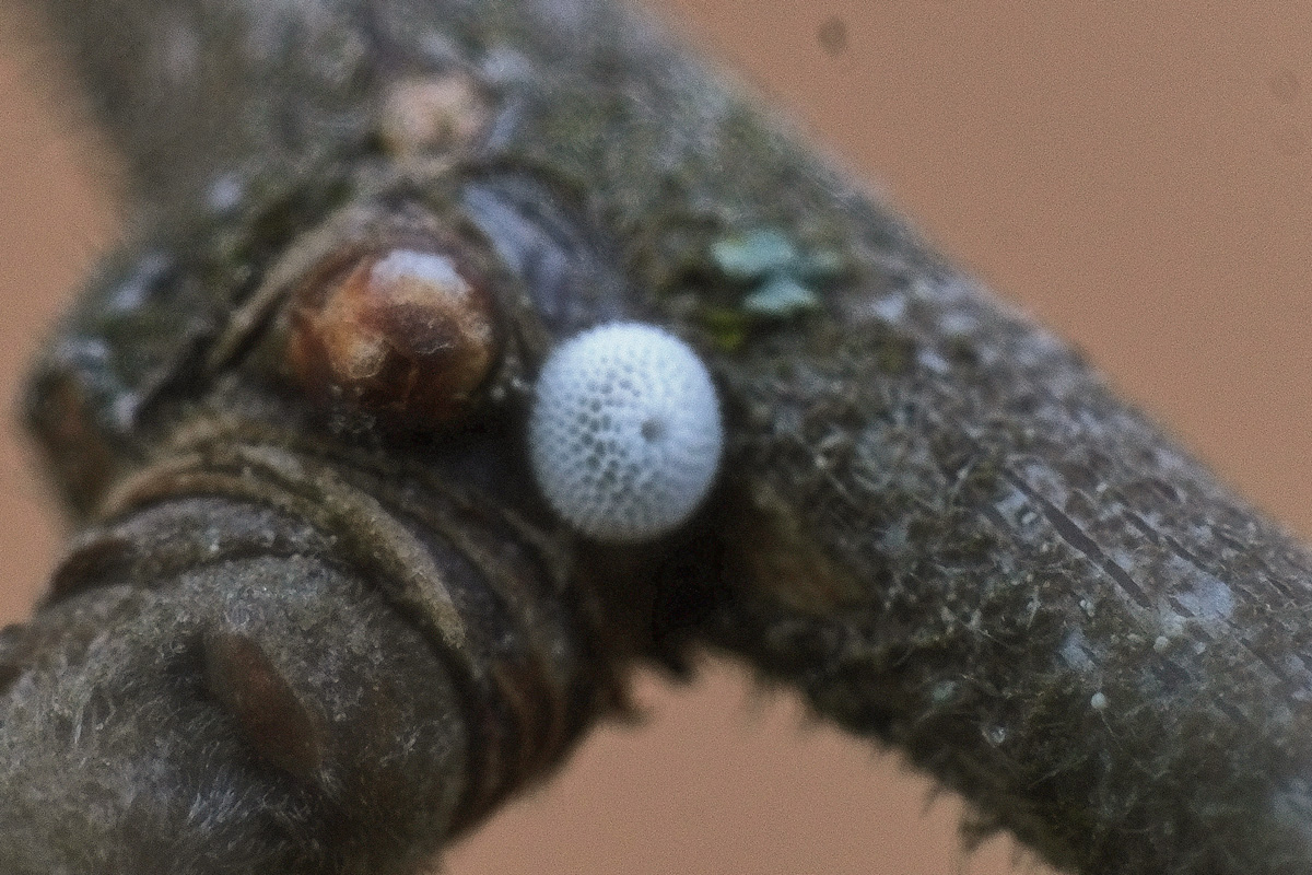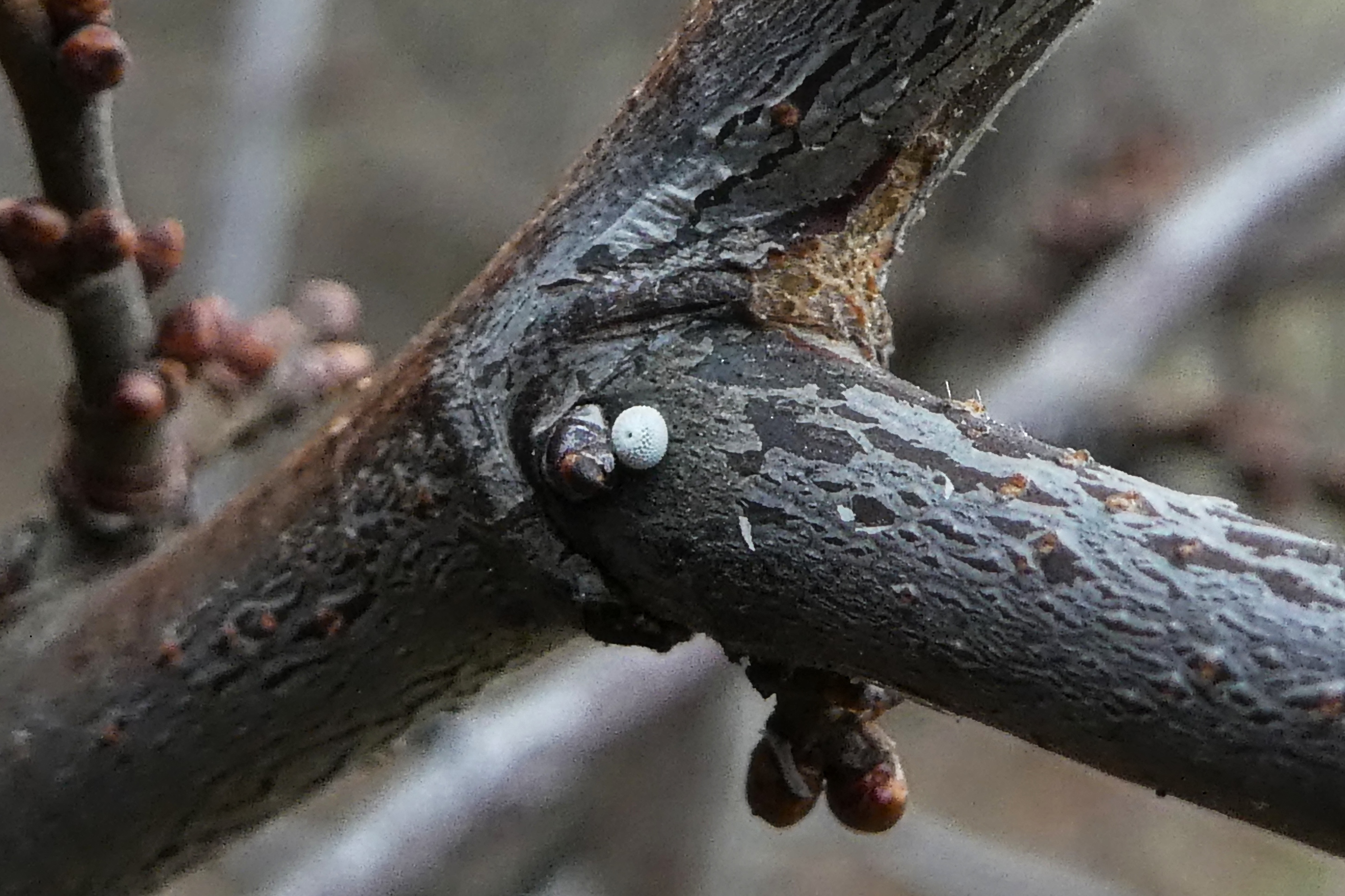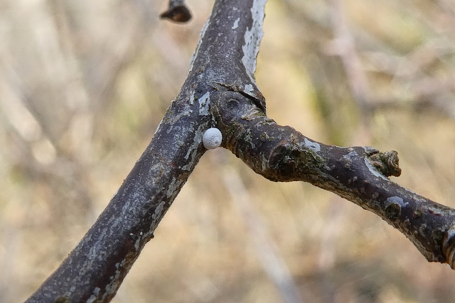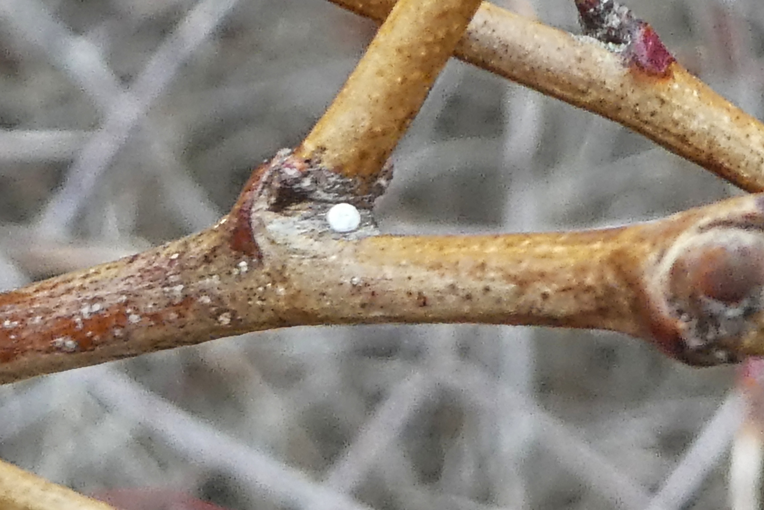 Bild 2 Eier von Thecla betulae, bei Bad Düben, am Rande der Dübener Heide, 11.04.2009