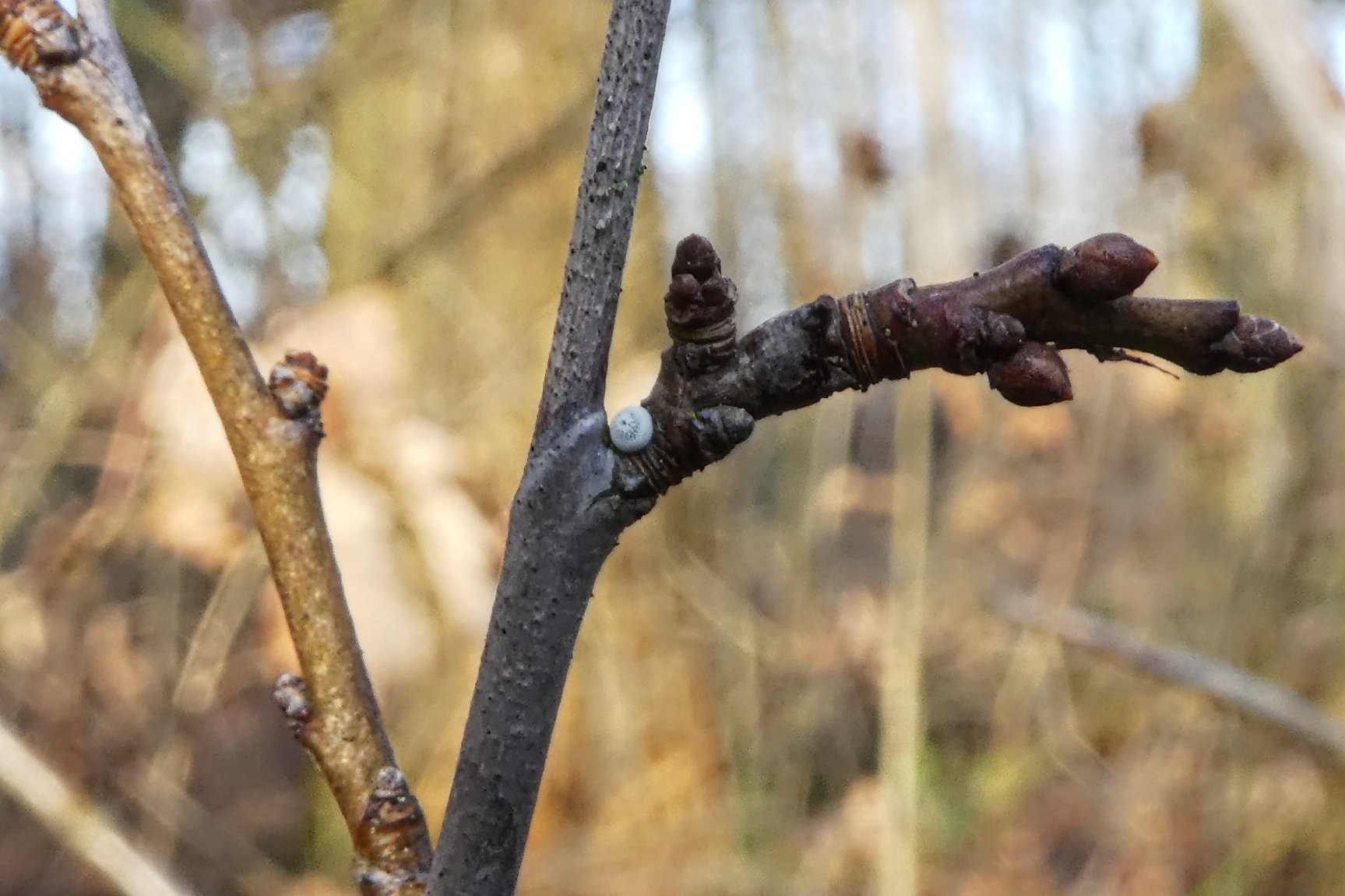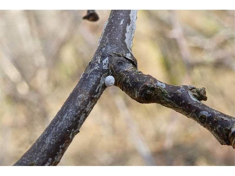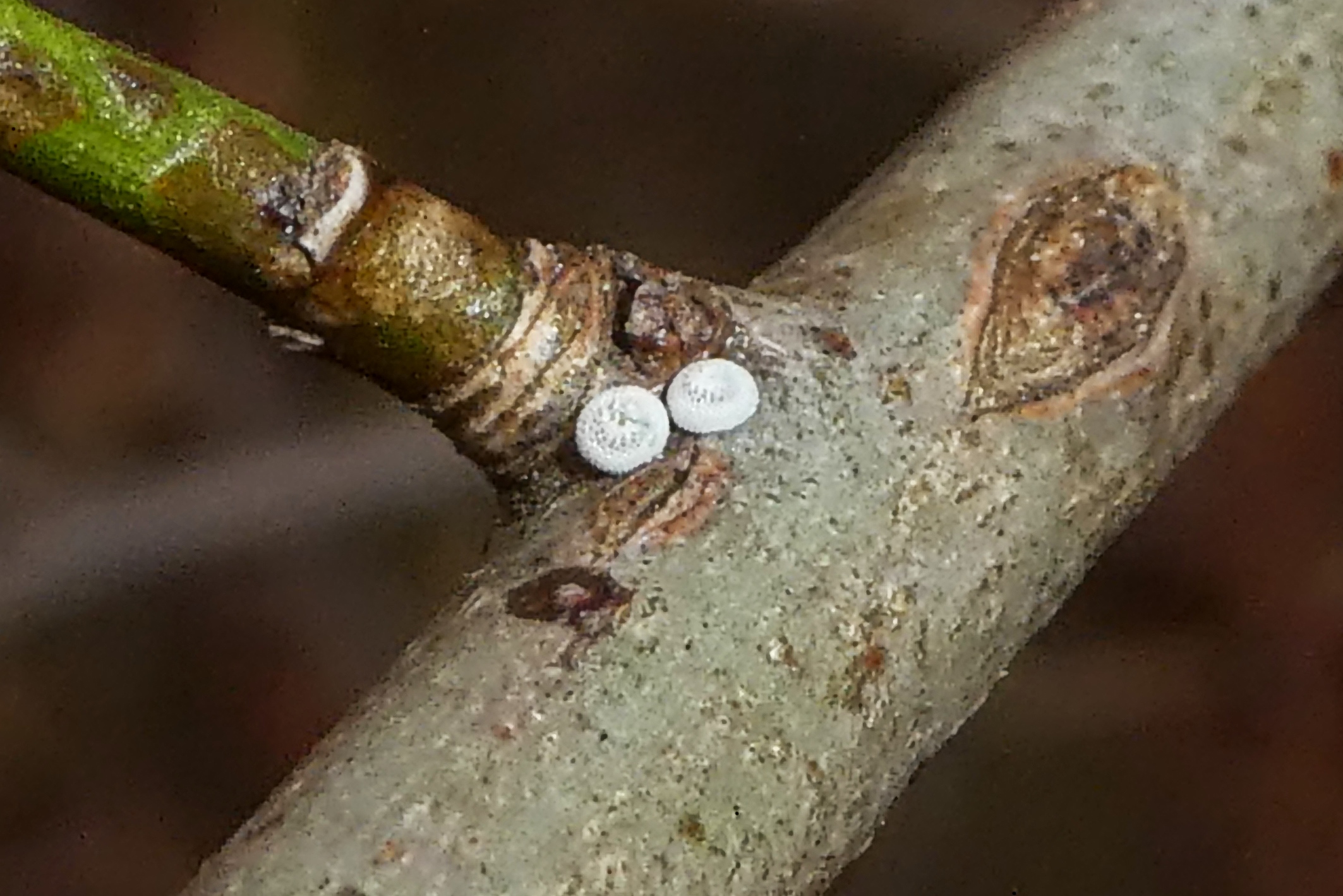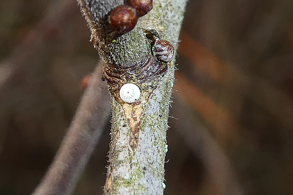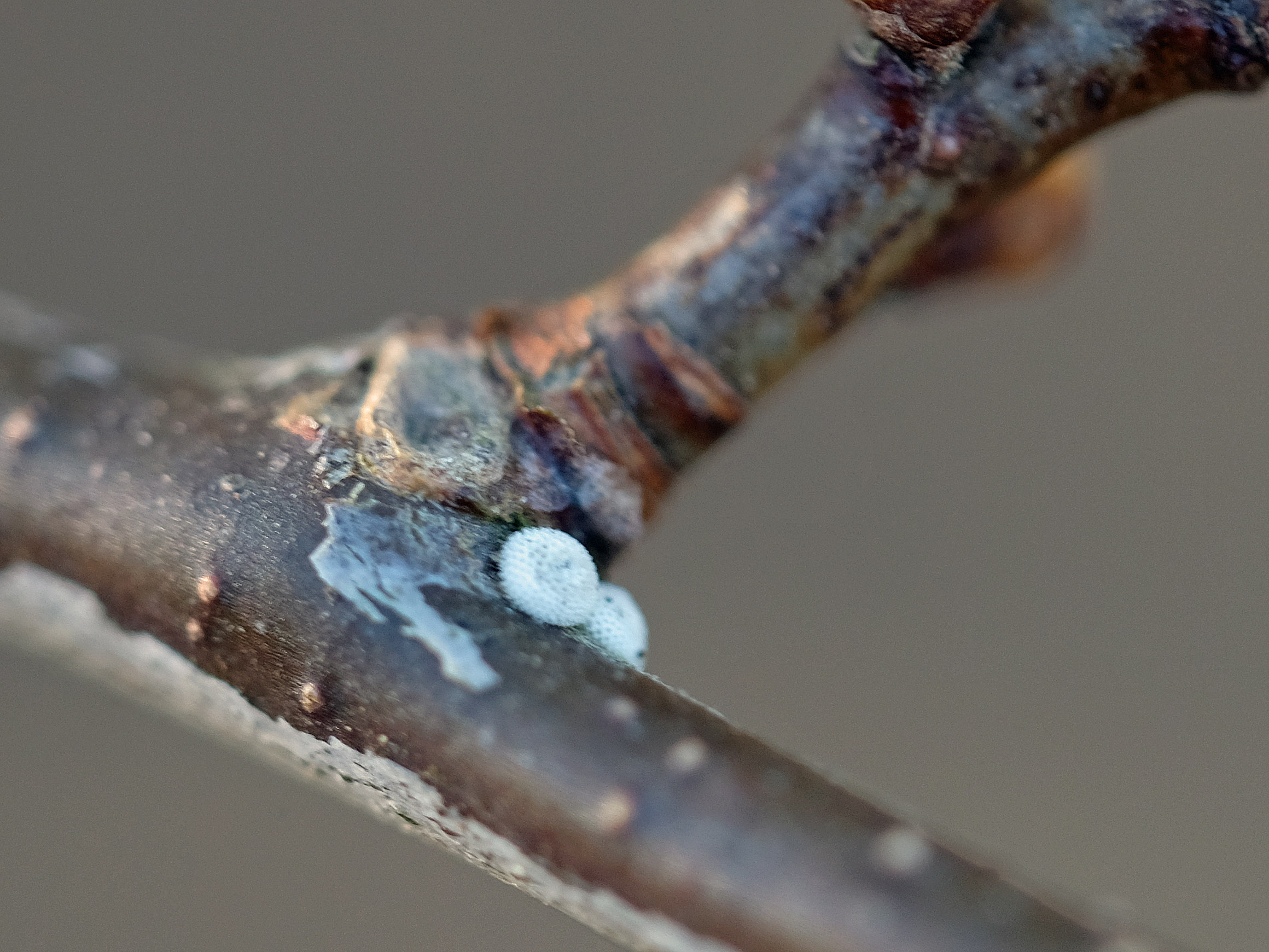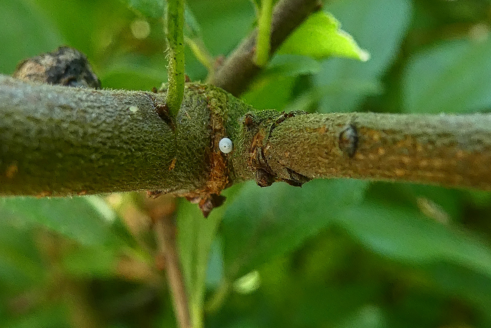 Bild 2 Eier von Thecla betulae, bei Bad Düben, am Rande der Dübener Heide, 11.04.2009