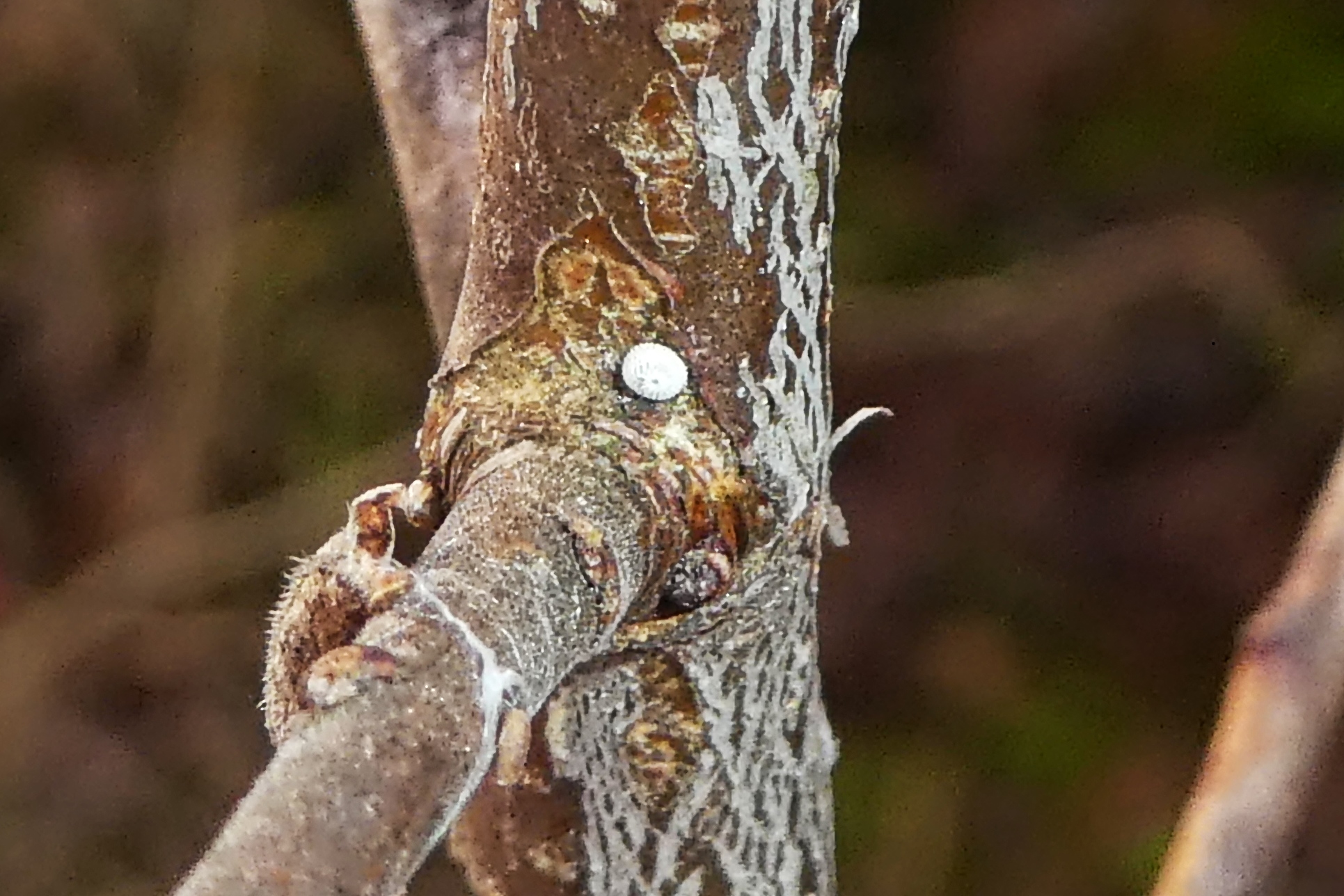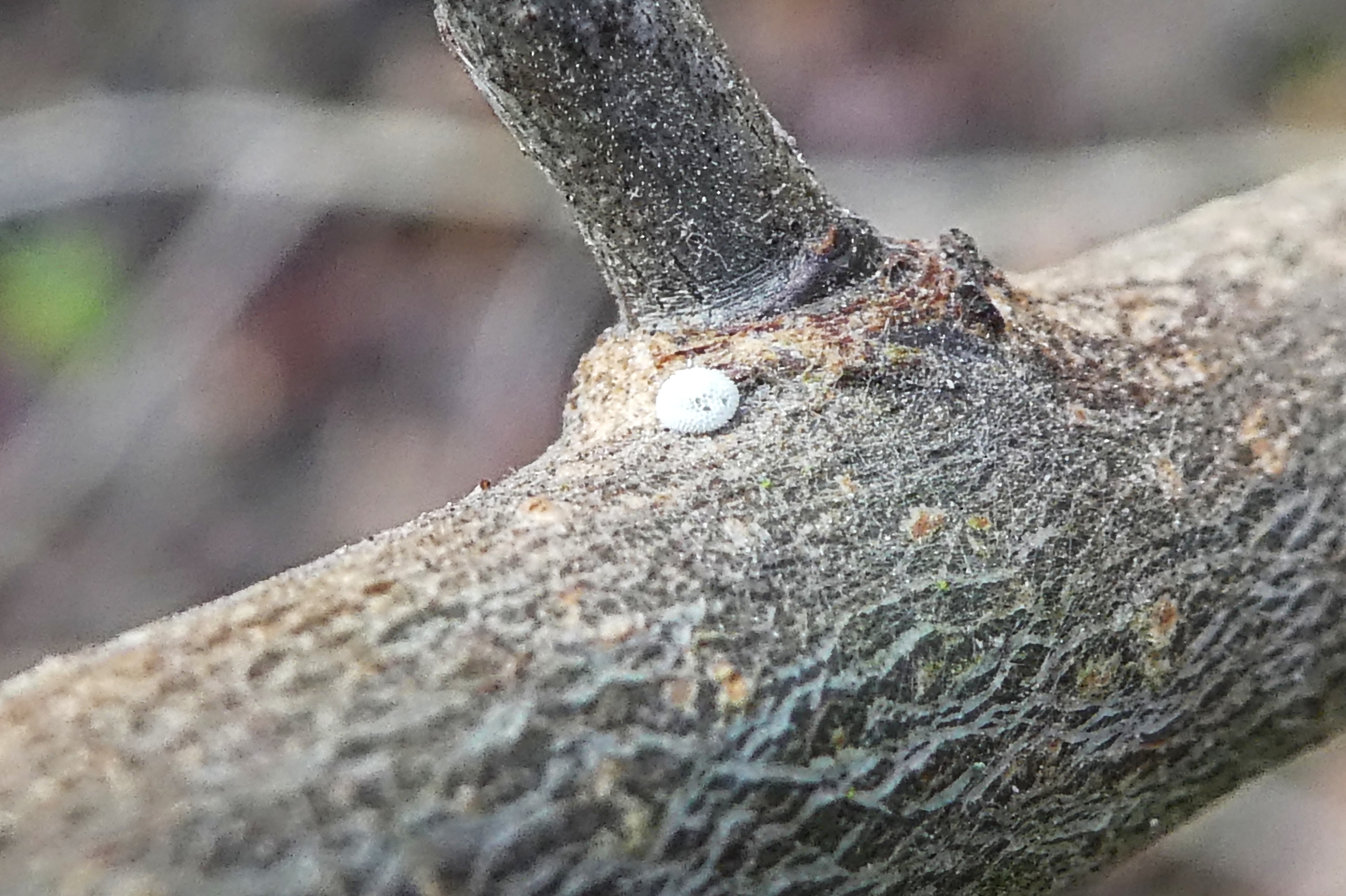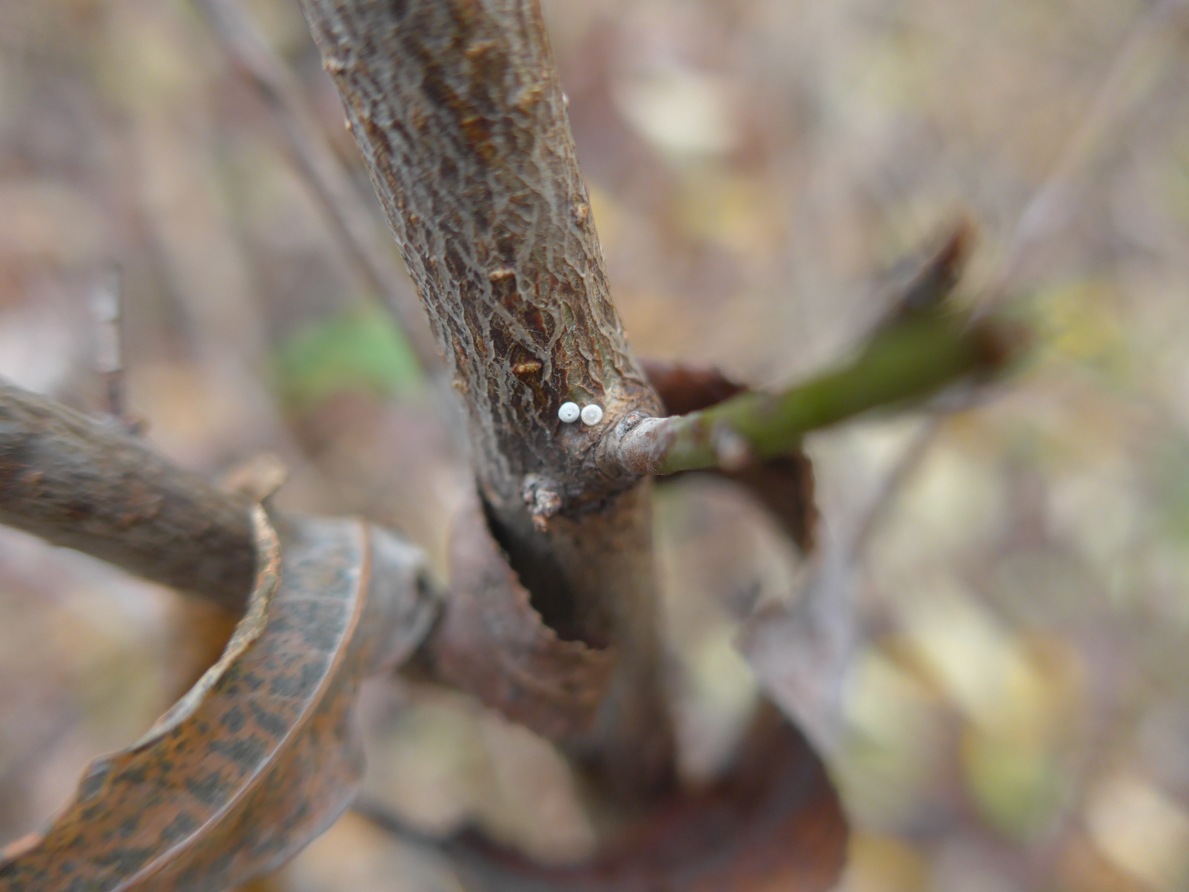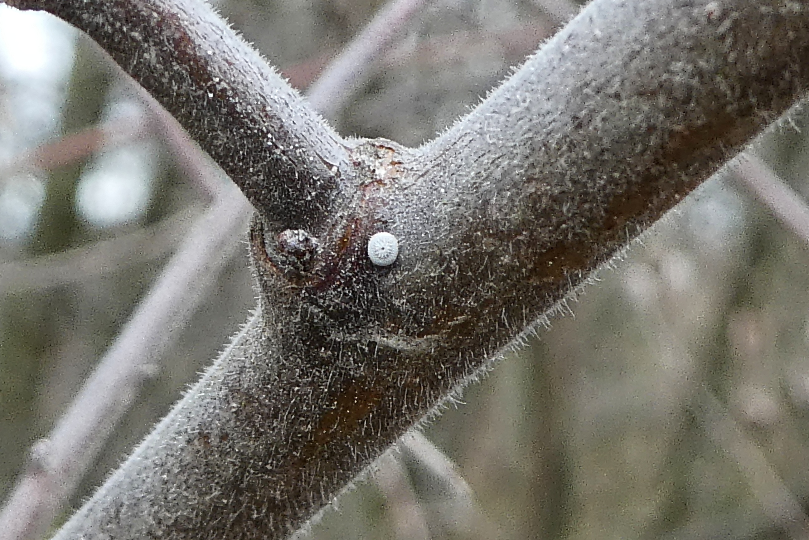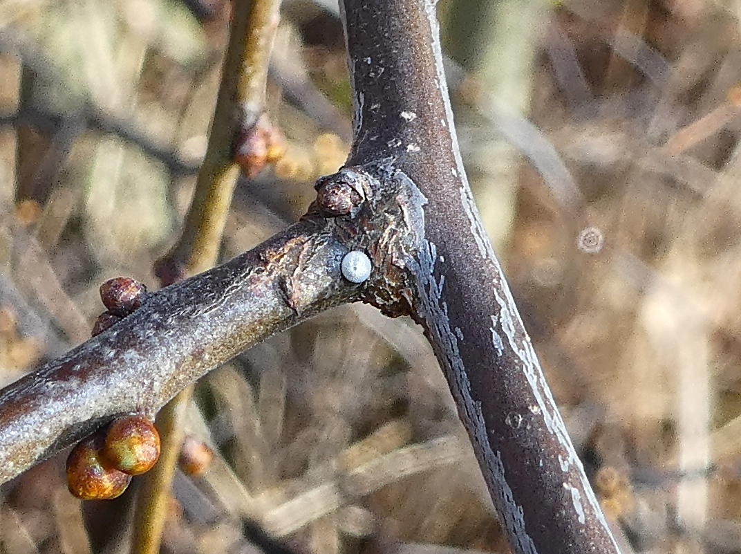 Bild 2 Eier von Thecla betulae, bei Bad Düben, am Rande der Dübener Heide, 11.04.2009