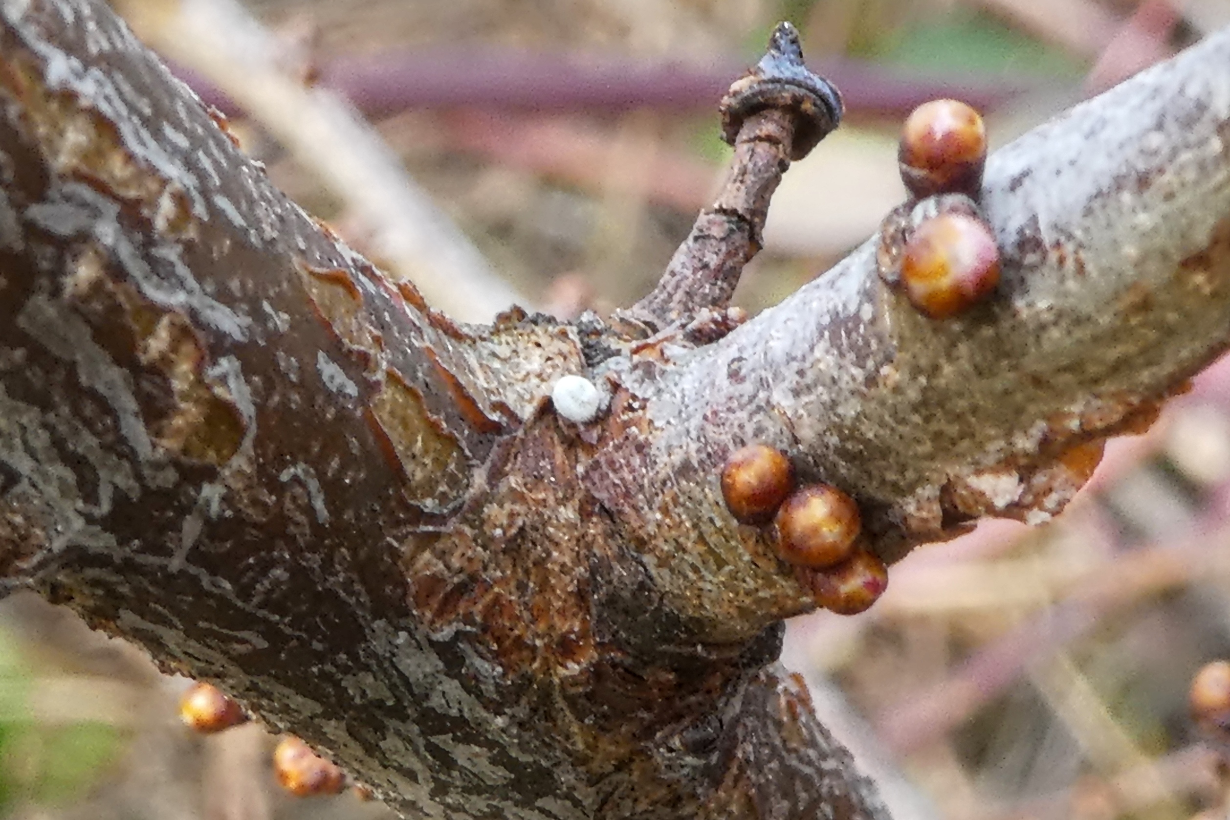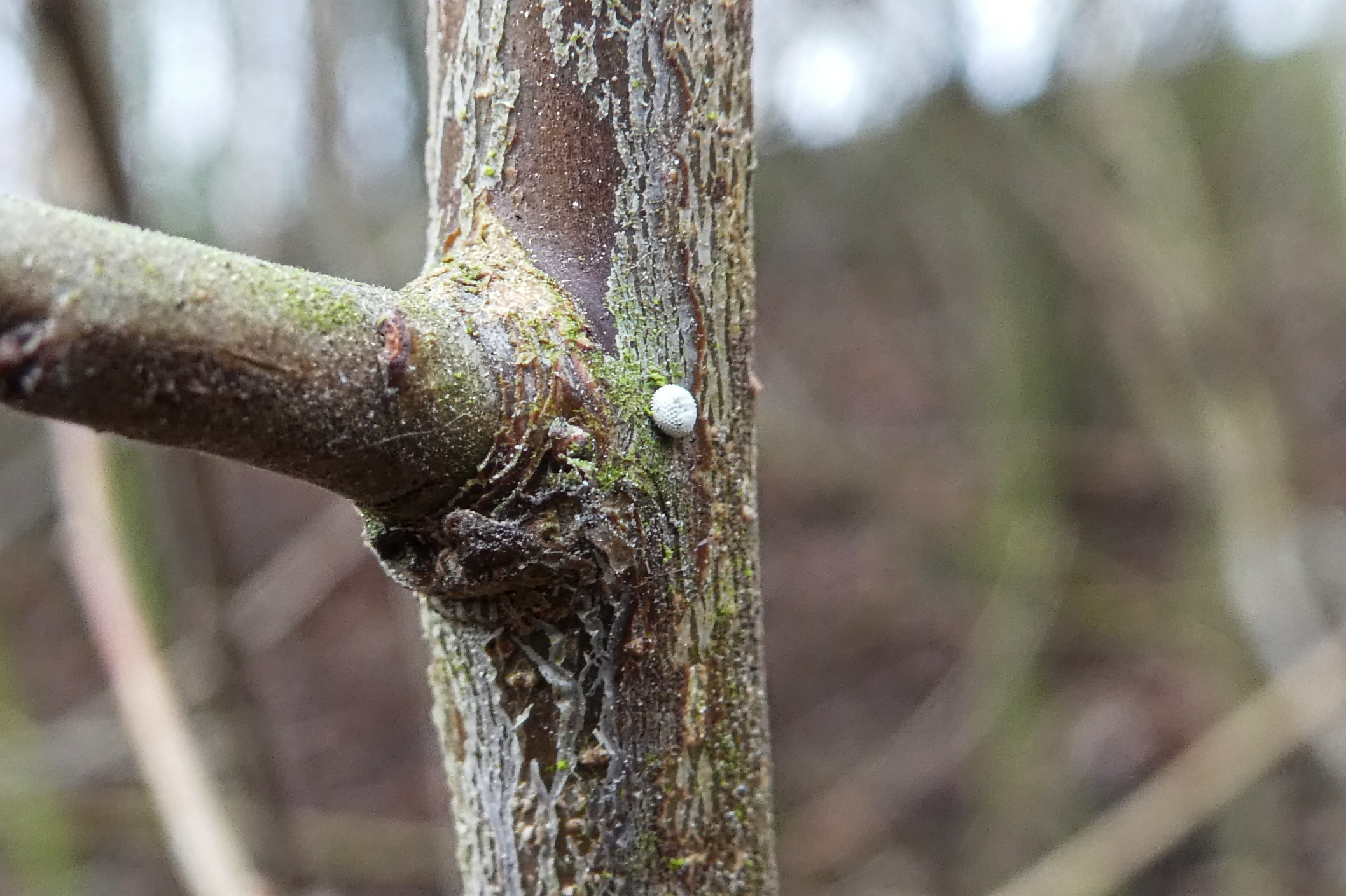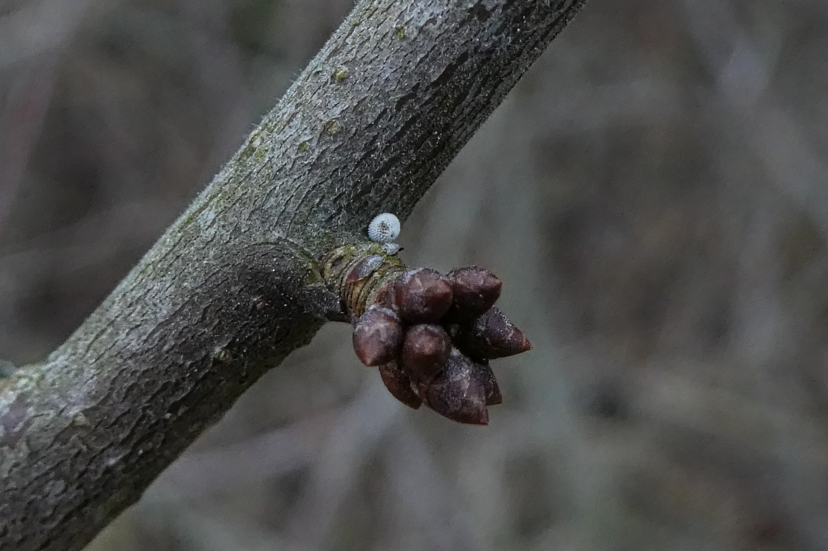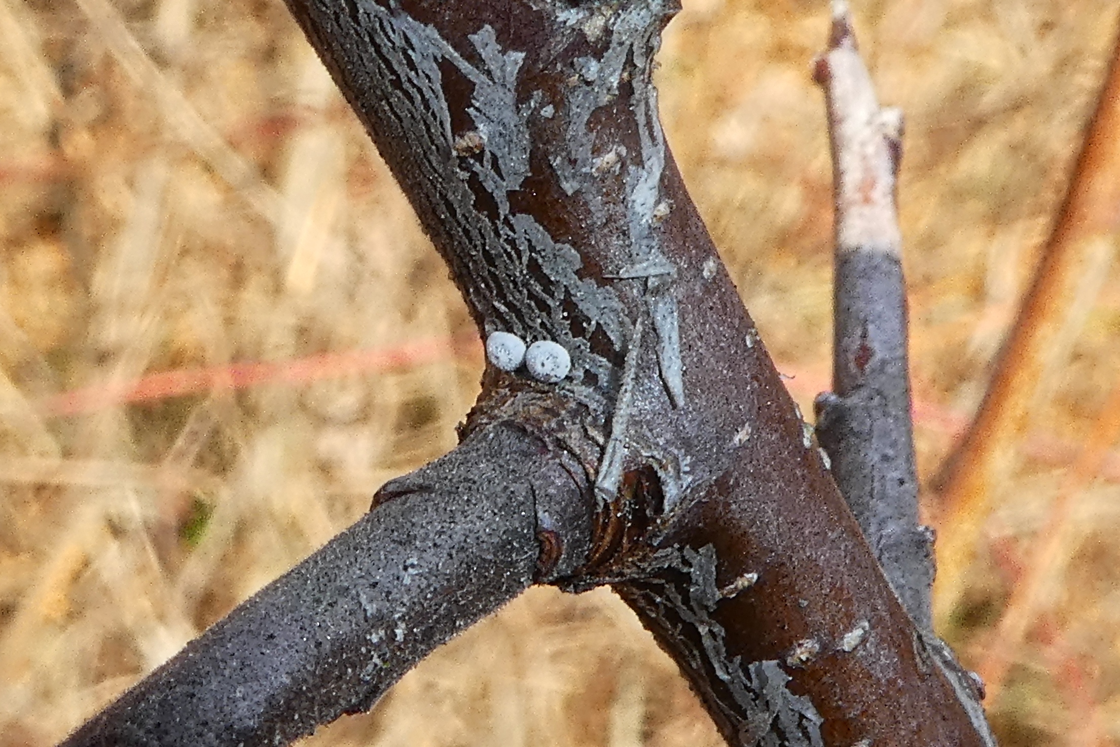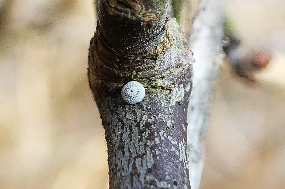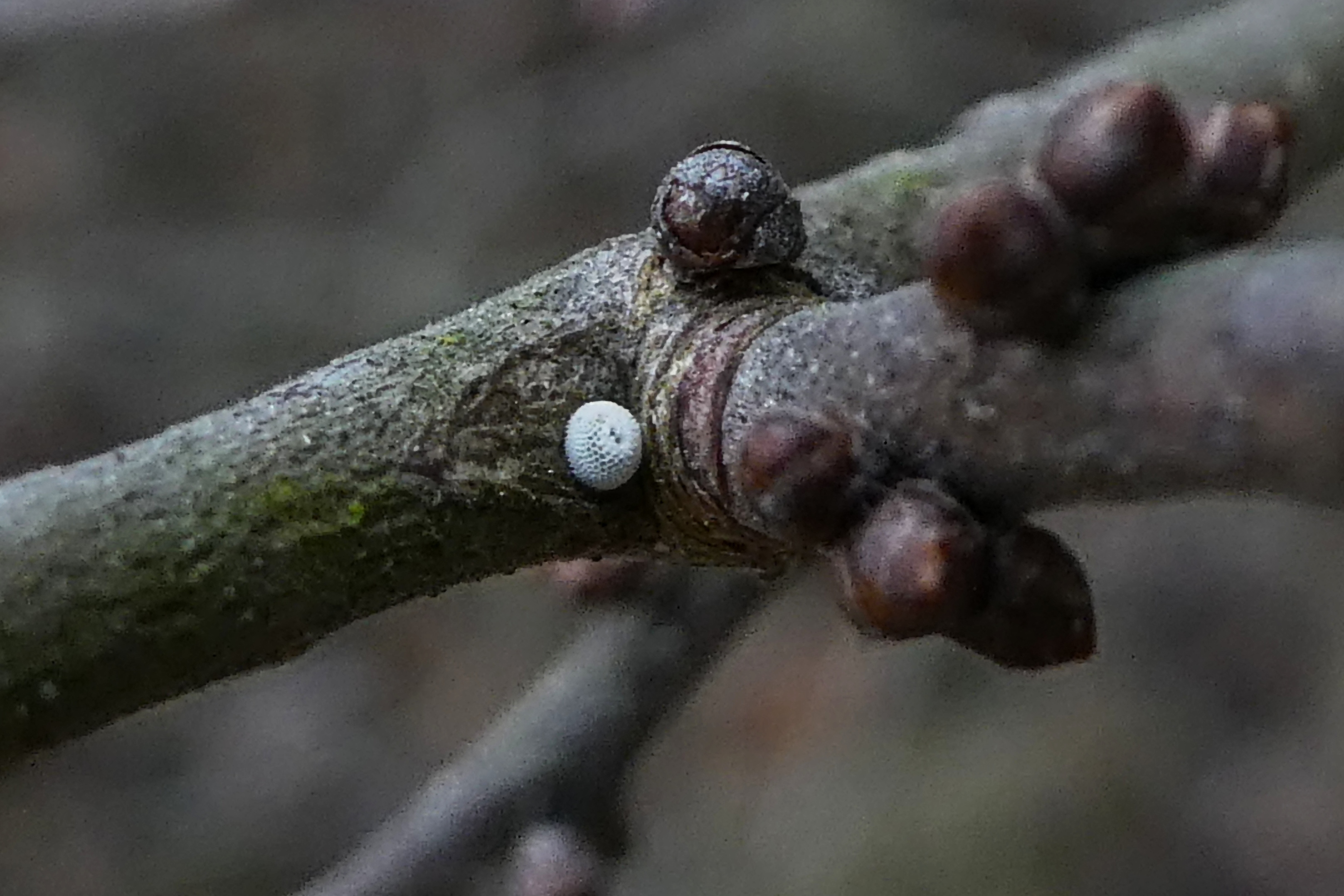 Bild 2 Eier von Thecla betulae, bei Bad Düben, am Rande der Dübener Heide, 11.04.2009