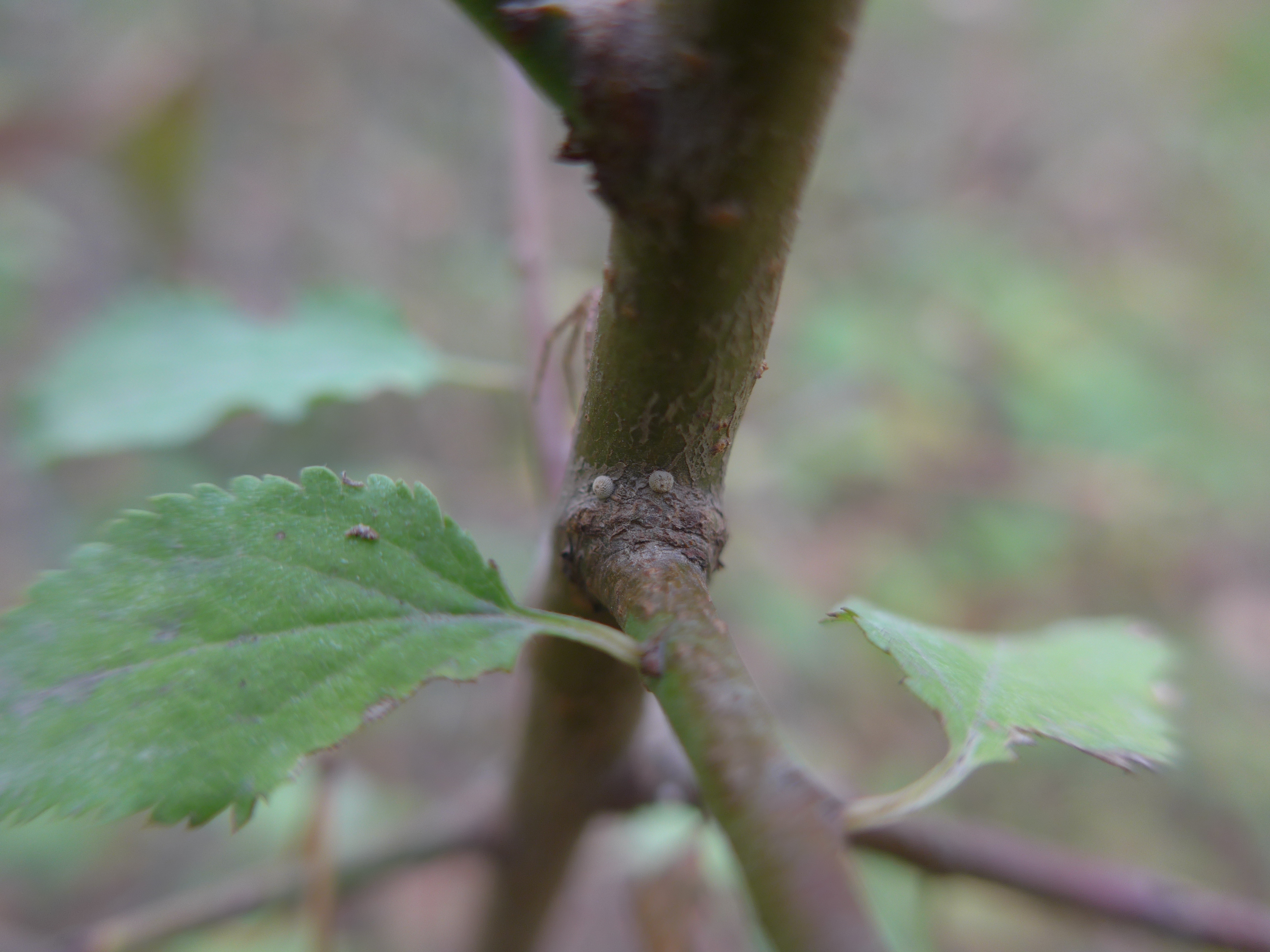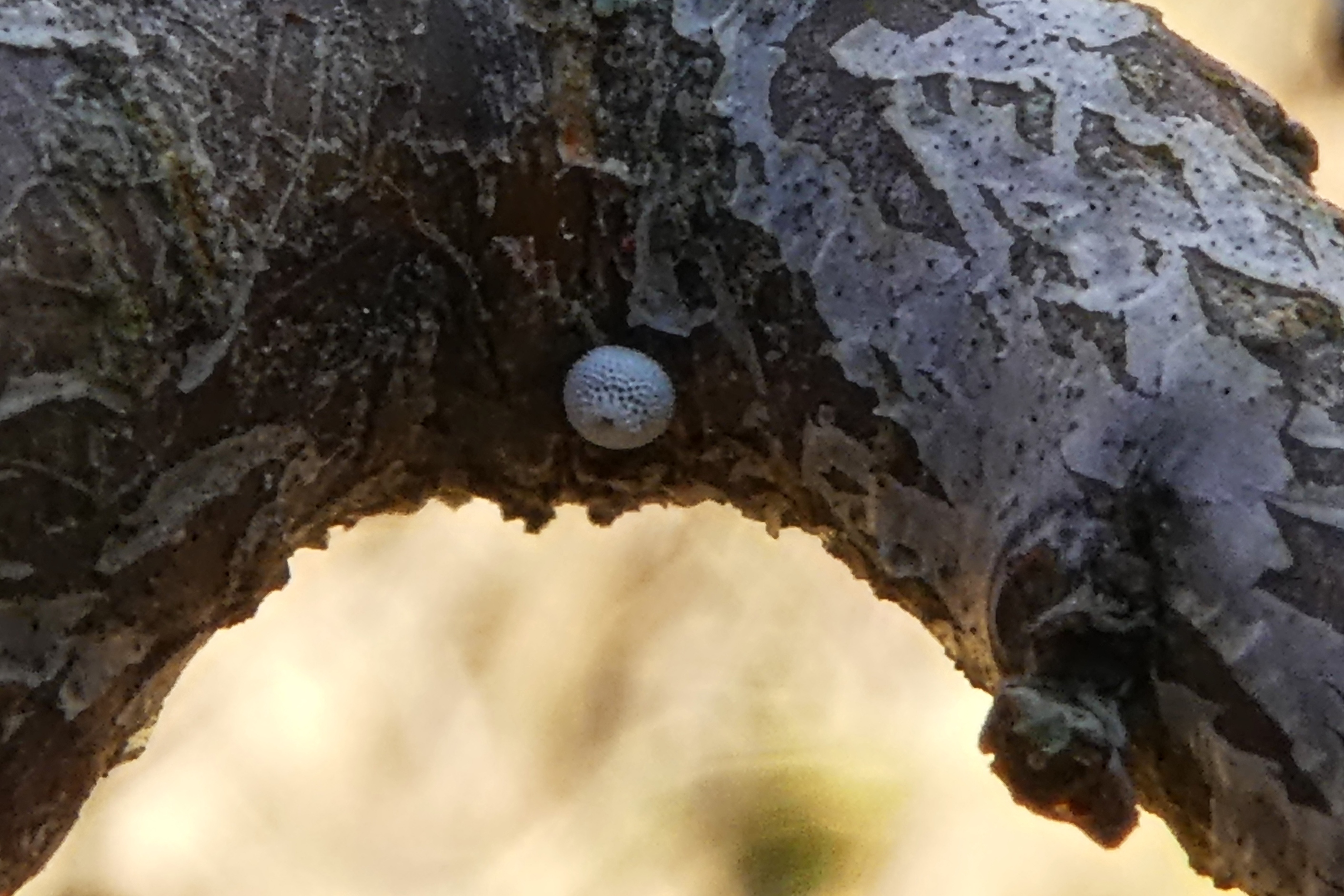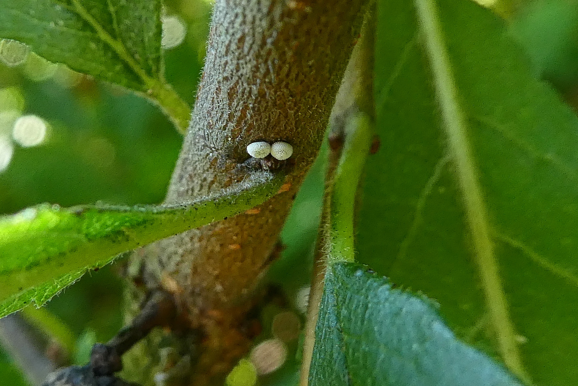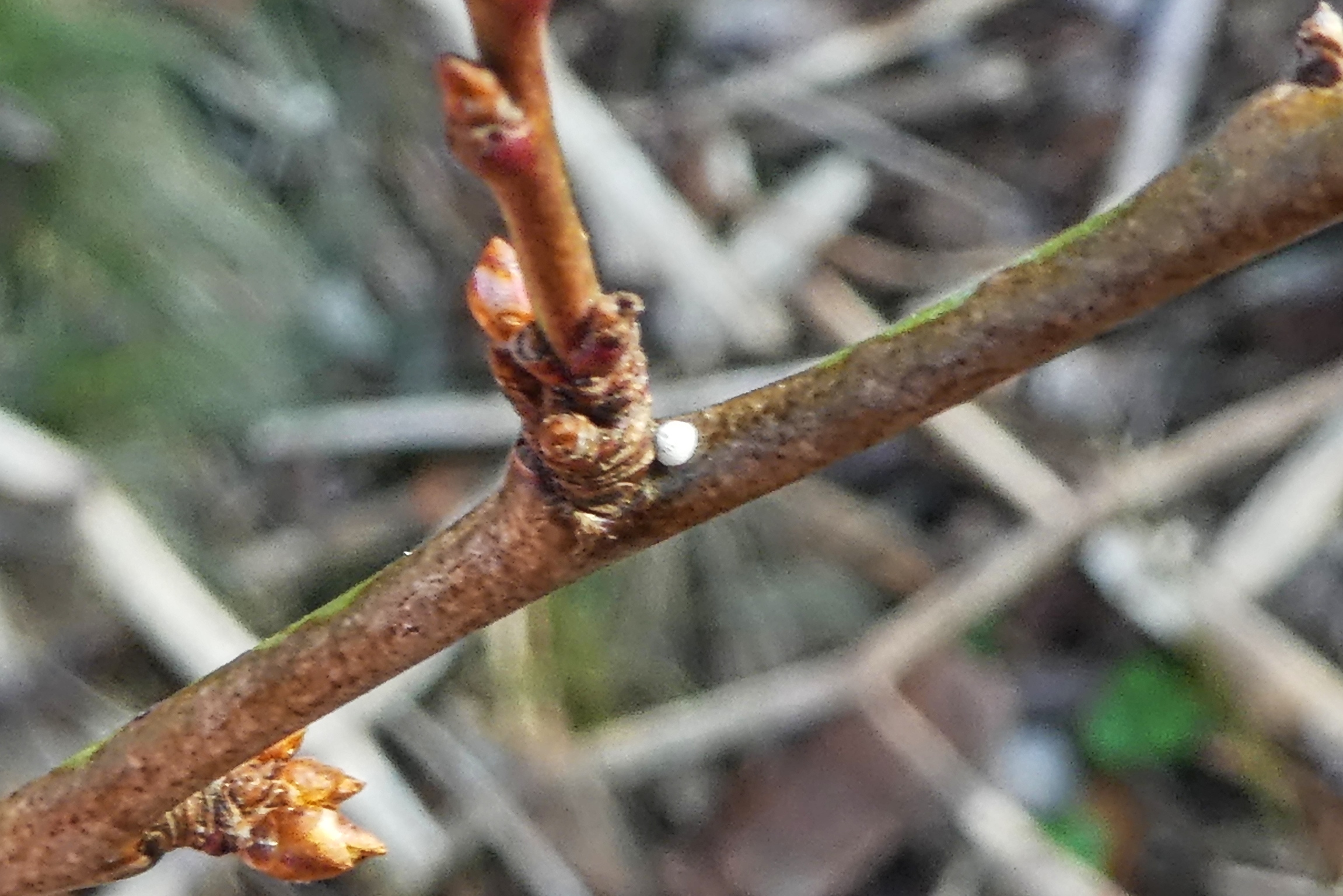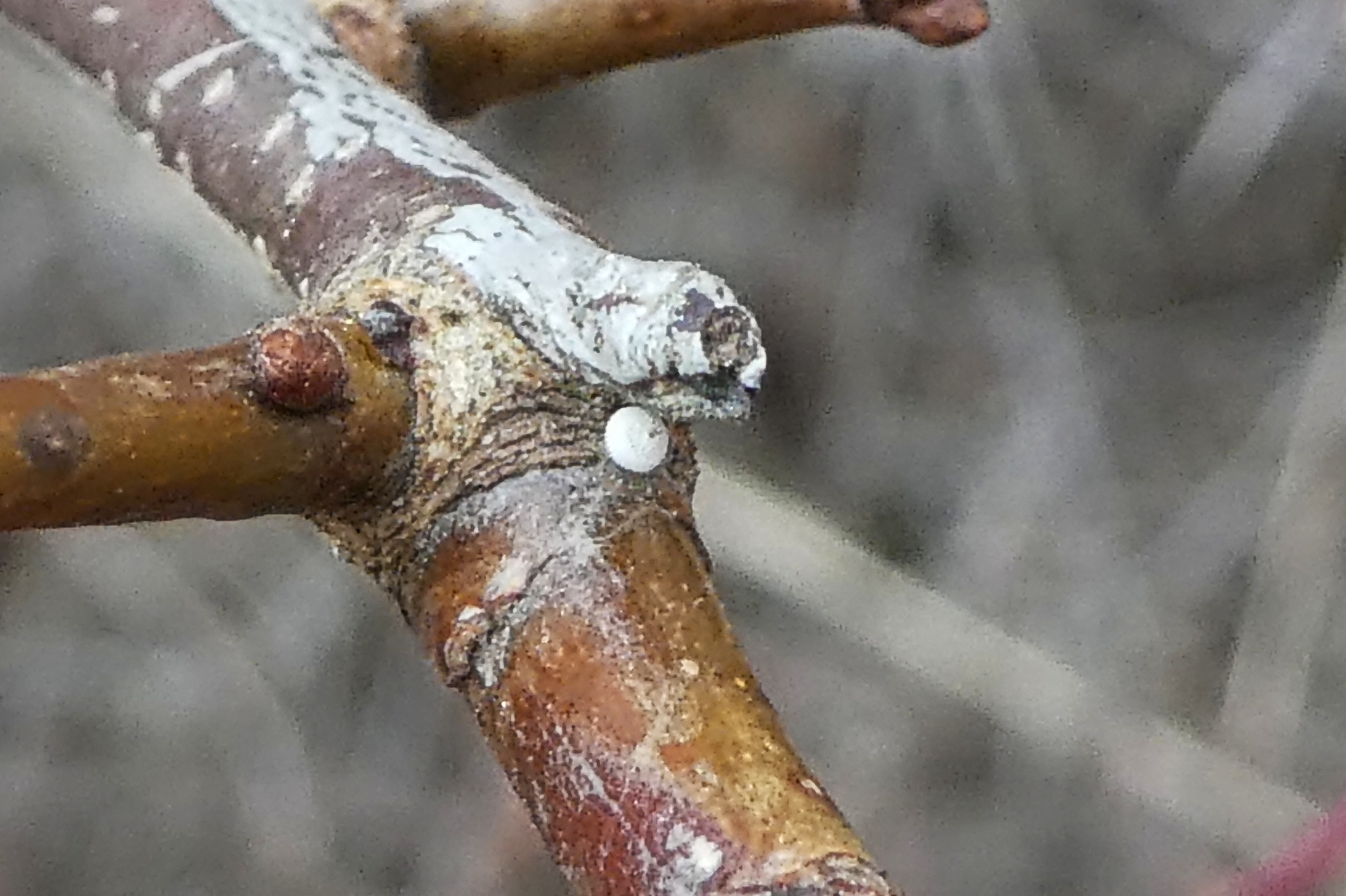 Bild 2 Eier von Thecla betulae, bei Bad Düben, am Rande der Dübener Heide, 11.04.2009