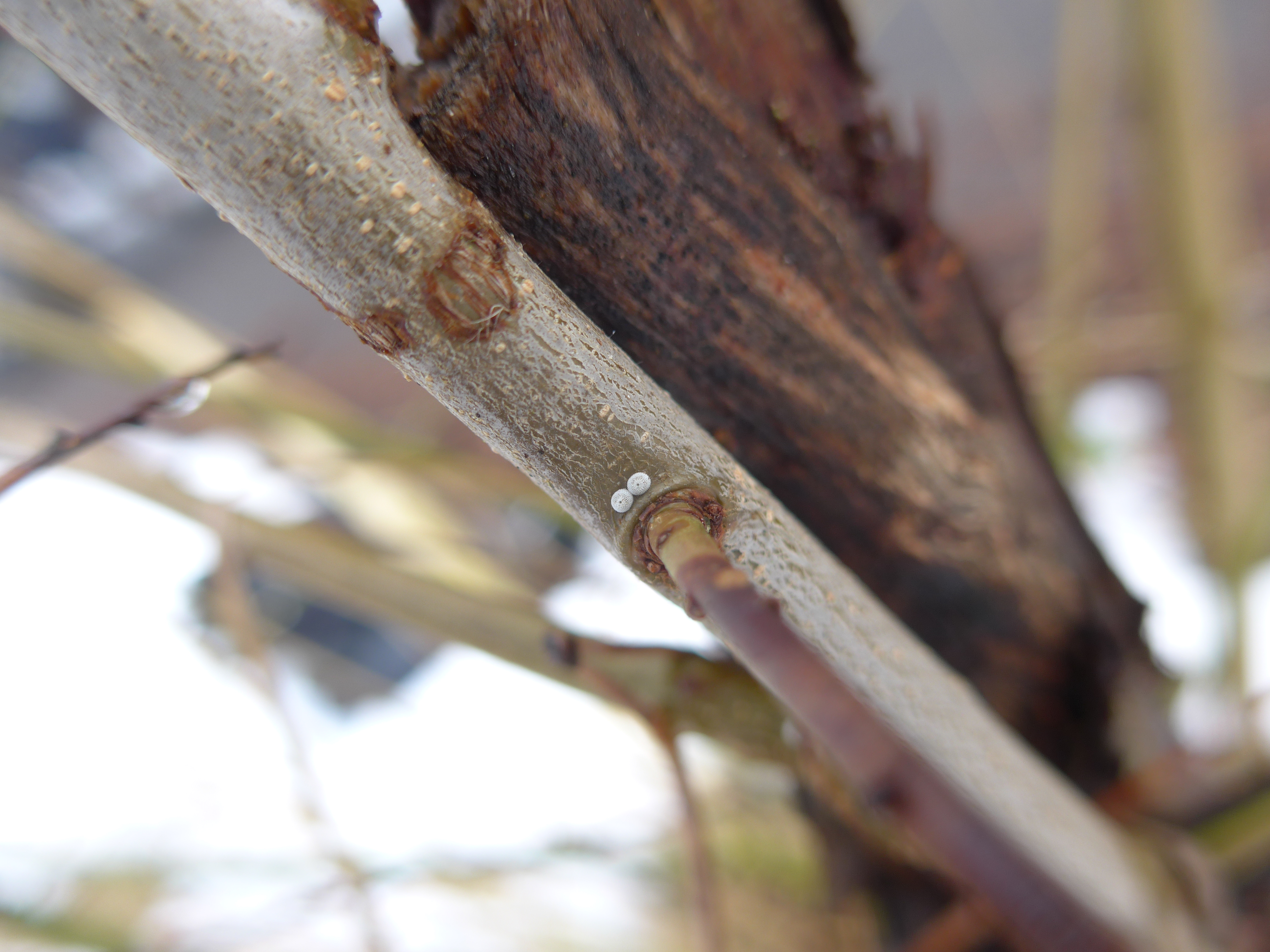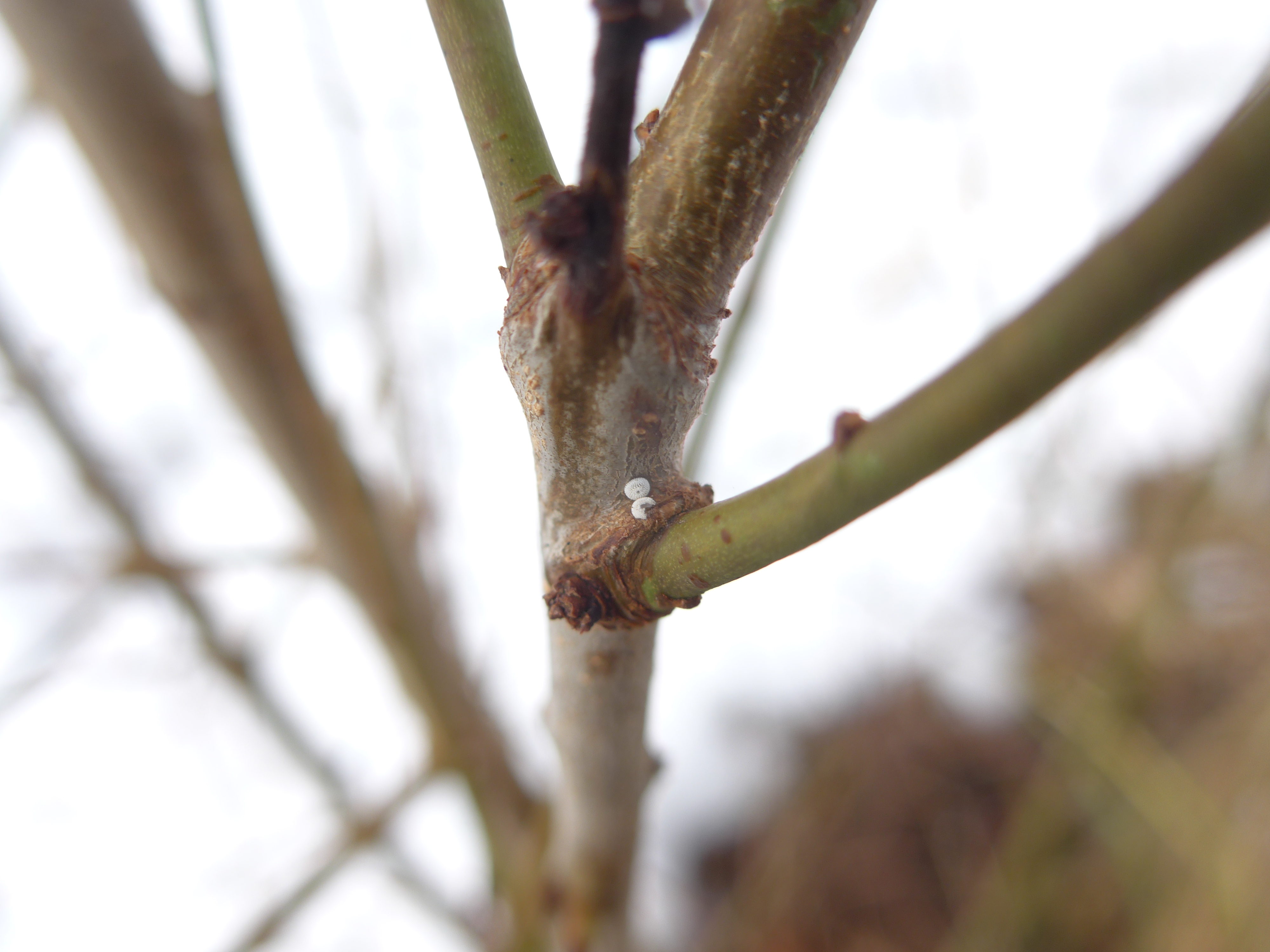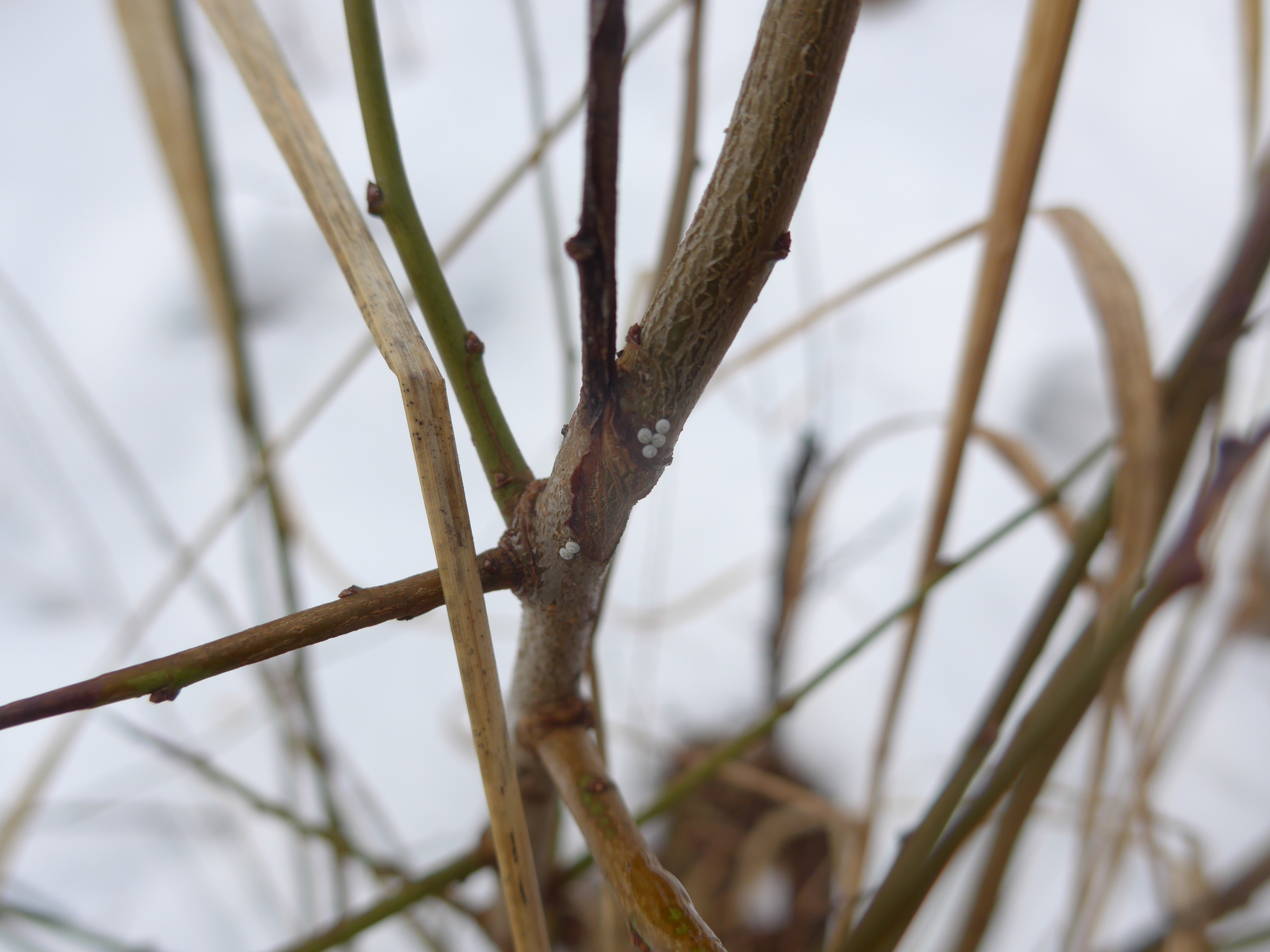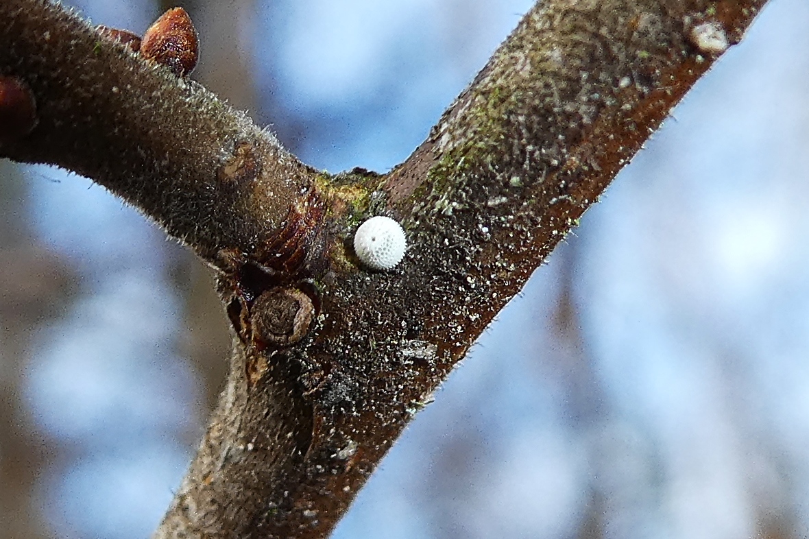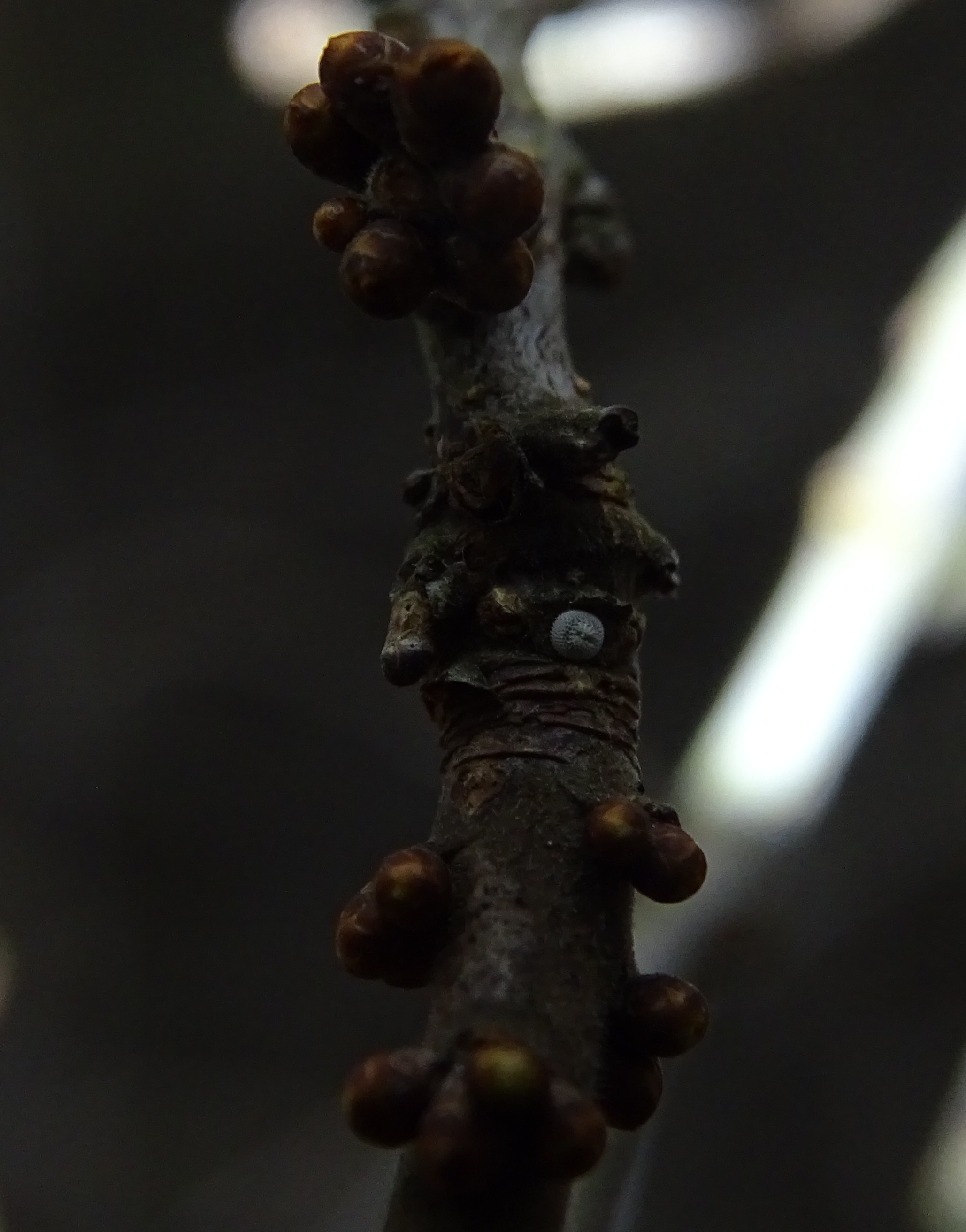 Bild 2 Eier von Thecla betulae, bei Bad Düben, am Rande der Dübener Heide, 11.04.2009