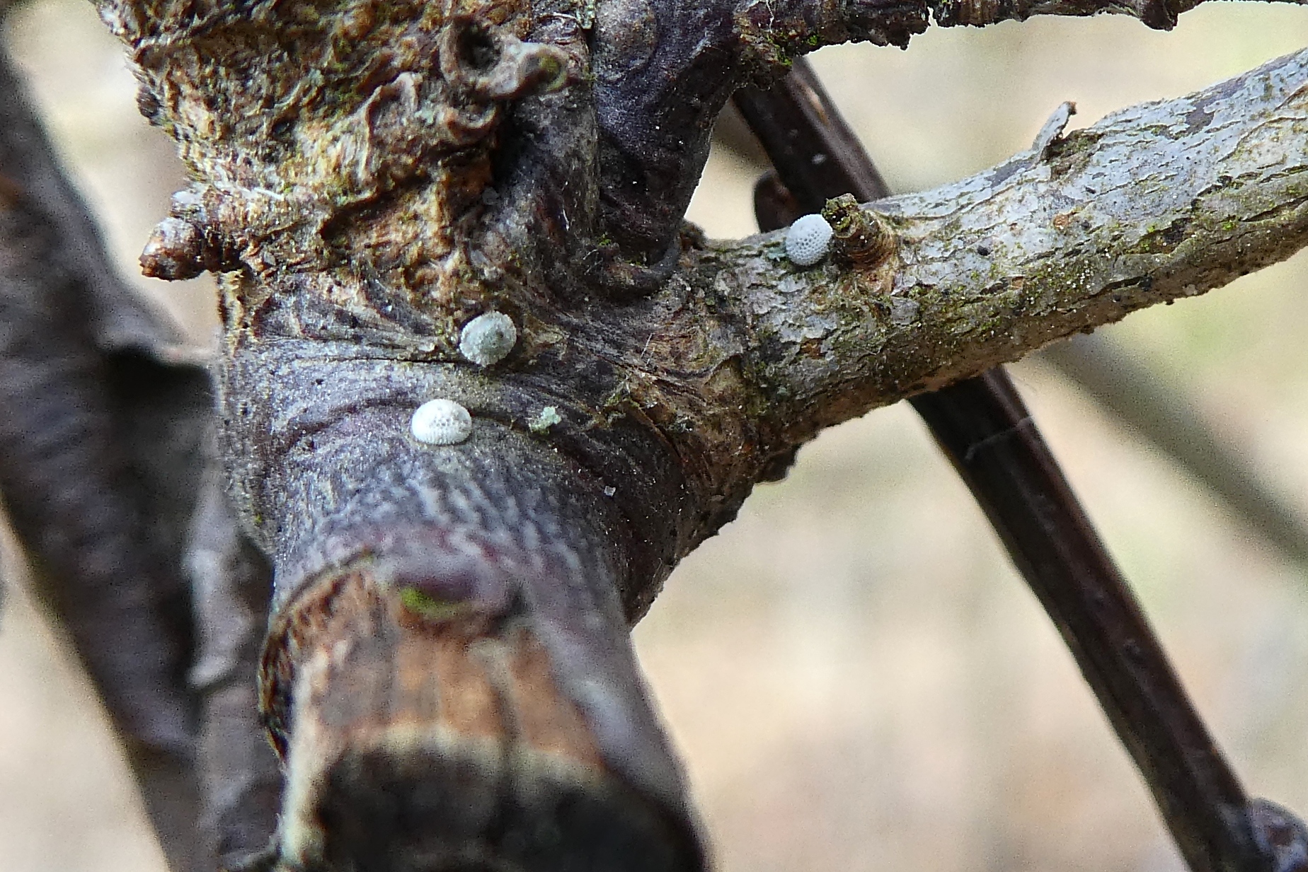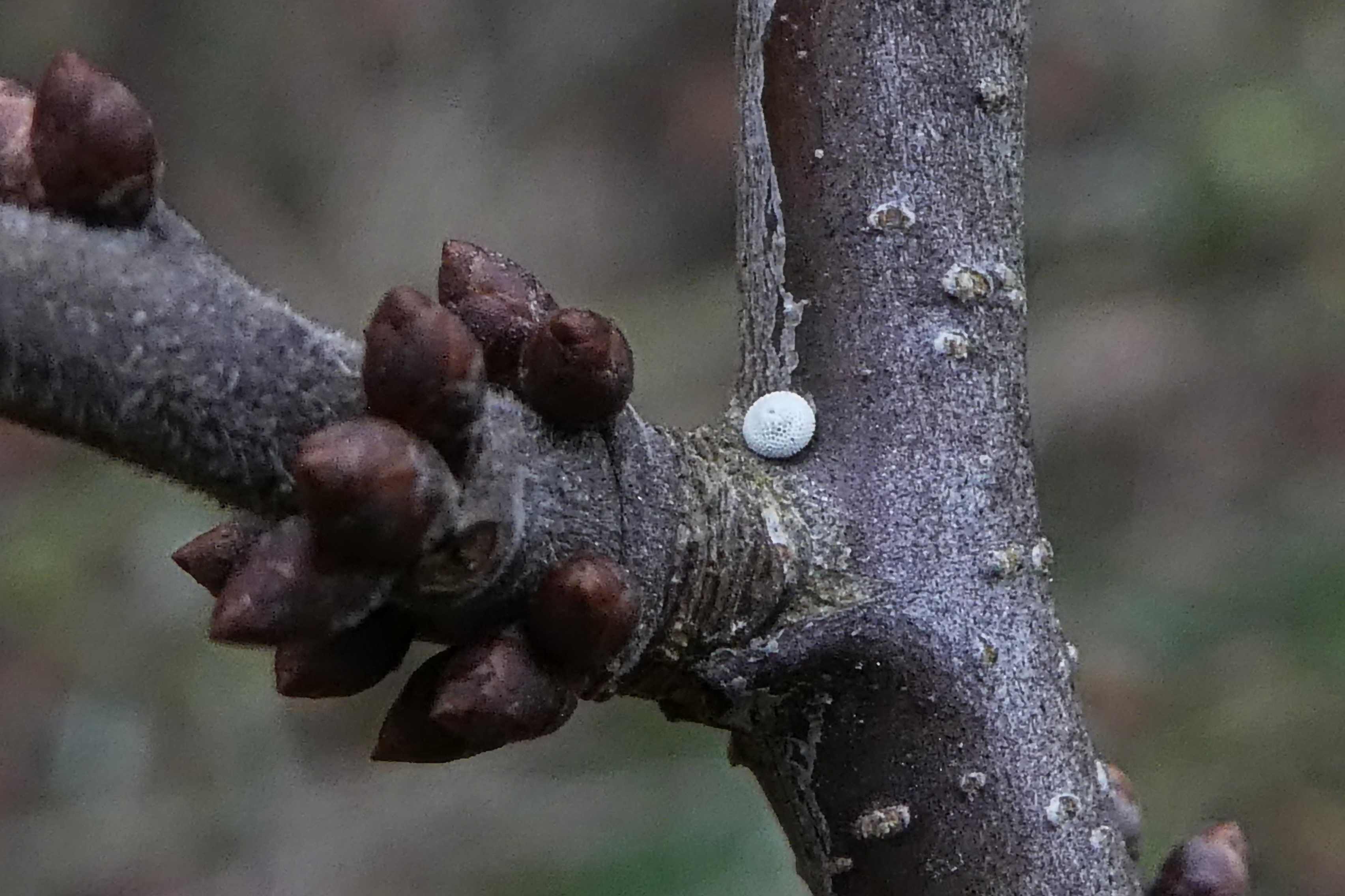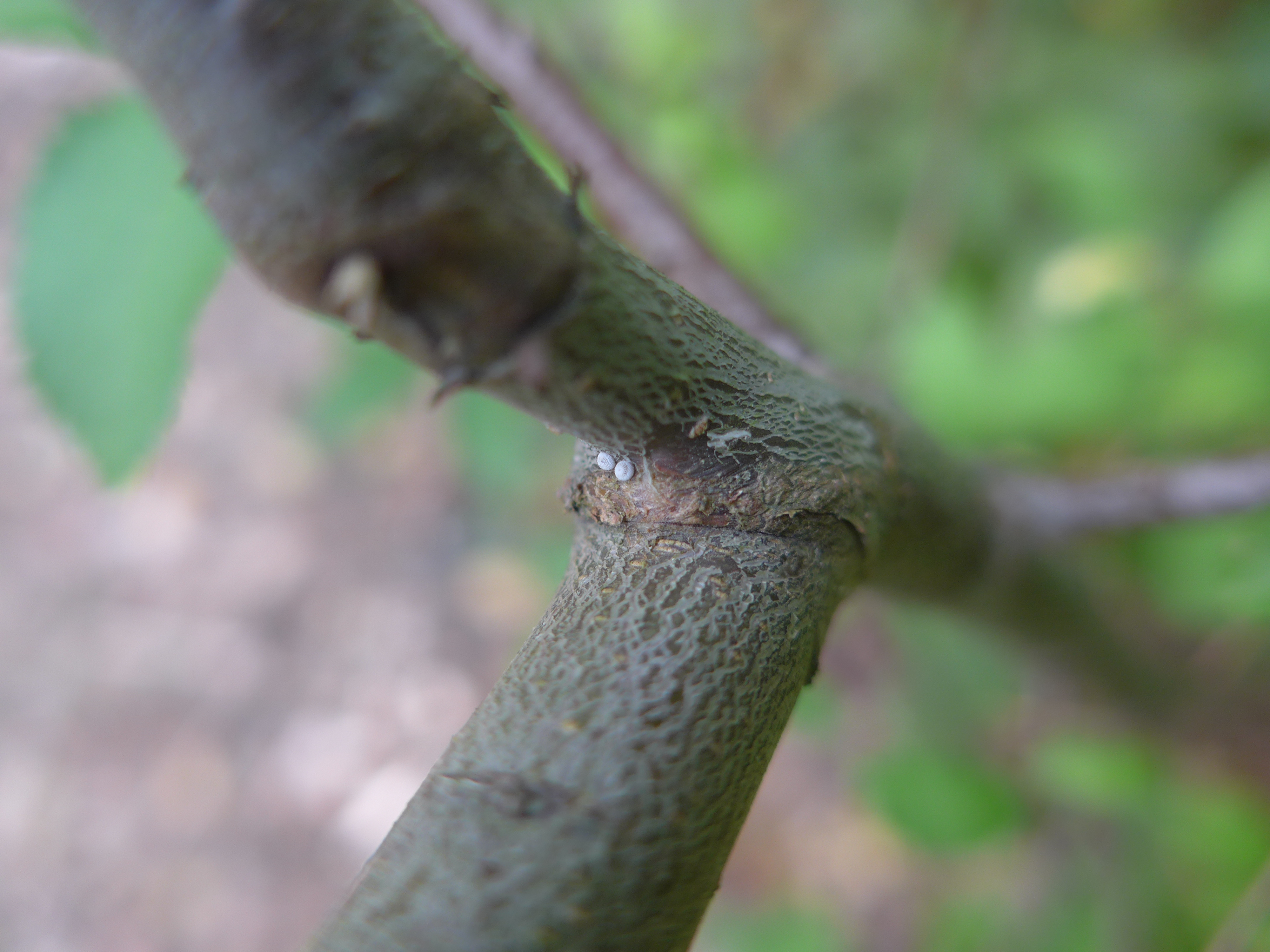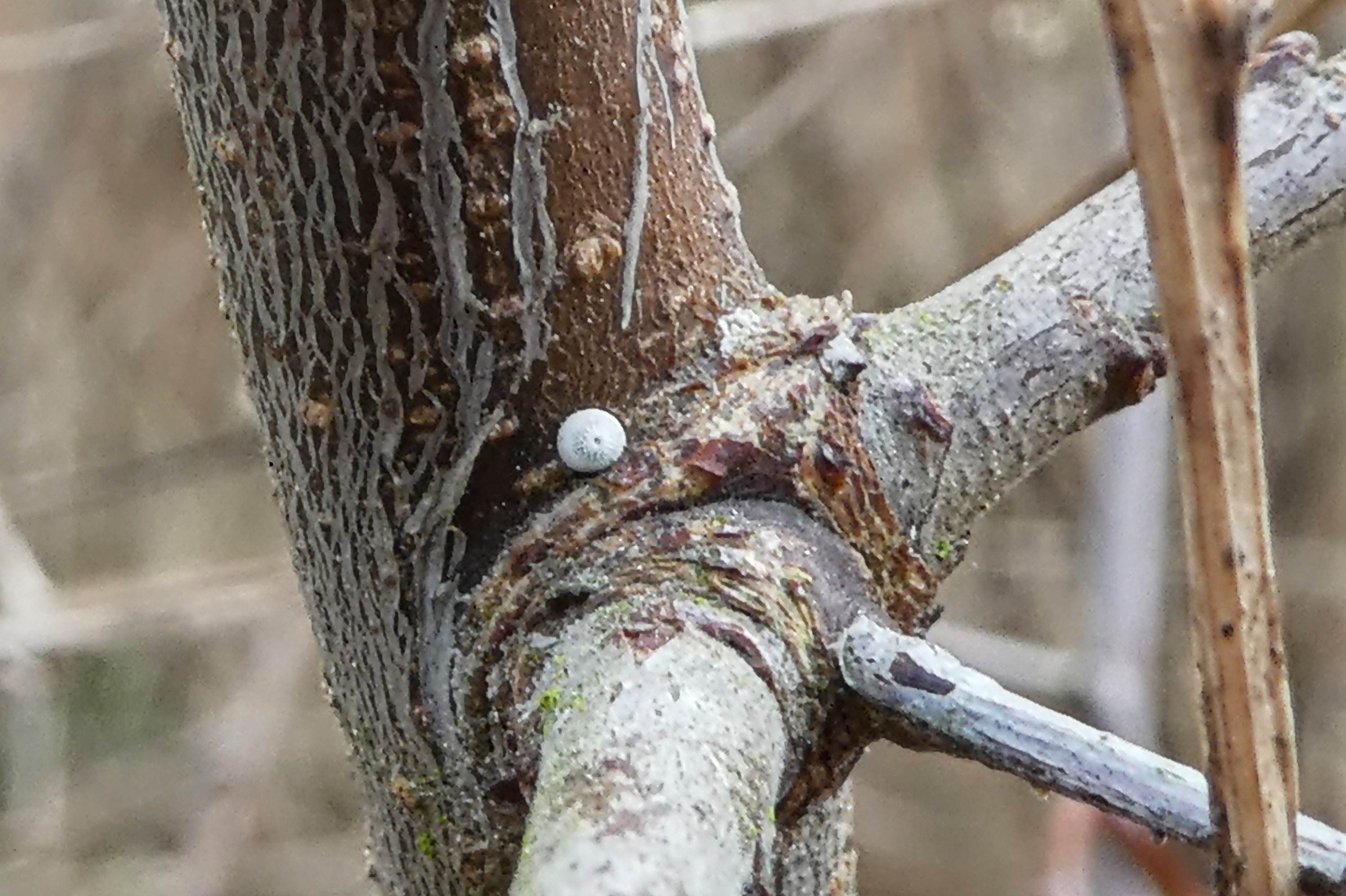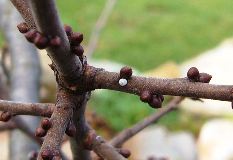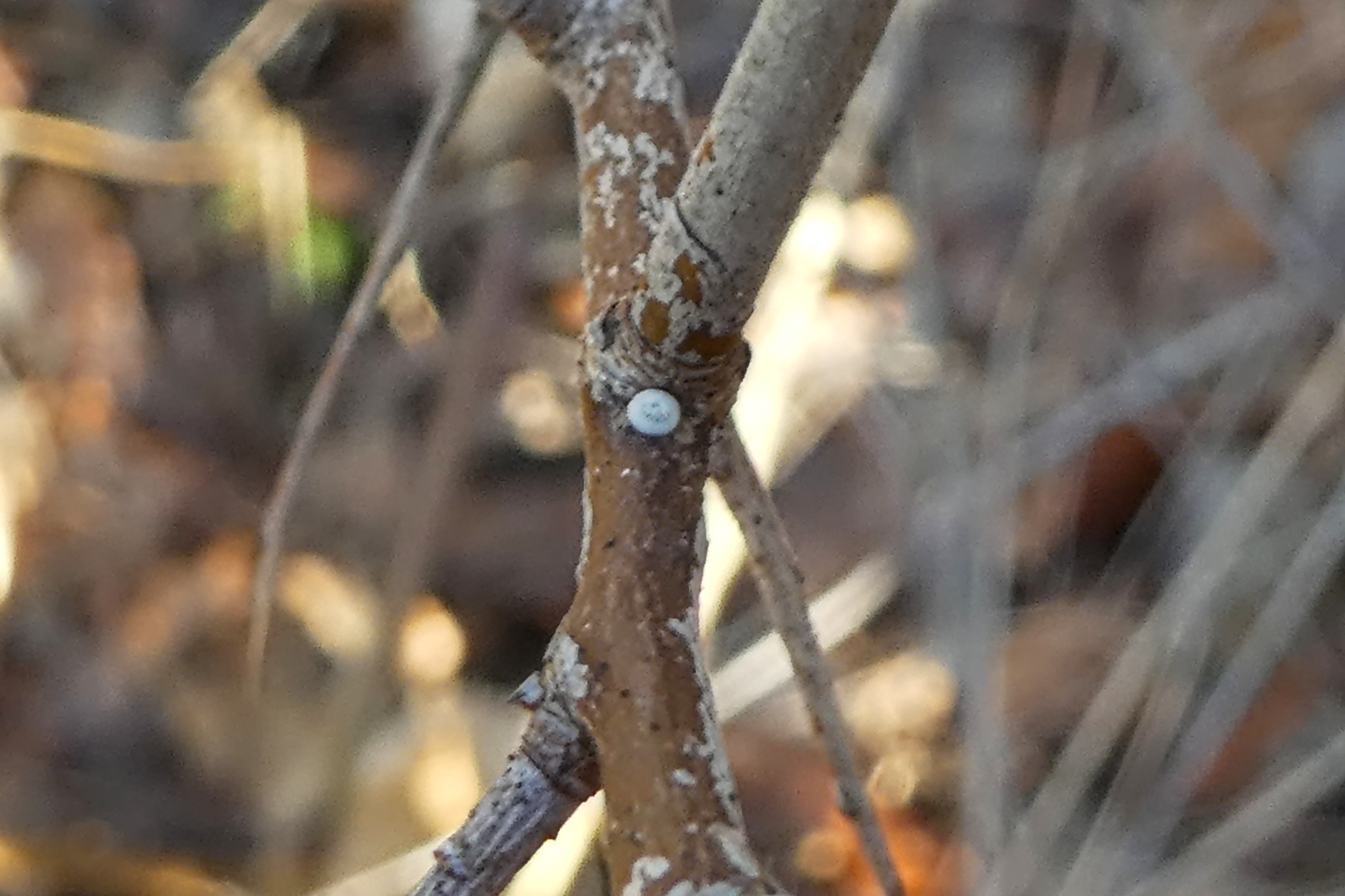 Bild 2 Eier von Thecla betulae, bei Bad Düben, am Rande der Dübener Heide, 11.04.2009
