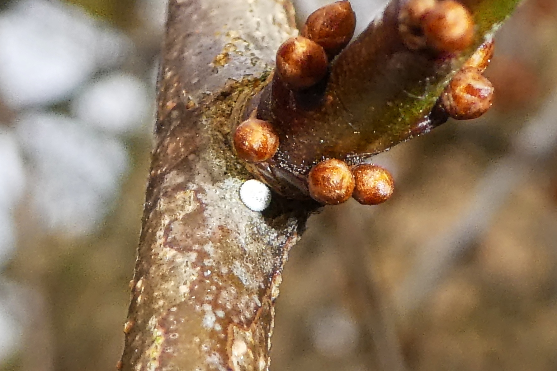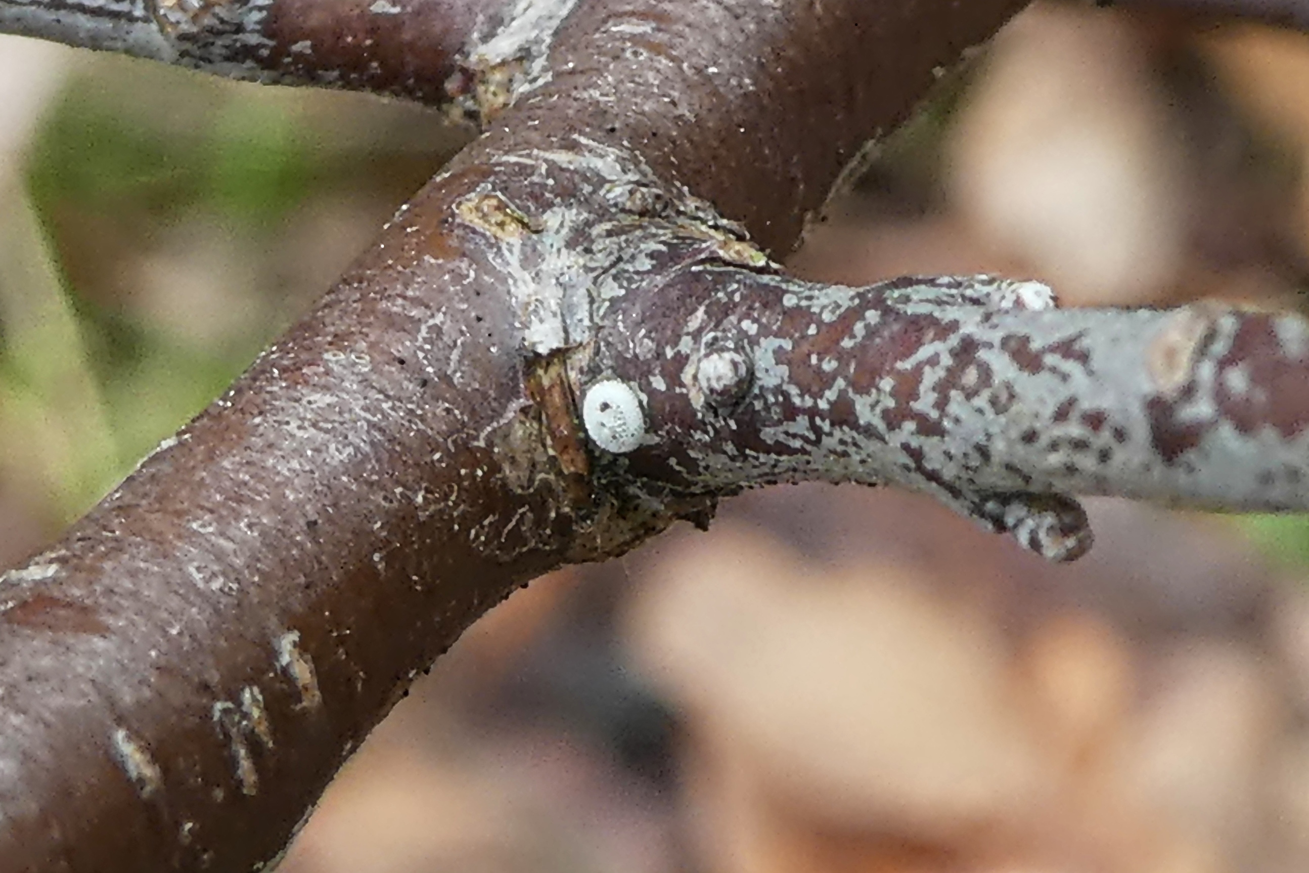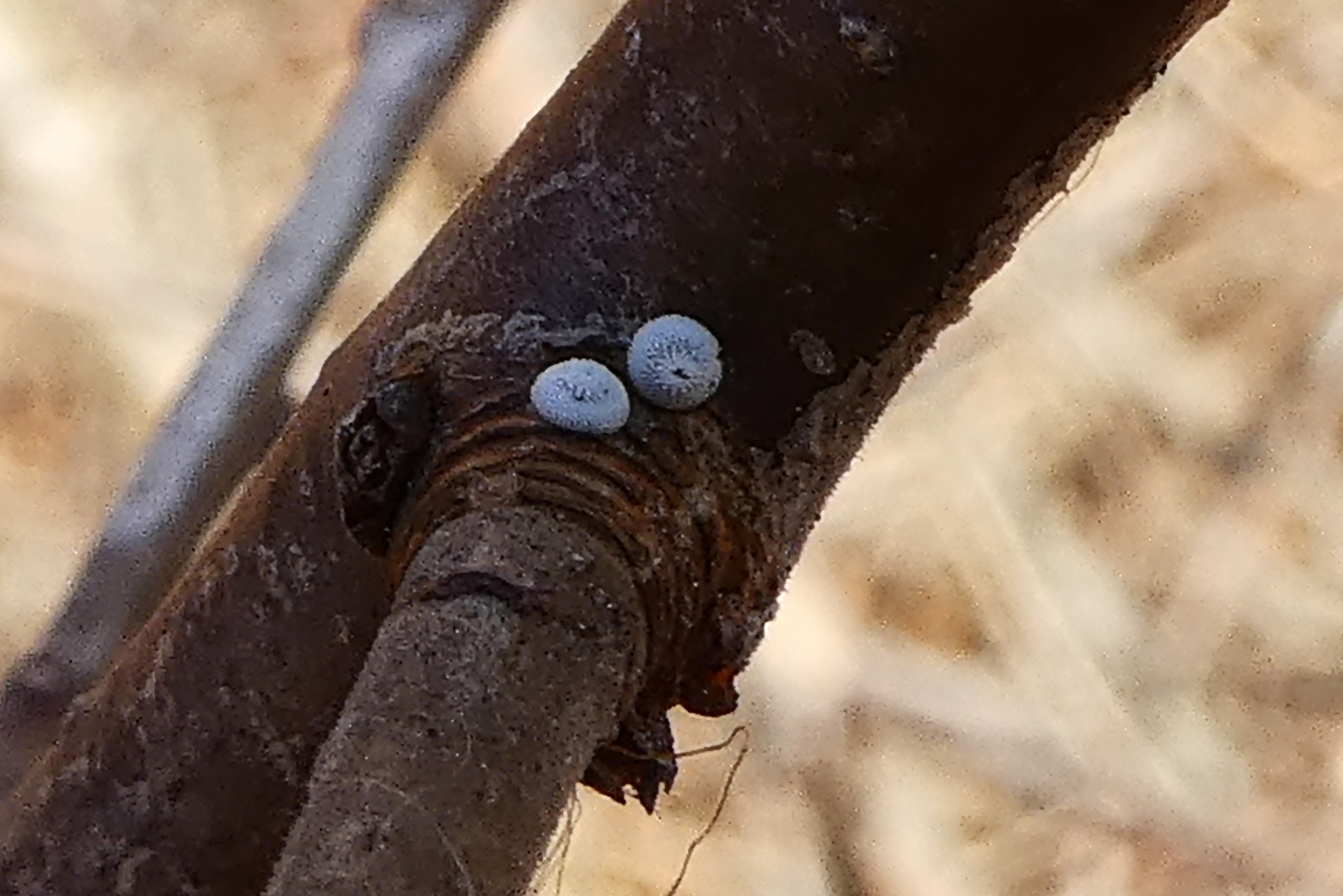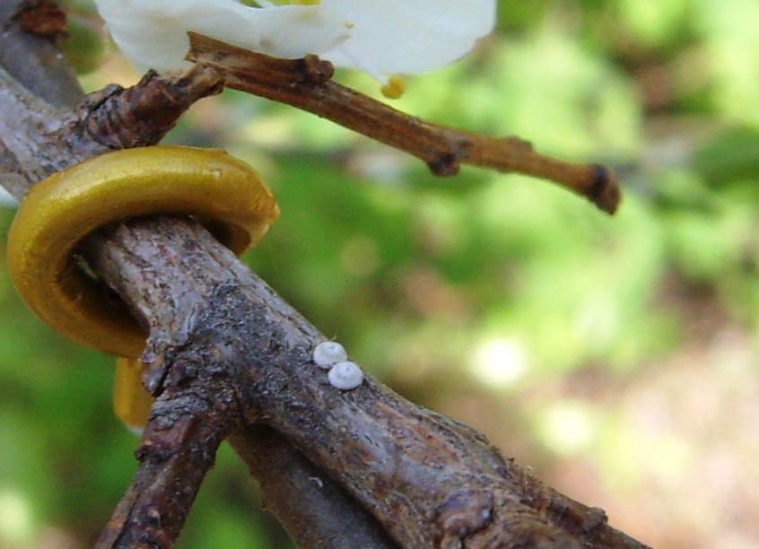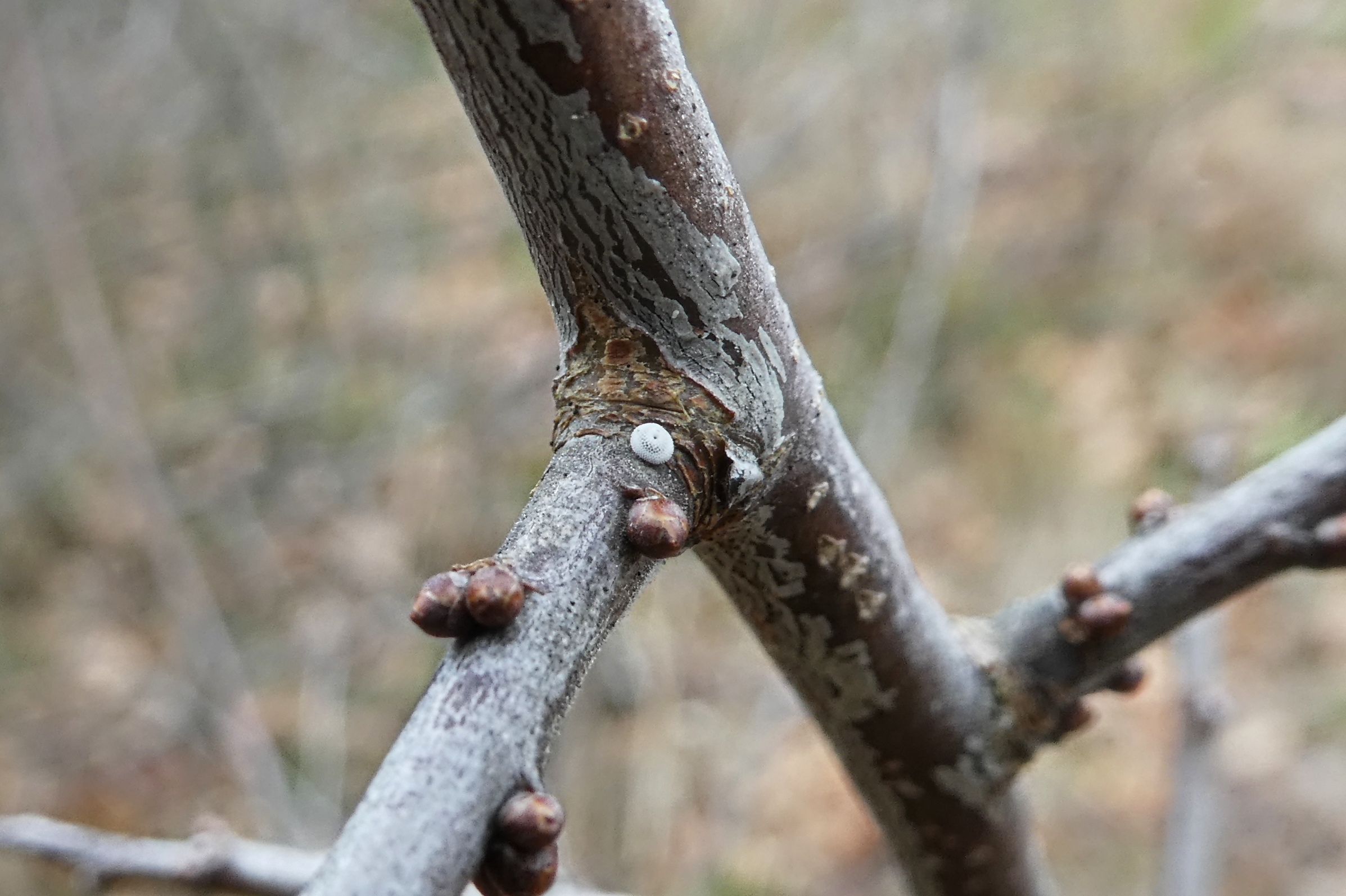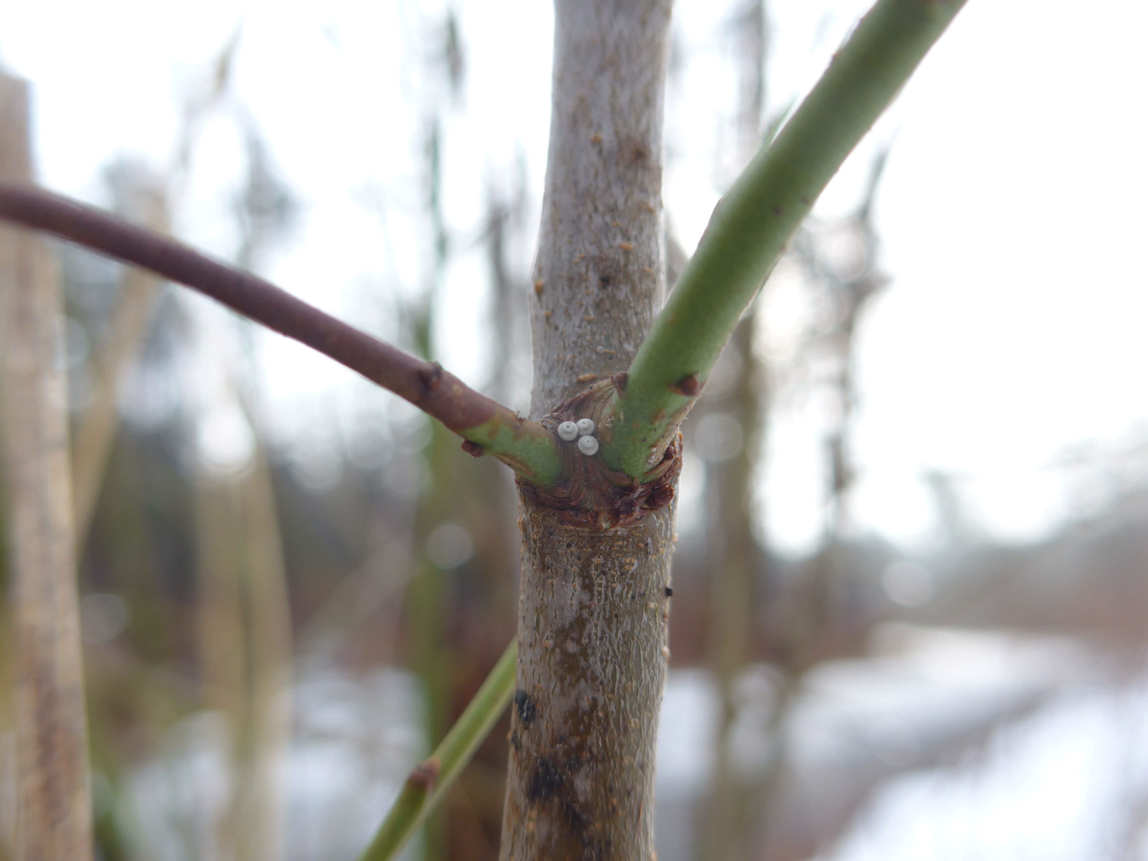 Bild 2 Eier von Thecla betulae, bei Bad Düben, am Rande der Dübener Heide, 11.04.2009