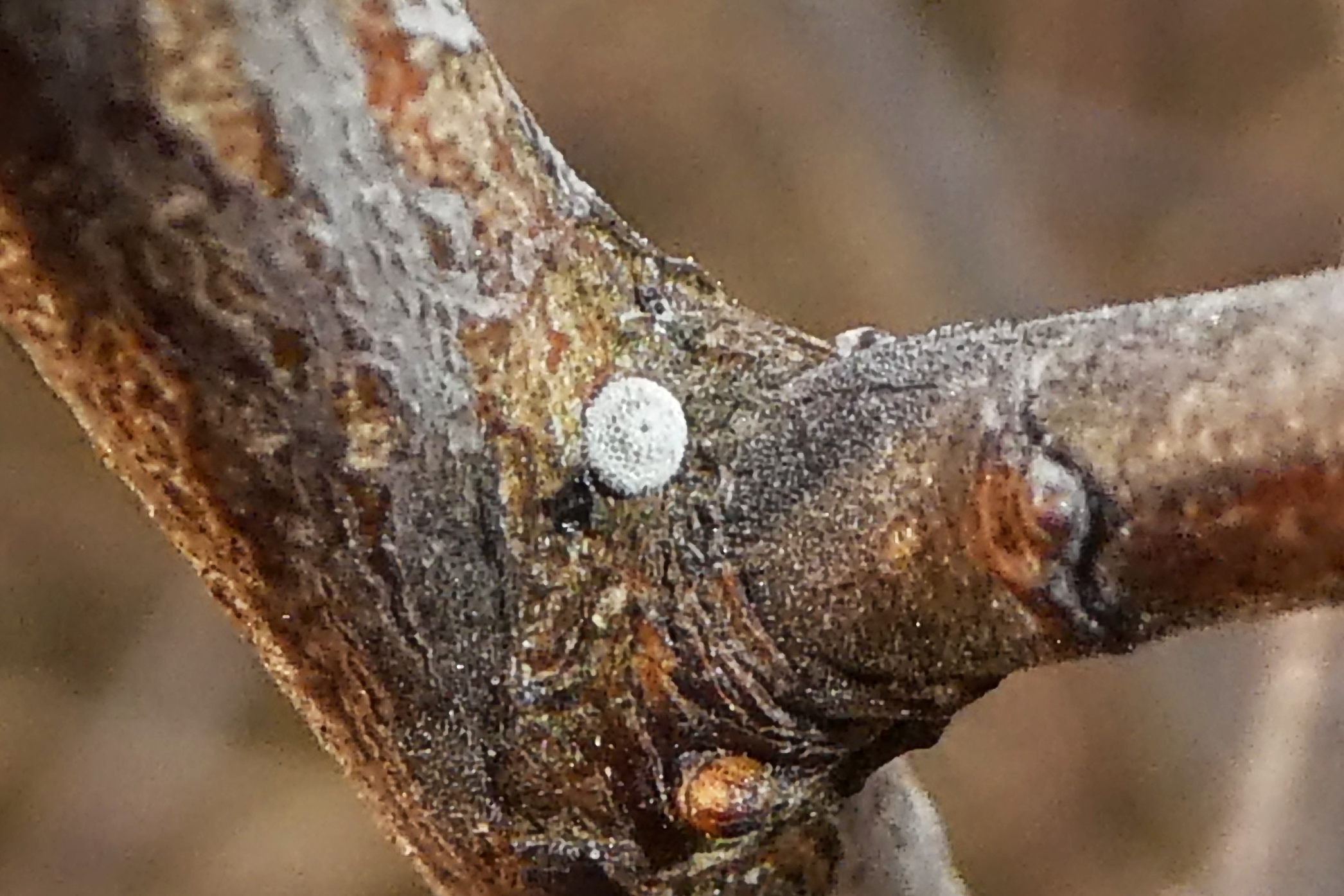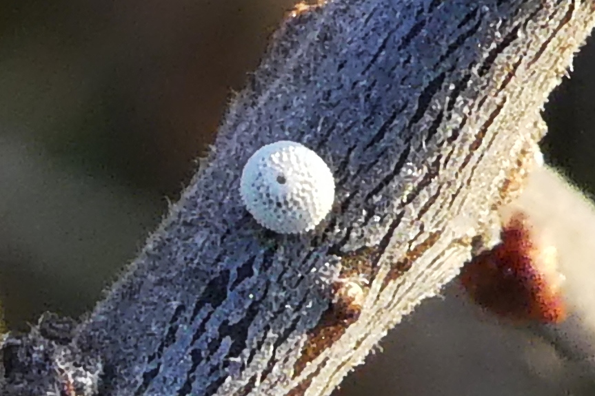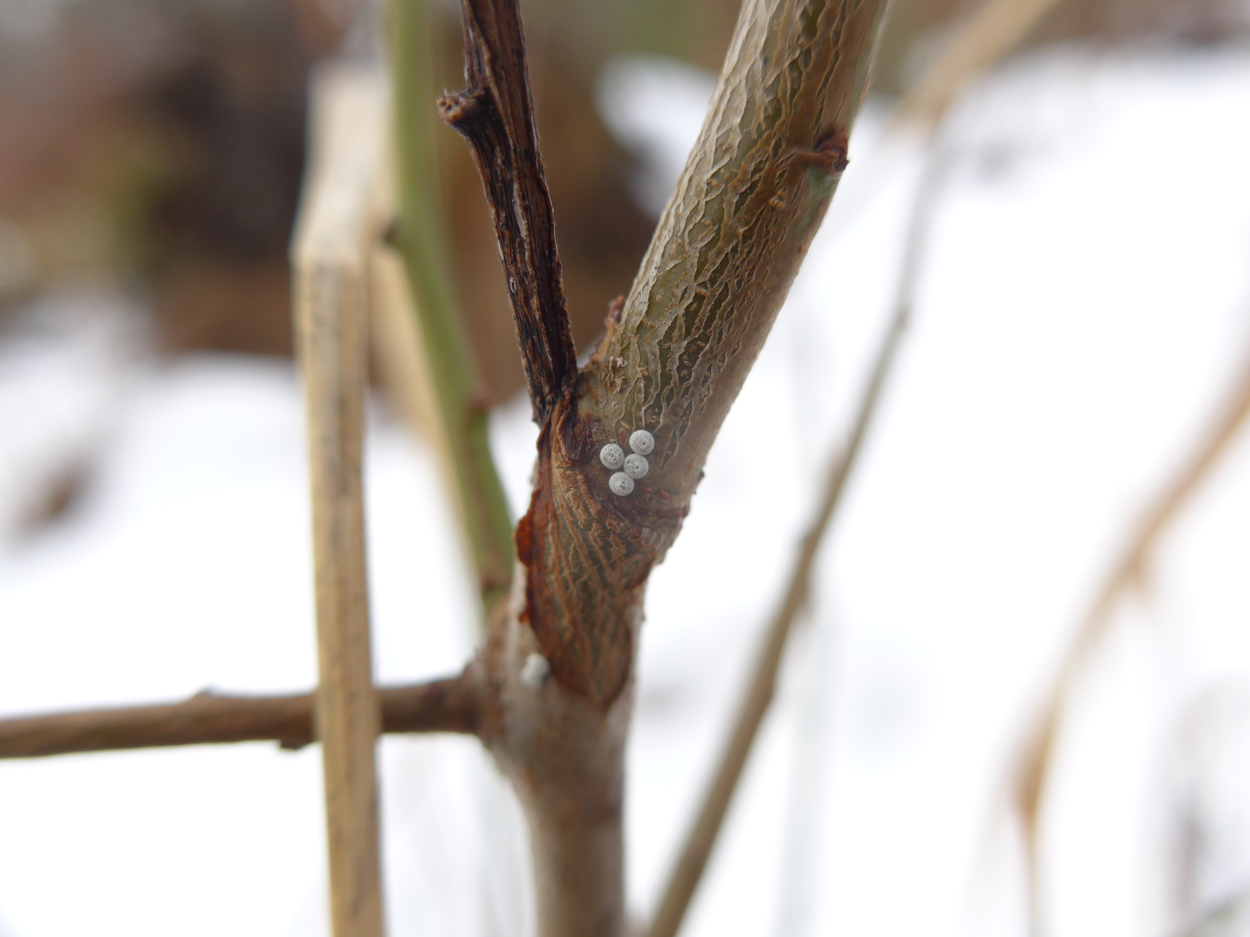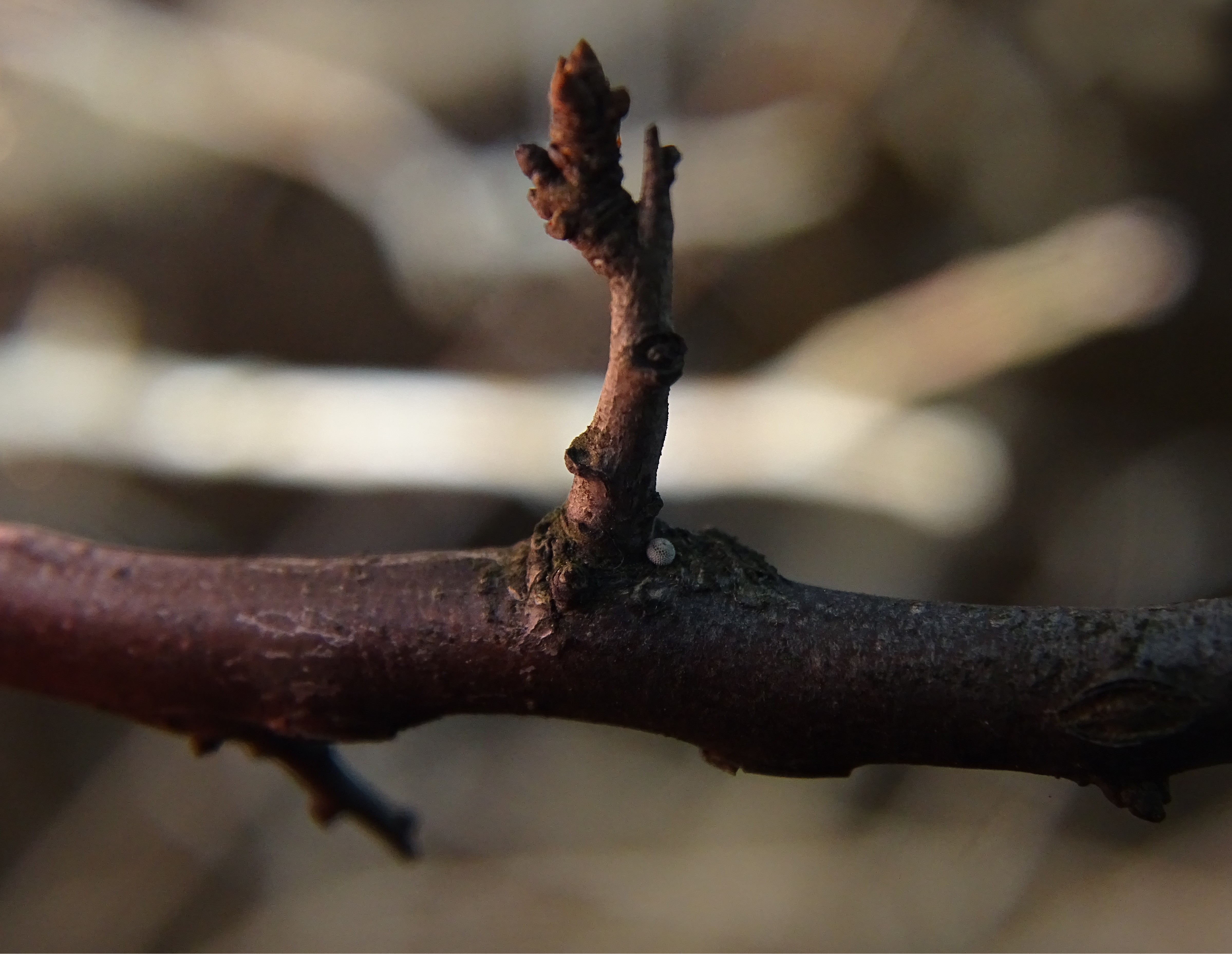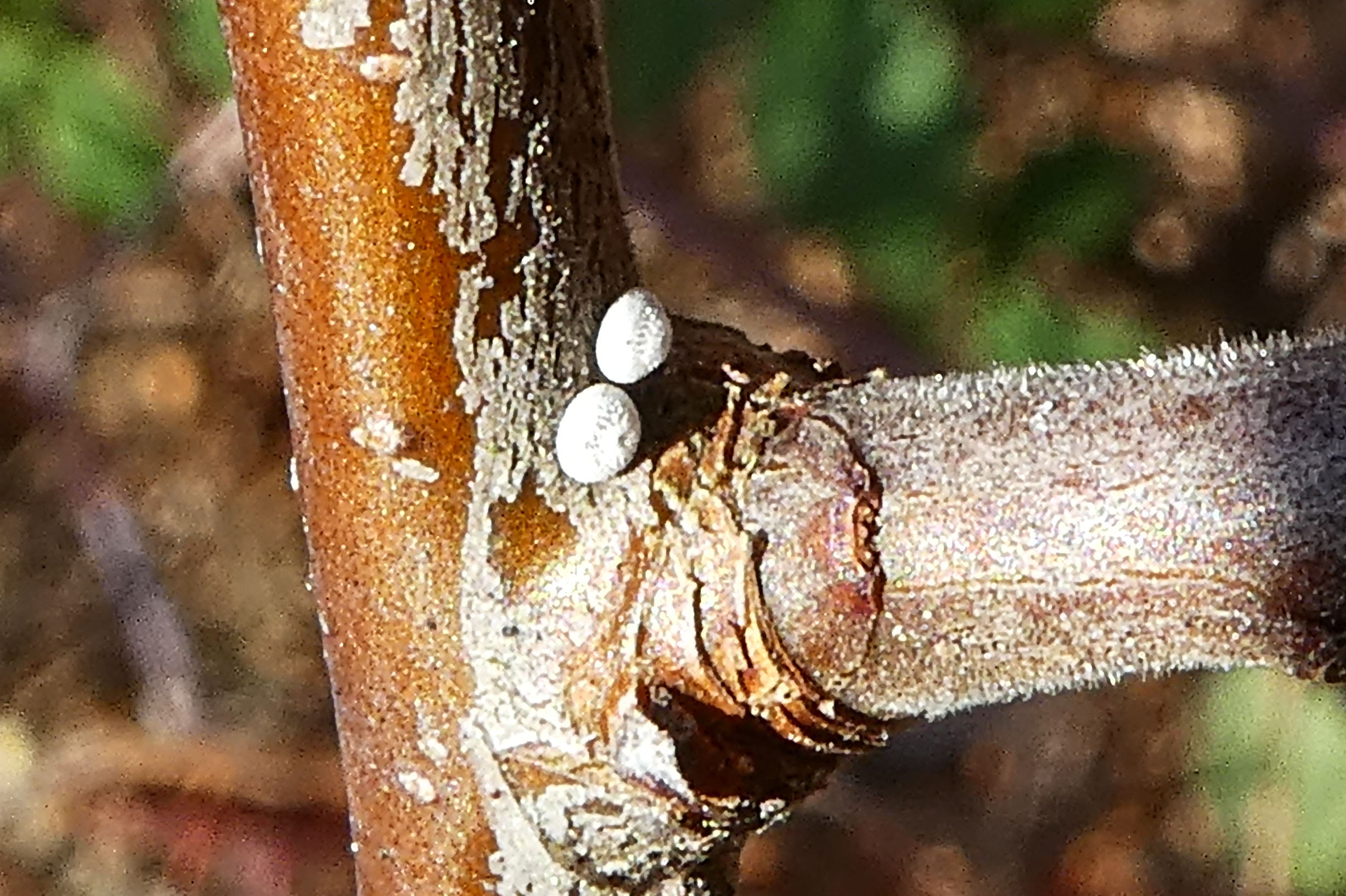 Bild 2 Eier von Thecla betulae, bei Bad Düben, am Rande der Dübener Heide, 11.04.2009