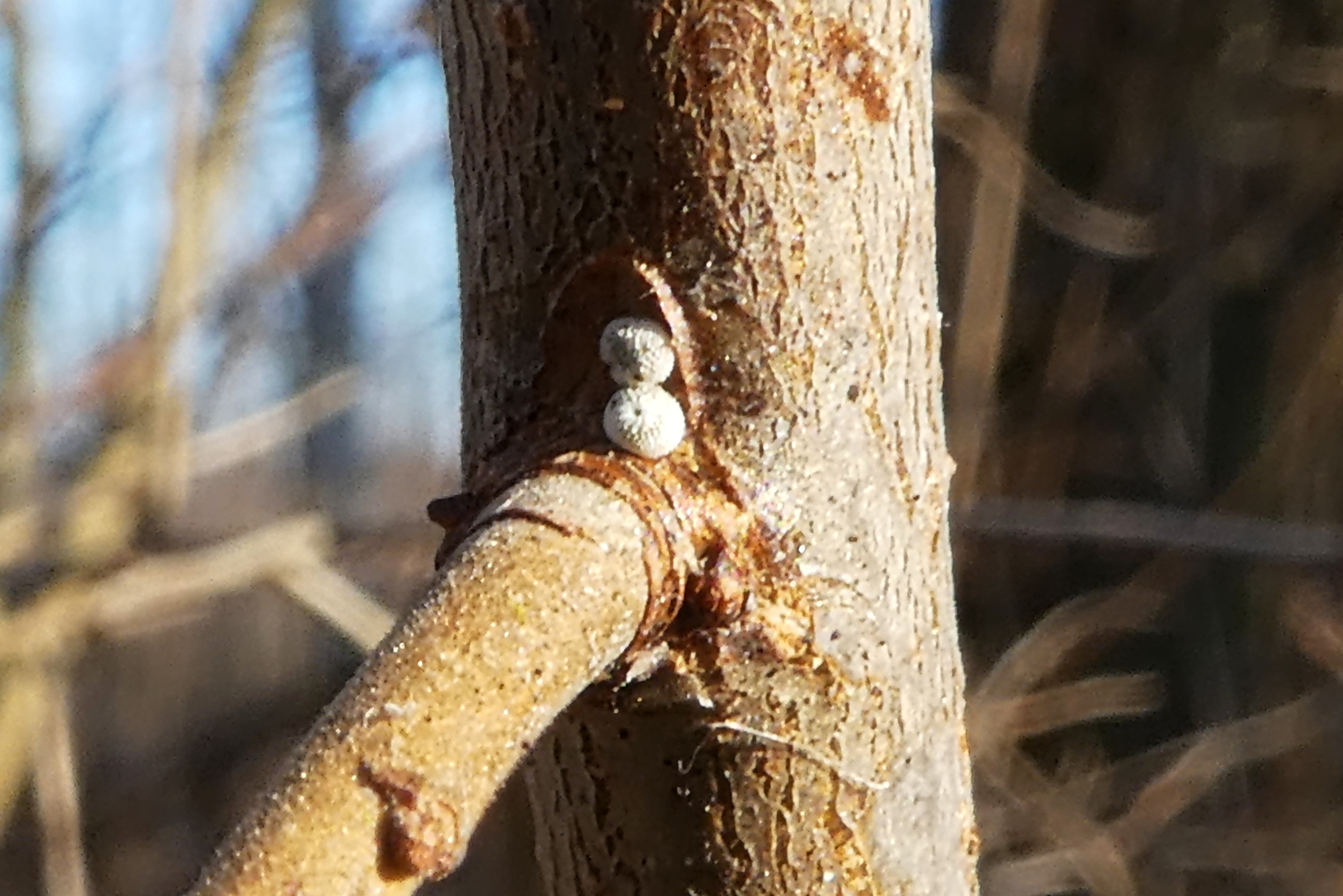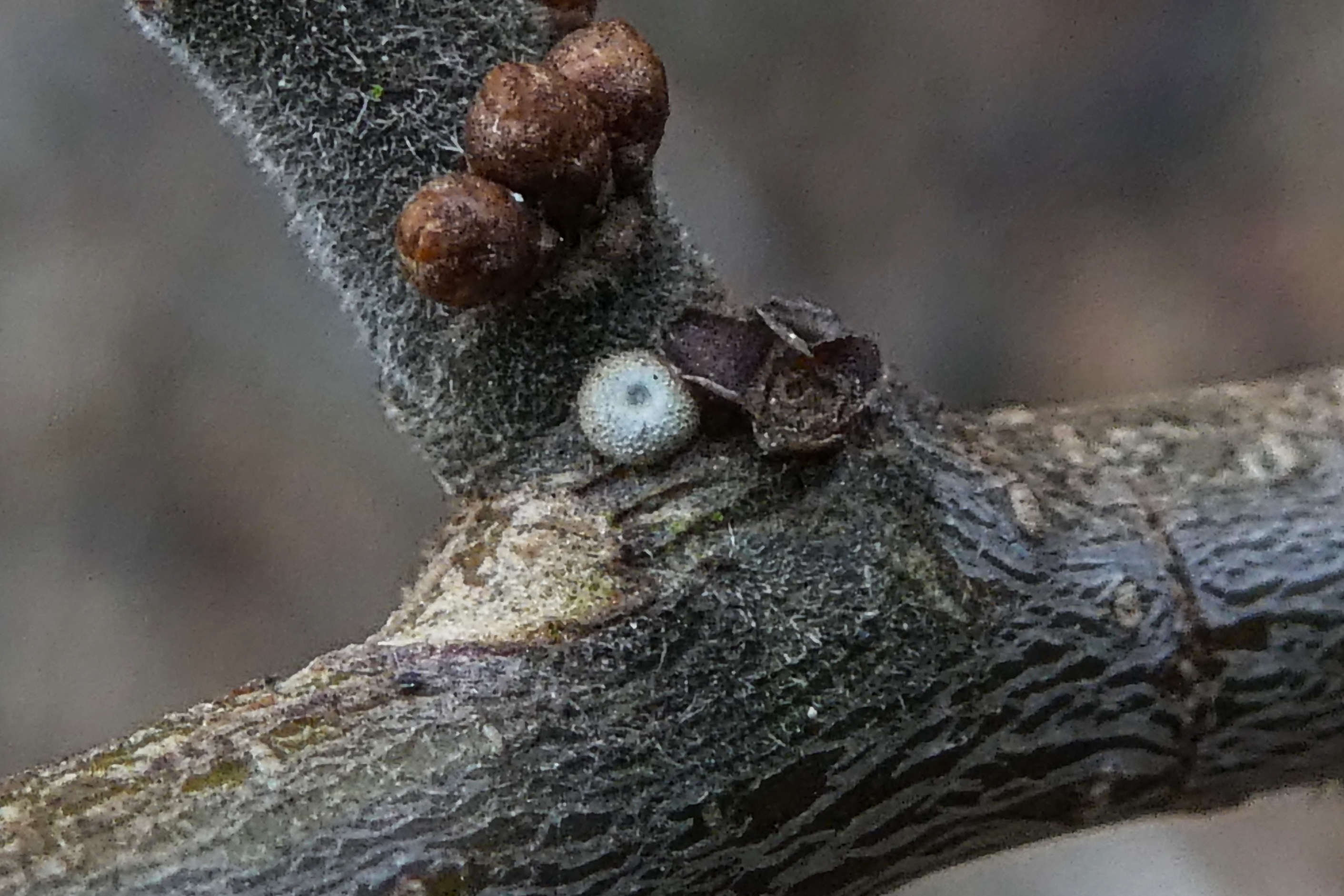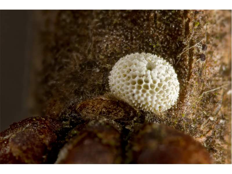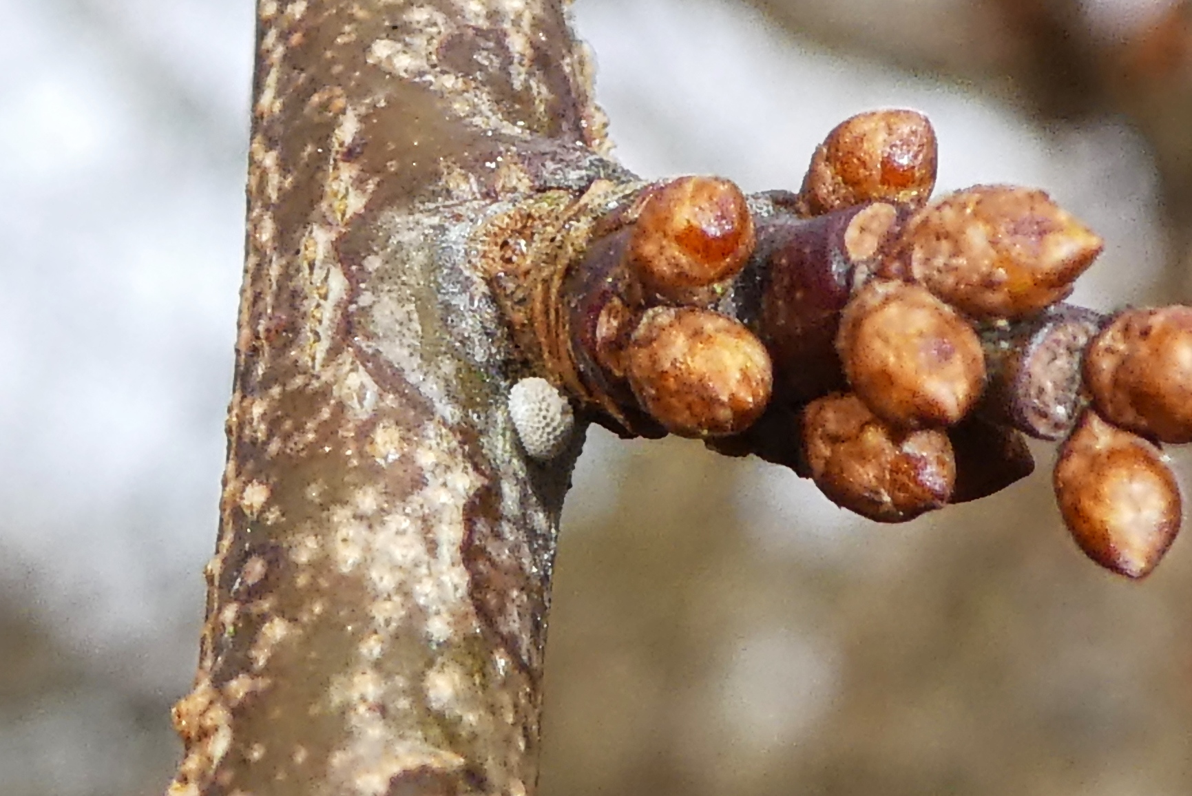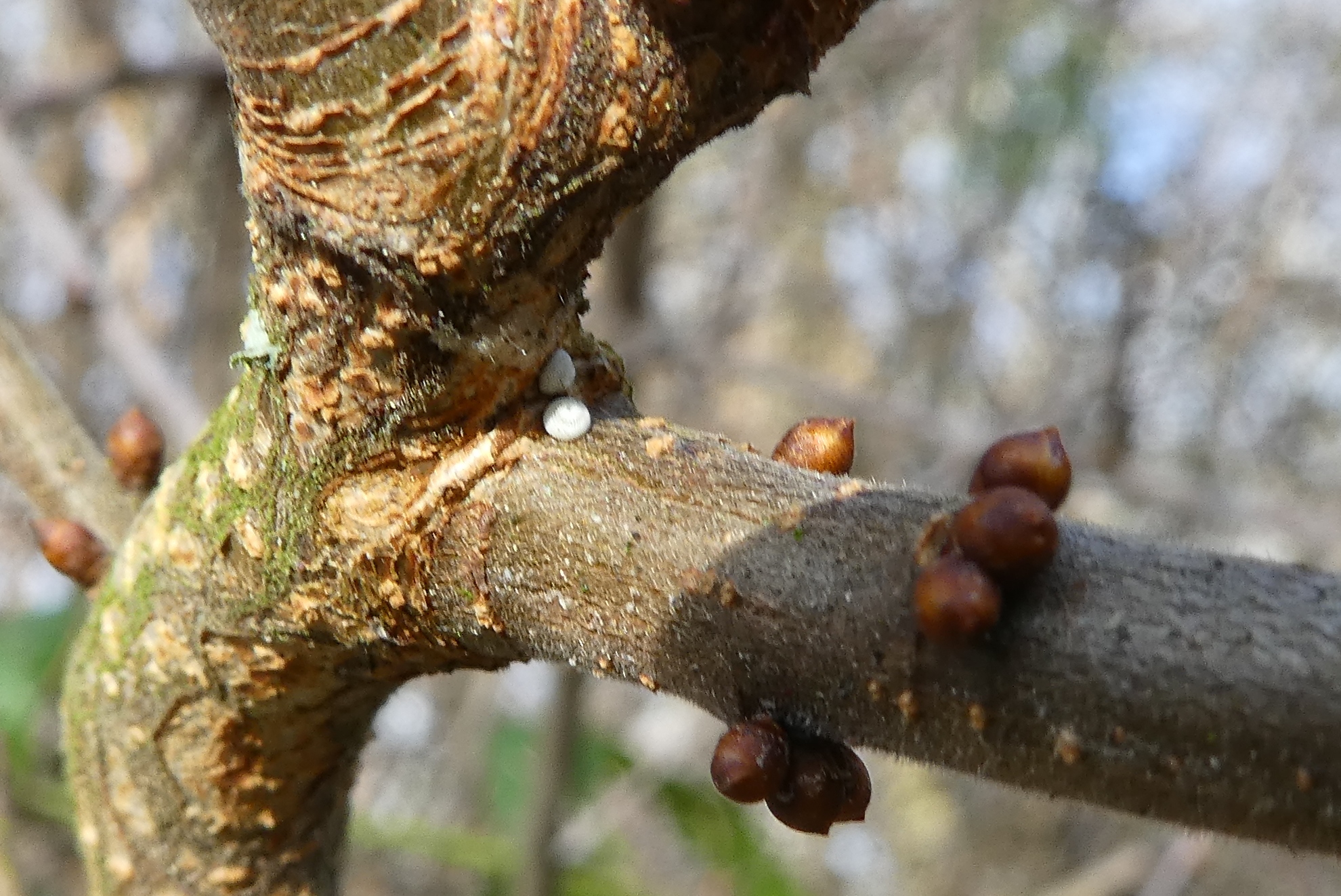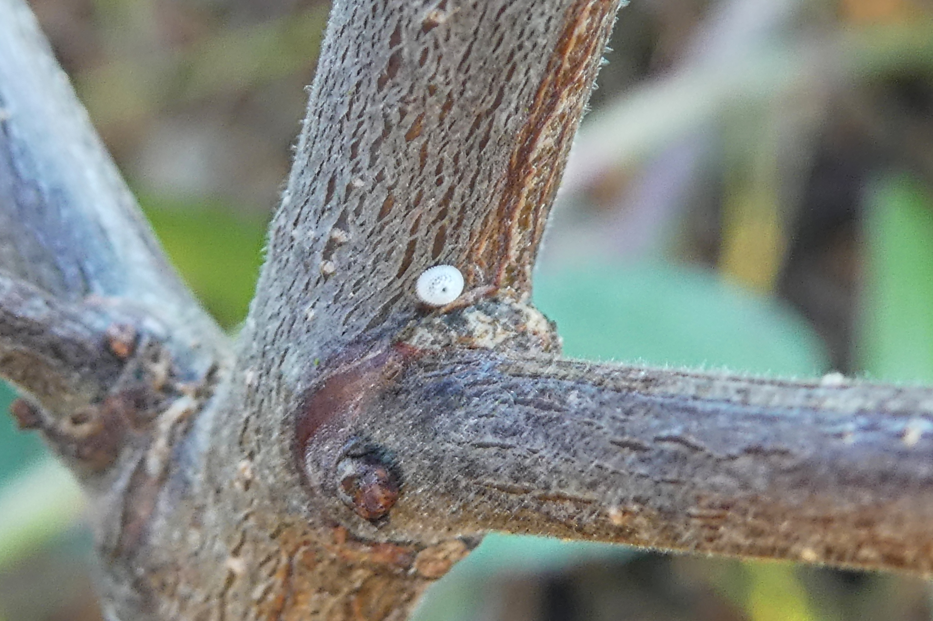 Bild 2 Eier von Thecla betulae, bei Bad Düben, am Rande der Dübener Heide, 11.04.2009