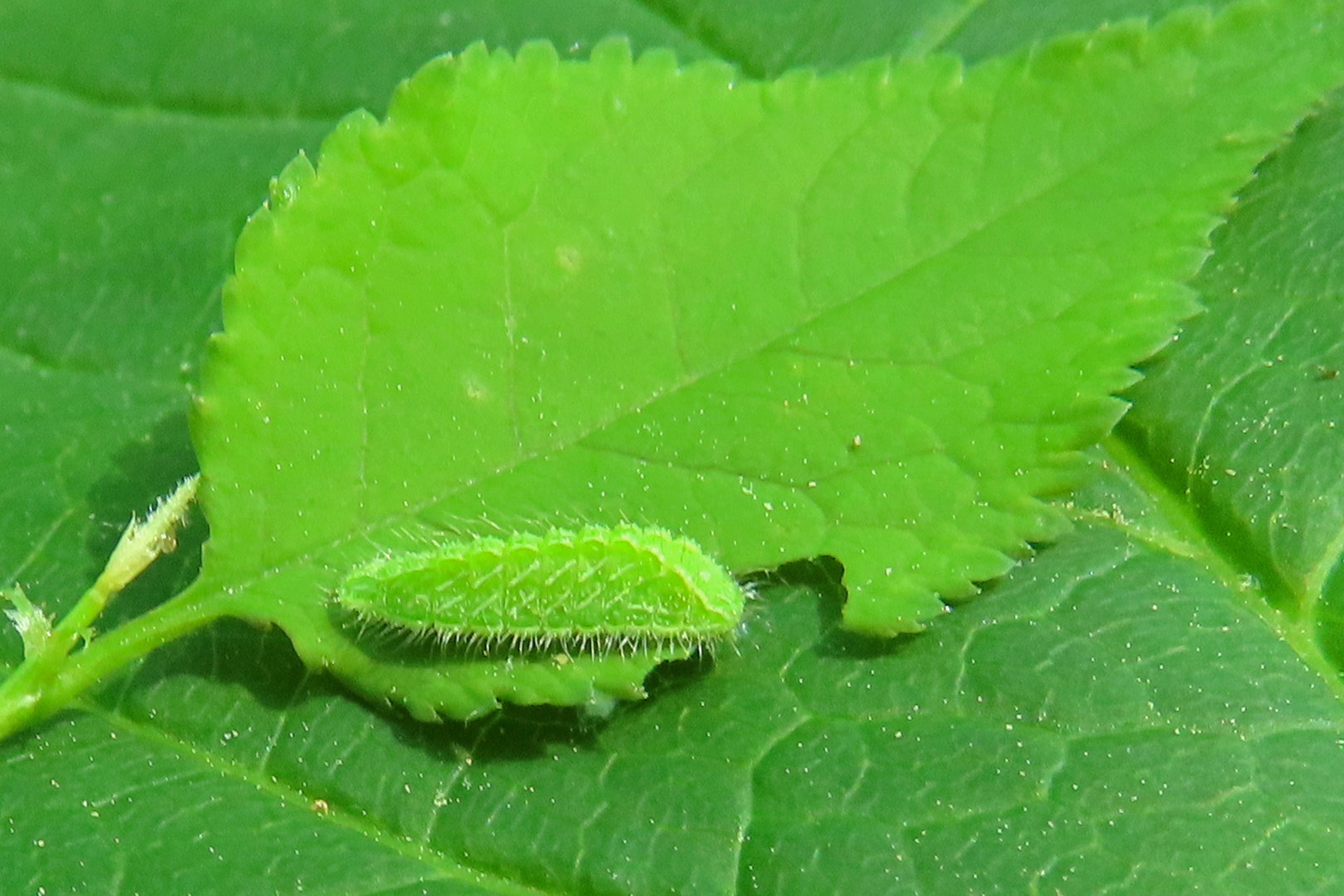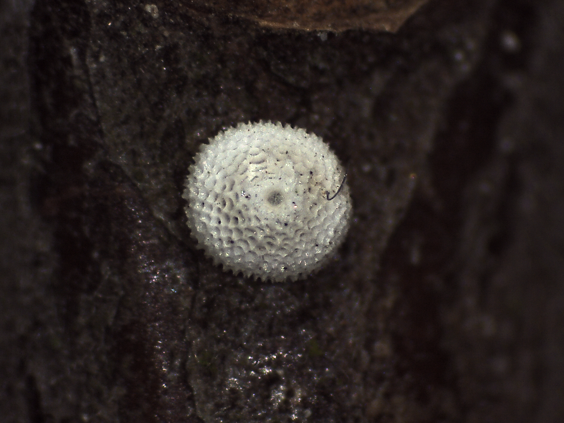Nierenfleck (Thecla betulae (Linnaeus, 1758)), Ei des Nierenfleckfalters, bei Bad Düben, am Rande der Dübener Heide, am 11.04.2009