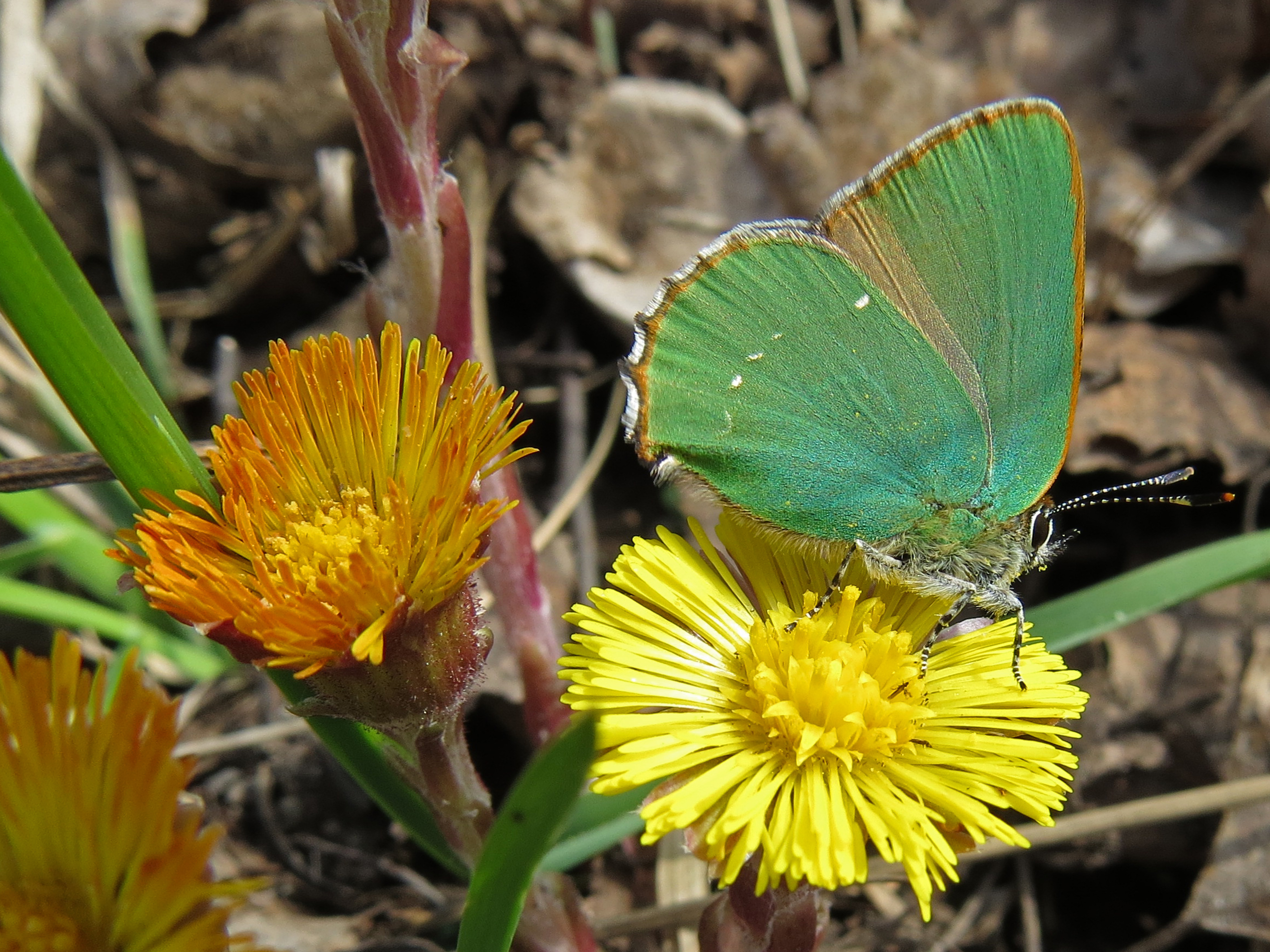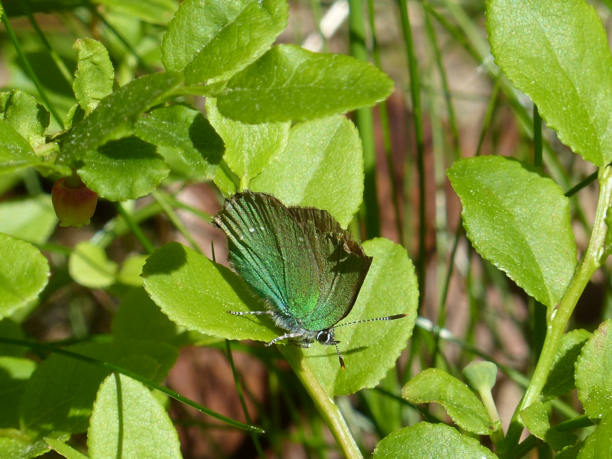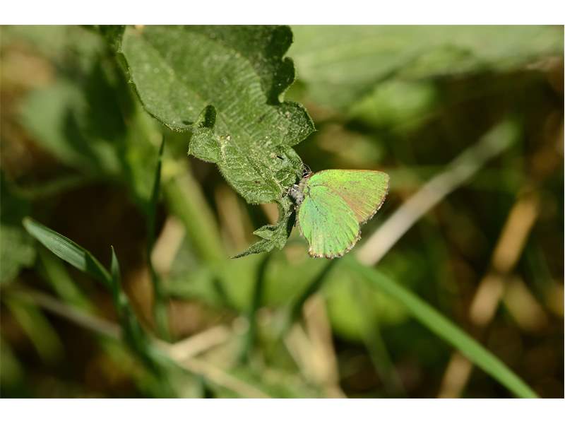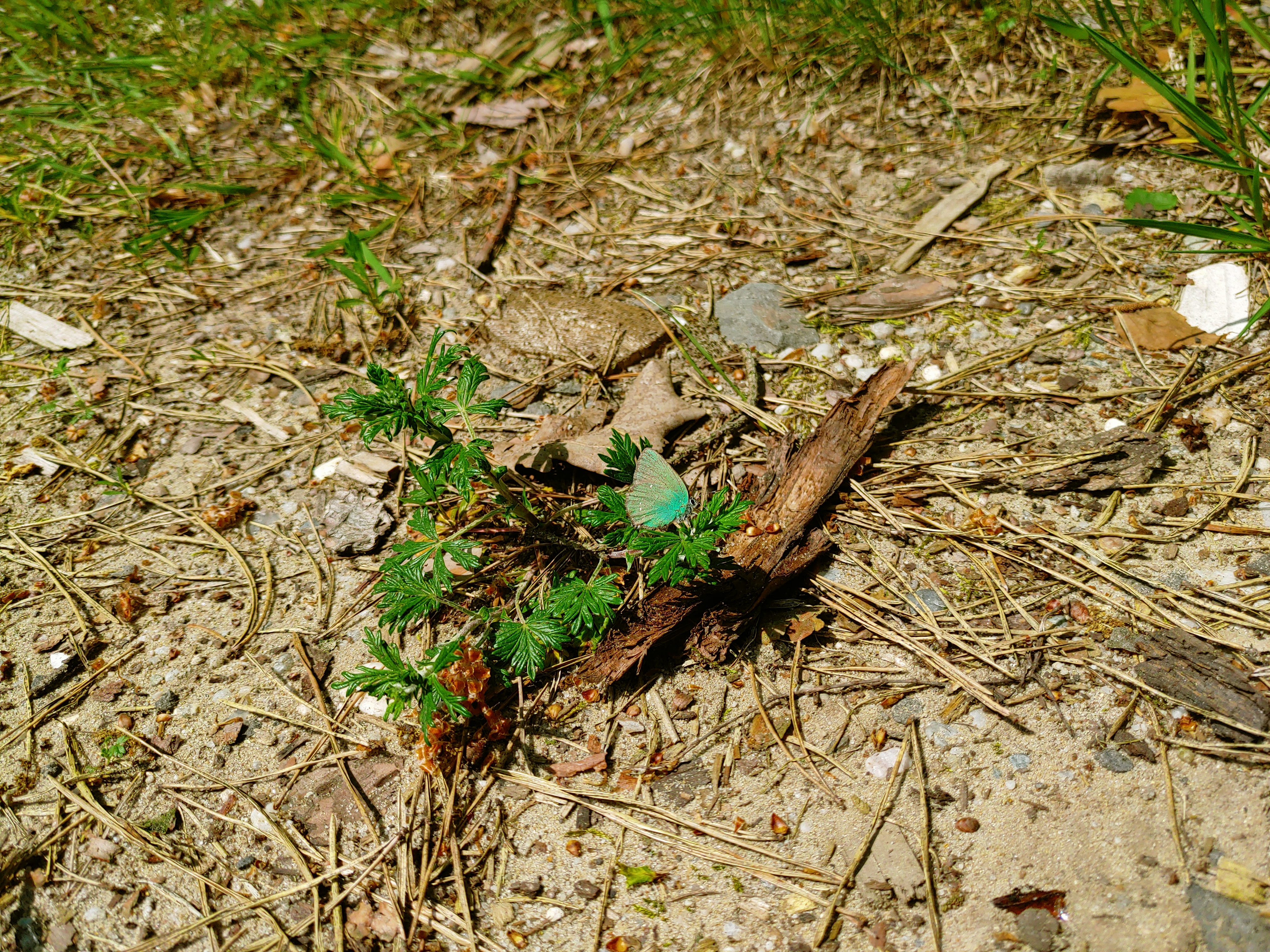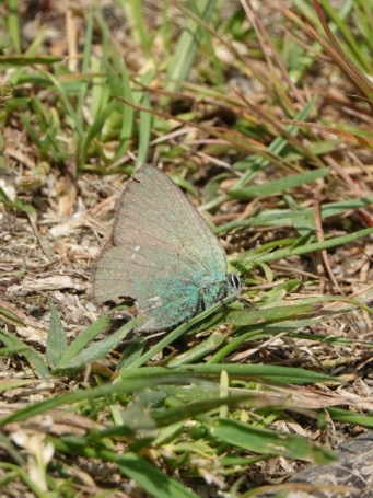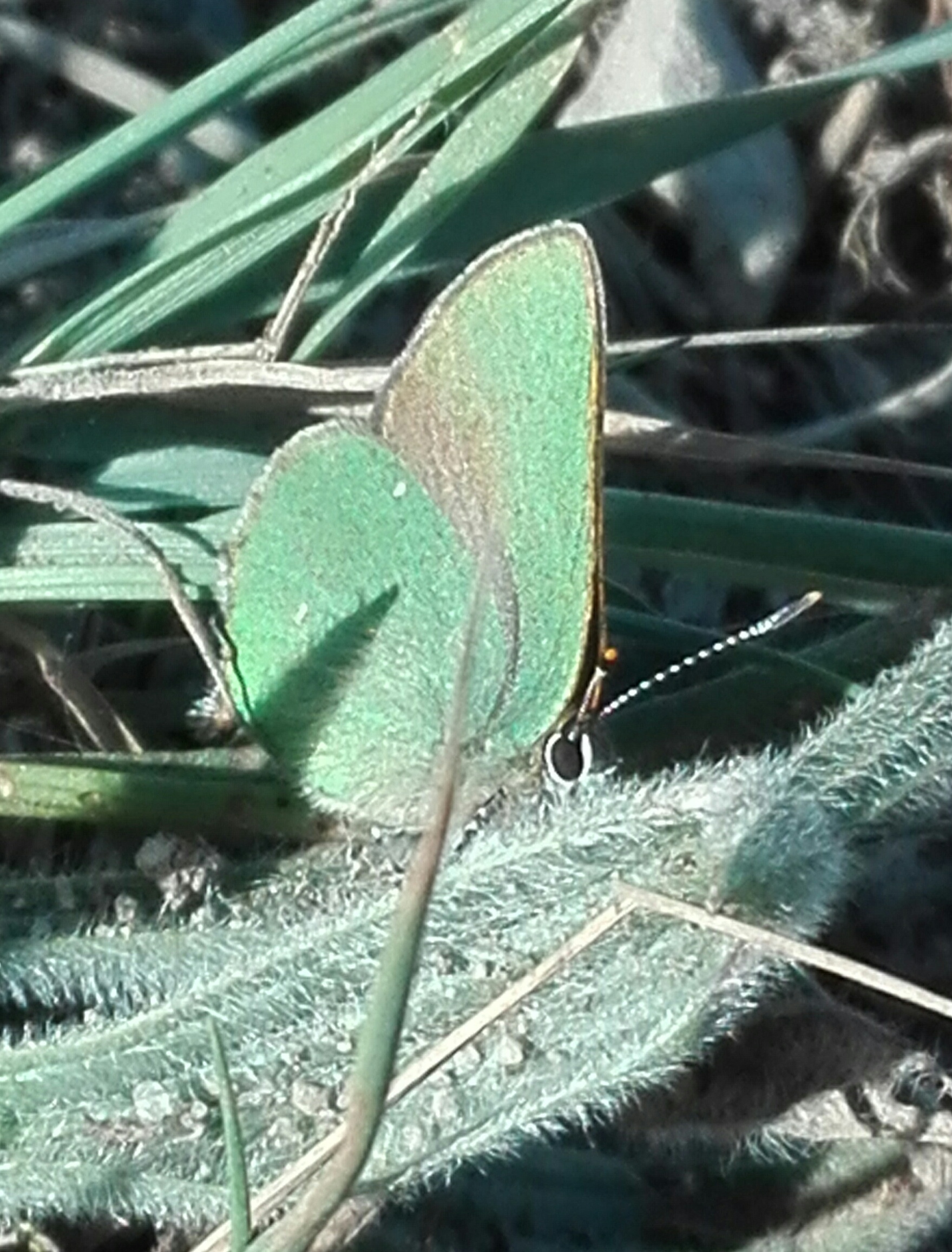 Grüner Zipfelfalter, im NSG Presseler Heide,- Wald,- und Moorgebiet, ca. 3 km nördl. von Wöllnau, am 17.05.2020