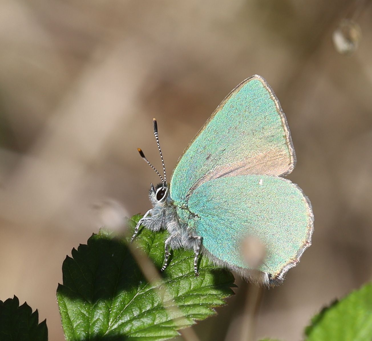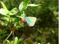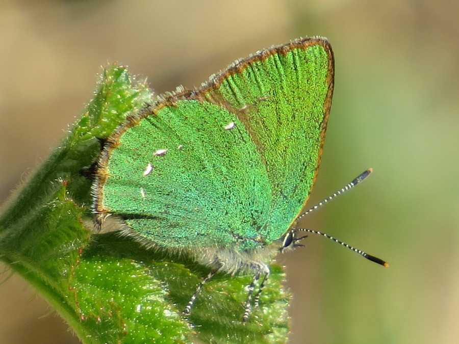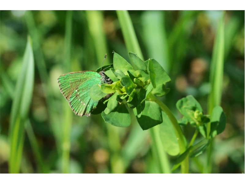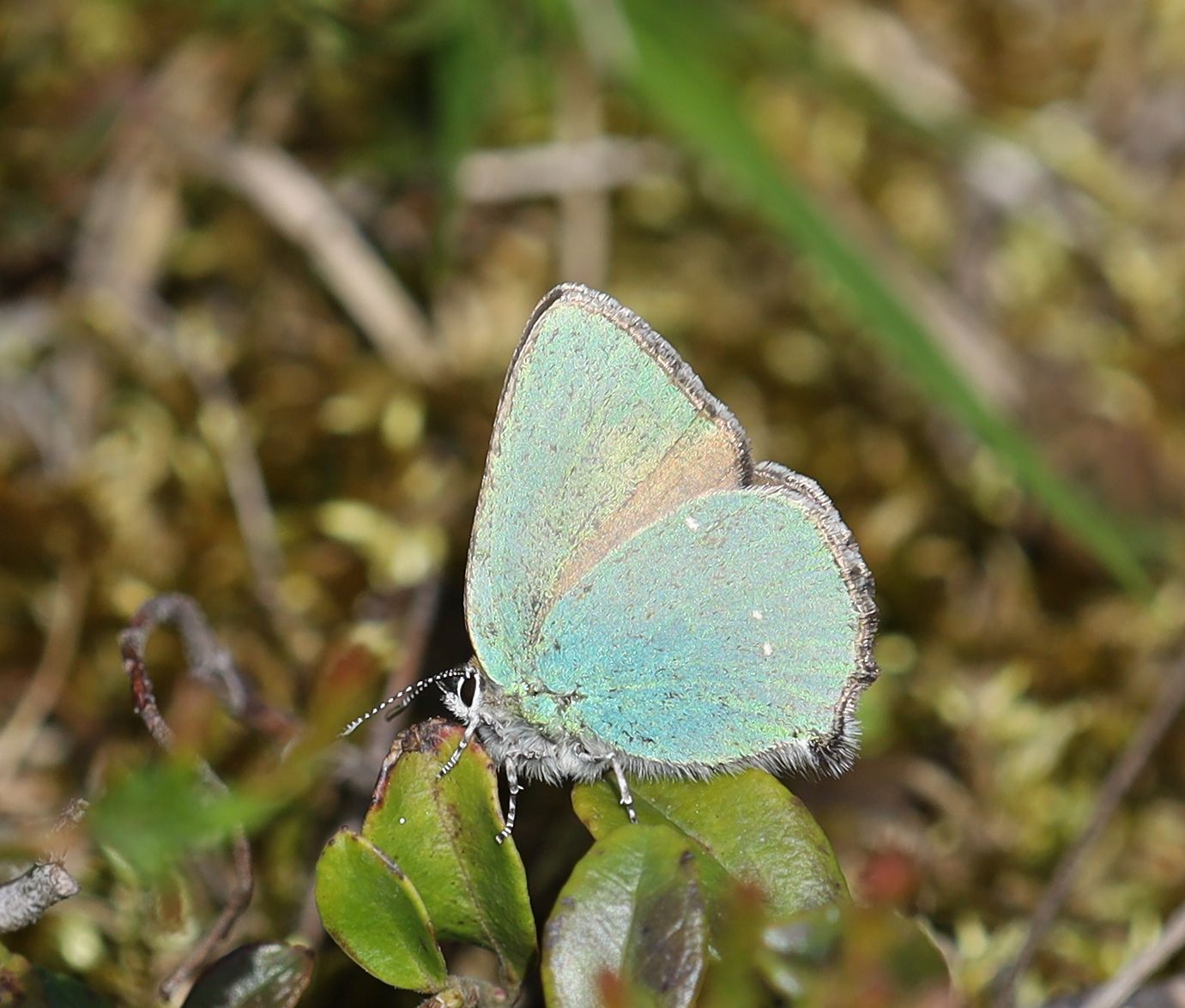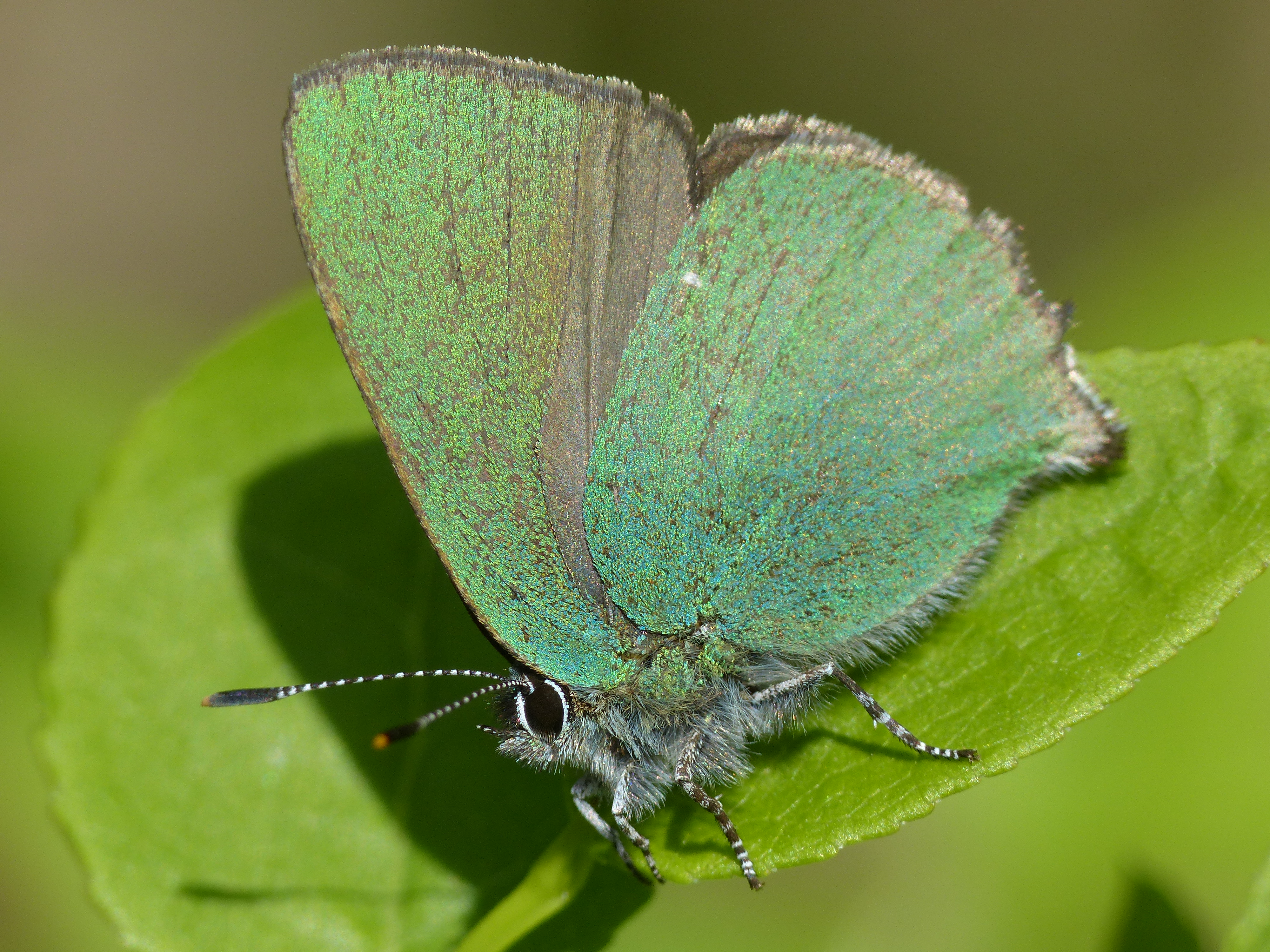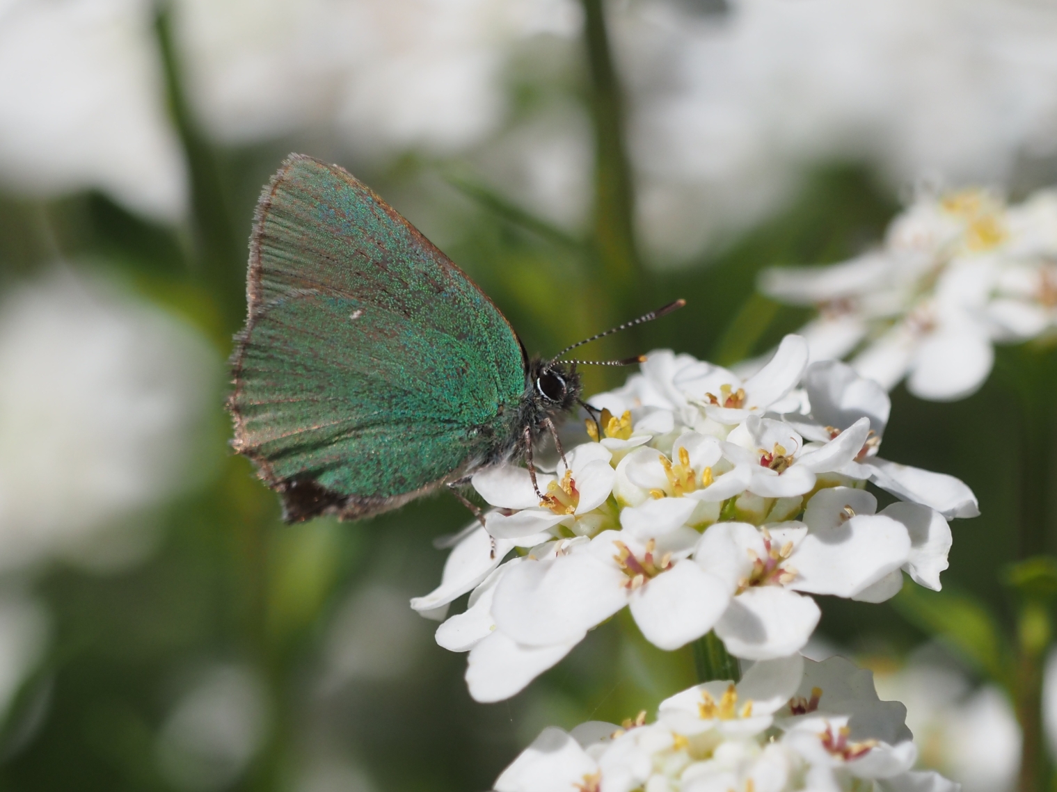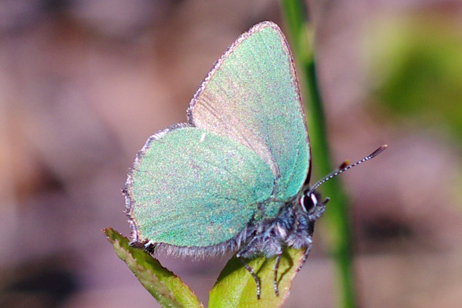 Grüner Zipfelfalter, im NSG Presseler Heide,- Wald,- und Moorgebiet, ca. 3 km nördl. von Wöllnau, am 17.05.2020