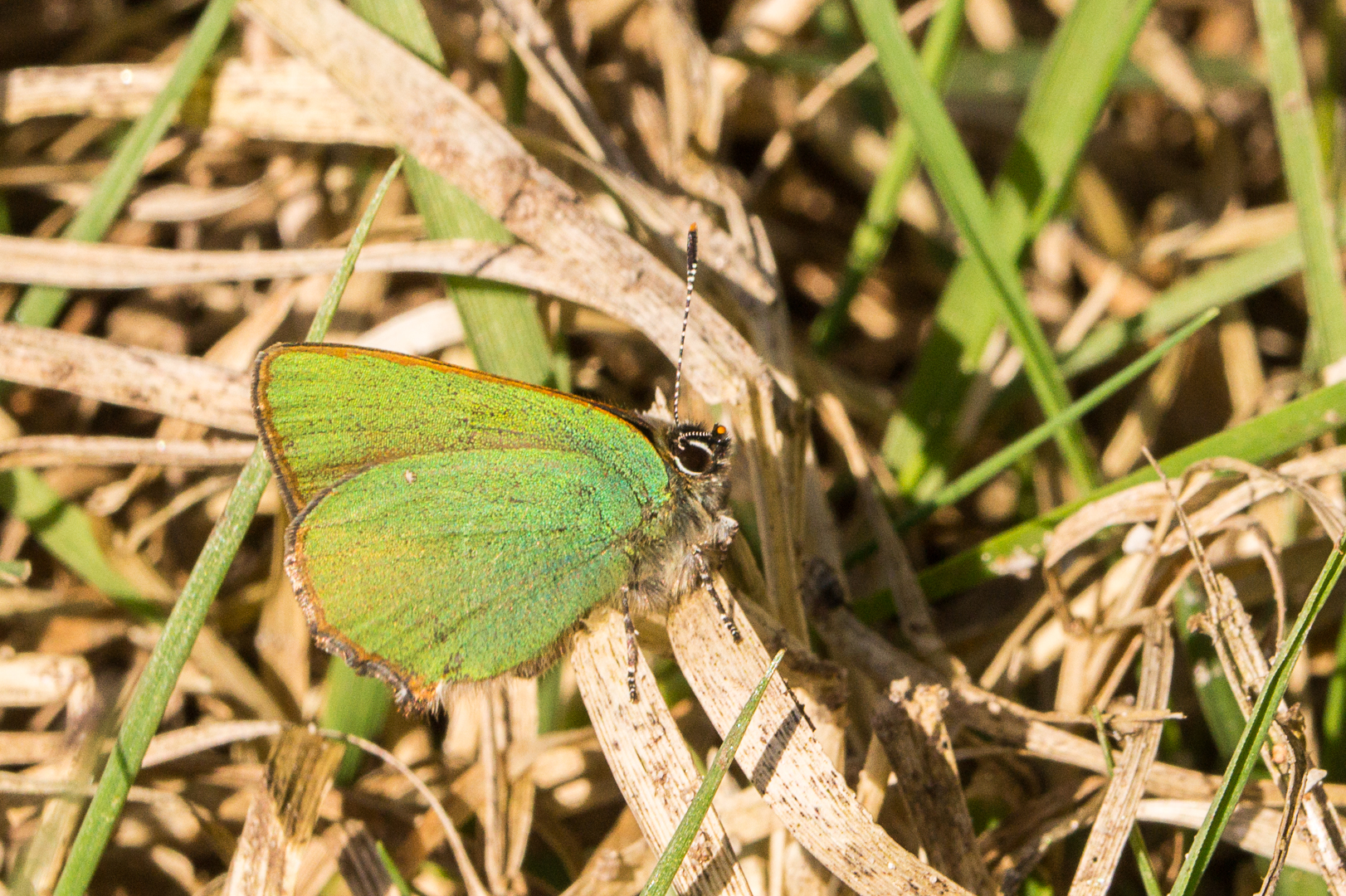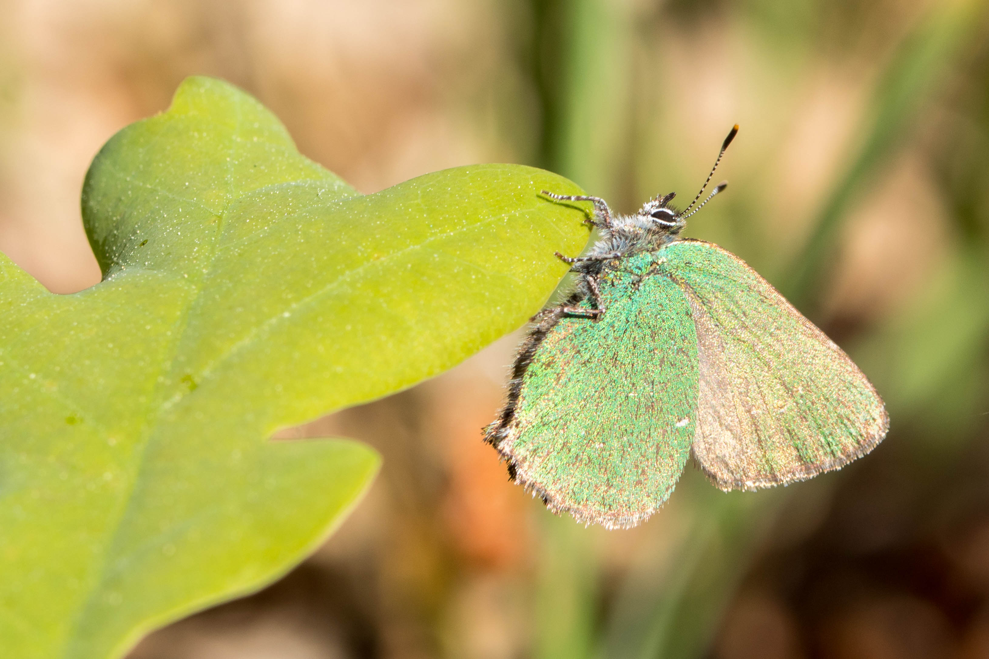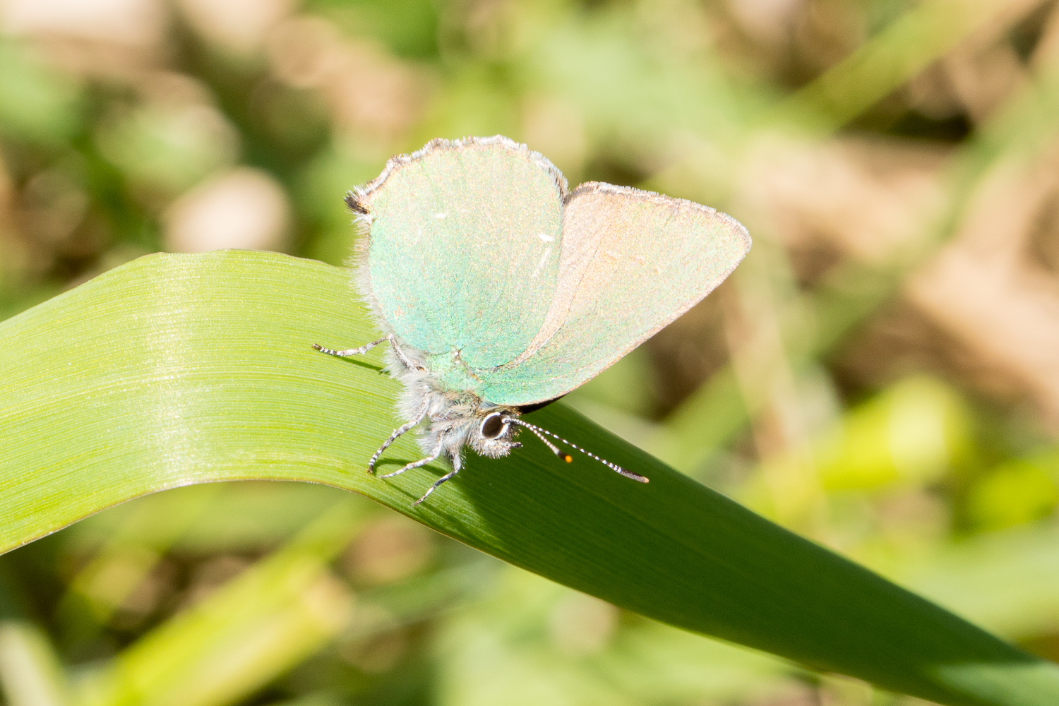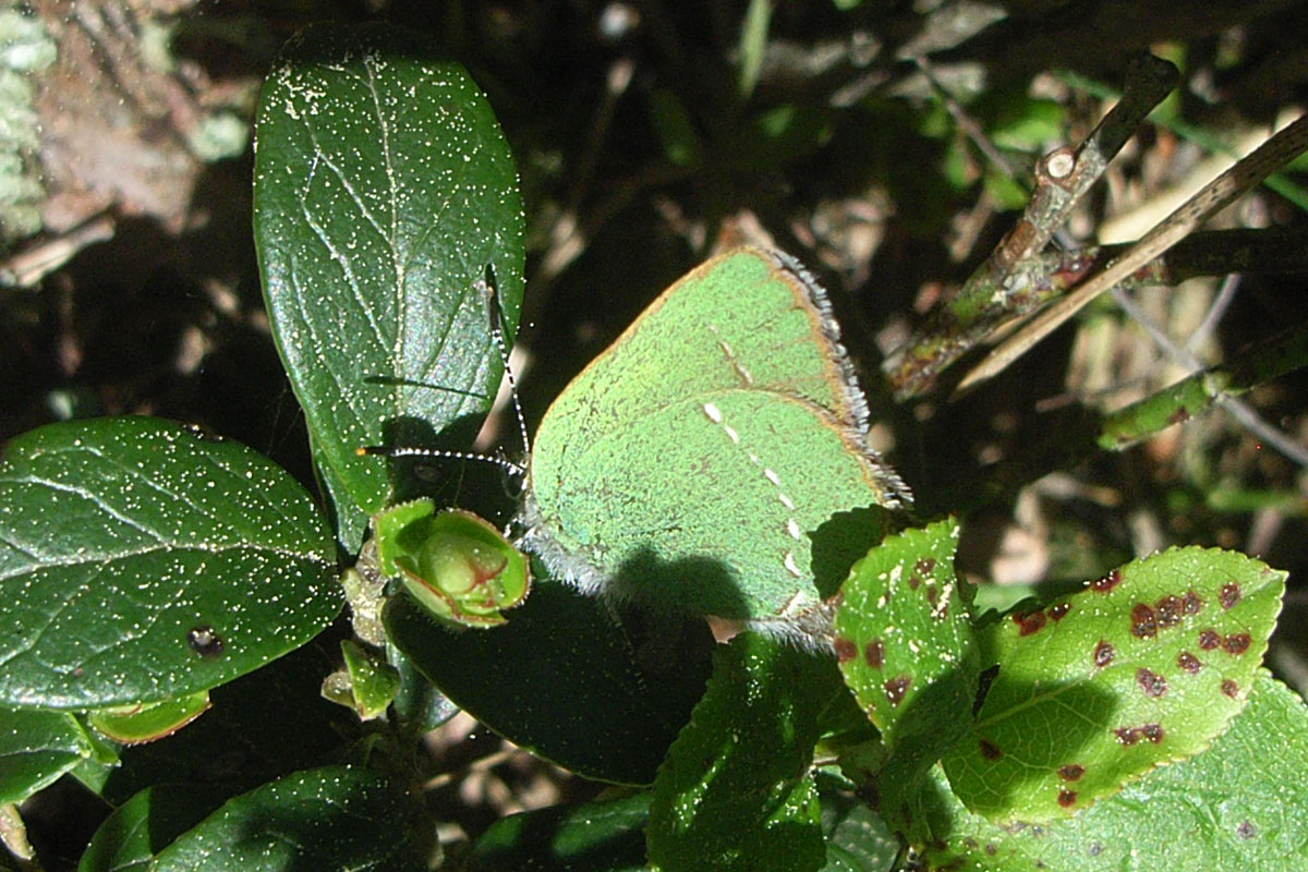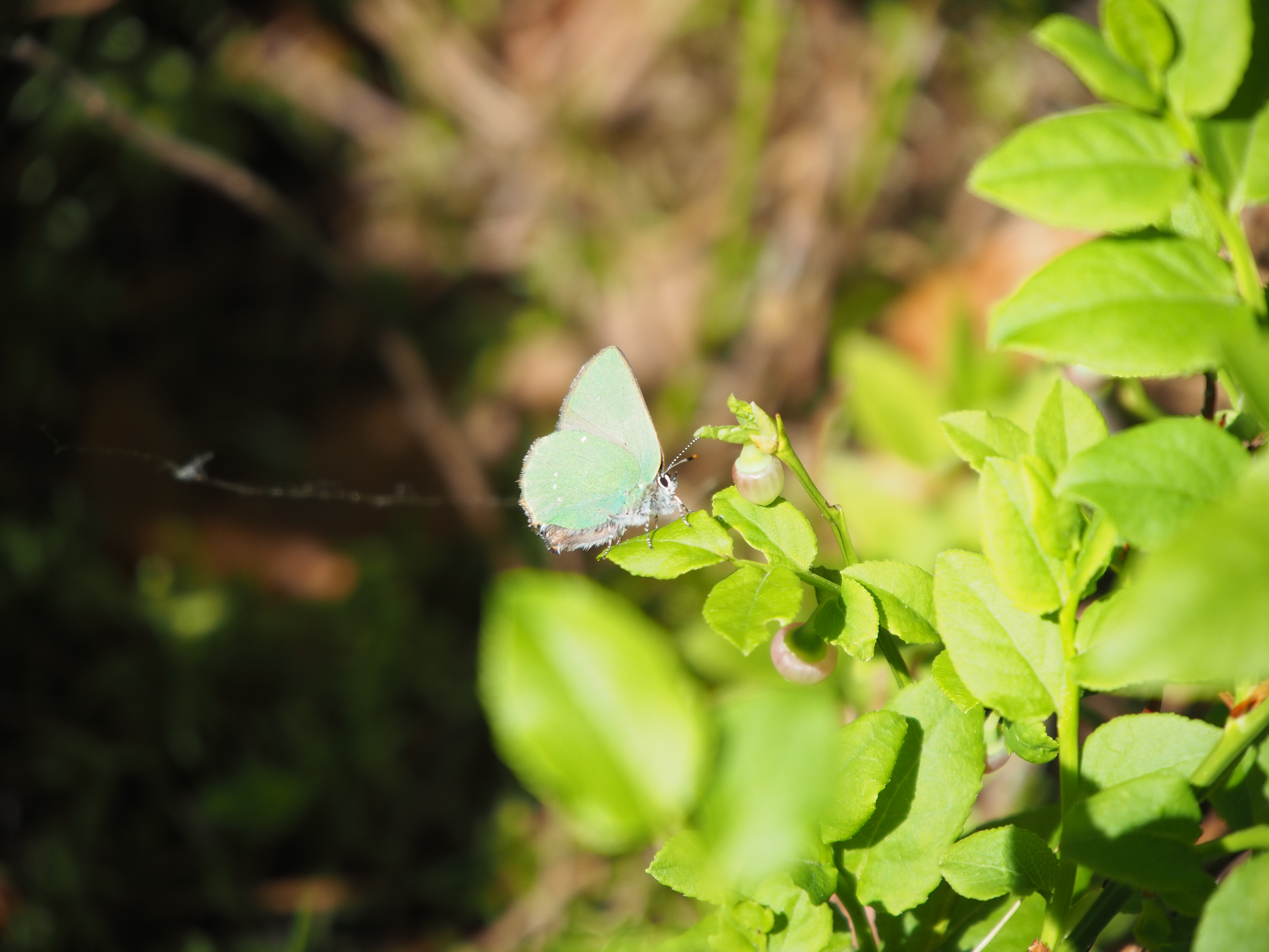 Grüner Zipfelfalter, im NSG Presseler Heide,- Wald,- und Moorgebiet, ca. 3 km nördl. von Wöllnau, am 17.05.2020
