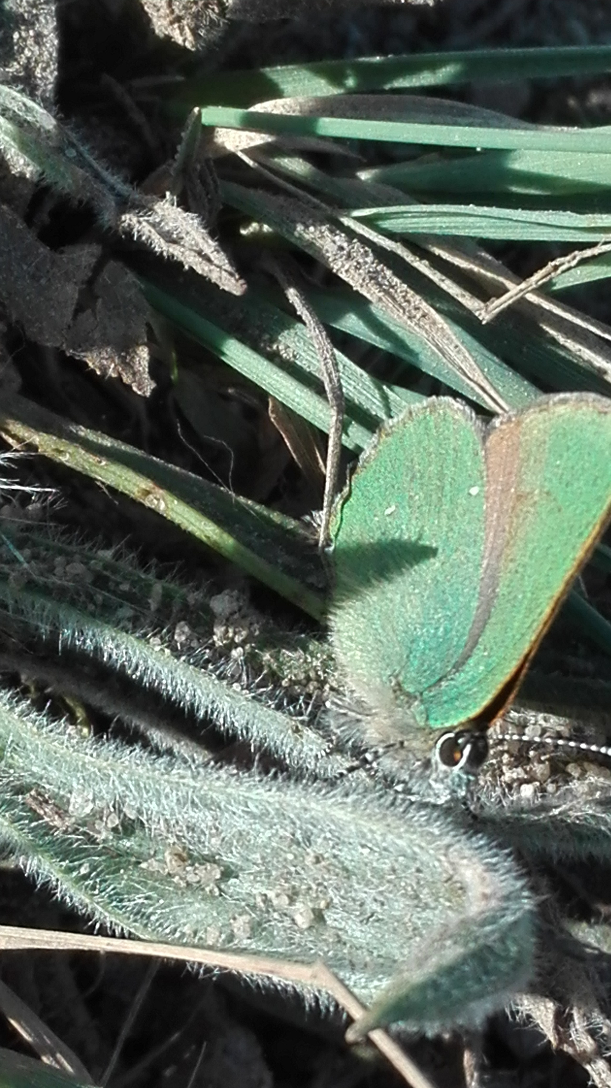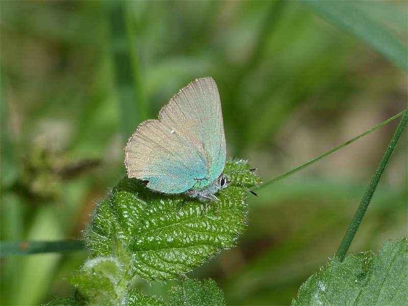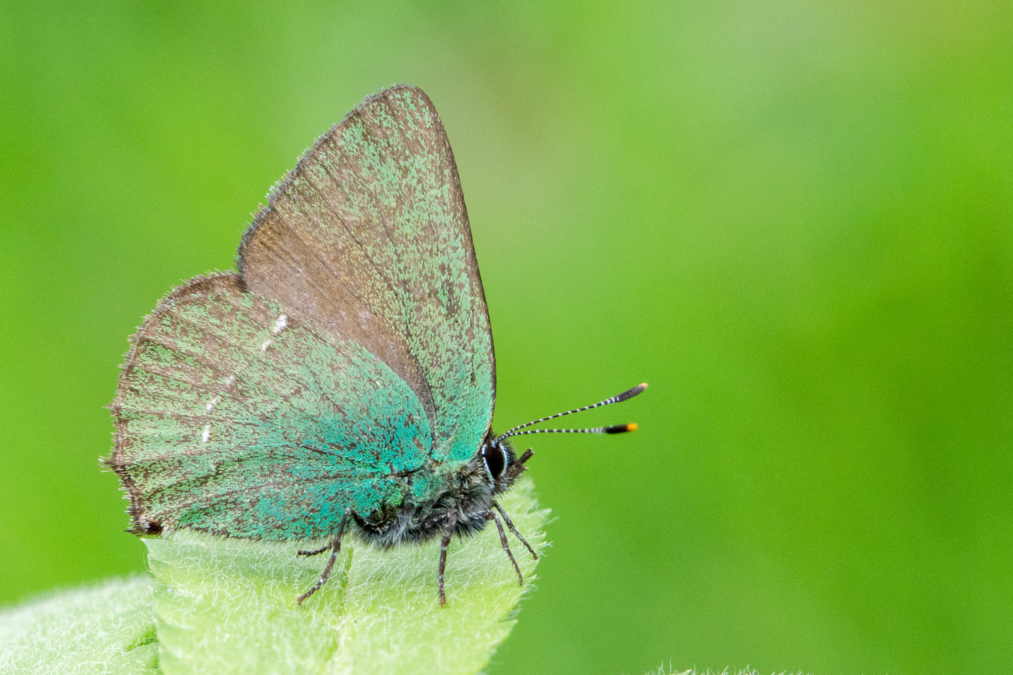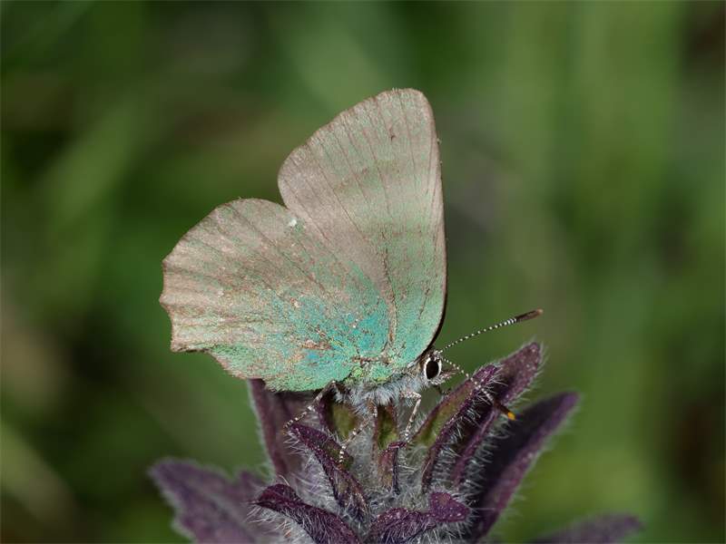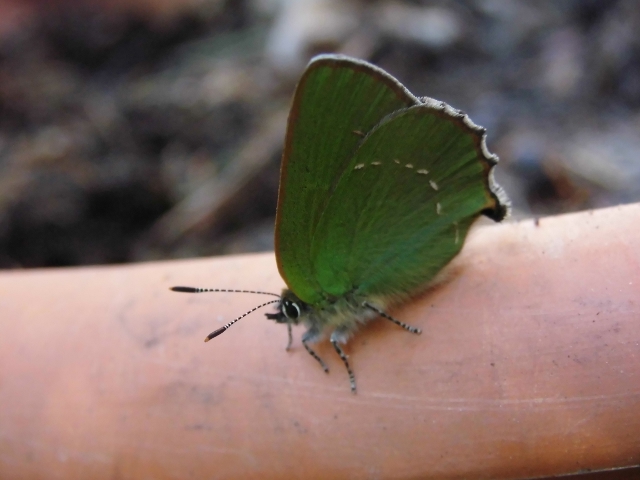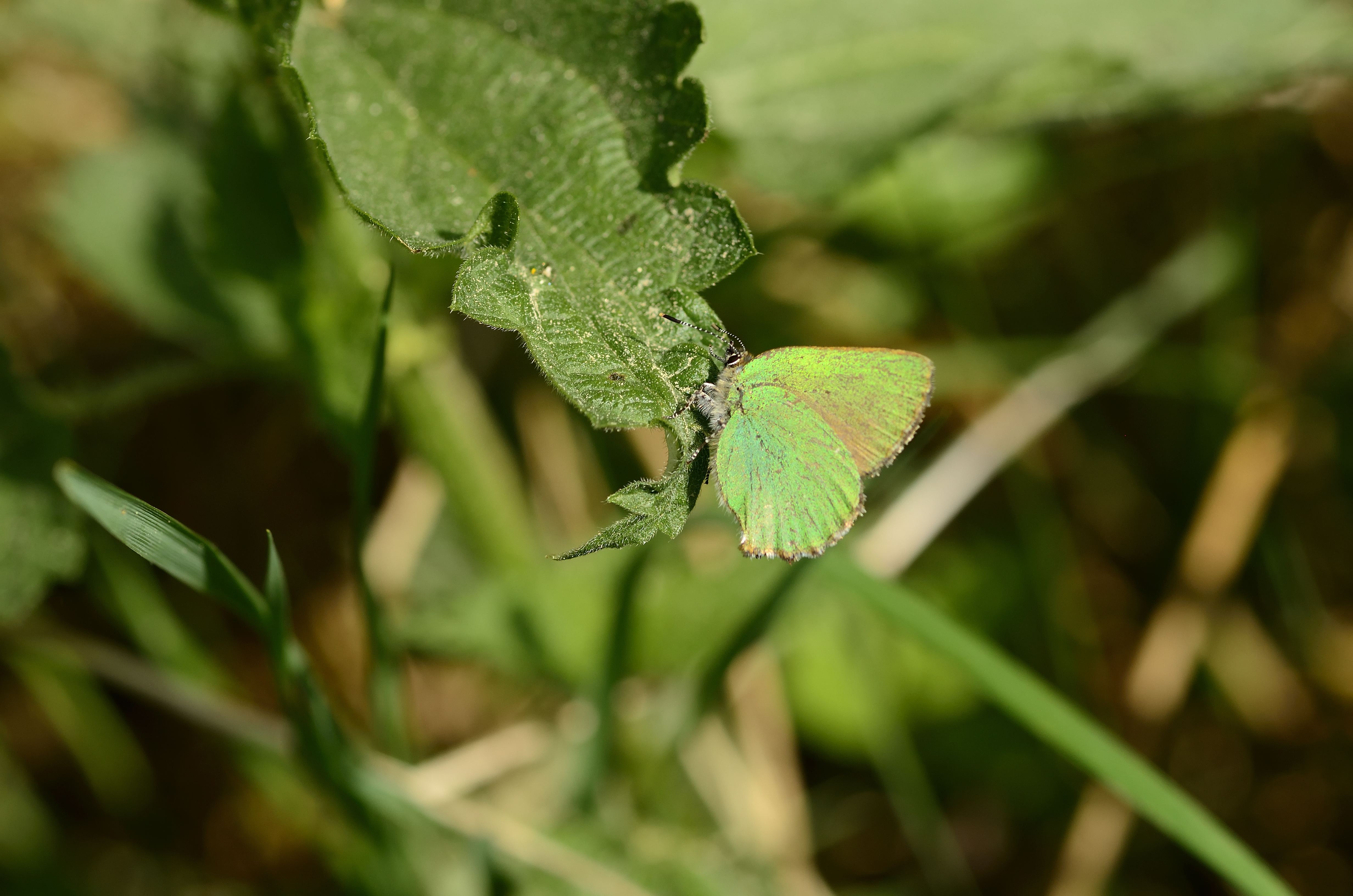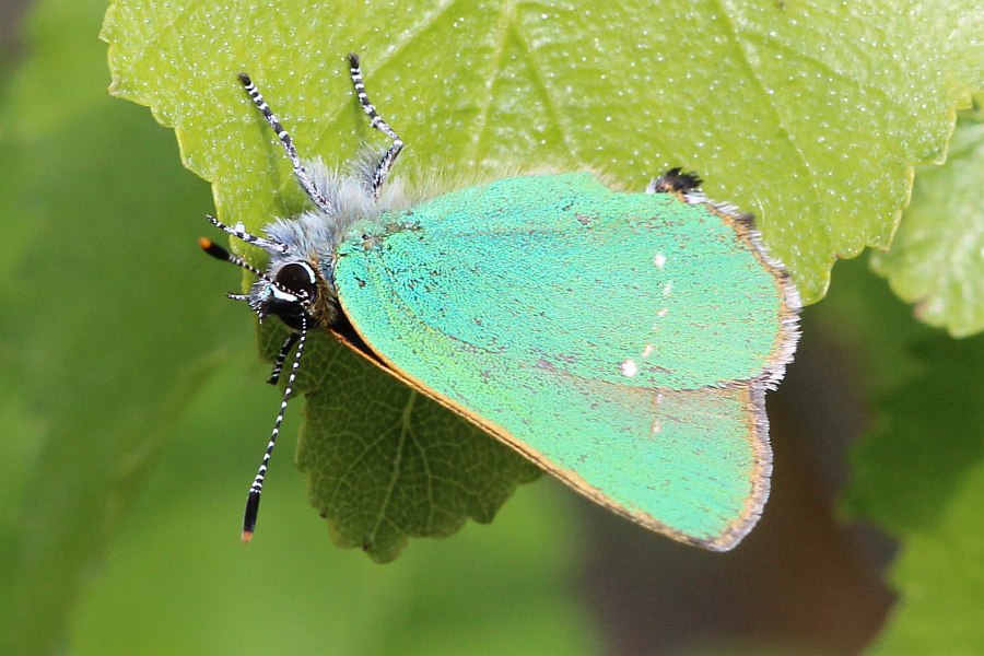 Grüner Zipfelfalter, im NSG Presseler Heide,- Wald,- und Moorgebiet, ca. 3 km nördl. von Wöllnau, am 17.05.2020