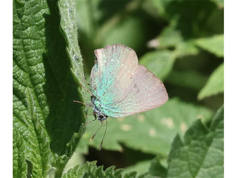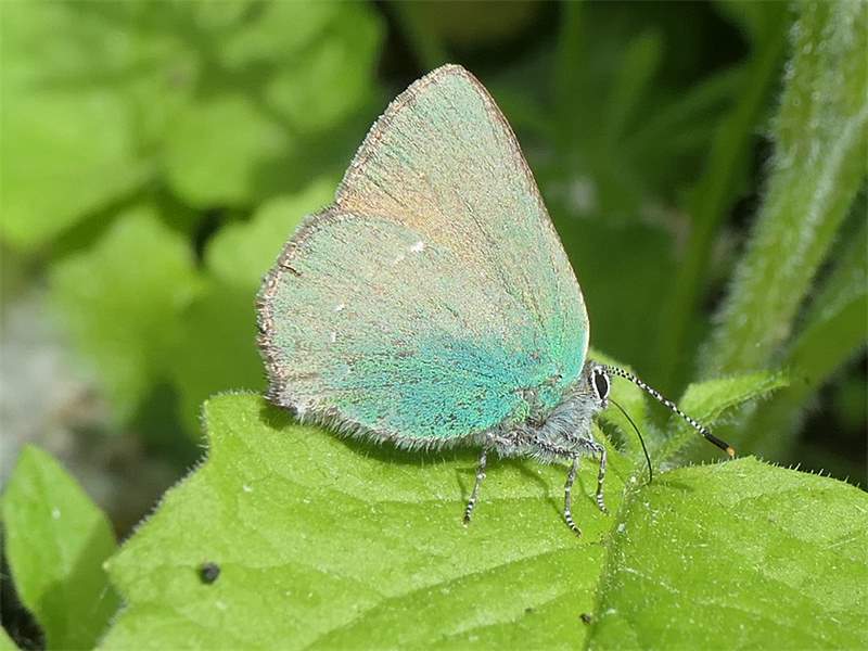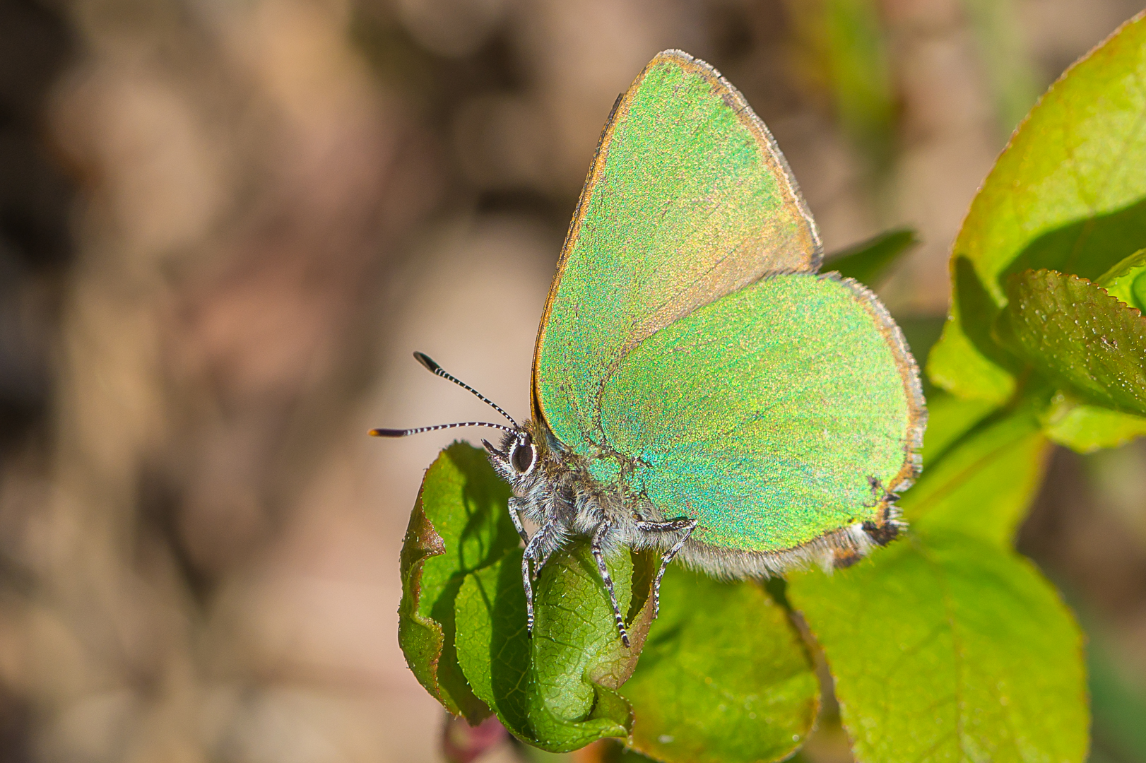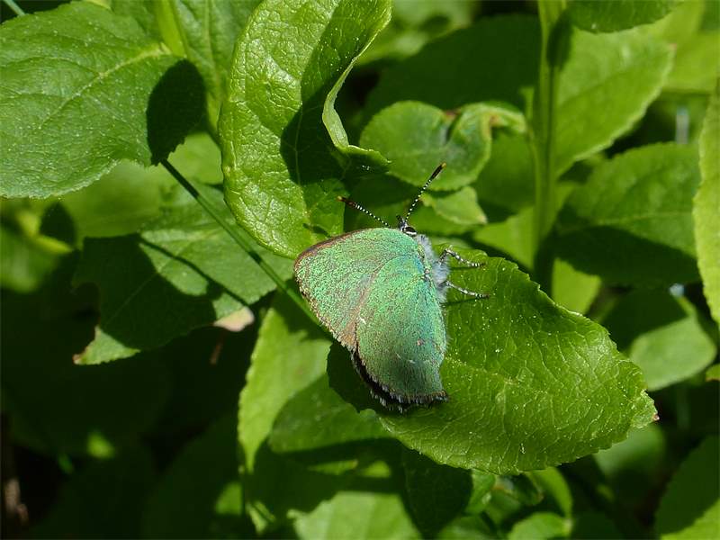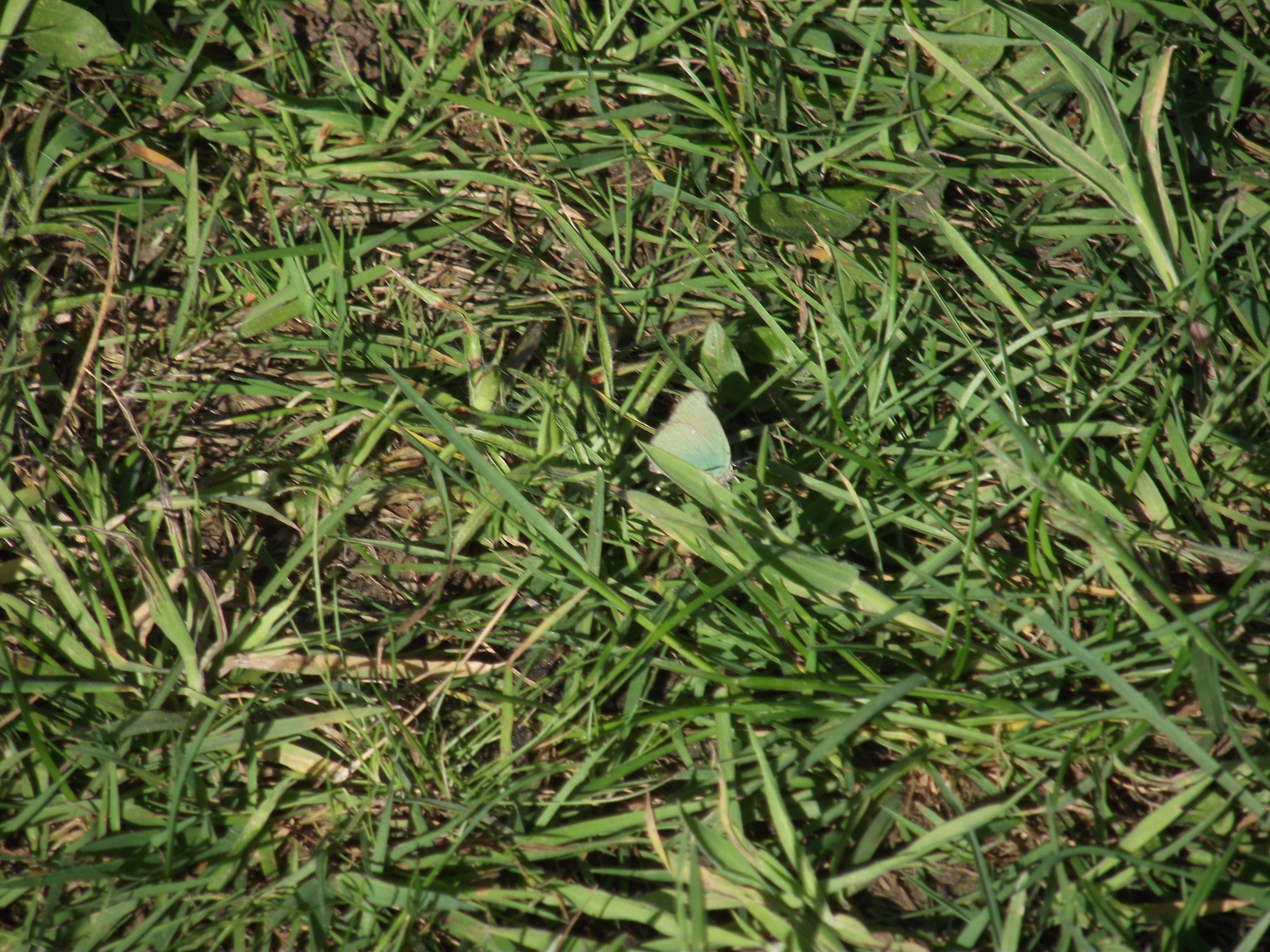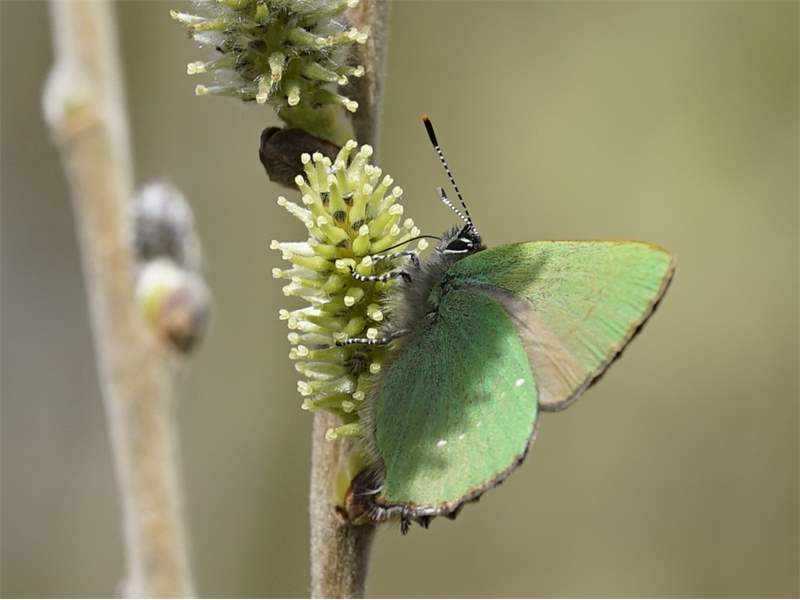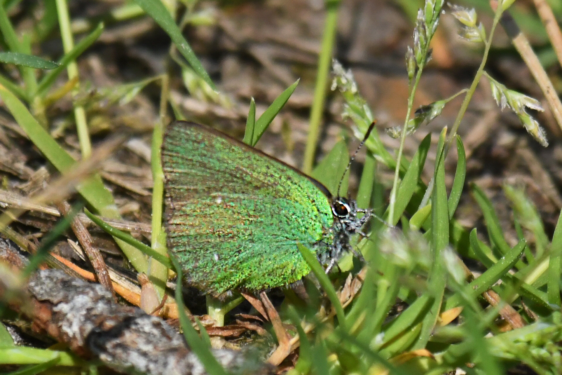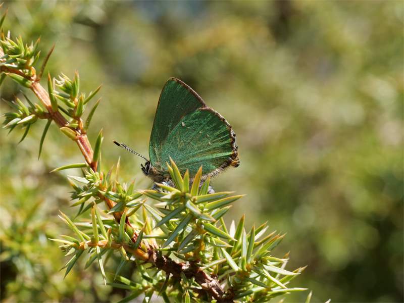 Grüner Zipfelfalter, im NSG Presseler Heide,- Wald,- und Moorgebiet, ca. 3 km nördl. von Wöllnau, am 17.05.2020